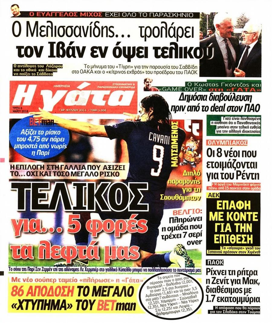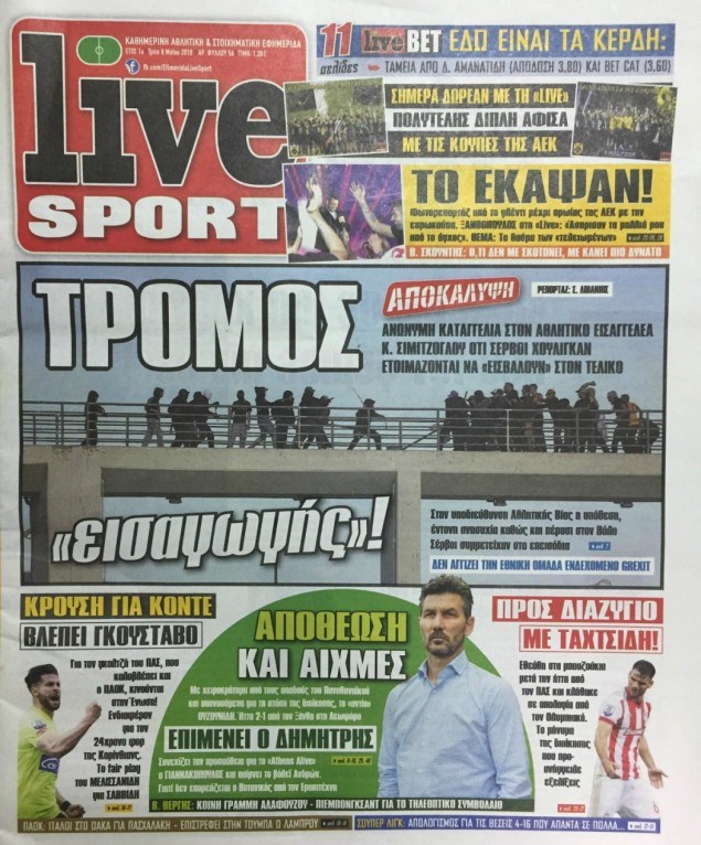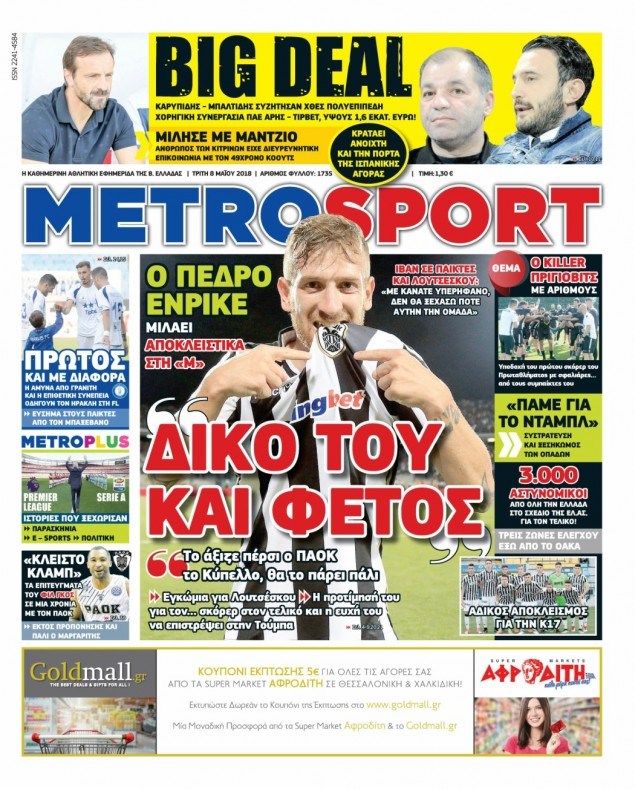 Οι αθλητικές εφημερίδες 8/5/2018 Κώστας Τεό 06:22, Τρίτη 08 Μαΐου 2018 Media Διαβάστε τα σημερινά πρωτοσέλιδα των αθλητικών εφημερίδων: ΑΘΛΗΤΙΚΕΣ ΕΦΗΜΕΡΙΔΕΣ ΠΡΩΤΟΣΕΛΙΔΑ Μοιράσου το: σχολίασε κι εσύ (0 σχόλια) Ακολουθήστε το enikos.gr στο Google News και μάθετε πρώτοι όλες τις ειδήσεις Δείτε όλες τις τελευταίες ειδήσεις από την Ελλάδα και τον Κόσμο στο enikos.gr Ειδήσεις Ροή Ειδήσεων 4 ώρες πριν Από το Ορμένιο ως τα Μάλγαρα κι από τη Σιάτιστα μέχρι τη Νίκαια: Μπλόκα σε όλη την Ελλάδα – Το Σάββατο ανοίγουν τα διόδια οι αγρότες 1 ώρα πριν Εμπλοκή και αερομαχίες με οπλισμένα τουρκικά F-16 στο Αιγαίο 3 ώρες πριν Αττική: Θρίλερ με νεκρό βρέφος 5 μηνών – Κοιμόταν στο ίδιο κρεβάτι με τους γονείς του 58 λεπτά πριν Πούτιν: «Ναι, είμαι ερωτευμένος» – Βίντεο από τη σπάνια προσωπική παραδοχή του 3 ώρες πριν Μεσόγειος: Η διαδρομή του ρωσικού τάνκερ «Qendil» και η στοχευμένη επίθεση της Ουκρανίας με drone – Ο Πούτιν προειδοποίησε για αντίποινα 5 ώρες πριν Τα 5 ζώδια που ευνοούνται στην ερωτική ζωή τους την επόμενη εβδομάδα – «Η ενέργεια του Αιγόκερου φέρνει αγάπη και σταθερότητα» 6 ώρες πριν Αυτό το έξυπνο μαθηματικό κόλπο θα μπορούσε να αλλάξει τον τρόπο με τον οποίο οι επιστήμονες μελετούν τους σεισμούς 2 ώρες πριν Μήπως έχετε χάσει τον εαυτό σας στη σχέση σας; 7 «αθόρυβες» υποχωρήσεις που μάλλον κάνατε, χωρίς να το συνειδητοποιήσετε 4 ώρες πριν Κουίζ για την παλιά Αθήνα: Αναγνωρίζετε την περιοχή; Έχετε περάσει 100% από εκεί 5 λεπτά πριν Μπαράκ Ομπάμα: Τα βιβλία, οι ταινίες και τα τραγούδια που ξεχώρισε το 2025 – Πλήρης λίστα 10 λεπτά πριν Don’t Forget The Lyrics: Η Έλλη Κοκκίνου υποδέχεται 4 παίκτες που θα κάνουν τα πάντα για να μη χάσουν ούτε… μισή λέξη από τους στίχους 16 λεπτά πριν Πλεύρης στον ΑΝΤ1: Η βασική πολιτική που ψηφίστηκε από τους υπουργούς Μετανάστευσης είναι η δημιουργία κέντρων κράτησης μεταναστών στην Αφρική – ΒΙΝΤΕΟ 21 λεπτά πριν Η εξομολόγηση της Νίκης Σερέτη: «Δεν κρύβω ότι ήταν πάρα πολύ δύσκολο όλο αυτό που βίωσα» 26 λεπτά πριν Αγρότες: Κλειστό ξανά το ρεύμα εισόδου στα Μάλγαρα – Άνοιξαν τον κόμβο της Χαλκηδόνας ENIKOS NETWORK Έχετε πραγματικά μεγάλη καρδιά; 10 χαρακτηριστικά όσων έχουν καλοσύνη «Η σούπερ» γρίπη εξαπλώνεται στην Ευρώπη-Στοιχεία από το ECDC για την αποτελεσματικότητα του εμβολίου Επίδομα παιδιού: Πότε ανοίγει ξανά η πλατφόρμα για τις αιτήσεις Προκήρυξη ΑΣΕΠ για 397 μόνιμες προσλήψεις στο Δημόσιο: Βγήκαν τα προσωρινά αποτελέσματα – Πότε αρχίζει η υποβολή ενστάσεων Χαρτογραφώντας το «σημείο χωρίς επιστροφή»: Για πρώτη φορά αποκαλύπτεται με λεπτομέρεια το ακανθώδες όριο της ατμόσφαιρας τ... Η Google καταργεί τη λειτουργία «dark web report» – Πώς θα μπορούν οι χρήστες να διαγράφουν τα δεδομένα τους περισσότερα 20:37 , Παρασκευή 19 Δεκεμβρίου 2025 Don’t Forget The Lyrics: Η Έλλη Κοκκίνου υποδέχεται 4 παίκτες που θα κάνουν τα πάντα για να μη χάσουν ούτε… μισή λέξη από τους στίχους Το «Don’t Forget The Lyrics» επιστρέφει απόψε, Παρασκευή 19 Δεκεμβρίου, στις 21:00 με νέο επει... 19:31 , Παρασκευή 19 Δεκεμβρίου 2025 GNTM: Απόψε ο μεγάλος τελικός για τους 4 φιναλίστ Έπειτα από μήνες γεμάτους μόδα, δημιουργία και έντονες αναμετρήσεις, το GNTM 2025 κορυφώνεται,... 18:11 , Παρασκευή 19 Δεκεμβρίου 2025 Το σόι σου: Ο Άρης έρχεται στην Ελλάδα για τις γιορτές των Χριστουγέννων – Τι θα δούμε στο αποψινό εορταστικό επεισόδιο Ένα απολαυστικό, εορταστικό επεισόδιο της σειράς “Το σόι σου”, γεμάτο ευτράπελα αλ... 15:15 , Παρασκευή 19 Δεκεμβρίου 2025 Την Κυριακή 