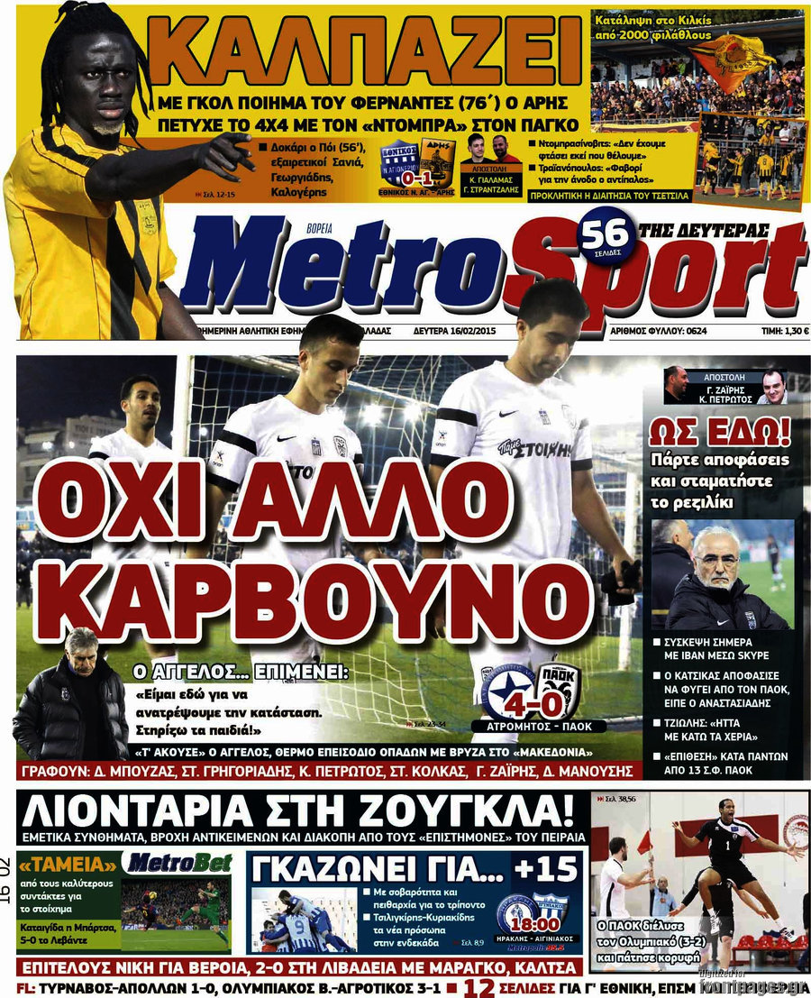 Οι αθλητικές εφημερίδες Enikos Newsroom 08:14, Δευτέρα 16 Φεβρουαρίου 2015 Media Διαβάστε τα πρωτοσέλιδα των σημερινών Αθλητικών εφημερίδων: ΑΘΛΗΤΙΚΕΣ ΕΦΗΜΕΡΙΔΕΣ ΕΦΗΜΕΡΙΔΕΣ ΠΡΩΤΟΣΕΛΙΔΑ Μοιράσου το: σχολίασε κι εσύ (0 σχόλια) Ακολουθήστε το enikos.gr στο Google News και μάθετε πρώτοι όλες τις ειδήσεις Δείτε όλες τις τελευταίες ειδήσεις από την Ελλάδα και τον Κόσμο στο enikos.gr Ειδήσεις Ροή Ειδήσεων 5 ώρες πριν Εκτός ευρωομάδας ΣΥΡΙΖΑ ο Νίκος Παππάς μετά την επίθεση στον δημοσιογράφο Νίκο Γιαννόπουλο – Η μήνυση και οι νέες δηλώσεις 5 ώρες πριν «Αγριεύουν» οι αγρότες: «Δεν συντρέχει λόγος συνάντησης με τον πρωθυπουργό» – Ώρα αποφάσεων στη σύσκεψη της Πέμπτης 5 ώρες πριν Κυψέλη: Χωρίς την οικογένειά της δίπλα της απολογήθηκε η 16χρονη – «Της είχε επιτεθεί κάποιος για να την βιάσει, φοβήθηκε και κυκλοφορούσε με μαχαίρι» 5 ώρες πριν Politico: Το πρόβλημα της Ευρώπης δεν είναι το Βέλγιο αλλά ο Ντόναλντ Τραμπ 6 ώρες πριν Αλεξανδρούπολη: Πολυοργανική ανεπάρκεια λόγω υποσιτισμού η αιτία θανάτου του 3χρονου αγοριού 5 ώρες πριν Μυστήριο με τεράστιες κυκλικές πέτρες 200 κιλών – Ανακαλύφθηκαν τυχαία κατά τη διάρκεια οδικών έργων και κανείς δεν ξέρει από πού προέρχονται 6 ώρες πριν Ύπνος: Ειδικός εξηγεί τον πραγματικό λόγο που ξυπνάτε στις 4 τα ξημερώματα – Ο ρόλος των ορμονών και του κιρκάδιου ρυθμού 7 ώρες πριν Αριθμολογία: Οι άνθρωποι που έχουν γεννηθεί αυτές τις 4 ημερομηνίες, είναι τρυφεροί και αγαπούν ανιδιοτελώς 19 ώρες πριν 20 χρόνια τα Χριστούγεννα ξεκινούν στα Public με μεγάλη ποικιλία σε δώρα! 9 λεπτά πριν GNTM: Με δάκρυα τον αποχαιρέτησε η Ηλιάνα Παπαγεωργίου πριν από τον ημιτελικό – «Αισθάνομαι πολύ παράξενα» 24 λεπτά πριν Αμερικανικά στρατεύματα στον Ισημερινό για «προσωρινή» επιχείρηση κατά των ναρκωτικών 39 λεπτά πριν Βραζιλία: Το Κογκρέσο ενέκρινε σχέδιο νόμου για τη μείωση της ποινής του πρώην προέδρου Μπολσονάρου 54 λεπτά πριν Ένταση στο περιφερειακό συμβούλιο Δυτικής Μακεδονίας: Φωνές, σπρωξιές και διακοπή – Δείτε βίντεο 1 ώρα πριν Σουδάν: Επιδρομή drone σε χωριό του Νότιου Κορντοφάν – Οκτώ νεκροί ENIKOS NETWORK Αϋπνία: Το κόλπο που θα σας βοηθήσει να κοιμηθείτε απόψε – Είναι απλό και έχει αποτέλεσμα 2,6 εκατομμύρια πολίτες έχουν ήδη εμβολιαστεί κατά της γρίπης ΕΛΣΤΑΤ: Τι δείχνουν τα νέα στοιχεία για τις ηλεκτρονικές παραγγελίες των επιχειρήσεων ΚΕΠΕ: Οι 3 διακριτές συμβολές των ΜμΕ και της μεταποίησης στην ελληνική οικονομία Χαρτογραφώντας το «σημείο χωρίς επιστροφή»: Για πρώτη φορά αποκαλύπτεται με λεπτομέρεια το ακανθώδες όριο της ατμόσφαιρας τ... Η Google καταργεί τη λειτουργία «dark web report» – Πώς θα μπορούν οι χρήστες να διαγράφουν τα δεδομένα τους περισσότερα 02:30 , Πέμπτη 18 Δεκεμβρίου 2025 Αλ Τσαντίρι Νιουζ: Η κόρη της Πάολα στο κοινό – Η ατάκα Λαζόπουλου που την έκανε να «κοκκινήσει» Γιορτινή διάθεση και ευχάριστες στιγμές γέμισε η αποψινή, τελευταία για το 2025, εκπομπή του «... 22:24 , Τετάρτη 17 Δεκεμβρίου 2025 Το Σπίτι Δίπλα Στο Ποτάμι: Σε κίνδυνο η υγεία του Απόστολου – Τι θα δούμε απόψε “Το Σπίτι Δίπλα στο Ποτάμι” ξετυλίγει το νήμα της ζωής των πέντε αδελφών με καταισ... 21:14 , Τετάρτη 17 Δεκεμβρίου 2025 Παιχνίδια Εκδίκησης: Θα καταφέρει ο Χρήστος να κλονίσει την εμπιστοσύνη της Μάγιας απέναντι στον Άγη; Τα «Παιχνίδια Εκδίκησης» έρχονται απόψε στις 22:30, στον Αντ1, με το τελευταίο επεισόδιο της χ... 20:57 , Τετάρτη 17 Δεκεμβρίου 2025 Άγιος Έρωτας: Η Χλόη καταθέτει εναντίον του πατέρα της και ο Χά