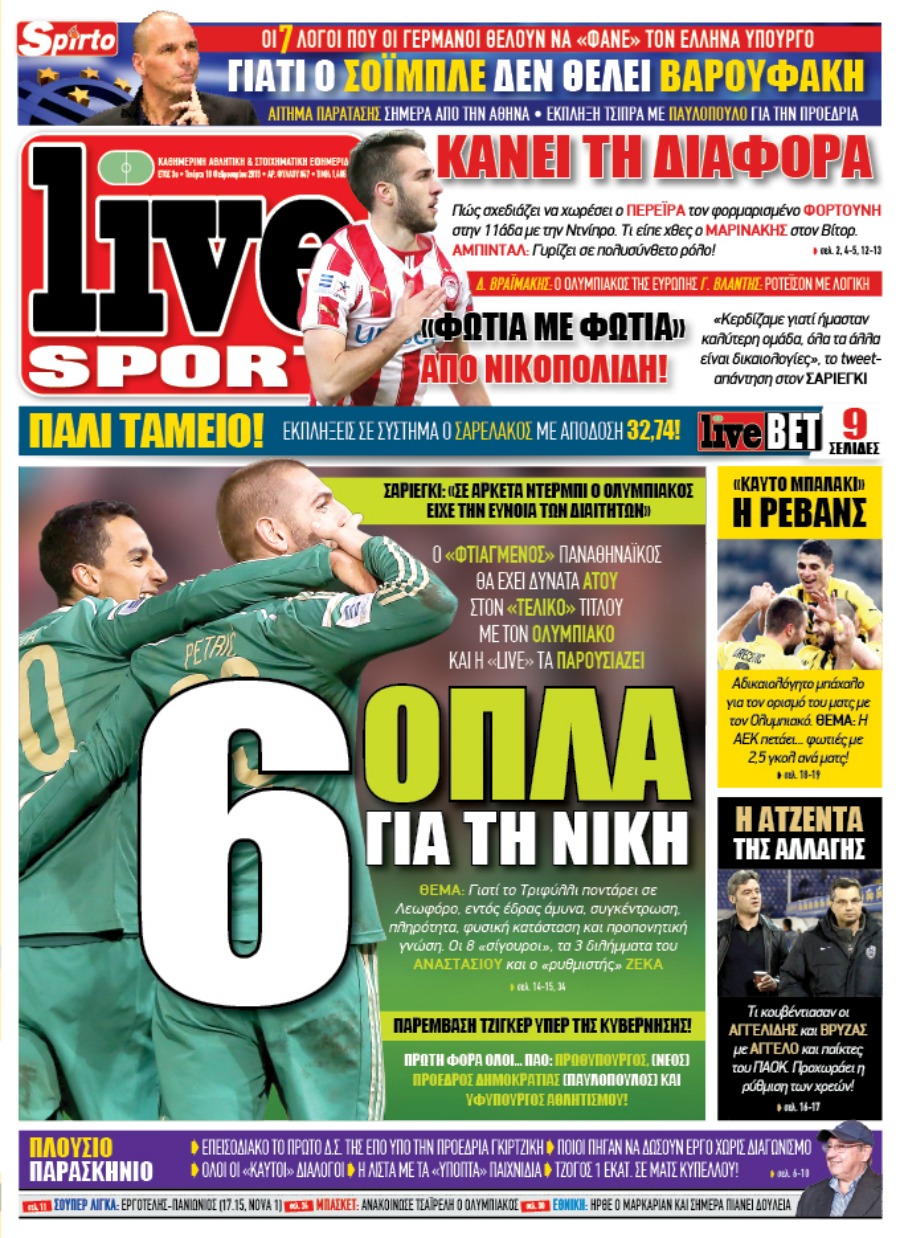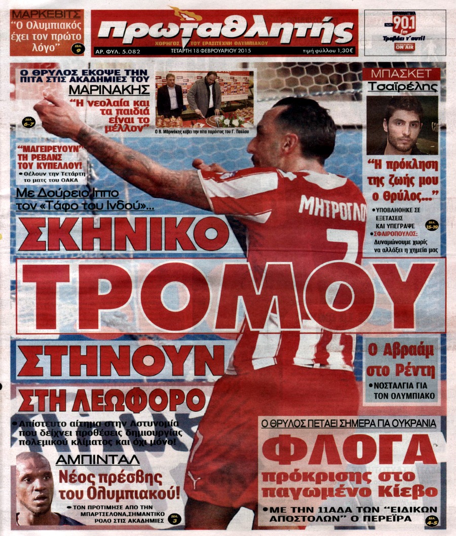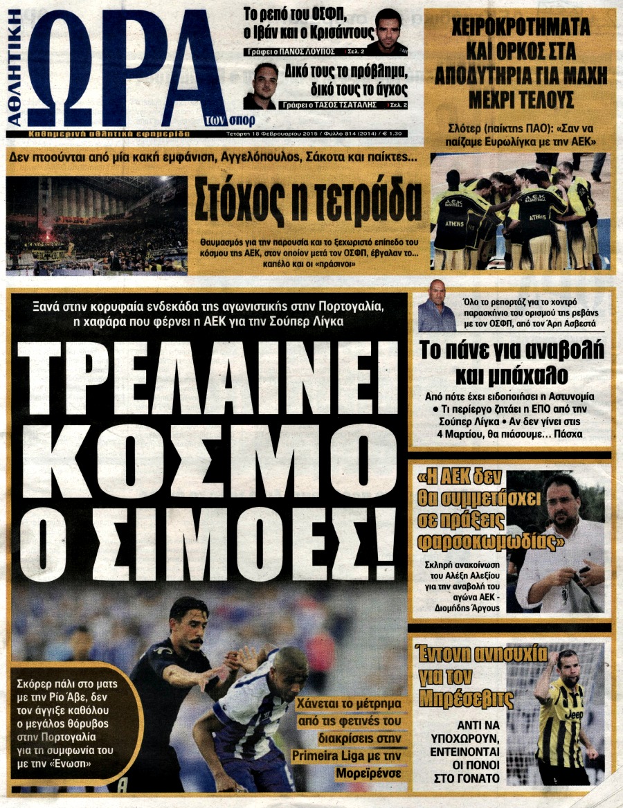 Οι αθλητικές εφημερίδες Enikos Newsroom 08:32, Τετάρτη 18 Φεβρουαρίου 2015 Media Διαβάστε τα πρωτοσέλιδα των αθλητικών εφημερίδων: ΑΘΛΗΤΙΚΕΣ ΕΦΗΜΕΡΙΔΕΣ ΕΦΗΜΕΡΙΔΕΣ ΠΡΩΤΟΣΕΛΙΔΑ Μοιράσου το: σχολίασε κι εσύ (0 σχόλια) Ακολουθήστε το enikos.gr στο Google News και μάθετε πρώτοι όλες τις ειδήσεις Δείτε όλες τις τελευταίες ειδήσεις από την Ελλάδα και τον Κόσμο στο enikos.gr Ειδήσεις Ροή Ειδήσεων 8 ώρες πριν Μητσοτάκης: Αναγκαία η μεταρρύθμιση του πρωτογενούς τομέα – Τα 6 νέα μέτρα για το στεγαστικό και οι αναφορές σε «Ιθάκη» και «πολιτικούς του καναπέ» 7 ώρες πριν Δάνεια σε ελβετικό φράγκο: Τα βασικά σημεία της ρύθμισης – ανάσας για 40.000 δανειολήπτες – Αναλυτικός οδηγός με ερωτήσεις και απαντήσεις 7 ώρες πριν Κυψέλη: Εξιτήριο πήρε η 14χρονη μαθήτρια που μαχαιρώθηκε από την 16χρονη σε σχολείο – «Θέλω να βοηθήσω το παιδί, έχει μπλέξει με κακές παρέες» 7 ώρες πριν Τραμπ: Γιατί κατέθεσε τώρα την αγωγή κατά του BBC – Πώς η κίνησή του εξυπηρετεί το νέο δόγμα του για «αντίσταση» στην Ευρώπη, υπέρ των συντηρητικών 8 ώρες πριν ΟΠΕΚΕΠΕ – Παράνομες επιδοτήσεις: Ελεύθεροι με περιοριστικούς όρους και οι 7 κατηγορούμενοι που απολογήθηκαν σήμερα 7 ώρες πριν Ανακαλύφθηκε βυθισμένη πέτρινη κατασκευή ανοιχτά της Κριμαίας – Αποτελεί μέρος αρχαίας ελληνικής αποικίας 8 ώρες πριν Ύπνος: Αυτό μπορεί να είναι το χειρότερο λάθος για το βιολογικό ρολόι σας, σύμφωνα με ειδικό 9 ώρες πριν Αριθμολογία: Οι άνθρωποι που έχουν γεννηθεί αυτές τις 3 ημερομηνίες, προσελκύουν μεγάλη τύχη πριν από το τέλος του 2025 11 ώρες πριν Οι 7 συμπεριφορές που μαρτυρούν ότι ένας άνδρας επενδύει μακροπρόθεσμα σε μια σχέση 2 λεπτά πριν Σαν σήμερα 17 Δεκεμβρίου: Τα σημαντικότερα γεγονότα της ημέρας 7 λεπτά πριν Οι οικονομικές εφημερίδες 17/12/2025 12 λεπτά πριν Οι αθλητικές εφημερίδες 17/12/2025 17 λεπτά πριν Οι πολιτικές εφημερίδες 17/12/2025 25 λεπτά πριν Τα ζώδια σήμερα, Τετάρτη 17 Δεκεμβρίου: Κριοί, η αυτοπεποίθησή σας ενισχύεται ENIKOS NETWORK Αίτημα ΙΣΑ για την εξαίρεση των προσωπικών γιατρών από τις κατ’ οίκον επισκέψεις Η σκανδιναβική μέθοδος στον ύπνο που μπορεί να σώσει έναν γάμο Πιερρακάκης: Ο προϋπολογισμός συμβάλλει ουσιαστικά στην ενίσχυση της αγοραστικής δύναμης της πλειονότητας των εργαζομένων e-ΕΦΚΑ: Παρατείνεται η προθεσμία για την υποβολή ΑΠΔ – Ποιους αφορά Σύγχρονος Νοστράδαμος: Προειδοποιεί για «μεγάλο γεγονός» τους επόμενους μήνες που θα συγκλονίσει τη Βρετανία και τον κόσμο Τεστ παρατηρητικότητας: Μπορείτε να βρείτε τις 3 διαφορές στις εικόνες με έναν πιγκουίνο σε 14 δευτερόλεπτα περισσότερα 05:48 , Τετάρτη 17 Δεκεμβρίου 2025 Οι οικονομικές εφημερίδες 17/12/2025 Διαβάστε τα πρωτοσέλιδα από τις οικονομικές εφημερίδες, σήμερα 17/12/2025. 05:43 , Τετάρτη 17 Δεκεμβρίου 2025 Οι αθλητικές εφημερίδες 17/12/2025 Διαβάστε τα πρωτοσέλιδα από τις αθλητικές εφημερίδες, σήμερα 17/12/2025. 05:38 , Τετάρτη 17 Δεκεμβρίου 2025 Οι πολιτικές εφημερίδες 17/12/2025 Διαβάστε τα πρωτοσέλιδα από τις πολιτικές εφημερίδες, σήμερα 17/12/2025. 20:06 , Τρίτη 16 Δεκεμβρίου 2025 Ο ΣΚΑΙ καταγγέλλει τον ΕΚΚΟΜΕΔ Επιστολή με την οποία καταγράφει την έντονη διαμαρτυρία του προς τον διευθύνοντα σύμβουλο του... ΤΕΛΕΥΤΑΙΕΣ ΕΙΔΗΣΕΙΣ 2 λεπτά πριν Σαν σήμερα 17 Δεκεμβρίου: Τα σημαντικότερα γεγονότα... 7 λεπτά πριν Οι οικονομικές εφημερίδες 17/12/2025 12 λεπτά πριν Οι αθλητικές εφημερίδες 17/12/2025 17 λεπτά πριν Οι πολιτικές εφημερίδες 17/12/2025 25 λεπτά πριν Τα ζώδια σήμερα, Τετάρτη 17 Δεκεμβρίου: Κριοί, η... 33 λεπτά πριν Εφημερεύοντ