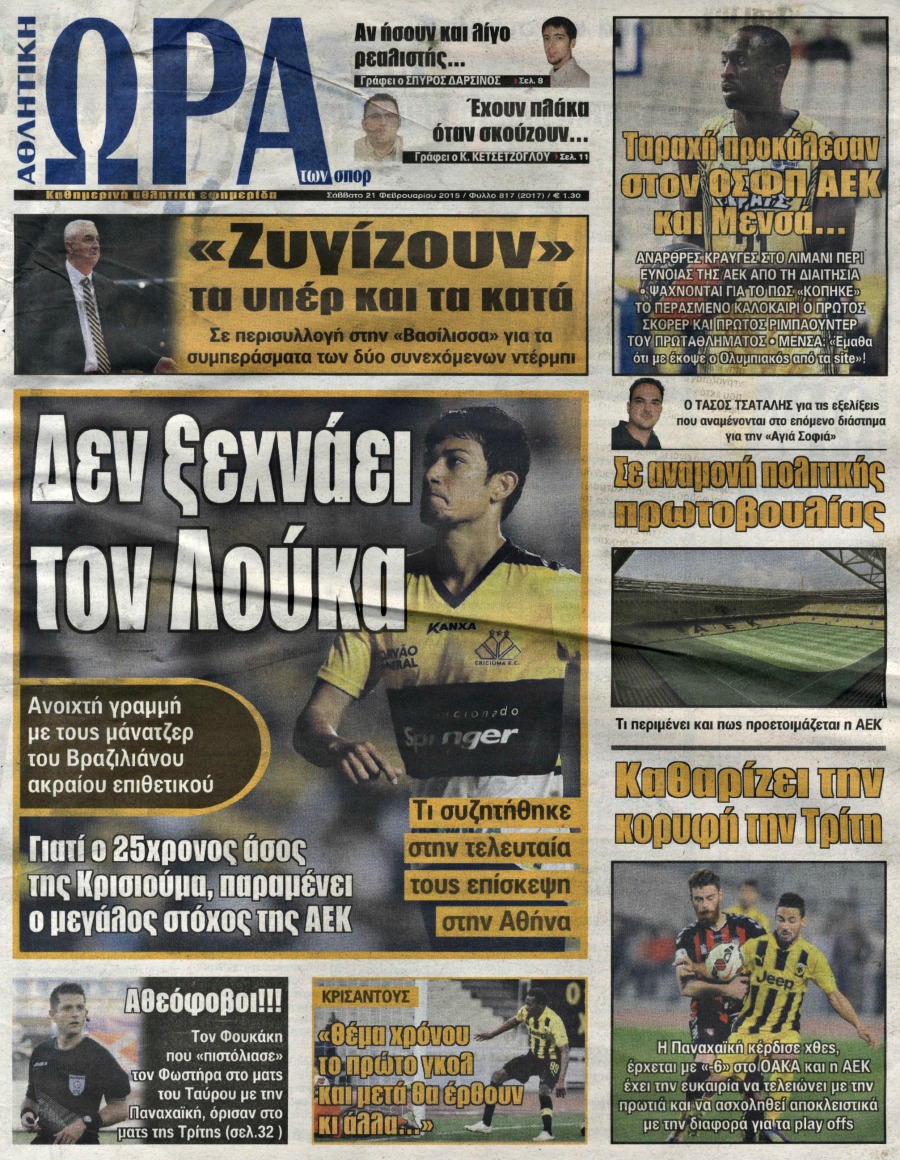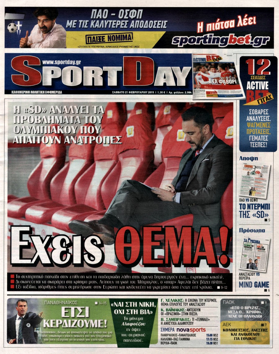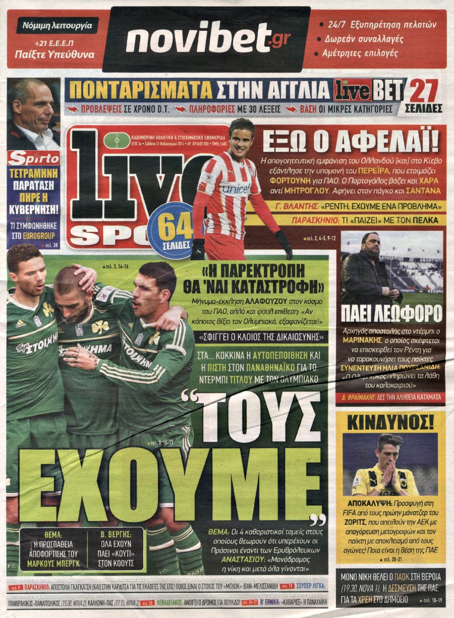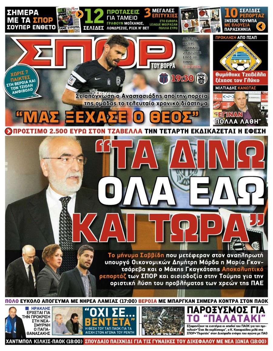 Οι αθλητικές εφημερίδες Enikos Newsroom 07:55, Σάββατο 21 Φεβρουαρίου 2015 Media Διαβάστε τα πρωτοσέλιδα των αθλητικών εφημερίδων: ΑΘΛΗΤΙΚΕΣ ΕΦΗΜΕΡΙΔΕΣ ΕΦΗΜΕΡΙΔΕΣ ΠΡΩΤΟΣΕΛΙΔΑ Μοιράσου το: σχολίασε κι εσύ (0 σχόλια) Ακολουθήστε το enikos.gr στο Google News και μάθετε πρώτοι όλες τις ειδήσεις Δείτε όλες τις τελευταίες ειδήσεις από την Ελλάδα και τον Κόσμο στο enikos.gr Ειδήσεις Ροή Ειδήσεων 8 ώρες πριν Μητσοτάκης: Αναγκαία η μεταρρύθμιση του πρωτογενούς τομέα – Τα 6 νέα μέτρα για το στεγαστικό και οι αναφορές σε «Ιθάκη» και «πολιτικούς του καναπέ» 7 ώρες πριν Δάνεια σε ελβετικό φράγκο: Τα βασικά σημεία της ρύθμισης – ανάσας για 40.000 δανειολήπτες – Αναλυτικός οδηγός με ερωτήσεις και απαντήσεις 7 ώρες πριν Κυψέλη: Εξιτήριο πήρε η 14χρονη μαθήτρια που μαχαιρώθηκε από την 16χρονη σε σχολείο – «Θέλω να βοηθήσω το παιδί, έχει μπλέξει με κακές παρέες» 7 ώρες πριν Τραμπ: Γιατί κατέθεσε τώρα την αγωγή κατά του BBC – Πώς η κίνησή του εξυπηρετεί το νέο δόγμα του για «αντίσταση» στην Ευρώπη, υπέρ των συντηρητικών 8 ώρες πριν ΟΠΕΚΕΠΕ – Παράνομες επιδοτήσεις: Ελεύθεροι με περιοριστικούς όρους και οι 7 κατηγορούμενοι που απολογήθηκαν σήμερα 7 ώρες πριν Ανακαλύφθηκε βυθισμένη πέτρινη κατασκευή ανοιχτά της Κριμαίας – Αποτελεί μέρος αρχαίας ελληνικής αποικίας 8 ώρες πριν Ύπνος: Αυτό μπορεί να είναι το χειρότερο λάθος για το βιολογικό ρολόι σας, σύμφωνα με ειδικό 9 ώρες πριν Αριθμολογία: Οι άνθρωποι που έχουν γεννηθεί αυτές τις 3 ημερομηνίες, προσελκύουν μεγάλη τύχη πριν από το τέλος του 2025 11 ώρες πριν Οι 7 συμπεριφορές που μαρτυρούν ότι ένας άνδρας επενδύει μακροπρόθεσμα σε μια σχέση 2 λεπτά πριν Οι πολιτικές εφημερίδες 17/12/2025 10 λεπτά πριν Τα ζώδια σήμερα, Τετάρτη 17 Δεκεμβρίου: Κριοί, η αυτοπεποίθησή σας ενισχύεται 18 λεπτά πριν Εφημερεύοντα φαρμακεία σε Αθήνα και Θεσσαλονίκη (17/12) 24 λεπτά πριν Κόστα Ρίκα: Το Κογκρέσο απέρριψε το αίτημα για άρση της ασυλίας του προέδρου Τσάβες 32 λεπτά πριν Κολομβία: Νεκροί τέσσερις αστυνομικοί σε βομβιστικές επιθέσεις ανταρτών ENIKOS NETWORK Αίτημα ΙΣΑ για την εξαίρεση των προσωπικών γιατρών από τις κατ’ οίκον επισκέψεις Η σκανδιναβική μέθοδος στον ύπνο που μπορεί να σώσει έναν γάμο Πιερρακάκης: Ο προϋπολογισμός συμβάλλει ουσιαστικά στην ενίσχυση της αγοραστικής δύναμης της πλειονότητας των εργαζομένων e-ΕΦΚΑ: Παρατείνεται η προθεσμία για την υποβολή ΑΠΔ – Ποιους αφορά Σύγχρονος Νοστράδαμος: Προειδοποιεί για «μεγάλο γεγονός» τους επόμενους μήνες που θα συγκλονίσει τη Βρετανία και τον κόσμο Τεστ παρατηρητικότητας: Μπορείτε να βρείτε τις 3 διαφορές στις εικόνες με έναν πιγκουίνο σε 14 δευτερόλεπτα περισσότερα 05:38 , Τετάρτη 17 Δεκεμβρίου 2025 Οι πολιτικές εφημερίδες 17/12/2025 Διαβάστε τα πρωτοσέλιδα από τις πολιτικές εφημερίδες, σήμερα 17/12/2025. 20:06 , Τρίτη 16 Δεκεμβρίου 2025 Ο ΣΚΑΙ καταγγέλλει τον ΕΚΚΟΜΕΔ Επιστολή με την οποία καταγράφει την έντονη διαμαρτυρία του προς τον διευθύνοντα σύμβουλο του... 17:40 , Τρίτη 16 Δεκεμβρίου 2025 Eurovision: Στις 4 Ιανουαρίου αποκαλύπτονται τα 28 τραγούδια του ελληνικού τελικού Η αγωνία τελειώνει, η γιορτή της Eurovision αρχίζει στην ΕΡΤ από τις πρώτες ημέρες της νέας χρ... 17:09 , Τρίτη 16 Δεκεμβρίου 2025 Alter Ego Media: Βαθύτατη θλίψη και ειλικρινή συλλυπητήρια για την απώλεια της Ειρήνης Μαρινάκη Τη βαθύτατη θλίψη και τα ειλικρινή συλλυπητήριά της εκφράζει η Alter Ego Media για τον θάνατο ... ΤΕΛΕΥΤΑΙΕΣ ΕΙΔΗΣΕΙΣ 2 λεπτά πριν Οι πολιτικές εφημερίδες 17/12/2025 10 λεπτά πριν Τ
