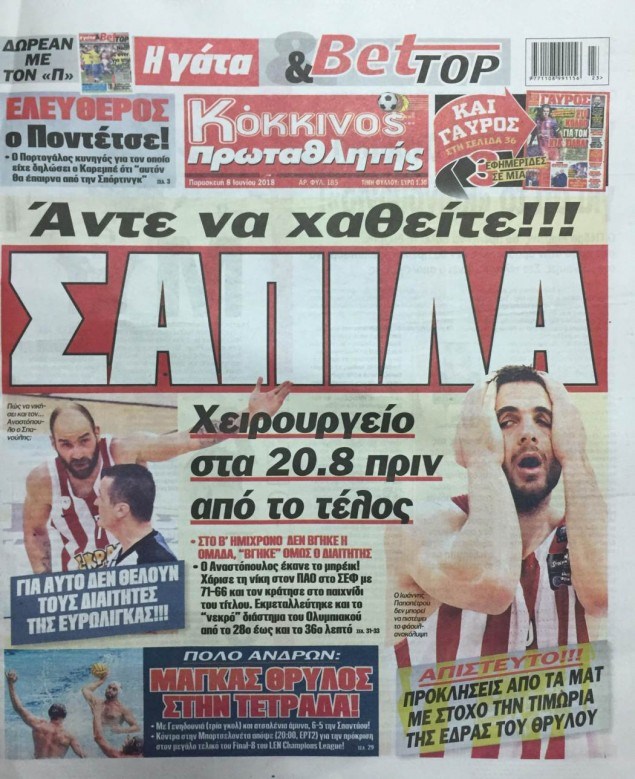 Οι αθλητικές εφημερίδες 8/6/2018 Enikos Newsroom 06:31, Παρασκευή 08 Ιουνίου 2018 Media Διαβάστε τα σημερινά πρωτοσέλιδα των αθλητικών εφημερίδων. ΑΘΛΗΤΙΚΕΣ ΕΦΗΜΕΡΙΔΕΣ ΕΦΗΜΕΡΙΔΕΣ ΠΡΩΤΟΣΕΛΙΔΑ Μοιράσου το: σχολίασε κι εσύ (0 σχόλια) Ακολουθήστε το enikos.gr στο Google News και μάθετε πρώτοι όλες τις ειδήσεις Δείτε όλες τις τελευταίες ειδήσεις από την Ελλάδα και τον Κόσμο στο enikos.gr Ειδήσεις Ροή Ειδήσεων 4 ώρες πριν Από το Ορμένιο ως τα Μάλγαρα κι από τη Σιάτιστα μέχρι τη Νίκαια: Μπλόκα σε όλη την Ελλάδα – Το Σάββατο ανοίγουν τα διόδια οι αγρότες 1 ώρα πριν Εμπλοκή και αερομαχίες με οπλισμένα τουρκικά F-16 στο Αιγαίο 3 ώρες πριν Αττική: Θρίλερ με νεκρό βρέφος 5 μηνών – Κοιμόταν στο ίδιο κρεβάτι με τους γονείς του 59 λεπτά πριν Πούτιν: «Ναι, είμαι ερωτευμένος» – Βίντεο από τη σπάνια προσωπική παραδοχή του 3 ώρες πριν Μεσόγειος: Η διαδρομή του ρωσικού τάνκερ «Qendil» και η στοχευμένη επίθεση της Ουκρανίας με drone – Ο Πούτιν προειδοποίησε για αντίποινα 5 ώρες πριν Τα 5 ζώδια που ευνοούνται στην ερωτική ζωή τους την επόμενη εβδομάδα – «Η ενέργεια του Αιγόκερου φέρνει αγάπη και σταθερότητα» 6 ώρες πριν Αυτό το έξυπνο μαθηματικό κόλπο θα μπορούσε να αλλάξει τον τρόπο με τον οποίο οι επιστήμονες μελετούν τους σεισμούς 2 ώρες πριν Μήπως έχετε χάσει τον εαυτό σας στη σχέση σας; 7 «αθόρυβες» υποχωρήσεις που μάλλον κάνατε, χωρίς να το συνειδητοποιήσετε 4 ώρες πριν Κουίζ για την παλιά Αθήνα: Αναγνωρίζετε την περιοχή; Έχετε περάσει 100% από εκεί 5 λεπτά πριν Μπαράκ Ομπάμα: Τα βιβλία, οι ταινίες και τα τραγούδια που ξεχώρισε το 2025 – Πλήρης λίστα 10 λεπτά πριν Don’t Forget The Lyrics: Η Έλλη Κοκκίνου υποδέχεται 4 παίκτες που θα κάνουν τα πάντα για να μη χάσουν ούτε… μισή λέξη από τους στίχους 16 λεπτά πριν Πλεύρης στον ΑΝΤ1: Η βασική πολιτική που ψηφίστηκε από τους υπουργούς Μετανάστευσης είναι η δημιουργία κέντρων κράτησης μεταναστών στην Αφρική – ΒΙΝΤΕΟ 21 λεπτά πριν Η εξομολόγηση της Νίκης Σερέτη: «Δεν κρύβω ότι ήταν πάρα πολύ δύσκολο όλο αυτό που βίωσα» 26 λεπτά πριν Αγρότες: Κλειστό ξανά το ρεύμα εισόδου στα Μάλγαρα – Άνοιξαν τον κόμβο της Χαλκηδόνας ENIKOS NETWORK Έχετε πραγματικά μεγάλη καρδιά; 10 χαρακτηριστικά όσων έχουν καλοσύνη «Η σούπερ» γρίπη εξαπλώνεται στην Ευρώπη-Στοιχεία από το ECDC για την αποτελεσματικότητα του εμβολίου Επίδομα παιδιού: Πότε ανοίγει ξανά η πλατφόρμα για τις αιτήσεις Προκήρυξη ΑΣΕΠ για 397 μόνιμες προσλήψεις στο Δημόσιο: Βγήκαν τα προσωρινά αποτελέσματα – Πότε αρχίζει η υποβολή ενστάσεων Χαρτογραφώντας το «σημείο χωρίς επιστροφή»: Για πρώτη φορά αποκαλύπτεται με λεπτομέρεια το ακανθώδες όριο της ατμόσφαιρας τ... Η Google καταργεί τη λειτουργία «dark web report» – Πώς θα μπορούν οι χρήστες να διαγράφουν τα δεδομένα τους περισσότερα 20:37 , Παρασκευή 19 Δεκεμβρίου 2025 Don’t Forget The Lyrics: Η Έλλη Κοκκίνου υποδέχεται 4 παίκτες που θα κάνουν τα πάντα για να μη χάσουν ούτε… μισή λέξη από τους στίχους Το «Don’t Forget The Lyrics» επιστρέφει απόψε, Παρασκευή 19 Δεκεμβρίου, στις 21:00 με νέο επει... 19:31 , Παρασκευή 19 Δεκεμβρίου 2025 GNTM: Απόψε ο μεγάλος τελικός για τους 4 φιναλίστ Έπειτα από μήνες γεμάτους μόδα, δημιουργία και έντονες αναμετρήσεις, το GNTM 2025 κορυφώνεται,... 18:11 , Παρασκευή 19 Δεκεμβρίου 2025 Το σόι σου: Ο Άρης έρχεται στην Ελλάδα για τις γιορτές των Χριστουγέννων – Τι θα δούμε στο αποψινό εορταστικό επεισόδιο Ένα απολαυστικό, εορταστικό επεισόδιο της σειράς “Το σόι σου”, γεμάτο ευτράπελα αλ... 15:15 , Παρασκευή 19 Δεκεμβρίου