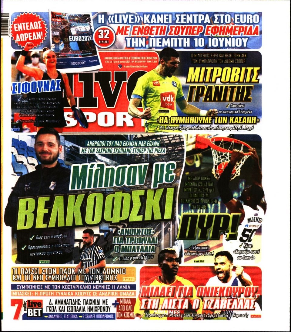 Οι αθλητικές εφημερίδες 8/6/2021 Διονύσης Νίκκας 06:31, Τρίτη 08 Ιουνίου 2021 Media Διαβάστε τα πρωτοσέλιδα των αθλητικών εφημερίδων…. ΑΘΛΗΤΙΚΕΣ ΕΦΗΜΕΡΙΔΕΣ Μοιράσου το: σχολίασε κι εσύ (0 σχόλια) Ακολουθήστε το enikos.gr στο Google News και μάθετε πρώτοι όλες τις ειδήσεις Δείτε όλες τις τελευταίες ειδήσεις από την Ελλάδα και τον Κόσμο στο enikos.gr Ειδήσεις Ροή Ειδήσεων 4 ώρες πριν Από το Ορμένιο ως τα Μάλγαρα κι από τη Σιάτιστα μέχρι τη Νίκαια: Μπλόκα σε όλη την Ελλάδα – Το Σάββατο ανοίγουν τα διόδια οι αγρότες 1 ώρα πριν Εμπλοκή και αερομαχίες με οπλισμένα τουρκικά F-16 στο Αιγαίο 3 ώρες πριν Αττική: Θρίλερ με νεκρό βρέφος 5 μηνών – Κοιμόταν στο ίδιο κρεβάτι με τους γονείς του 57 λεπτά πριν Πούτιν: «Ναι, είμαι ερωτευμένος» – Βίντεο από τη σπάνια προσωπική παραδοχή του 3 ώρες πριν Μεσόγειος: Η διαδρομή του ρωσικού τάνκερ «Qendil» και η στοχευμένη επίθεση της Ουκρανίας με drone – Ο Πούτιν προειδοποίησε για αντίποινα 5 ώρες πριν Τα 5 ζώδια που ευνοούνται στην ερωτική ζωή τους την επόμενη εβδομάδα – «Η ενέργεια του Αιγόκερου φέρνει αγάπη και σταθερότητα» 6 ώρες πριν Αυτό το έξυπνο μαθηματικό κόλπο θα μπορούσε να αλλάξει τον τρόπο με τον οποίο οι επιστήμονες μελετούν τους σεισμούς 2 ώρες πριν Μήπως έχετε χάσει τον εαυτό σας στη σχέση σας; 7 «αθόρυβες» υποχωρήσεις που μάλλον κάνατε, χωρίς να το συνειδητοποιήσετε 4 ώρες πριν Κουίζ για την παλιά Αθήνα: Αναγνωρίζετε την περιοχή; Έχετε περάσει 100% από εκεί 4 λεπτά πριν Μπαράκ Ομπάμα: Τα βιβλία, οι ταινίες και τα τραγούδια που ξεχώρισε το 2025 – Πλήρης λίστα 9 λεπτά πριν Don’t Forget The Lyrics: Η Έλλη Κοκκίνου υποδέχεται 4 παίκτες που θα κάνουν τα πάντα για να μη χάσουν ούτε… μισή λέξη από τους στίχους 15 λεπτά πριν Πλεύρης στον ΑΝΤ1: Η βασική πολιτική που ψηφίστηκε από τους υπουργούς Μετανάστευσης είναι η δημιουργία κέντρων κράτησης μεταναστών στην Αφρική – ΒΙΝΤΕΟ 19 λεπτά πριν Η εξομολόγηση της Νίκης Σερέτη: «Δεν κρύβω ότι ήταν πάρα πολύ δύσκολο όλο αυτό που βίωσα» 25 λεπτά πριν Αγρότες: Κλειστό ξανά το ρεύμα εισόδου στα Μάλγαρα – Άνοιξαν τον κόμβο της Χαλκηδόνας ENIKOS NETWORK Έχετε πραγματικά μεγάλη καρδιά; 10 χαρακτηριστικά όσων έχουν καλοσύνη «Η σούπερ» γρίπη εξαπλώνεται στην Ευρώπη-Στοιχεία από το ECDC για την αποτελεσματικότητα του εμβολίου Επίδομα παιδιού: Πότε ανοίγει ξανά η πλατφόρμα για τις αιτήσεις Προκήρυξη ΑΣΕΠ για 397 μόνιμες προσλήψεις στο Δημόσιο: Βγήκαν τα προσωρινά αποτελέσματα – Πότε αρχίζει η υποβολή ενστάσεων Χαρτογραφώντας το «σημείο χωρίς επιστροφή»: Για πρώτη φορά αποκαλύπτεται με λεπτομέρεια το ακανθώδες όριο της ατμόσφαιρας τ... Η Google καταργεί τη λειτουργία «dark web report» – Πώς θα μπορούν οι χρήστες να διαγράφουν τα δεδομένα τους περισσότερα 20:37 , Παρασκευή 19 Δεκεμβρίου 2025 Don’t Forget The Lyrics: Η Έλλη Κοκκίνου υποδέχεται 4 παίκτες που θα κάνουν τα πάντα για να μη χάσουν ούτε… μισή λέξη από τους στίχους Το «Don’t Forget The Lyrics» επιστρέφει απόψε, Παρασκευή 19 Δεκεμβρίου, στις 21:00 με νέο επει... 19:31 , Παρασκευή 19 Δεκεμβρίου 2025 GNTM: Απόψε ο μεγάλος τελικός για τους 4 φιναλίστ Έπειτα από μήνες γεμάτους μόδα, δημιουργία και έντονες αναμετρήσεις, το GNTM 2025 κορυφώνεται,... 18:11 , Παρασκευή 19 Δεκεμβρίου 2025 Το σόι σου: Ο Άρης έρχεται στην Ελλάδα για τις γιορτές των Χριστουγέννων – Τι θα δούμε στο αποψινό εορταστικό επεισόδιο Ένα απολαυστικό, εορταστικό επεισόδιο της σειράς “Το σόι σου”, γεμάτο ευτράπελα αλ... 15:15 , Παρασκευή 19 Δεκεμβρίου 2025 Την Κυριακή με τη Realnews: Ό,τ