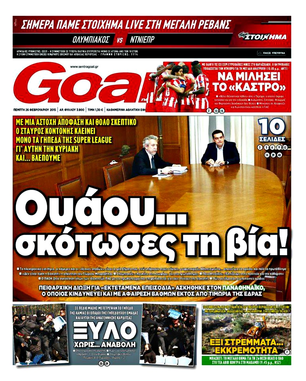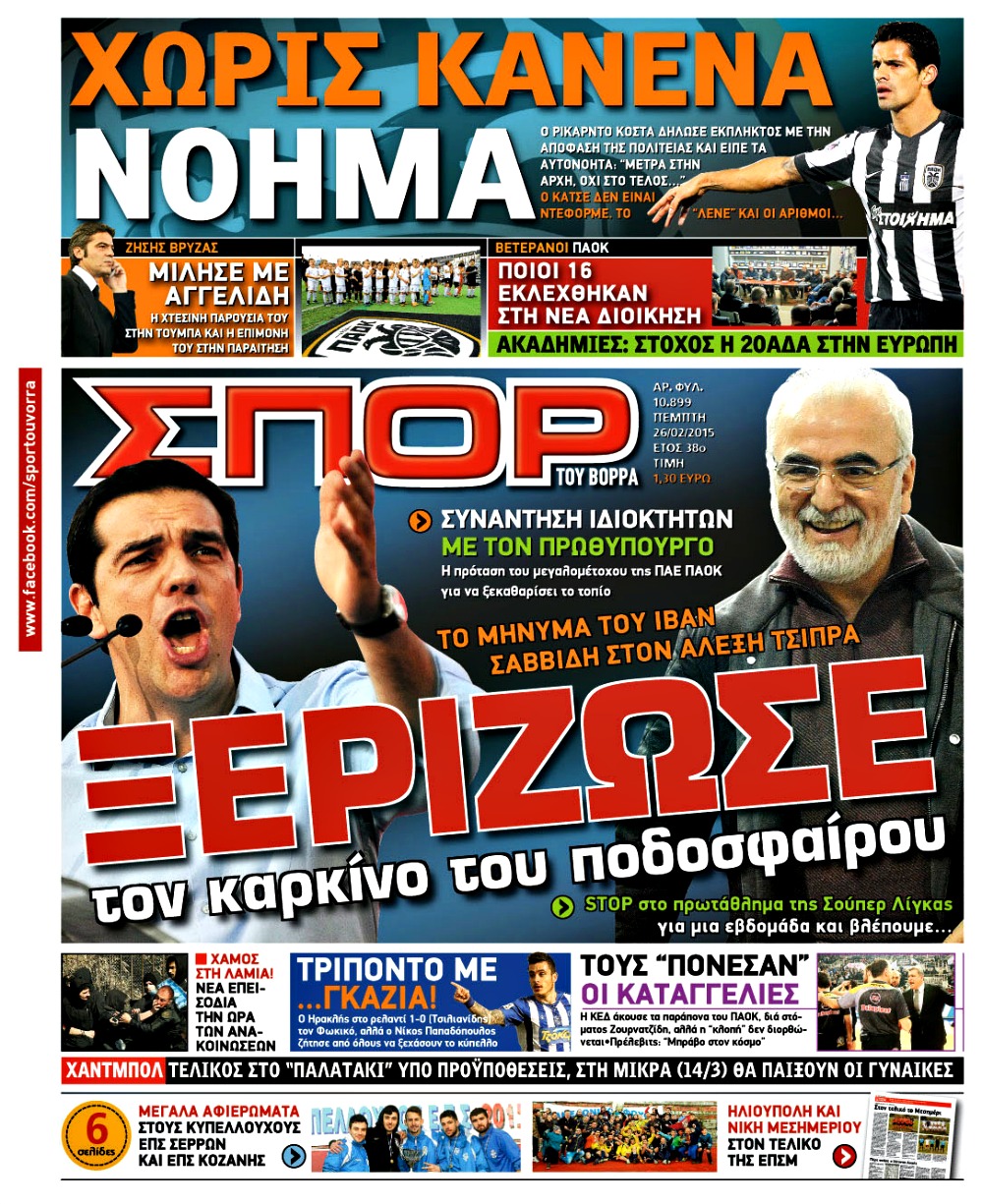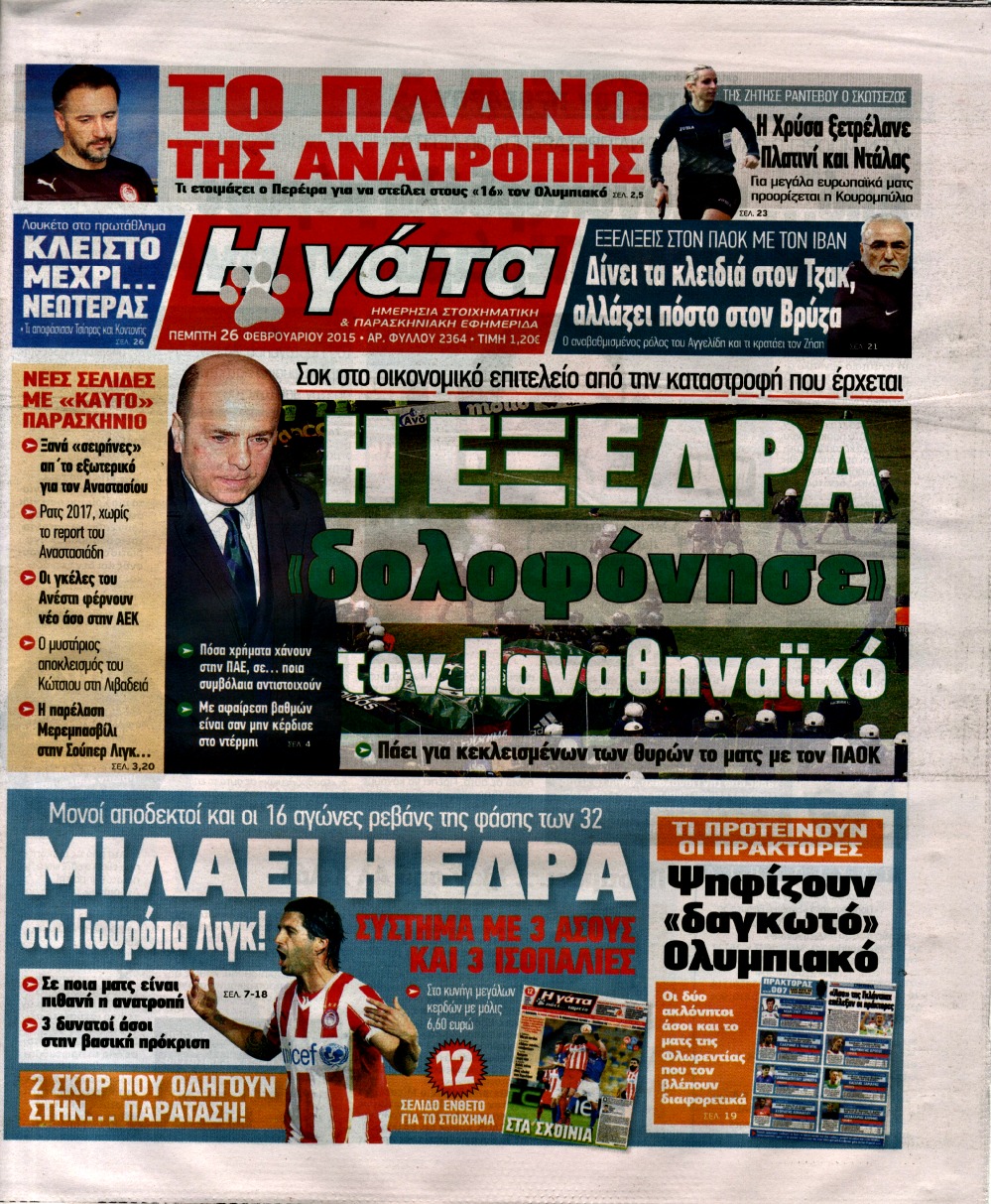Οι αθλητικές εφημερίδες Enikos Newsroom 07:58, Πέμπτη 26 Φεβρουαρίου 2015 Media Διαβάστε τα πρωτοσέλιδα των αθλητικών εφημερίδων: ΑΘΛΗΤΙΚΕΣ ΕΦΗΜΕΡΙΔΕΣ ΕΦΗΜΕΡΙΔΕΣ ΠΡΩΤΟΣΕΛΙΔΑ Μοιράσου το: σχολίασε κι εσύ (0 σχόλια) Ακολουθήστε το enikos.gr στο Google News και μάθετε πρώτοι όλες τις ειδήσεις Δείτε όλες τις τελευταίες ειδήσεις από την Ελλάδα και τον Κόσμο στο enikos.gr Ειδήσεις Ροή Ειδήσεων 8 λεπτά πριν Κλιμακώνουν από σήμερα τις κινητοποιήσεις οι αγρότες: Νέα μπλόκα, κλείσιμο παρακαμπτηρίων και άνοιγμα διοδίων – Το νέο μήνυμα Μητσοτάκη 34 λεπτά πριν Συντάξεις: Οι κερδισμένοι και οι χαμένοι από τις αυξήσεις – Αναλυτικός οδηγός και παραδείγματα 4 ώρες πριν Ευρωπαϊκή Ένωση: Συμφωνία για δάνειο 90 δισ. ευρώ στην Ουκρανία τη διετία 2026-2027 – Μητσοτάκης: Η λύση που προκρίθηκε είναι η ενδεδειγμένη 54 λεπτά πριν Θανατηφόρο τροχαίο στη Νέα Φιλαδέλφεια: Νεκρός 27χρονος οδηγός μηχανής ύστερα από σύγκρουση με τρόλεϊ 8 ώρες πριν ΟΠΕΚΕΠΕ: Προφυλακιστέος ο φερόμενος αρχηγός και ο λογιστής της εγκληματικής οργάνωσης 2 ώρες πριν Οπτική ψευδαίσθηση: Μόνο αν έχεις αετίσια ματιά θα βρεις τον παπαγάλο σε 12 δευτερόλεπτα 2 ώρες πριν Κρύα χέρια και πόδια: Γιατρός εξηγεί ποια είναι η αίτια και πότε πρέπει να ανησυχήσετε 2 ώρες πριν Τα ζώδια σήμερα, Παρασκευή 19 Δεκεμβρίου: Τοξότες, με τη Νέα Σελήνη έρχεται η προσωπική ανανέωσή σας 2 ημέρες πριν 20 χρόνια τα Χριστούγεννα ξεκινούν στα Public με μεγάλη ποικιλία σε δώρα! 5 λεπτά πριν Την Κυριακή με τη Realnews: Δωροεπιταγή 10€ 33 δευτερόλεπτα πριν Πανεπιστήμιο Μπράουν: Νεκρός ο ύποπτος για την επίθεση 6 λεπτά πριν Τέμπη: Συνεχίζεται σήμερα η δίκη για τη διαχείριση του βιντεοληπτικού υλικού 8 λεπτά πριν Κλιμακώνουν από σήμερα τις κινητοποιήσεις οι αγρότες: Νέα μπλόκα, κλείσιμο παρακαμπτηρίων και άνοιγμα διοδίων – Το νέο μήνυμα Μητσοτάκη 15 λεπτά πριν e-ΕΦΚΑ και ΔΥΠΑ: Τελευταία ημέρα πληρωμών σήμερα ENIKOS NETWORK Άνοια: Ειδικοί προειδοποιούν για 5 κοινές συνήθειες που μπορεί να αυξήσουν τον κίνδυνο 6 Χριστουγεννιάτικα δώρα για όσους τα έχουν όλα – Θα τους εκπλήξουν Συντάξεις: Οι κερδισμένοι και οι χαμένοι από τις αυξήσεις – Αναλυτικός οδηγός Στεγαστικό: Τι λέει η ΠΟΜΙΔΑ για τα νέα μέτρα που ανακοίνωσε ο Κυριάκος Μητσοτάκης Χαρτογραφώντας το «σημείο χωρίς επιστροφή»: Για πρώτη φορά αποκαλύπτεται με λεπτομέρεια το ακανθώδες όριο της ατμόσφαιρας τ... Η Google καταργεί τη λειτουργία «dark web report» – Πώς θα μπορούν οι χρήστες να διαγράφουν τα δεδομένα τους περισσότερα 05:48 , Παρασκευή 19 Δεκεμβρίου 2025 Οι οικονομικές εφημερίδες 19/12/2025 Διαβάστε τα πρωτοσέλιδα από τις οικονομικές εφημερίδες, σήμερα 19/12/2025. 05:43 , Παρασκευή 19 Δεκεμβρίου 2025 Οι αθλητικές εφημερίδες 19/12/2025 Διαβάστε τα πρωτοσέλιδα από τις αθλητικές εφημερίδες, σήμερα 19/12/2025. 05:38 , Παρασκευή 19 Δεκεμβρίου 2025 Οι πολιτικές εφημερίδες 19/12/2025 Διαβάστε τα πρωτοσέλιδα από τις πολιτικές εφημερίδες, σήμερα 19/12/2025. 02:50 , Παρασκευή 19 Δεκεμβρίου 2025 GNTM: «Κλείδωσαν» οι τέσσερις φιναλίστ – Μεγάλη ανατροπή στις τελευταίες αποχωρήσεις Για προτελευταία φορά εμφανίστηκαν στο πλατό του GNTM οι φιναλίστ του φετινού κύκλου, το βράδυ... ΤΕΛΕΥΤΑΙΕΣ ΕΙΔΗΣΕΙΣ 6 λεπτά πριν Τέμπη: Συνεχίζεται σήμερα η δίκη για τη διαχείριση του... 8 λεπτά πριν Κλιμακώνουν από σήμερα τις κινητοποιήσεις οι αγρότες:... 15 λεπτά πριν e-ΕΦΚΑ και ΔΥΠΑ: Τελευταία ημέρα πληρωμών σήμερα 23 λεπτά πριν Καιρός: Ηλιοφάνεια σήμερα – Έρχονται κρύο, βροχές... 30 λεπτά πριν Ελλάδα – Γαλλία προς υπ
