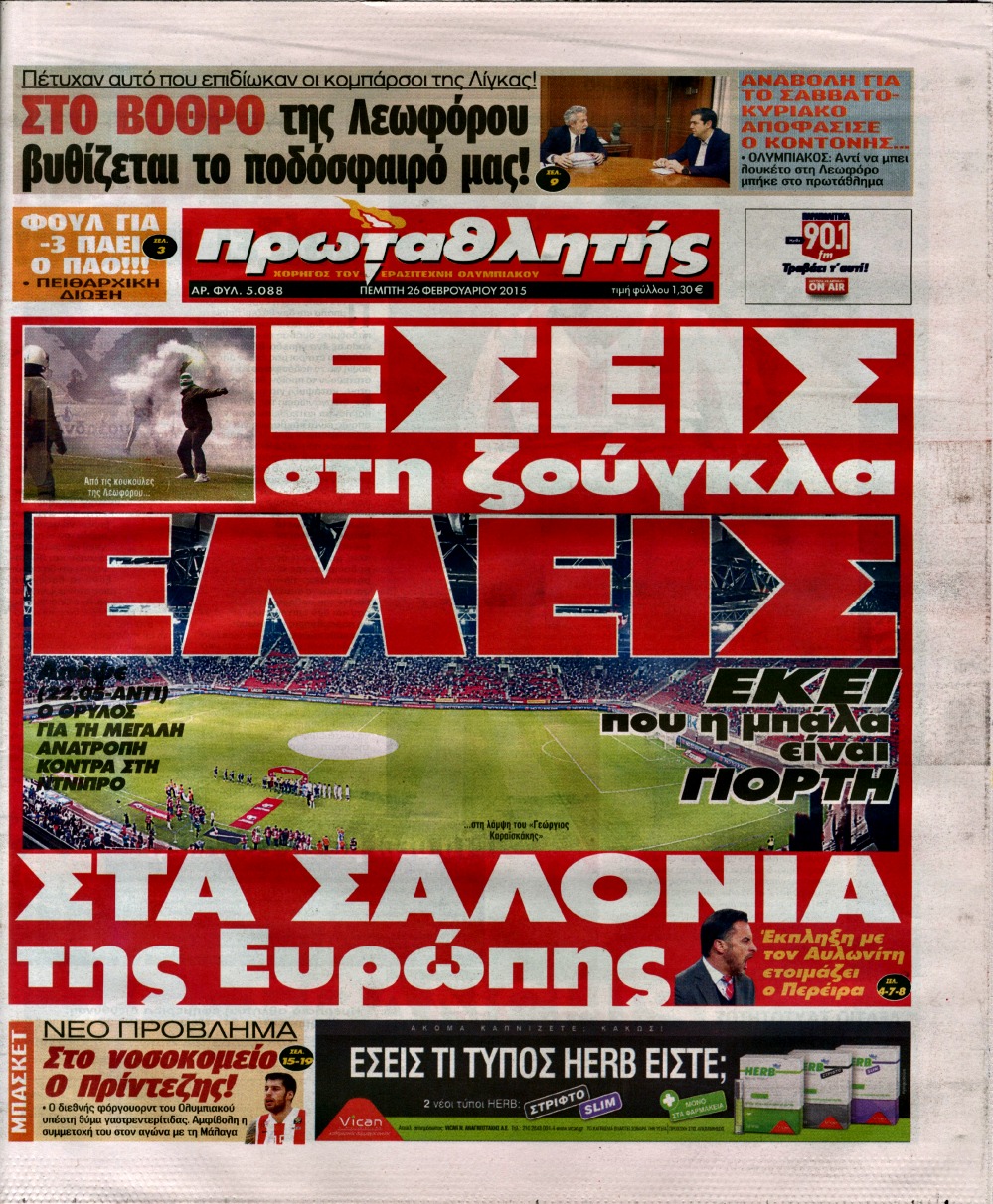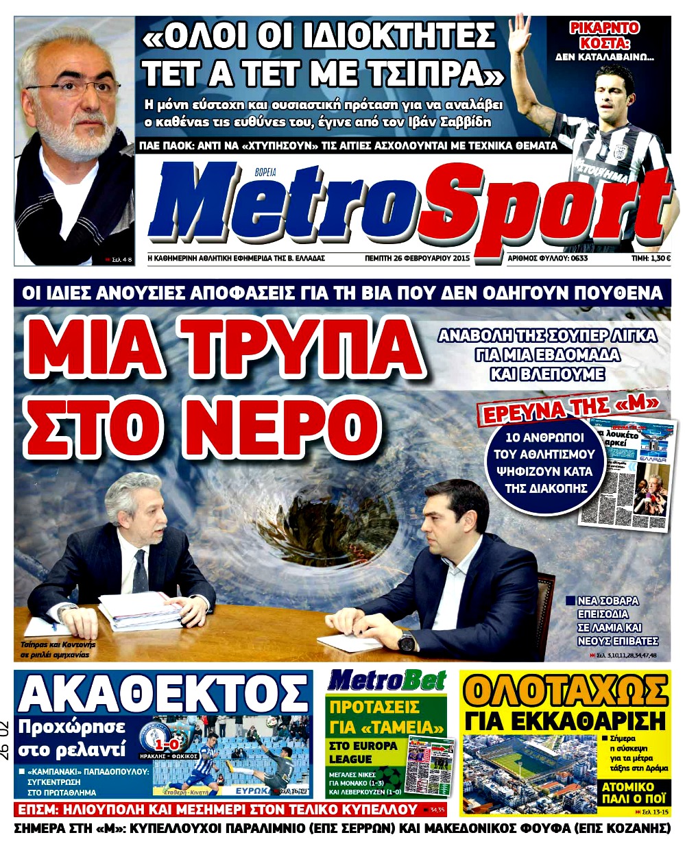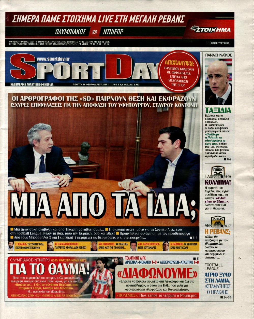 Οι αθλητικές εφημερίδες Enikos Newsroom 07:58, Πέμπτη 26 Φεβρουαρίου 2015 Media Διαβάστε τα πρωτοσέλιδα των αθλητικών εφημερίδων: ΑΘΛΗΤΙΚΕΣ ΕΦΗΜΕΡΙΔΕΣ ΕΦΗΜΕΡΙΔΕΣ ΠΡΩΤΟΣΕΛΙΔΑ Μοιράσου το: σχολίασε κι εσύ (0 σχόλια) Ακολουθήστε το enikos.gr στο Google News και μάθετε πρώτοι όλες τις ειδήσεις Δείτε όλες τις τελευταίες ειδήσεις από την Ελλάδα και τον Κόσμο στο enikos.gr Ειδήσεις Ροή Ειδήσεων 8 λεπτά πριν Κλιμακώνουν από σήμερα τις κινητοποιήσεις οι αγρότες: Νέα μπλόκα, κλείσιμο παρακαμπτηρίων και άνοιγμα διοδίων – Το νέο μήνυμα Μητσοτάκη 34 λεπτά πριν Συντάξεις: Οι κερδισμένοι και οι χαμένοι από τις αυξήσεις – Αναλυτικός οδηγός και παραδείγματα 4 ώρες πριν Ευρωπαϊκή Ένωση: Συμφωνία για δάνειο 90 δισ. ευρώ στην Ουκρανία τη διετία 2026-2027 – Μητσοτάκης: Η λύση που προκρίθηκε είναι η ενδεδειγμένη 54 λεπτά πριν Θανατηφόρο τροχαίο στη Νέα Φιλαδέλφεια: Νεκρός 27χρονος οδηγός μηχανής ύστερα από σύγκρουση με τρόλεϊ 8 ώρες πριν ΟΠΕΚΕΠΕ: Προφυλακιστέος ο φερόμενος αρχηγός και ο λογιστής της εγκληματικής οργάνωσης 2 ώρες πριν Οπτική ψευδαίσθηση: Μόνο αν έχεις αετίσια ματιά θα βρεις τον παπαγάλο σε 12 δευτερόλεπτα 2 ώρες πριν Κρύα χέρια και πόδια: Γιατρός εξηγεί ποια είναι η αίτια και πότε πρέπει να ανησυχήσετε 2 ώρες πριν Τα ζώδια σήμερα, Παρασκευή 19 Δεκεμβρίου: Τοξότες, με τη Νέα Σελήνη έρχεται η προσωπική ανανέωσή σας 2 ημέρες πριν 20 χρόνια τα Χριστούγεννα ξεκινούν στα Public με μεγάλη ποικιλία σε δώρα! 5 λεπτά πριν Την Κυριακή με τη Realnews: Δωροεπιταγή 10€ 33 δευτερόλεπτα πριν Πανεπιστήμιο Μπράουν: Νεκρός ο ύποπτος για την επίθεση 6 λεπτά πριν Τέμπη: Συνεχίζεται σήμερα η δίκη για τη διαχείριση του βιντεοληπτικού υλικού 8 λεπτά πριν Κλιμακώνουν από σήμερα τις κινητοποιήσεις οι αγρότες: Νέα μπλόκα, κλείσιμο παρακαμπτηρίων και άνοιγμα διοδίων – Το νέο μήνυμα Μητσοτάκη 15 λεπτά πριν e-ΕΦΚΑ και ΔΥΠΑ: Τελευταία ημέρα πληρωμών σήμερα ENIKOS NETWORK Άνοια: Ειδικοί προειδοποιούν για 5 κοινές συνήθειες που μπορεί να αυξήσουν τον κίνδυνο 6 Χριστουγεννιάτικα δώρα για όσους τα έχουν όλα – Θα τους εκπλήξουν Συντάξεις: Οι κερδισμένοι και οι χαμένοι από τις αυξήσεις – Αναλυτικός οδηγός Στεγαστικό: Τι λέει η ΠΟΜΙΔΑ για τα νέα μέτρα που ανακοίνωσε ο Κυριάκος Μητσοτάκης Χαρτογραφώντας το «σημείο χωρίς επιστροφή»: Για πρώτη φορά αποκαλύπτεται με λεπτομέρεια το ακανθώδες όριο της ατμόσφαιρας τ... Η Google καταργεί τη λειτουργία «dark web report» – Πώς θα μπορούν οι χρήστες να διαγράφουν τα δεδομένα τους περισσότερα 05:48 , Παρασκευή 19 Δεκεμβρίου 2025 Οι οικονομικές εφημερίδες 19/12/2025 Διαβάστε τα πρωτοσέλιδα από τις οικονομικές εφημερίδες, σήμερα 19/12/2025. 05:43 , Παρασκευή 19 Δεκεμβρίου 2025 Οι αθλητικές εφημερίδες 19/12/2025 Διαβάστε τα πρωτοσέλιδα από τις αθλητικές εφημερίδες, σήμερα 19/12/2025. 05:38 , Παρασκευή 19 Δεκεμβρίου 2025 Οι πολιτικές εφημερίδες 19/12/2025 Διαβάστε τα πρωτοσέλιδα από τις πολιτικές εφημερίδες, σήμερα 19/12/2025. 02:50 , Παρασκευή 19 Δεκεμβρίου 2025 GNTM: «Κλείδωσαν» οι τέσσερις φιναλίστ – Μεγάλη ανατροπή στις τελευταίες αποχωρήσεις Για προτελευταία φορά εμφανίστηκαν στο πλατό του GNTM οι φιναλίστ του φετινού κύκλου, το βράδυ... ΤΕΛΕΥΤΑΙΕΣ ΕΙΔΗΣΕΙΣ 6 λεπτά πριν Τέμπη: Συνεχίζεται σήμερα η δίκη για τη διαχείριση του... 8 λεπτά πριν Κλιμακώνουν από σήμερα τις κινητοποιήσεις οι αγρότες:... 15 λεπτά πριν e-ΕΦΚΑ και ΔΥΠΑ: Τελευταία ημέρα πληρωμών σήμερα 23 λεπτά πριν Καιρός: Ηλιοφάνεια σήμερα – Έρχονται κρύο, βροχές... 30 λεπτά πριν Ελλάδα – Γαλλία προς υπ