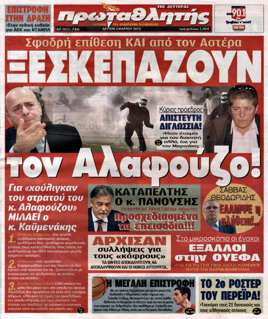 Οι αθλητικές εφημερίδες Enikos Newsroom 07:43, Δευτέρα 02 Μαρτίου 2015 Media Διαβάστε τα πρωτοσέλιδα των αθλητικών εφημερίδων:\ ΑΘΛΗΤΙΚΕΣ ΕΦΗΜΕΡΙΔΕΣ ΕΦΗΜΕΡΙΔΕΣ ΠΡΩΤΟΣΕΛΙΔΑ Μοιράσου το: σχολίασε κι εσύ (0 σχόλια) Ακολουθήστε το enikos.gr στο Google News και μάθετε πρώτοι όλες τις ειδήσεις Δείτε όλες τις τελευταίες ειδήσεις από την Ελλάδα και τον Κόσμο στο enikos.gr Ειδήσεις Ροή Ειδήσεων 2 ώρες πριν Αυξάνουν την πίεση προς την κυβέρνηση οι αγρότες: Κλείνουν παρακαμπτήριους και ανοίγουν διόδια – Τι θα γίνει τις γιορτές 43 λεπτά πριν ΟΠΕΚΕΠΕ: Προφυλακιστέος ο φερόμενος αρχηγός και ο λογιστής της εγκληματικής οργάνωσης 2 ώρες πριν Φοινικούντα: Το Σάββατο απολογείται ο 30χρονος γιος γνωστού επιχειρηματία της Πλάκας που παραδόθηκε – Όσα είπε στους αστυνομικούς και ο ρόλος του στο έγκλημα 1 ώρα πριν Μπορεί ο Μαδούρο να αντέξει τον αποκλεισμό του Τραμπ; Τι θα χρειαστεί η Ουάσινγκτον για να τον ανατρέψει 3 ώρες πριν Πρίγκιπας Ουίλιαμ – Κέιτ: Η νέα οικογενειακή φωτογραφία για τις Χριστουγεννιάτικες κάρτες του 2025 2 ώρες πριν Ύπνος: Η απλή βραδινή ρουτίνα για να προστατεύσετε τα μαλλιά σας από το κρύο κατά τη διάρκεια του χειμώνα 3 ώρες πριν Manifesting: Πώς να συναντήσετε τον σύντροφο της ζωής σας, ανάλογα με τον μήνα γέννησής σας 2 ημέρες πριν 20 χρόνια τα Χριστούγεννα ξεκινούν στα Public με μεγάλη ποικιλία σε δώρα! 1 ώρα πριν Αρχαιολόγοι ανακάλυψαν ρωμαϊκά τεχνουργήματα από μια πόλη που δεν υπήρξε ποτέ – Τα τρία εντυπωσιακά κτίρια και ο αμφορέας με τις… σαρδέλες 23 λεπτά πριν ΑΕΚ – Κραϊόβα 3-2: Επική ανατροπή και πρόκριση στους «16» του Conference League η Ένωση 43 λεπτά πριν ΟΠΕΚΕΠΕ: Προφυλακιστέος ο φερόμενος αρχηγός και ο λογιστής της εγκληματικής οργάνωσης 53 λεπτά πριν Αθηνά Μαξίμου: Η τρυφερή ανάρτηση για τα γενέθλια του Αιμίλιου Χειλάκη – «Είναι η εκλεκτική συγγένειά μου, η επιλογή και η ευθύνη μου» 1 ώρα πριν Παναθηναϊκός – Χάποελ Τελ Αβίβ 93-82: Με… φόρα από την Κωνσταντινούπολη 1 ώρα πριν Μπορεί ο Μαδούρο να αντέξει τον αποκλεισμό του Τραμπ; Τι θα χρειαστεί η Ουάσινγκτον για να τον ανατρέψει ENIKOS NETWORK Σε περίοδο αυξημένης δραστηριότητας η γρίπη στην Ελλάδα-Μέτρα προστασίας από τον ΕΟΔΥ Σκέφτεστε συνέχεια συζητήσεις που έχετε κάνει; Τι σημαίνει αυτό, σύμφωνα με ειδικό Στεγαστικό: Τι λέει η ΠΟΜΙΔΑ για τα νέα μέτρα που ανακοίνωσε ο Κυριάκος Μητσοτάκης Λαγκάρντ: Αισιόδοξη για την ανάπτυξη της Ευρωζώνης, αβέβαιη για τον πληθωρισμό Χαρτογραφώντας το «σημείο χωρίς επιστροφή»: Για πρώτη φορά αποκαλύπτεται με λεπτομέρεια το ακανθώδες όριο της ατμόσφαιρας τ... Η Google καταργεί τη λειτουργία «dark web report» – Πώς θα μπορούν οι χρήστες να διαγράφουν τα δεδομένα τους περισσότερα 17:45 , Πέμπτη 18 Δεκεμβρίου 2025 ROUK ZOUK: Εορταστικό επεισόδιο με καλεσμένους τους πρωταγωνιστές του «Γιατί ρε πατέρα» Το Σάββατο 20 Δεκεμβρίου στις 21:00, η Ζέτα Μακρυπούλια υποδέχεται εκλεκτούς ηθοποιούς που όλο... 17:20 , Πέμπτη 18 Δεκεμβρίου 2025 Άγιος έρωτας: Η Χριστίνα εξομολογείται στον πατέρα Νικόλαο, απόψε στις 21:00 στον Alpha Η Νότα αποφασίζει να εκδικηθεί τον Πέτρο και τον Στέφανο, για χάρη του Λούη, όμως τα πράγματα ... 16:50 , Πέμπτη 18 Δεκεμβρίου 2025 Να μ’ αγαπάς: Ζωή και Φωτεινή συμφιλιώνονται ως μάνα με κόρη, απόψε στις 20:00 Η ταυτότητα του Άγγελου αποκαλύπτεται στο νέο επεισόδιο της σειράς “Να μ’ αγαπάς... 15:52 , Πέμπτη 18 Δεκεμβρίου 2025 Το Σπίτι Δίπλα Στο Ποτάμι: Το καθηλωτικό τελευταίο επεισόδιο για το 2025 απόψε στις 22:30 Καθηλώνει το σημερινό επεισόδ