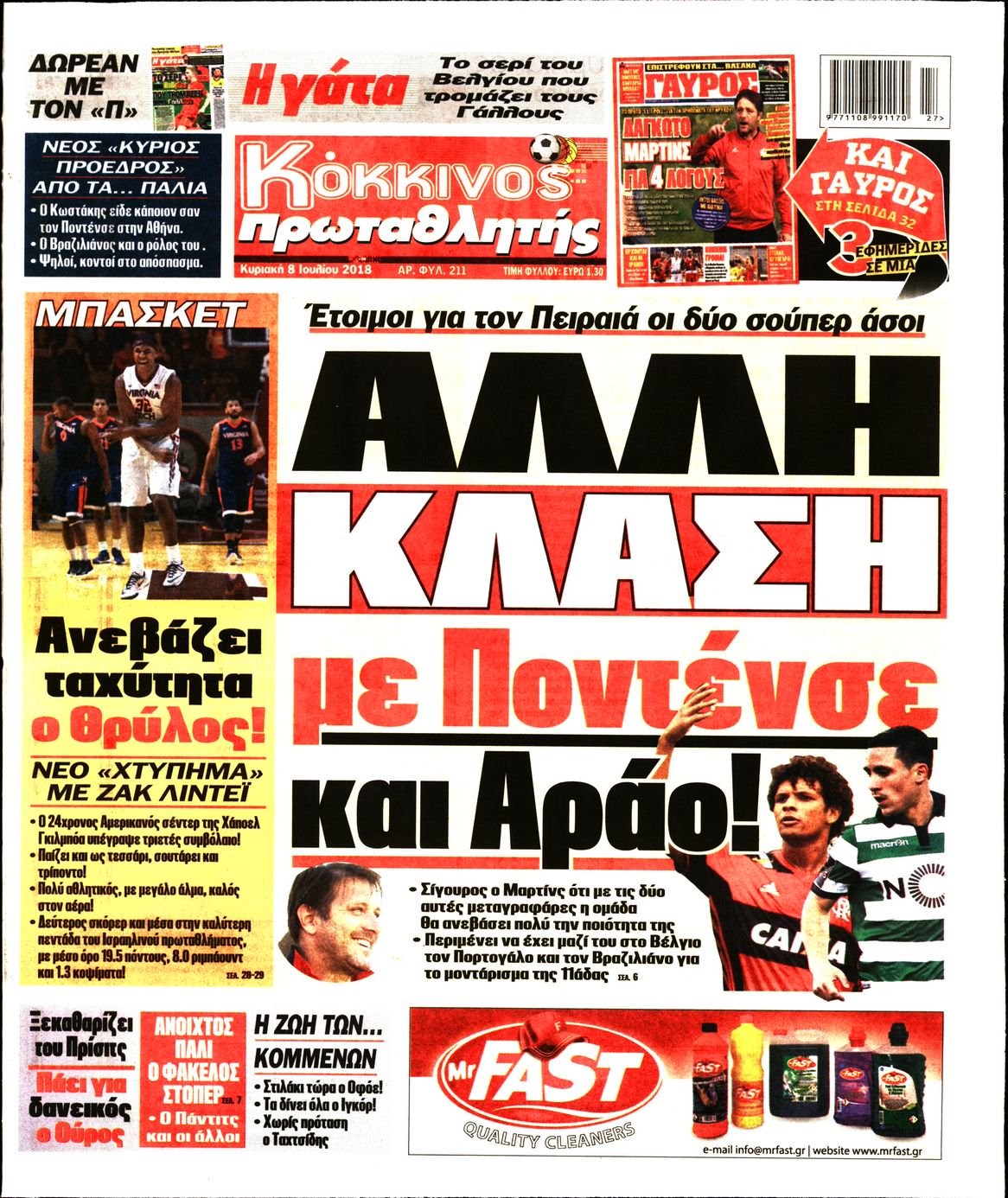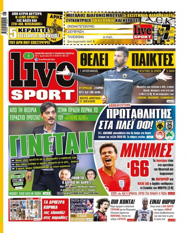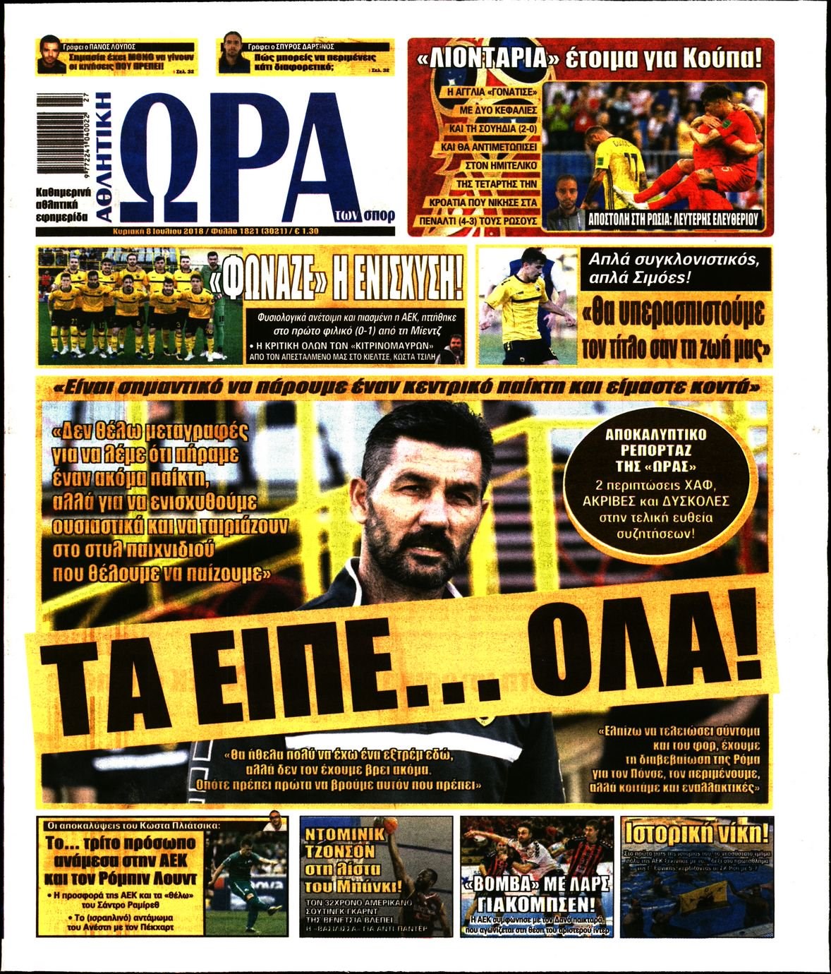 Οι αθλητικές εφημερίδες 8/7/18 Enikos Newsroom 06:42, Κυριακή 08 Ιουλίου 2018 Media Διαβάστε τα σημερινά πρωτοσέλιδα των αθλητικών εφημερίδων. ΑΘΛΗΤΙΚΕΣ ΕΦΗΜΕΡΙΔΕΣ ΠΡΩΤΟΣΕΛΙΔΑ Μοιράσου το: σχολίασε κι εσύ (0 σχόλια) Ακολουθήστε το enikos.gr στο Google News και μάθετε πρώτοι όλες τις ειδήσεις Δείτε όλες τις τελευταίες ειδήσεις από την Ελλάδα και τον Κόσμο στο enikos.gr Ειδήσεις Ροή Ειδήσεων 5 ώρες πριν Χριστούγεννα στα μπλόκα: Επιμένουν στις κινητοποιήσεις τους οι αγρότες – Ανοίγουν τα διόδια το Σαββατοκύριακο 6 ώρες πριν Ουκρανία: Η άνευ προηγουμένου επίθεση σε ρωσικό τάνκερ στη Μεσόγειο και το μήνυμα προς στον Πούτιν – Το «μακρύ χέρι» του Κιέβου 5 ώρες πριν Πούτιν: Τα μηνύματα σε Ευρώπη και ΝΑΤΟ από το μαραθώνιο «σόου» του – Η απαίτηση για «σεβασμό» και η ειρήνη «με τους όρους» της Μόσχας 6 ώρες πριν Τραμπ: Δεν αποκλείει την πιθανότητα ενός πολέμου στη Βενεζουέλα – «Ο Μαδούρο ξέρει καλύτερα από τον καθένα τι ακριβώς θέλω» 6 ώρες πριν Συνεχίζει να προκαλεί ο Μίτσκοσκι: «Για μένα το όνομα Μακεδονία είναι ιερό» 5 ώρες πριν Ανακαλύφθηκαν αρχαία χρυσά νομίσματα 2.200 ετών που απεικονίζουν τον θεό Απόλλωνα – Η άγνωστη σύνδεση με τον Φίλιππο Β΄ της Μακεδονίας 6 ώρες πριν Ύπνος: Μια κρυφή κατάσταση του εγκεφάλου πριν από τον ύπνο μπορεί να είναι το “κλειδί” για υψηλή ευφυΐα και δημιουργικότητα 7 ώρες πριν Αριθμολογία: Οι άνθρωποι που έχουν γεννηθεί αυτές τις 4 ημερομηνίες, συχνά παρεξηγούνται – «Η καλοσύνη τους κρύβει τεράστια δύναμη» 8 ώρες πριν Ξεχάστε το καθάρισμα το Σαββατοκύριακο: Ο «κανόνας των 20 λεπτών» που θα σας λύσει τα χέρια 2 λεπτά πριν Φως στο Τούνελ: Έφτασε η ώρα της αλήθειας για την δολοφονία της χήρας του πρώην υπουργού στο Κολωνάκι 18 λεπτά πριν Ντόναλντ Τραμπ: Προστέθηκε το όνομά του στην πρόσοψη του Κέντρου Κένεντι – Οργισμένη αντίδραση των συγγενών του JFK 32 λεπτά πριν Ταμίλα Κουλίεβα: «Δεν θέλω να είμαι κάποια που πορεύεται συνεχώς με τις ίδιες αναφορές» 47 λεπτά πριν Η Ελλάδα προσχωρεί στη Διεθνή Επιτροπή Αποζημιώσεων για την Ουκρανία 1 ώρα πριν GNTM: Η Ξένια Τσίρκοβα αναδείχθηκε μεγάλη νικήτρια και πήρε τις 50.000 ευρώ – Ποιος βρέθηκε σε απόσταση αναπνοής; ENIKOS NETWORK Το ΕΚΑΒ τιμήθηκε από την Ακαδημία Αθηνών για τα 40 χρόνια προσφοράς του Έχετε πραγματικά μεγάλη καρδιά; 10 χαρακτηριστικά όσων έχουν καλοσύνη Αναστολή μέτρων αναγκαστικής εκτέλεσης για κτηνοτρόφους που πλήττονται από την ευλογιά των αιγοπροβάτων Πλήρης επάρκεια προϊόντων στις λαϊκές της Αττικής, παρά τις αγροτικές κινητοποιήσεις – Τι απαντούν οι πωλητές Χαρτογραφώντας το «σημείο χωρίς επιστροφή»: Για πρώτη φορά αποκαλύπτεται με λεπτομέρεια το ακανθώδες όριο της ατμόσφαιρας τ... Η Google καταργεί τη λειτουργία «dark web report» – Πώς θα μπορούν οι χρήστες να διαγράφουν τα δεδομένα τους περισσότερα 02:50 , Σάββατο 20 Δεκεμβρίου 2025 GNTM: Η Ξένια Τσίρκοβα αναδείχθηκε μεγάλη νικήτρια και πήρε τις 50.000 ευρώ – Ποιος βρέθηκε σε απόσταση αναπνοής; Με φαντασμαγορικό τρόπο ολοκληρώθηκε το βράδυ της Παρασκευής ο μεγάλος τελικός του GNTM, μέσα ... 22:42 , Παρασκευή 19 Δεκεμβρίου 2025 Γιώργος Γιαννόπουλος για “Το σόι σου”: “Είναι ευτυχία και ευλογία αυτή η σειρά” «Είναι ευτυχία και ευλογία η συγκυρία αυτής της σειράς», θα πει ο Γιώργος Γιαννόπουλος -ο αγαπ... 20:37 , Παρασκευή 19 Δεκεμβρίου 2025 Don’t Forget The Lyrics: Η Έλλη Κοκκίνου υποδέχεται 4 παίκτες που θα κάνουν τα πάντα για να μη χάσουν ούτε… μισή λέξη από τους στίχους Το «Don’t Forget The Lyrics» επι