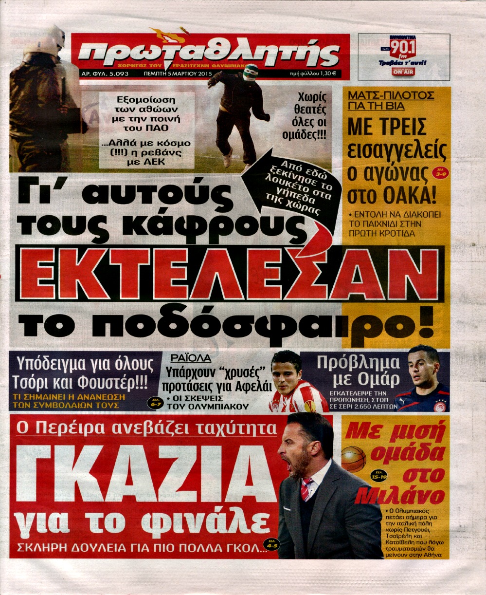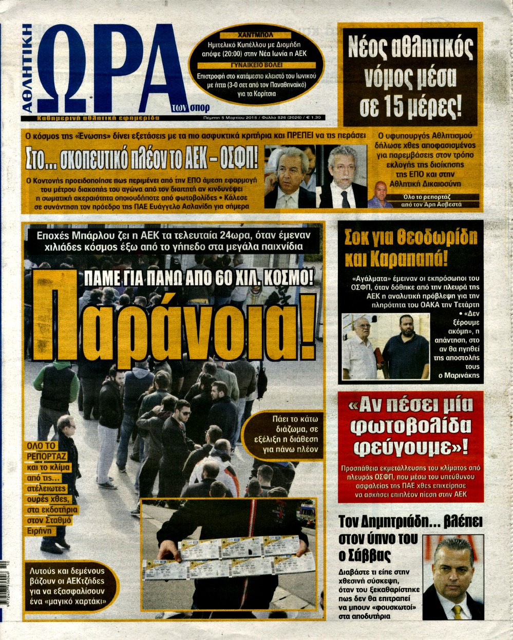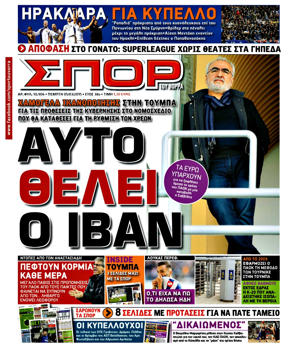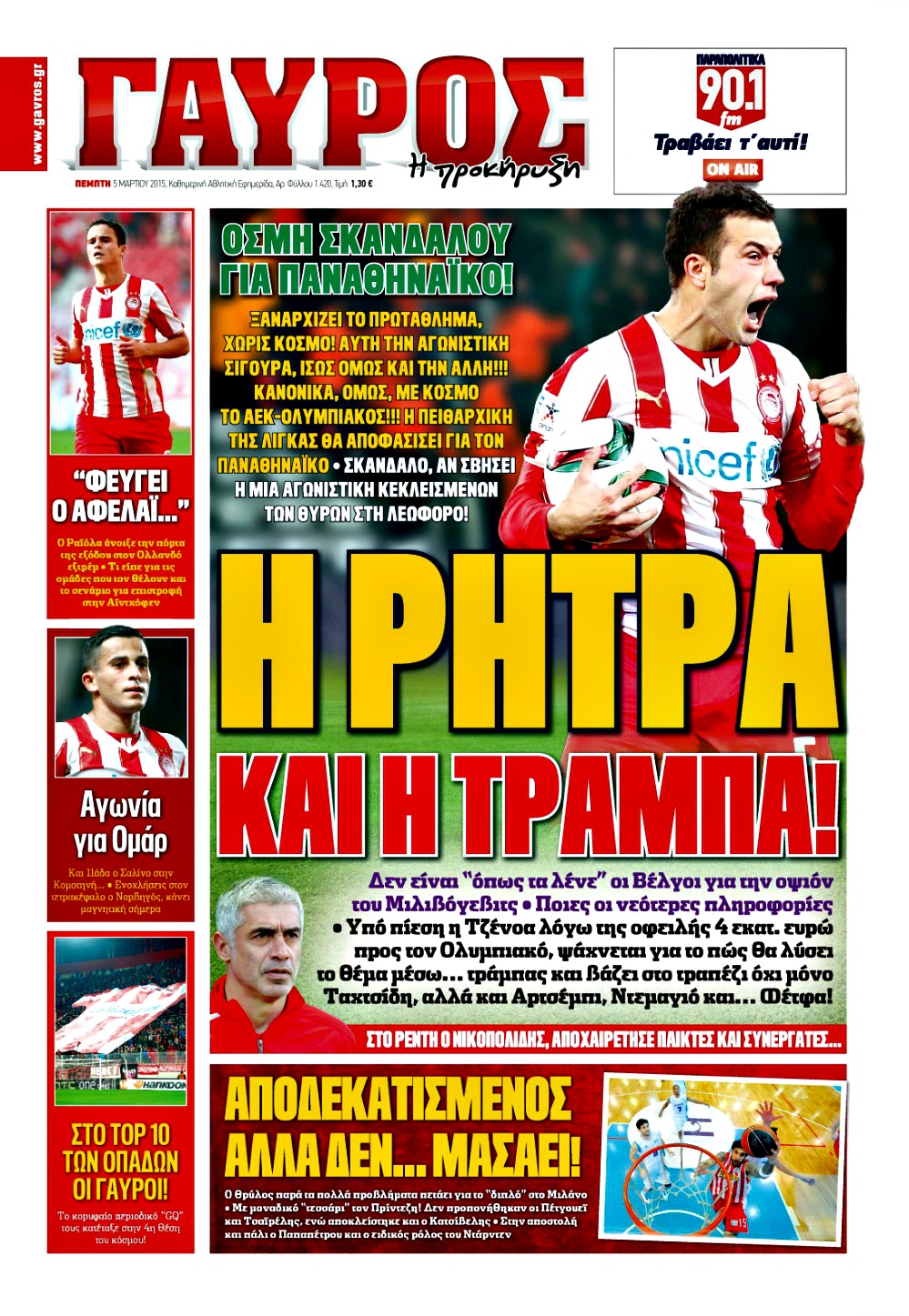 Οι αθλητικές εφημερίδες Enikos Newsroom 07:49, Πέμπτη 05 Μαρτίου 2015 Media Διαβάστε τα πρωτοσέλιδα των αθλητικών εφημερίδων: ΕΦΗΜΕΡΙΔΕΣ ΠΡΩΤΟΣΕΛΙΔΑ Μοιράσου το: σχολίασε κι εσύ (0 σχόλια) Ακολουθήστε το enikos.gr στο Google News και μάθετε πρώτοι όλες τις ειδήσεις Δείτε όλες τις τελευταίες ειδήσεις από την Ελλάδα και τον Κόσμο στο enikos.gr Ειδήσεις Ροή Ειδήσεων 2 ώρες πριν Η Ουκρανία χτύπησε τάνκερ του σκιώδους στόλου της Ρωσίας στη Μεσόγειο – Έπλεε νότια της Κρήτης 4 ώρες πριν Πούτιν: Η Ουκρανία δεν είναι έτοιμη για ειρηνευτικές συνομιλίες – Ο ρωσικός στρατός προελαύνει σε όλα τα μέτωπα 47 λεπτά πριν Θεσσαλονίκη: Στη φυλακή ο 44χρονος που κατηγορείται ότι προσπάθησε να πνίξει με κορδόνι την 34χρονη σύντροφό του 1 ώρα πριν Εξώδικο επιχειρηματία στον Γιώργο Μαζωνάκη – Τι απαντά στις καταγγελίες του τραγουδιστή 2 ώρες πριν Βουλή: Υπερψηφίστηκε το νομοσχέδιο για την ένταξη του ΟΠΕΚΕΠΕ στην ΑΑΔΕ 6 ώρες πριν Αλλαγή σελίδας για 3 ζώδια – «Μία δύσκολη περίοδος φτάνει στο τέλος της» 2 ημέρες πριν 20 χρόνια τα Χριστούγεννα ξεκινούν στα Public με μεγάλη ποικιλία σε δώρα! 5 ώρες πριν Γεμάτος νεροχύτης; 5 σοβαρές ευθύνες που «φοβίζουν» όσους αφήνουν άπλυτα πιάτα 4 ώρες πριν Ειδικός μοιράζεται 6 κόλπα για να διατηρείστε σε φόρμα με πάνω από 40 ώρες εργασίας την εβδομάδα: «Προπονηθείτε πριν από τη δουλειά, όχι μετά» 2 λεπτά πριν Ηράκλειο: Νεκρός ένας 65χρονος μοτοσικλετιστής έπειτα από σφοδρή σύγκρουση οχημάτων – ΦΩΤΟ 10 λεπτά πριν Πούτιν: Σαρκαστικά μηνύματα, παράπονα και απρόοπτα στη συνέντευξη Τύπου – Η πρόταση γάμου on air και οι ερωτήσεις για τα αγγούρια και τους… εξωγήινους 17 λεπτά πριν Κρήτη: Ένοχος ο 54χρονος «ερευνητής» για απάτη στην υπόθεση του 33χρονου γιατρού που αγνοείται 17 λεπτά πριν Νίκος Κούρκουλος: Αυτός ο αλύγιστος και ασυμβίβαστος «Αστραπόγιαννος» 23 λεπτά πριν Παναθηναϊκός: Θα προτείνει στη Λάτσιο 4 εκατ. ευρώ και συνιδιοκτησία για τον Μανδά ENIKOS NETWORK Τάξη στις ιατρικές διαφημίσεις για την προστασία των πολιτών βάζει ο ΙΣΑ Μακροζωία: Τι παίζει πιο σημαντικό ρόλο ακόμα και από την διατροφή και την άσκηση, σύμφωνα με μελέτη Βουλή: Υπερψηφίστηκε το νομοσχέδιο για τη μετάβαση του ΟΠΕΚΕΠΕ στην ΑΑΔΕ ΕΥΔΑΠ: Οδηγός για τις αλλαγές στα τιμολόγια του νερού – 17 ερωτήσεις και απαντήσεις Χαρτογραφώντας το «σημείο χωρίς επιστροφή»: Για πρώτη φορά αποκαλύπτεται με λεπτομέρεια το ακανθώδες όριο της ατμόσφαιρας τ... Η Google καταργεί τη λειτουργία «dark web report» – Πώς θα μπορούν οι χρήστες να διαγράφουν τα δεδομένα τους περισσότερα 15:15 , Παρασκευή 19 Δεκεμβρίου 2025 Την Κυριακή με τη Realnews: Ό,τι και αν αγοράσεις, σκανάρεις και κερδίζεις! Την Κυριακή με τη Realnews: Ό,τι και αν αγοράσεις, σκανάρεις και κερδίζεις! Με το PADU app, το... 08:00 , Παρασκευή 19 Δεκεμβρίου 2025 Την Κυριακή με τη Realnews: Δωροεπιταγή 10€ Δωροεπιταγή αξίας 10€ για αγορές άνω των 60€ από τα πολυκαταστήματα FactoryOutlet H προσφορά ι... 05:48 , Παρασκευή 19 Δεκεμβρίου 2025 Οι οικονομικές εφημερίδες 19/12/2025 Διαβάστε τα πρωτοσέλιδα από τις οικονομικές εφημερίδες, σήμερα 19/12/2025. 05:43 , Παρασκευή 19 Δεκεμβρίου 2025 Οι αθλητικές εφημερίδες 19/12/2025 Διαβάστε τα πρωτοσέλιδα από τις αθλητικές εφημερίδες, σήμερα 19/12/2025. ΤΕΛΕΥΤΑΙΕΣ ΕΙΔΗΣΕΙΣ 2 λεπτά πριν Ηράκλειο: Νεκρός ένας 65χρονος μοτοσικλετιστής έπειτα... 10 λεπτά πριν Πούτιν: Σαρκαστικά μηνύματα, παράπονα και απρόοπτα... 17 λεπτά πριν Κρήτη: Ένοχος ο 54χρονος «ερευνητής» για απάτη στην... 17 λεπτά πριν Νίκος Κούρκουλος: Αυτός ο αλύγισ