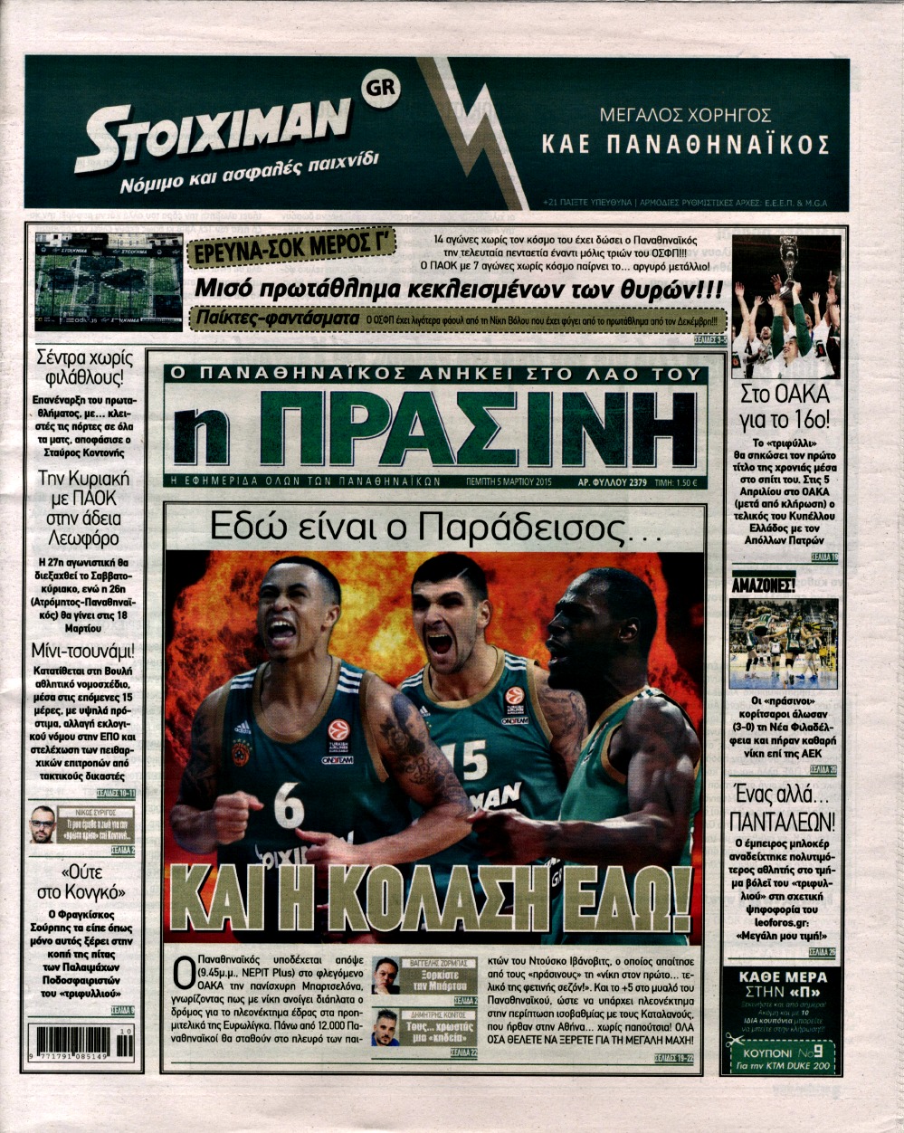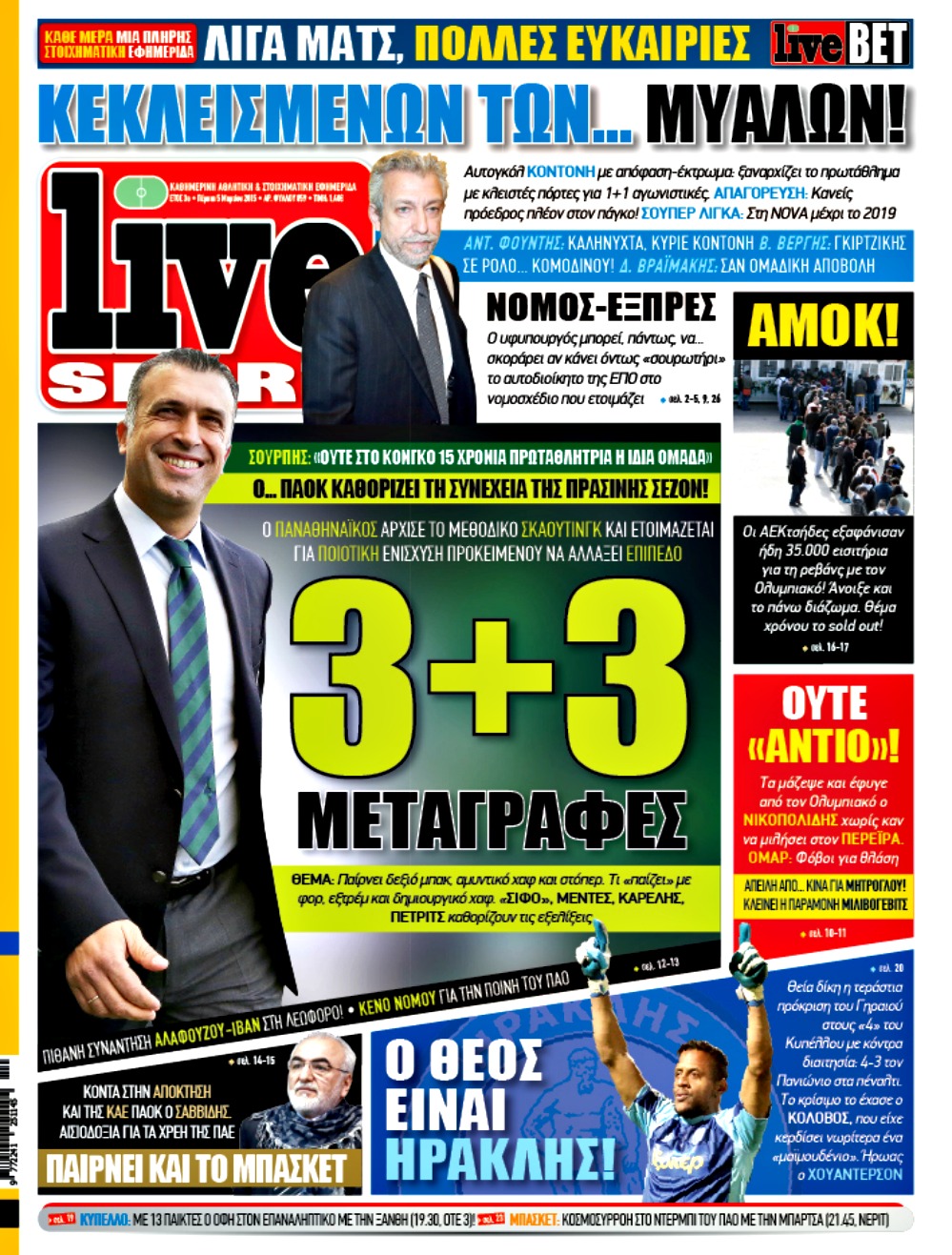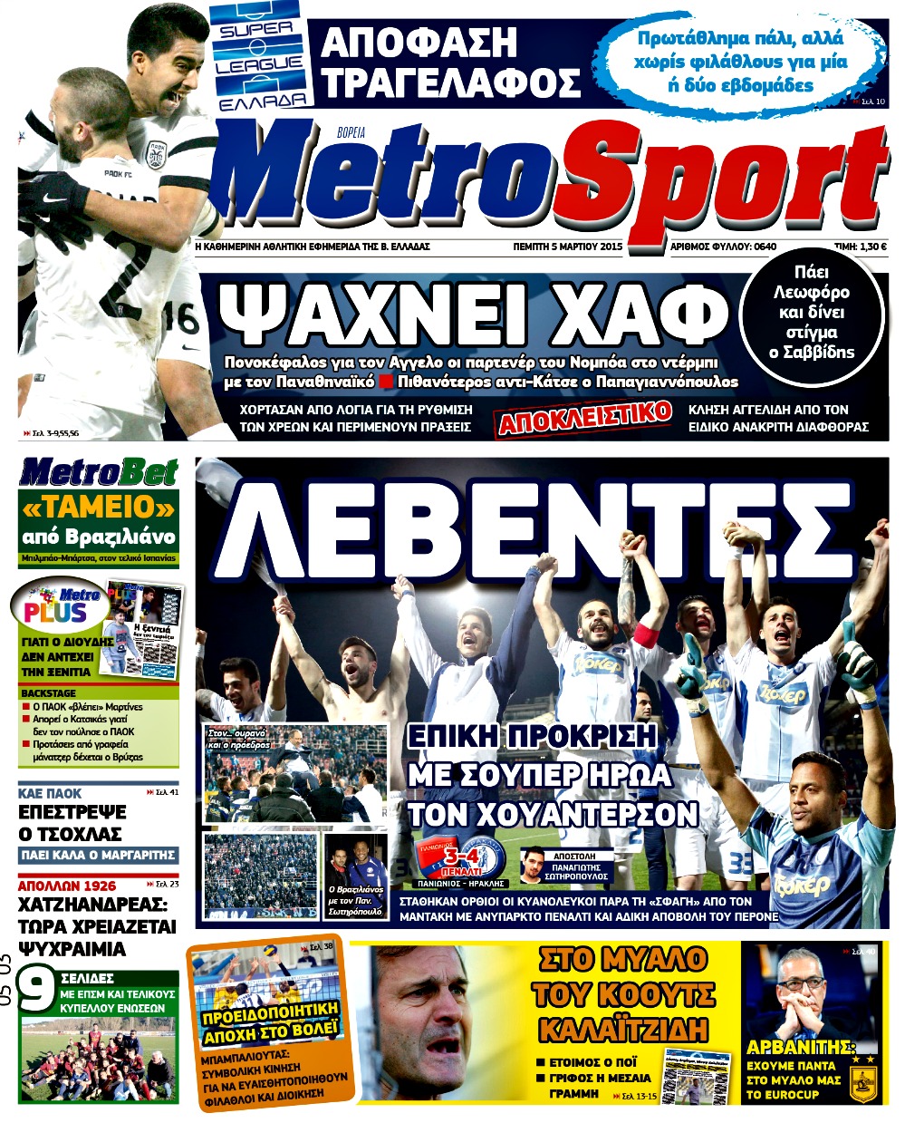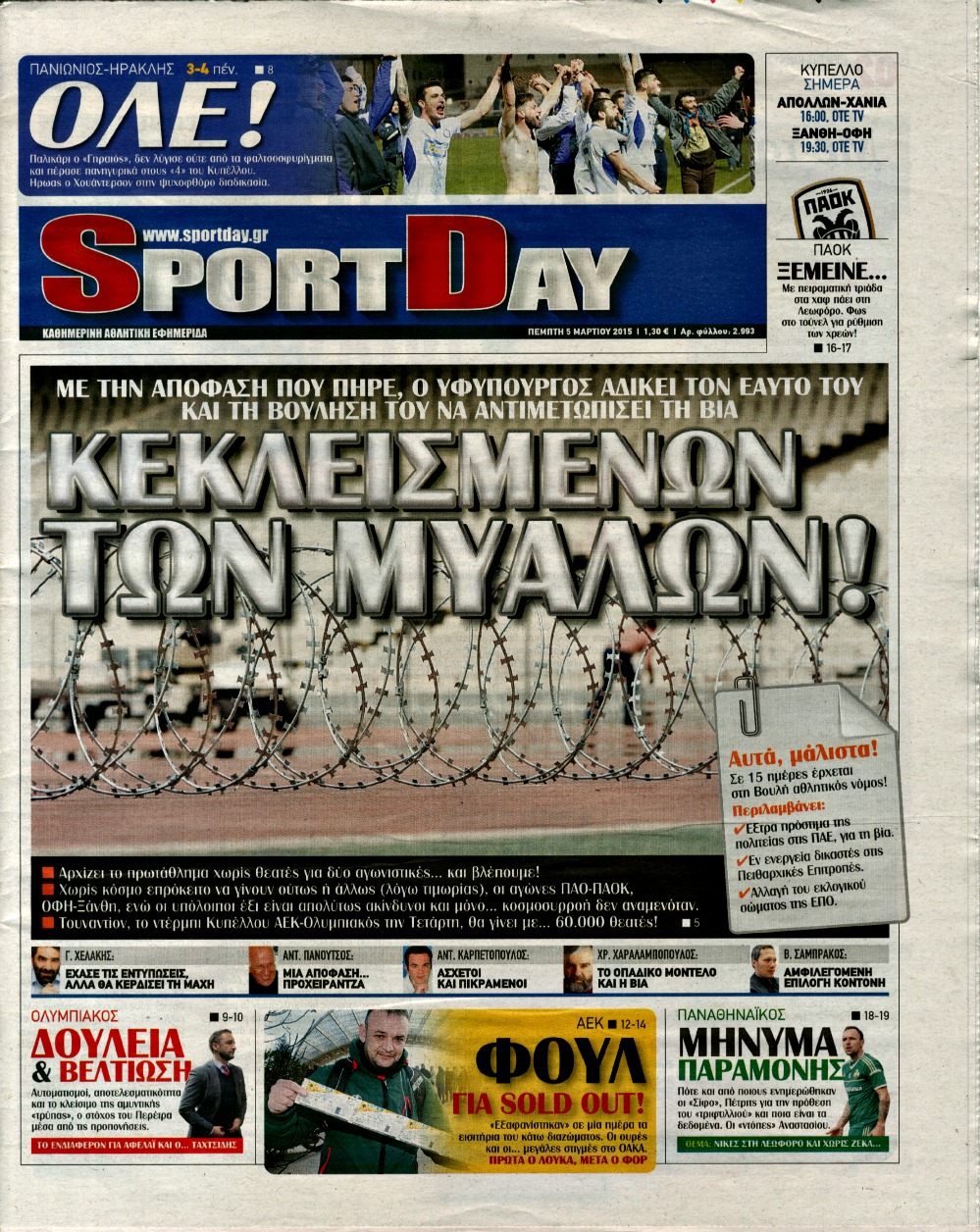 Οι αθλητικές εφημερίδες Enikos Newsroom 07:49, Πέμπτη 05 Μαρτίου 2015 Media Διαβάστε τα πρωτοσέλιδα των αθλητικών εφημερίδων: ΕΦΗΜΕΡΙΔΕΣ ΠΡΩΤΟΣΕΛΙΔΑ Μοιράσου το: σχολίασε κι εσύ (0 σχόλια) Ακολουθήστε το enikos.gr στο Google News και μάθετε πρώτοι όλες τις ειδήσεις Δείτε όλες τις τελευταίες ειδήσεις από την Ελλάδα και τον Κόσμο στο enikos.gr Ειδήσεις Ροή Ειδήσεων 2 ώρες πριν Η Ουκρανία χτύπησε τάνκερ του σκιώδους στόλου της Ρωσίας στη Μεσόγειο – Έπλεε νότια της Κρήτης 4 ώρες πριν Πούτιν: Η Ουκρανία δεν είναι έτοιμη για ειρηνευτικές συνομιλίες – Ο ρωσικός στρατός προελαύνει σε όλα τα μέτωπα 47 λεπτά πριν Θεσσαλονίκη: Στη φυλακή ο 44χρονος που κατηγορείται ότι προσπάθησε να πνίξει με κορδόνι την 34χρονη σύντροφό του 1 ώρα πριν Εξώδικο επιχειρηματία στον Γιώργο Μαζωνάκη – Τι απαντά στις καταγγελίες του τραγουδιστή 2 ώρες πριν Βουλή: Υπερψηφίστηκε το νομοσχέδιο για την ένταξη του ΟΠΕΚΕΠΕ στην ΑΑΔΕ 6 ώρες πριν Αλλαγή σελίδας για 3 ζώδια – «Μία δύσκολη περίοδος φτάνει στο τέλος της» 2 ημέρες πριν 20 χρόνια τα Χριστούγεννα ξεκινούν στα Public με μεγάλη ποικιλία σε δώρα! 5 ώρες πριν Γεμάτος νεροχύτης; 5 σοβαρές ευθύνες που «φοβίζουν» όσους αφήνουν άπλυτα πιάτα 4 ώρες πριν Ειδικός μοιράζεται 6 κόλπα για να διατηρείστε σε φόρμα με πάνω από 40 ώρες εργασίας την εβδομάδα: «Προπονηθείτε πριν από τη δουλειά, όχι μετά» 2 λεπτά πριν Ηράκλειο: Νεκρός ένας 65χρονος μοτοσικλετιστής έπειτα από σφοδρή σύγκρουση οχημάτων – ΦΩΤΟ 10 λεπτά πριν Πούτιν: Σαρκαστικά μηνύματα, παράπονα και απρόοπτα στη συνέντευξη Τύπου – Η πρόταση γάμου on air και οι ερωτήσεις για τα αγγούρια και τους… εξωγήινους 17 λεπτά πριν Κρήτη: Ένοχος ο 54χρονος «ερευνητής» για απάτη στην υπόθεση του 33χρονου γιατρού που αγνοείται 17 λεπτά πριν Νίκος Κούρκουλος: Αυτός ο αλύγιστος και ασυμβίβαστος «Αστραπόγιαννος» 23 λεπτά πριν Παναθηναϊκός: Θα προτείνει στη Λάτσιο 4 εκατ. ευρώ και συνιδιοκτησία για τον Μανδά ENIKOS NETWORK Τάξη στις ιατρικές διαφημίσεις για την προστασία των πολιτών βάζει ο ΙΣΑ Μακροζωία: Τι παίζει πιο σημαντικό ρόλο ακόμα και από την διατροφή και την άσκηση, σύμφωνα με μελέτη Βουλή: Υπερψηφίστηκε το νομοσχέδιο για τη μετάβαση του ΟΠΕΚΕΠΕ στην ΑΑΔΕ ΕΥΔΑΠ: Οδηγός για τις αλλαγές στα τιμολόγια του νερού – 17 ερωτήσεις και απαντήσεις Χαρτογραφώντας το «σημείο χωρίς επιστροφή»: Για πρώτη φορά αποκαλύπτεται με λεπτομέρεια το ακανθώδες όριο της ατμόσφαιρας τ... Η Google καταργεί τη λειτουργία «dark web report» – Πώς θα μπορούν οι χρήστες να διαγράφουν τα δεδομένα τους περισσότερα 15:15 , Παρασκευή 19 Δεκεμβρίου 2025 Την Κυριακή με τη Realnews: Ό,τι και αν αγοράσεις, σκανάρεις και κερδίζεις! Την Κυριακή με τη Realnews: Ό,τι και αν αγοράσεις, σκανάρεις και κερδίζεις! Με το PADU app, το... 08:00 , Παρασκευή 19 Δεκεμβρίου 2025 Την Κυριακή με τη Realnews: Δωροεπιταγή 10€ Δωροεπιταγή αξίας 10€ για αγορές άνω των 60€ από τα πολυκαταστήματα FactoryOutlet H προσφορά ι... 05:48 , Παρασκευή 19 Δεκεμβρίου 2025 Οι οικονομικές εφημερίδες 19/12/2025 Διαβάστε τα πρωτοσέλιδα από τις οικονομικές εφημερίδες, σήμερα 19/12/2025. 05:43 , Παρασκευή 19 Δεκεμβρίου 2025 Οι αθλητικές εφημερίδες 19/12/2025 Διαβάστε τα πρωτοσέλιδα από τις αθλητικές εφημερίδες, σήμερα 19/12/2025. ΤΕΛΕΥΤΑΙΕΣ ΕΙΔΗΣΕΙΣ 2 λεπτά πριν Ηράκλειο: Νεκρός ένας 65χρονος μοτοσικλετιστής έπειτα... 10 λεπτά πριν Πούτιν: Σαρκαστικά μηνύματα, παράπονα και απρόοπτα... 17 λεπτά πριν Κρήτη: Ένοχος ο 54χρονος «ερευνητής» για απάτη στην... 17 λεπτά πριν Νίκος Κούρκουλος: Αυτός ο αλύγισ