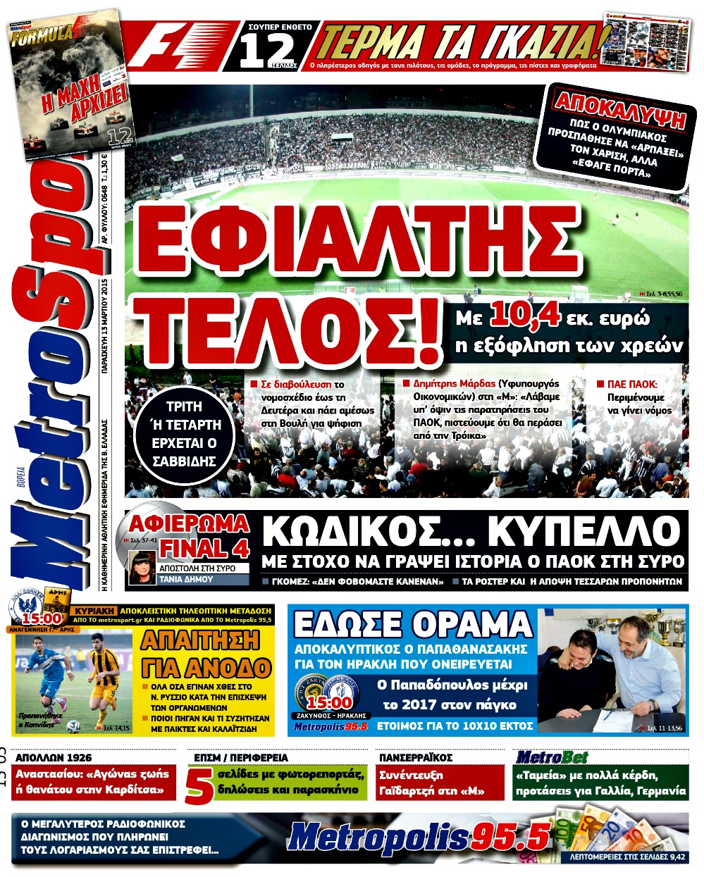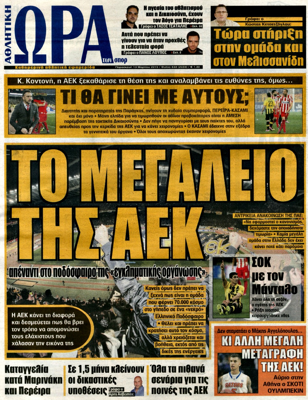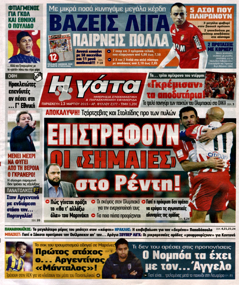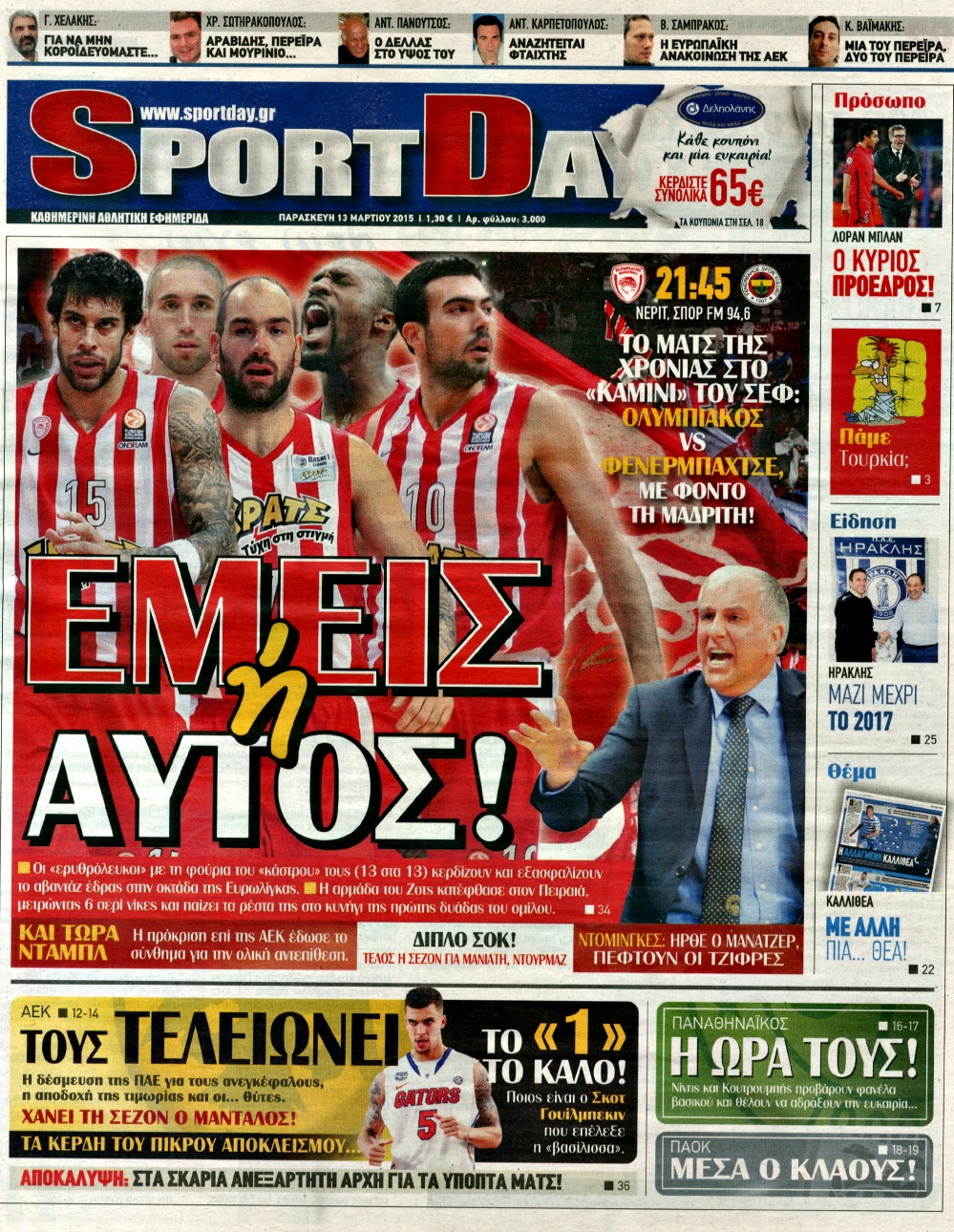 Οι αθλητικές εφημερίδες Enikos Newsroom 08:10, Παρασκευή 13 Μαρτίου 2015 Media Διαβάστε τα πρωτοσέλιδα των αθλητικών εφημερίδων: ΑΘΛΗΤΙΚΕΣ ΕΦΗΜΕΡΙΔΕΣ ΕΦΗΜΕΡΙΔΕΣ ΠΡΩΤΟΣΕΛΙΔΑ Μοιράσου το: σχολίασε κι εσύ (0 σχόλια) Ακολουθήστε το enikos.gr στο Google News και μάθετε πρώτοι όλες τις ειδήσεις Δείτε όλες τις τελευταίες ειδήσεις από την Ελλάδα και τον Κόσμο στο enikos.gr Ειδήσεις Ροή Ειδήσεων 3 ώρες πριν ΣΥΡΙΖΑ: Διαγράφεται ο ευρωβουλευτής Νίκος Παππάς μετά την μήνυση δημοσιογράφου για ξυλοδαρμό 1 ώρα πριν Τουρκία: Επιδιώκει την επιστροφή των S-400 στη Ρωσία – Οι αμερικανικές πιέσεις 2 ώρες πριν ΟΠΕΚΕΠΕ: Ελεύθερες με όρους η σύζυγος και η αδελφή του φερόμενου αρχηγού – Τι υποστήριξαν 4 ώρες πριν Πώς στήθηκε η επιχείρηση «Ίπαλλος» που οδήγησε στη σύλληψη του «Έλληνα Εσκομπάρ» – «Ο πόλεμος ενάντια στους εμπόρους ναρκωτικών θα συνεχιστεί» 4 ώρες πριν Κυψέλη: Στη φυλακή η 16χρονη που μαχαίρωσε συμμαθήτριά της 4 ώρες πριν Τα 3 ζώδια που θα δουν τη ζωή τους να αλλάζει ριζικά το 2026 – «Όλα γίνονται καλύτερα σταδιακά» 9 ώρες πριν «Δεν είχα κλάψει από τότε που διαγνώστηκα με καρκίνο, ώσπου ένα τηλεφώνημα με έκανε να λυγίσω» – Η συγκλονιστική εξομολόγηση ενός άνδρα 5 ώρες πριν Ο σπάνιος σεισμός που έλυσε τα χέρια των επιστημόνων – Αποκάλυψε ακριβώς όσα αναζητούσαν 10 ώρες πριν 20 χρόνια τα Χριστούγεννα ξεκινούν στα Public με μεγάλη ποικιλία σε δώρα! 6 λεπτά πριν Εξεταστική για ΟΠΕΚΕΠΕ – Σκέρτσος: Διαχρονικά τα θέματα του οργανισμού – Δεν έγινε καμία αναφορά μου σε ποινικές διαδικασίες 12 λεπτά πριν Συγκλονιστικό βίντεο: Τρόμος για τουρίστες που σώθηκαν την τελευταία στιγμή από λεωφορείο που κατρακυλούσε σε φαράγγι 17 λεπτά πριν Χριστίνα Μπόμπα: Η αποκάλυψη για το περιστατικό με την κόρη της – «Σκαρφάλωνε και μίλαγε μόνη της…» 21 λεπτά πριν Εξεταστική για ΟΠΕΚΕΠΕ: Μεγάλη ένταση μεταξύ Κωνσταντοπούλου και Λαζαρίδη – ΒΙΝΤΕΟ 26 λεπτά πριν Νίκος Γιαννόπουλος: «Τα γεγονότα μιλούν από μόνα τους» – Η ανάρτηση του δημοσιογράφου που μήνυσε τον Νίκο Παππά για ξυλοδαρμό ENIKOS NETWORK 2,6 εκατομμύρια πολίτες έχουν ήδη εμβολιαστεί κατά της γρίπης Σοβαροί κίνδυνοι από τη λάθος χορήγηση φαρμάκου για τις αιμορραγίες-Συστάσεις προς τους γιατρούς Προκήρυξη ΑΣΕΠ για 4.276 μόνιμες προσλήψεις στο Δημόσιο: Βγήκαν τα προσωρινά αποτελέσματα – Ποιοι μπορούν να υποβάλουν ένσ... Υπουργείο Εργασίας: Ο οδικός χάρτης για την ενίσχυση του πλαισίου των Συλλογικών Διαπραγματεύσεων – Οι 5 άξονες του σχεδίου... Χαρτογραφώντας το «σημείο χωρίς επιστροφή»: Για πρώτη φορά αποκαλύπτεται με λεπτομέρεια το ακανθώδες όριο της ατμόσφαιρας τ... Η Google καταργεί τη λειτουργία «dark web report» – Πώς θα μπορούν οι χρήστες να διαγράφουν τα δεδομένα τους περισσότερα 12:35 , Τετάρτη 17 Δεκεμβρίου 2025 Μίρκα Παπακωνσταντίνου: «Δεν ήμουν αισιόδοξη για τα νούμερα – Είμαι ρεαλίστρια» Στα γυρίσματα του εορταστικού επεισοδίου της αγαπημένης σειράς “Το Σόι Σου”, βρέθηκε η κάμερα ... 12:12 , Τετάρτη 17 Δεκεμβρίου 2025 Ακούστε την εκπομπή του Νίκου Χατζηνικολάου 17/12/2025 Ακούστε την εκπομπή του Νίκου Χατζηνικολάου στον ραδιοφωνικό σταθμό RealFm 97,8, την Τετάρτη 1... 11:35 , Τετάρτη 17 Δεκεμβρίου 2025 Home Alone: Το σπίτι της ταινίας θα ανακαινιστεί – Επιστροφή στην αισθητική της δεκαετίας του ’90 Οι νέοι ιδιοκτήτες του πραγματικού σπιτιού που παρουσιάζεται στην κλασική ταινία του 1990 «Hom... 11:25 , Τετάρτη 17 Δεκεμβρίου 2025 Grand Hotel: Απόψε το τελευταίο επεισόδιο της χρονιάς – Όλα τα μυστικά μέ