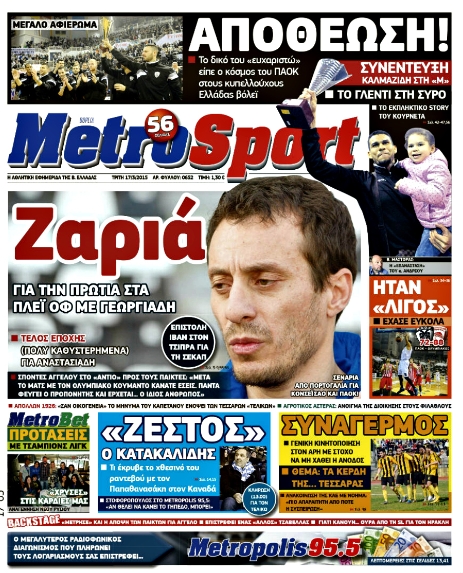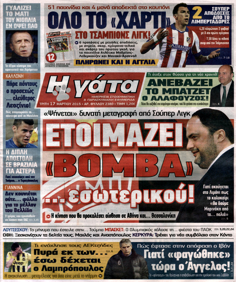 Οι αθλητικές εφημερίδες Enikos Newsroom 07:50, Τρίτη 17 Μαρτίου 2015 Media Διαβάστε τα πρωτοσέλιδα των σημερινών αθλητικών εφημερίδων: ΑΘΛΗΤΙΚΕΣ ΕΦΗΜΕΡΙΔΕΣ ΕΦΗΜΕΡΙΔΕΣ ΠΡΩΤΟΣΕΛΙΔΑ Μοιράσου το: σχολίασε κι εσύ (0 σχόλια) Ακολουθήστε το enikos.gr στο Google News και μάθετε πρώτοι όλες τις ειδήσεις Δείτε όλες τις τελευταίες ειδήσεις από την Ελλάδα και τον Κόσμο στο enikos.gr Ειδήσεις Ροή Ειδήσεων 4 ώρες πριν Πώς δρούσε το κύκλωμα που διακινούσε ναρκωτικά σε σχολεία – Υπέβαλαν σε βασανιστήρια όσους δεν τηρούσαν τους «κανόνες πειθαρχίας» 4 ώρες πριν Αγρότες: Γιορτές στα μπλόκα με ανοιχτά διόδια – Δικογραφία στα Ιωάννινα για το σήκωμα των μπαρών 3 ώρες πριν Ζελένσκι: Οι Αμερικανοί πρότειναν συνάντηση Ουκρανίας, ΗΠΑ, Ρωσίας στο Μαϊάμι 2 ώρες πριν Τραμπ: Πώς περνάει τις γιορτές των Χριστουγέννων – Τα δώρα που κάνει στα εγγόνια του 3 ώρες πριν Μικαέλα Μπέντχαους: Ο πρώτος άνθρωπος σε αναπηρικό αμαξίδιο που ταξίδεψε στο διάστημα – ΒΙΝΤΕΟ 4 ώρες πριν Η τύχη χαμογελά σε 3 ζώδια έως τις 28 Δεκεμβρίου – «Προσέξτε τις επιλογές σας και η επιμονή σας θα ανταμειφθεί» 5 ώρες πριν Μία ανεκμετάλλευτη πηγή θα μπορούσε να προσφέρει ανεξάντλητη ενέργεια – Οι επιστήμονες ίσως γνωρίζουν πώς να την ξεκλειδώσουν 1 ώρα πριν Μήπως οι γιορτές σας δεν είναι τόσο τέλειες; 7 χριστουγεννιάτικες συνήθειες που μαρτυρούν ότι μια οικογένεια είναι δυσλειτουργική 11 ώρες πριν Enerwave: Το νέο «ρεύμα» στη λιανική ενέργειας που αλλάζει την εμπειρία του καταναλωτή 10 λεπτά πριν Πέθανε η σπουδαία αρχαιολόγος Λίλα Μαραγκού – 20 λεπτά πριν Πώς να απαλλαγείτε από τη μυρωδιά του τηγανητού φαγητού: Το μυστικό βρίσκεται στην κουζίνα σας 26 λεπτά πριν Βλαχοδήμος: «Νιώθω καλά που είμαι σημαντικός για τη Σεβίλλη» – Τι είπε για τη Ρεάλ Μαδρίτης και τον Μπαπέ 35 λεπτά πριν Πρίγκιπας Ουίλιαμ: Μαγείρεψε παρέα με τον πρίγκιπα Τζορτζ για τους αστέγους – ΦΩΤΟ και ΒΙΝΤΕΟ 44 λεπτά πριν Επιχείρηση της Τροχαίας κατά της παράνομης στάθμευσης στο Νέο Ψυχικό – Τέσσερις συλλήψεις ENIKOS NETWORK Οι γυναίκες αποκαλύπτουν το πιο ελκυστικό πράγμα που μπορεί να κάνει ένας άνδρας Ομορφιά και αντιγήρανση: Ειδικοί μιλούν για συσκευές περιποίησης του δέρματος Θεοδωρικάκος: Εθνική στρατηγική για τους ημιαγωγούς – Πρώτο βήμα η χρηματοδότηση του πρώτου Κέντρου Ικανοτήτων, με 3,63 εκα... Επίδομα θέρμανσης: Μπαίνει η πρώτη δόση την Τρίτη – Οι επόμενες πληρωμές Χαρτογραφώντας το «σημείο χωρίς επιστροφή»: Για πρώτη φορά αποκαλύπτεται με λεπτομέρεια το ακανθώδες όριο της ατμόσφαιρας τ... Η Google καταργεί τη λειτουργία «dark web report» – Πώς θα μπορούν οι χρήστες να διαγράφουν τα δεδομένα τους περισσότερα 18:19 , Σάββατο 20 Δεκεμβρίου 2025 HOTΕΛ ΕΛVIRA: Η Ελβίρα μαθαίνει πως ο Χάρι μένει κρυφά στο ξενοδοχείο του Παντελή Συνεχίζονται οι εκλογές για πρόεδρο, στο νέο επεισόδιο της κωμικής σειράς του MEGA, HOTΕΛ ΕΛVI... 14:04 , Σάββατο 20 Δεκεμβρίου 2025 Η Realnews αυτής της Κυριακής (21/12/2025) Με τίτλο: «Ασπίδα προστασίας για την Ελλάδα» κυκλοφορεί, αυτήν την Κυριακή, η Realnews. Σημαντ... 12:53 , Σάββατο 20 Δεκεμβρίου 2025 Να μ’ αγαπάς: Το παρελθόν έρχεται στο φως – Καταιγιστικές εξελίξεις στα τελευταία επεισόδια του 2025 Ο Άγγελος αποκαλύπτεται, η Φωτεινή ανησυχεί για τον Λευτέρη και η Ζωή έρχεται αντιμέτωπη με το... 11:41 , Σάββατο 20 Δεκεμβρίου 2025 «Η αγάπη δεν χάνεται ποτέ»: Η μικρού μήκους ταινία κινουμένων σχεδίων που θέτει ερωτήματα για τη ζωή και τον θάνατο Ο θάνατος είναι ένα από τα πιο σκληρά θέματα που καλε