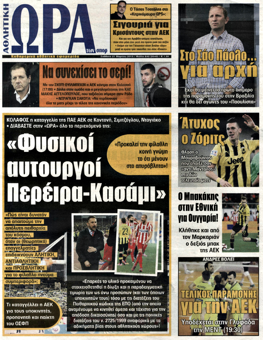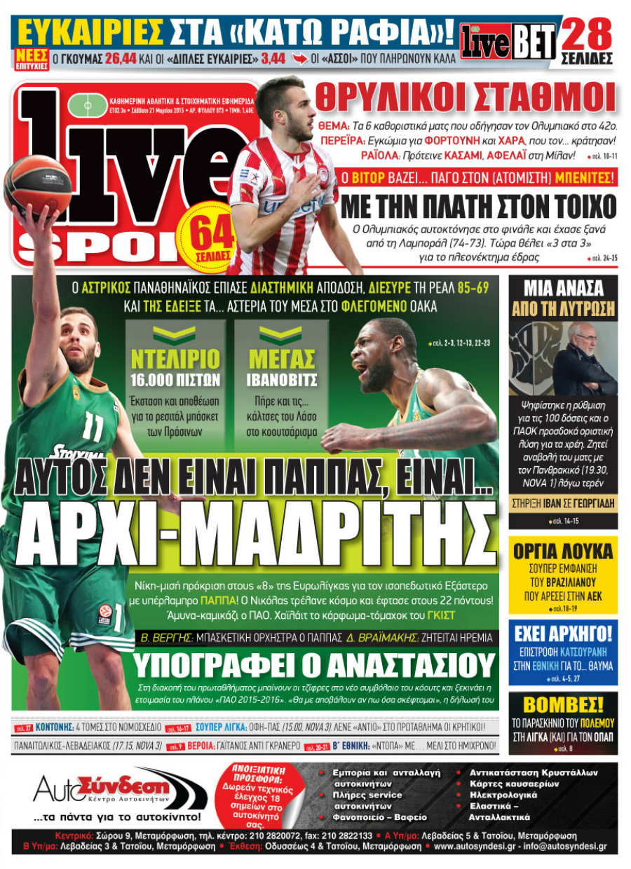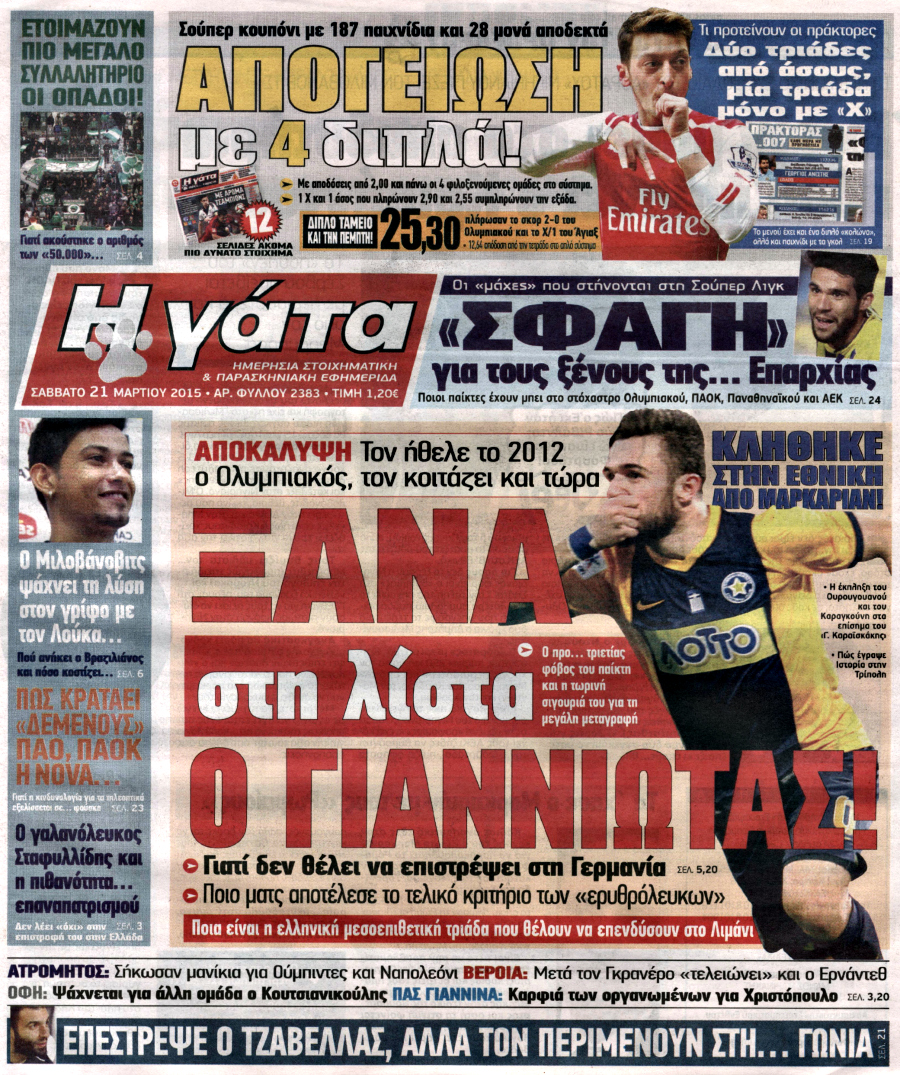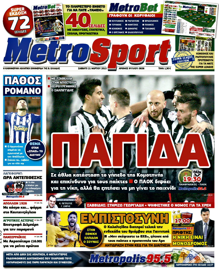 Οι αθλητικές εφημερίδες Enikos Newsroom 07:29, Σάββατο 21 Μαρτίου 2015 Media Διαβάστε τα πρωτοσέλιδα των σημερινών αθλητικών εφημερίδων: ΑΘΛΗΤΙΚΕΣ ΕΦΗΜΕΡΙΔΕΣ ΕΦΗΜΕΡΙΔΕΣ ΠΡΩΤΟΣΕΛΙΔΑ Μοιράσου το: σχολίασε κι εσύ (0 σχόλια) Ακολουθήστε το enikos.gr στο Google News και μάθετε πρώτοι όλες τις ειδήσεις Δείτε όλες τις τελευταίες ειδήσεις από την Ελλάδα και τον Κόσμο στο enikos.gr Ειδήσεις Ροή Ειδήσεων 3 ώρες πριν Χριστούγεννα στα μπλόκα: Επιμένουν στις κινητοποιήσεις τους οι αγρότες – Ανοίγουν τα διόδια το Σαββατοκύριακο 4 ώρες πριν Ουκρανία: Η άνευ προηγουμένου επίθεση σε ρωσικό τάνκερ στη Μεσόγειο και το μήνυμα προς στον Πούτιν – Το «μακρύ χέρι» του Κιέβου 3 ώρες πριν Πούτιν: Τα μηνύματα σε Ευρώπη και ΝΑΤΟ από το μαραθώνιο «σόου» του – Η απαίτηση για «σεβασμό» και η ειρήνη «με τους όρους» της Μόσχας 4 ώρες πριν Τραμπ: Δεν αποκλείει την πιθανότητα ενός πολέμου στη Βενεζουέλα – «Ο Μαδούρο ξέρει καλύτερα από τον καθένα τι ακριβώς θέλω» 5 ώρες πριν Συνεχίζει να προκαλεί ο Μίτσκοσκι: «Για μένα το όνομα Μακεδονία είναι ιερό» 3 ώρες πριν Ανακαλύφθηκαν αρχαία χρυσά νομίσματα 2.200 ετών που απεικονίζουν τον θεό Απόλλωνα – Η άγνωστη σύνδεση με τον Φίλιππο Β΄ της Μακεδονίας 4 ώρες πριν Ύπνος: Μια κρυφή κατάσταση του εγκεφάλου πριν από τον ύπνο μπορεί να είναι το “κλειδί” για υψηλή ευφυΐα και δημιουργικότητα 5 ώρες πριν Αριθμολογία: Οι άνθρωποι που έχουν γεννηθεί αυτές τις 4 ημερομηνίες, συχνά παρεξηγούνται – «Η καλοσύνη τους κρύβει τεράστια δύναμη» 6 ώρες πριν Ξεχάστε το καθάρισμα το Σαββατοκύριακο: Ο «κανόνας των 20 λεπτών» που θα σας λύσει τα χέρια 21 λεπτά πριν Πρόταση γάμου στο ΣΕΦ κατά την διάρκεια του αγώνα Ολυμπιακός-Βιλερμπάν – Δείτε βίντεο 36 λεπτά πριν Euroleague: Επέστρεψε στις νίκες ο Ολυμπιακός, πήρε την ματσάρα της χρονιάς η Μπάρτσα – Τα αποτελέσματα και η βαθμολογία 51 λεπτά πριν Συρία: Μαζικά πλήγματα των ΗΠΑ σε θέσεις του Ισλαμικού Κράτους – Χέγκσεθ: «Δεν είναι αρχή πολέμου, είναι μια δήλωση εκδίκησης» για το θάνατο των στρατιωτών μας 1 ώρα πριν Ουκρανία: Ολοκληρώθηκαν οι συνομιλίες με τους Αμερικανούς κι Ευρωπαίους διαπραγματευτές 1 ώρα πριν Μπαρτσελόνα – Μπασκόνια 134-124: Οι «μπλαουγκράνα» πήραν το ματς της χρονιάς ύστερα από τρεις παρατάσεις ENIKOS NETWORK Το ΕΚΑΒ τιμήθηκε από την Ακαδημία Αθηνών για τα 40 χρόνια προσφοράς του Έχετε πραγματικά μεγάλη καρδιά; 10 χαρακτηριστικά όσων έχουν καλοσύνη Αναστολή μέτρων αναγκαστικής εκτέλεσης για κτηνοτρόφους που πλήττονται από την ευλογιά των αιγοπροβάτων Πλήρης επάρκεια προϊόντων στις λαϊκές της Αττικής, παρά τις αγροτικές κινητοποιήσεις – Τι απαντούν οι πωλητές Χαρτογραφώντας το «σημείο χωρίς επιστροφή»: Για πρώτη φορά αποκαλύπτεται με λεπτομέρεια το ακανθώδες όριο της ατμόσφαιρας τ... Η Google καταργεί τη λειτουργία «dark web report» – Πώς θα μπορούν οι χρήστες να διαγράφουν τα δεδομένα τους περισσότερα 22:42 , Παρασκευή 19 Δεκεμβρίου 2025 Γιώργος Γιαννόπουλος για “Το σόι σου”: “Είναι ευτυχία και ευλογία αυτή η σειρά” «Είναι ευτυχία και ευλογία η συγκυρία αυτής της σειράς», θα πει ο Γιώργος Γιαννόπουλος -ο αγαπ... 20:37 , Παρασκευή 19 Δεκεμβρίου 2025 Don’t Forget The Lyrics: Η Έλλη Κοκκίνου υποδέχεται 4 παίκτες που θα κάνουν τα πάντα για να μη χάσουν ούτε… μισή λέξη από τους στίχους Το «Don’t Forget The Lyrics» επιστρέφει απόψε, Παρασκευή 19 Δεκεμβρίου, στις 21:00 με νέο επει... 19:31 , Παρασκευή 19 Δεκεμβρίου 2025 GNTM: Απόψε ο μεγάλος τελικός για τους 4 φιναλίστ Έπειτα από μήνες