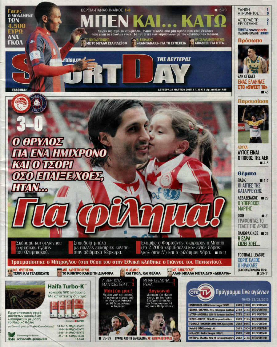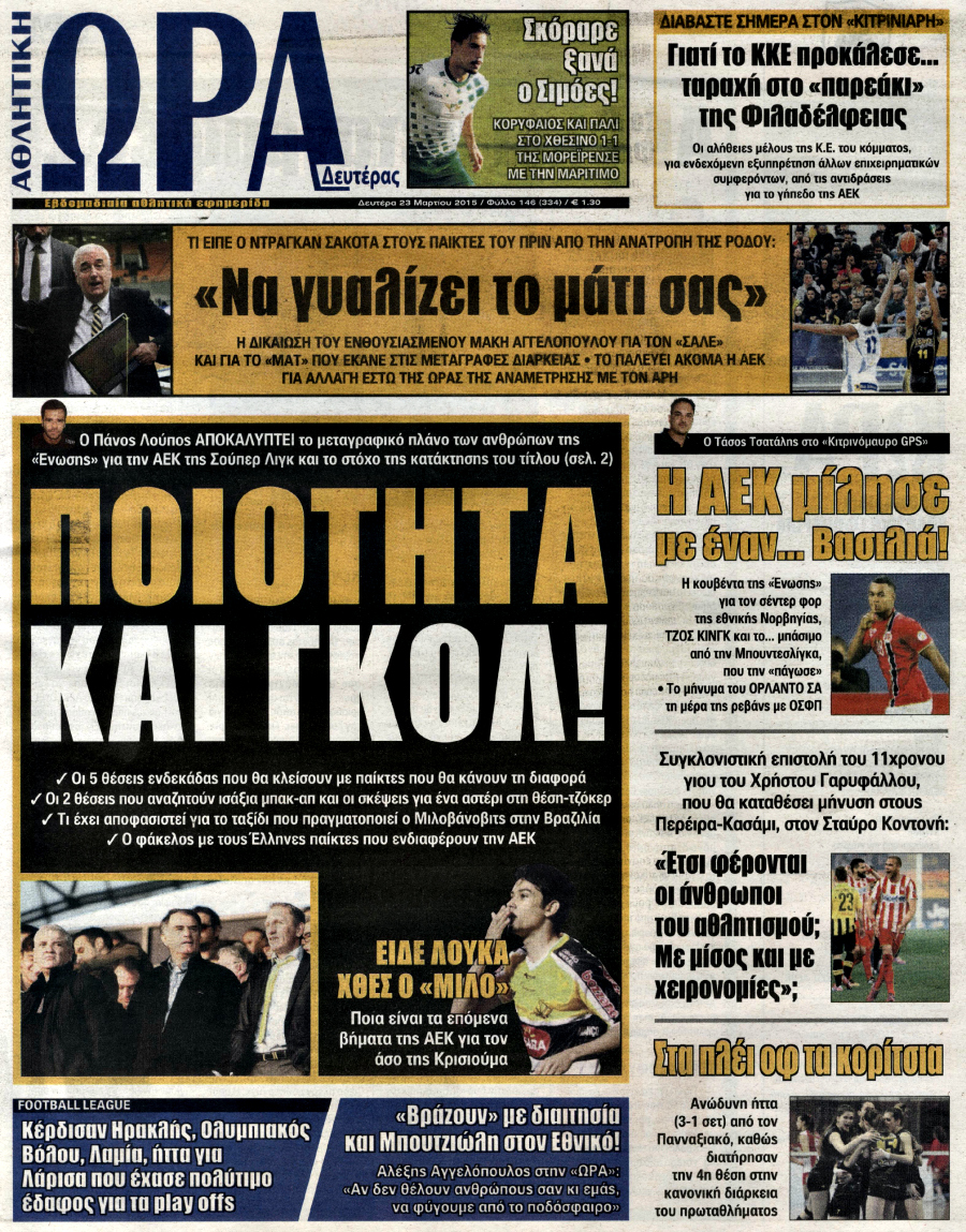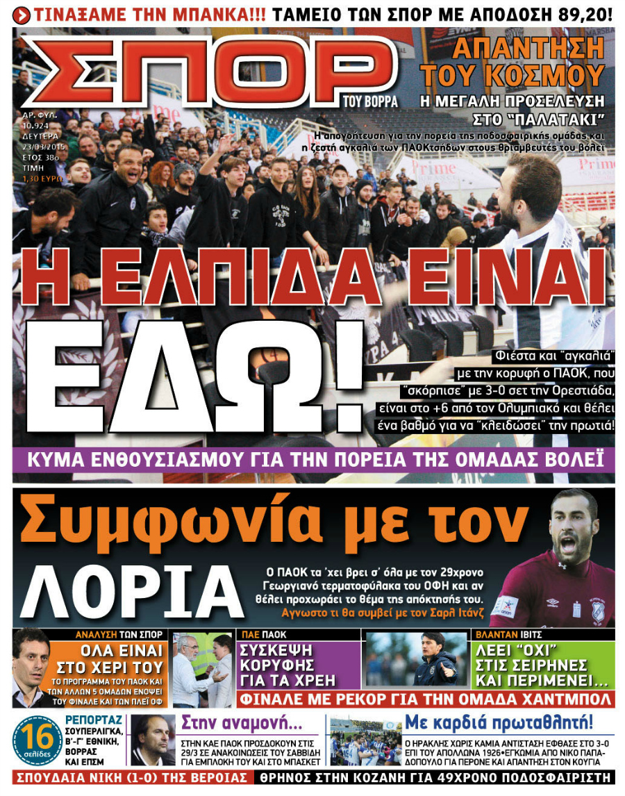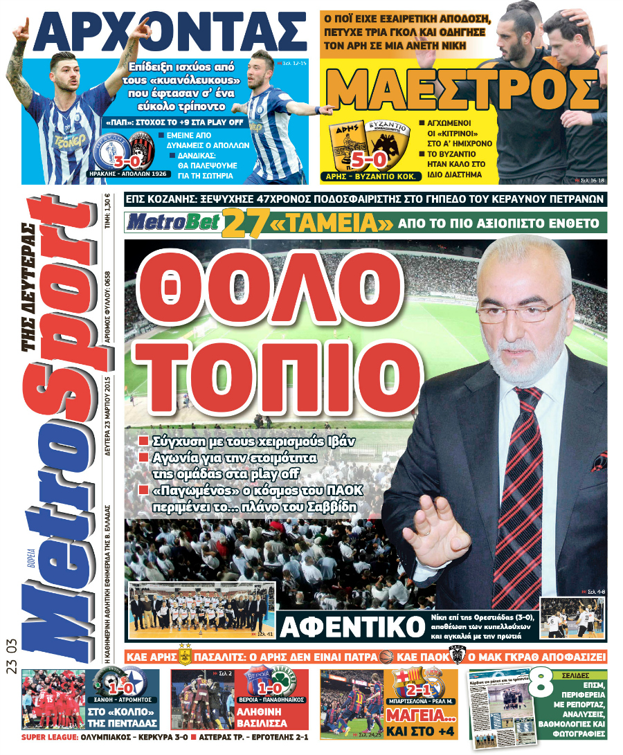Οι αθλητικές εφημερίδες Enikos Newsroom 07:51, Δευτέρα 23 Μαρτίου 2015 Media Διαβάστε τα πρωτοσέλιδα των σημερινών αθλητικών εφημερίδων: ΑΘΛΗΤΙΚΕΣ ΕΦΗΜΕΡΙΔΕΣ ΕΦΗΜΕΡΙΔΕΣ ΠΡΩΤΟΣΕΛΙΔΑ Μοιράσου το: σχολίασε κι εσύ (0 σχόλια) Ακολουθήστε το enikos.gr στο Google News και μάθετε πρώτοι όλες τις ειδήσεις Δείτε όλες τις τελευταίες ειδήσεις από την Ελλάδα και τον Κόσμο στο enikos.gr Ειδήσεις Ροή Ειδήσεων 2 ώρες πριν ΣΥΡΙΖΑ: Διαγράφεται ο ευρωβουλευτής Νίκος Παππάς μετά την μήνυση δημοσιογράφου για ξυλοδαρμό 37 λεπτά πριν Τουρκία: Επιδιώκει την επιστροφή των S-400 στη Ρωσία – Οι αμερικανικές πιέσεις 48 λεπτά πριν ΟΠΕΚΕΠΕ: Ελεύθερες με όρους η σύζυγος και η αδελφή του φερόμενου αρχηγού – Τι υποστήριξαν 3 ώρες πριν Πώς στήθηκε η επιχείρηση «Ίπαλλος» που οδήγησε στη σύλληψη του «Έλληνα Εσκομπάρ» – «Ο πόλεμος ενάντια στους εμπόρους ναρκωτικών θα συνεχιστεί» 3 ώρες πριν Κυψέλη: Στη φυλακή η 16χρονη που μαχαίρωσε συμμαθήτριά της 3 ώρες πριν Τα 3 ζώδια που θα δουν τη ζωή τους να αλλάζει ριζικά το 2026 – «Όλα γίνονται καλύτερα σταδιακά» 8 ώρες πριν «Δεν είχα κλάψει από τότε που διαγνώστηκα με καρκίνο, ώσπου ένα τηλεφώνημα με έκανε να λυγίσω» – Η συγκλονιστική εξομολόγηση ενός άνδρα 4 ώρες πριν Ο σπάνιος σεισμός που έλυσε τα χέρια των επιστημόνων – Αποκάλυψε ακριβώς όσα αναζητούσαν 10 ώρες πριν 20 χρόνια τα Χριστούγεννα ξεκινούν στα Public με μεγάλη ποικιλία σε δώρα! 4 λεπτά πριν Μητσοτάκης: Το γούρι με τα αρχικά του για το 2026 που έδωσε στους βουλευτές της ΝΔ – ΦΩΤΟ 8 λεπτά πριν Καβάλα – Παναθηναϊκός 1-2: Ο Ταμπόρδα έστειλε τους Πράσινους απευθείας στα προημιτελικά του Κυπέλλου Ελλάδας 13 λεπτά πριν Δημήτρης Ήμελλος: Η συγκινητική ανάρτηση της αδελφής του, για τον ένα χρόνο από τον θάνατό του – «Πήγες στον Θεό για να μας θυμίσεις…» 18 λεπτά πριν Κρήτη: Η ανακοίνωση της ΕΛΑΣ για την σύλληψη του 54χρονου – Ζήτησε 5.000 ευρώ από την οικογένεια του 33χρονου γιατρού για να τον βρει μέσω «κβαντικής τεχνολογίας» 23 λεπτά πριν Διπλωματικές πηγές: Το πρώτο τρίμηνο του 2026 το Ανώτατο Συμβούλιο Συνεργασίας Ελλάδας-Τουρκίας ENIKOS NETWORK 2,6 εκατομμύρια πολίτες έχουν ήδη εμβολιαστεί κατά της γρίπης Σοβαροί κίνδυνοι από τη λάθος χορήγηση φαρμάκου για τις αιμορραγίες-Συστάσεις προς τους γιατρούς Έρχεται νέα ενίσχυση 17.500 ευρώ από τη ΔΥΠΑ για ανέργους- Όλες οι λεπτομέρειες «Αναταράξεις» στην εφοδιαστική αλυσίδα από τα μπλόκα: Επιστολή του Συνδέσμου Θεσσαλικών Βιομηχανιών στον πρωθυπουργό -Τι αν... Χαρτογραφώντας το «σημείο χωρίς επιστροφή»: Για πρώτη φορά αποκαλύπτεται με λεπτομέρεια το ακανθώδες όριο της ατμόσφαιρας τ... Η Google καταργεί τη λειτουργία «dark web report» – Πώς θα μπορούν οι χρήστες να διαγράφουν τα δεδομένα τους περισσότερα 12:35 , Τετάρτη 17 Δεκεμβρίου 2025 Μίρκα Παπακωνσταντίνου: «Δεν ήμουν αισιόδοξη για τα νούμερα – Είμαι ρεαλίστρια» Στα γυρίσματα του εορταστικού επεισοδίου της αγαπημένης σειράς “Το Σόι Σου”, βρέθηκε η κάμερα ... 12:12 , Τετάρτη 17 Δεκεμβρίου 2025 Ακούστε την εκπομπή του Νίκου Χατζηνικολάου 17/12/2025 Ακούστε την εκπομπή του Νίκου Χατζηνικολάου στον ραδιοφωνικό σταθμό RealFm 97,8, την Τετάρτη 1... 11:35 , Τετάρτη 17 Δεκεμβρίου 2025 Home Alone: Το σπίτι της ταινίας θα ανακαινιστεί – Επιστροφή στην αισθητική της δεκαετίας του ’90 Οι νέοι ιδιοκτήτες του πραγματικού σπιτιού που παρουσιάζεται στην κλασική ταινία του 1990 «Hom... 11:25 , Τετάρτη 17 Δεκεμβρίου 2025 Grand Hotel: Απόψε το τελευταίο επεισόδιο της χρονιάς – Όλα τα μυστικά μένουν εδώ 