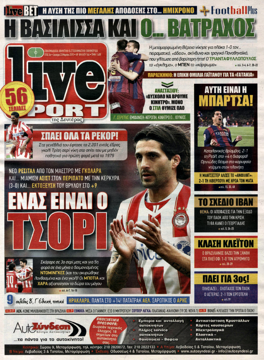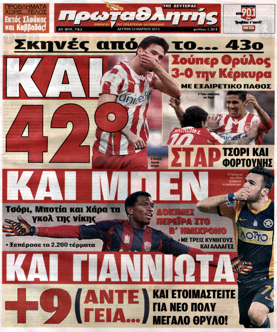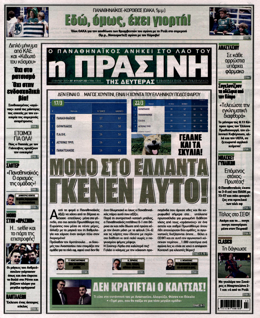 Οι αθλητικές εφημερίδες Enikos Newsroom 07:51, Δευτέρα 23 Μαρτίου 2015 Media Διαβάστε τα πρωτοσέλιδα των σημερινών αθλητικών εφημερίδων: ΑΘΛΗΤΙΚΕΣ ΕΦΗΜΕΡΙΔΕΣ ΕΦΗΜΕΡΙΔΕΣ ΠΡΩΤΟΣΕΛΙΔΑ Μοιράσου το: σχολίασε κι εσύ (0 σχόλια) Ακολουθήστε το enikos.gr στο Google News και μάθετε πρώτοι όλες τις ειδήσεις Δείτε όλες τις τελευταίες ειδήσεις από την Ελλάδα και τον Κόσμο στο enikos.gr Ειδήσεις Ροή Ειδήσεων 2 ώρες πριν ΣΥΡΙΖΑ: Διαγράφεται ο ευρωβουλευτής Νίκος Παππάς μετά την μήνυση δημοσιογράφου για ξυλοδαρμό 37 λεπτά πριν Τουρκία: Επιδιώκει την επιστροφή των S-400 στη Ρωσία – Οι αμερικανικές πιέσεις 48 λεπτά πριν ΟΠΕΚΕΠΕ: Ελεύθερες με όρους η σύζυγος και η αδελφή του φερόμενου αρχηγού – Τι υποστήριξαν 3 ώρες πριν Πώς στήθηκε η επιχείρηση «Ίπαλλος» που οδήγησε στη σύλληψη του «Έλληνα Εσκομπάρ» – «Ο πόλεμος ενάντια στους εμπόρους ναρκωτικών θα συνεχιστεί» 3 ώρες πριν Κυψέλη: Στη φυλακή η 16χρονη που μαχαίρωσε συμμαθήτριά της 3 ώρες πριν Τα 3 ζώδια που θα δουν τη ζωή τους να αλλάζει ριζικά το 2026 – «Όλα γίνονται καλύτερα σταδιακά» 8 ώρες πριν «Δεν είχα κλάψει από τότε που διαγνώστηκα με καρκίνο, ώσπου ένα τηλεφώνημα με έκανε να λυγίσω» – Η συγκλονιστική εξομολόγηση ενός άνδρα 4 ώρες πριν Ο σπάνιος σεισμός που έλυσε τα χέρια των επιστημόνων – Αποκάλυψε ακριβώς όσα αναζητούσαν 10 ώρες πριν 20 χρόνια τα Χριστούγεννα ξεκινούν στα Public με μεγάλη ποικιλία σε δώρα! 4 λεπτά πριν Μητσοτάκης: Το γούρι με τα αρχικά του για το 2026 που έδωσε στους βουλευτές της ΝΔ – ΦΩΤΟ 8 λεπτά πριν Καβάλα – Παναθηναϊκός 1-2: Ο Ταμπόρδα έστειλε τους Πράσινους απευθείας στα προημιτελικά του Κυπέλλου Ελλάδας 13 λεπτά πριν Δημήτρης Ήμελλος: Η συγκινητική ανάρτηση της αδελφής του, για τον ένα χρόνο από τον θάνατό του – «Πήγες στον Θεό για να μας θυμίσεις…» 18 λεπτά πριν Κρήτη: Η ανακοίνωση της ΕΛΑΣ για την σύλληψη του 54χρονου – Ζήτησε 5.000 ευρώ από την οικογένεια του 33χρονου γιατρού για να τον βρει μέσω «κβαντικής τεχνολογίας» 23 λεπτά πριν Διπλωματικές πηγές: Το πρώτο τρίμηνο του 2026 το Ανώτατο Συμβούλιο Συνεργασίας Ελλάδας-Τουρκίας ENIKOS NETWORK 2,6 εκατομμύρια πολίτες έχουν ήδη εμβολιαστεί κατά της γρίπης Σοβαροί κίνδυνοι από τη λάθος χορήγηση φαρμάκου για τις αιμορραγίες-Συστάσεις προς τους γιατρούς Έρχεται νέα ενίσχυση 17.500 ευρώ από τη ΔΥΠΑ για ανέργους- Όλες οι λεπτομέρειες «Αναταράξεις» στην εφοδιαστική αλυσίδα από τα μπλόκα: Επιστολή του Συνδέσμου Θεσσαλικών Βιομηχανιών στον πρωθυπουργό -Τι αν... Χαρτογραφώντας το «σημείο χωρίς επιστροφή»: Για πρώτη φορά αποκαλύπτεται με λεπτομέρεια το ακανθώδες όριο της ατμόσφαιρας τ... Η Google καταργεί τη λειτουργία «dark web report» – Πώς θα μπορούν οι χρήστες να διαγράφουν τα δεδομένα τους περισσότερα 12:35 , Τετάρτη 17 Δεκεμβρίου 2025 Μίρκα Παπακωνσταντίνου: «Δεν ήμουν αισιόδοξη για τα νούμερα – Είμαι ρεαλίστρια» Στα γυρίσματα του εορταστικού επεισοδίου της αγαπημένης σειράς “Το Σόι Σου”, βρέθηκε η κάμερα ... 12:12 , Τετάρτη 17 Δεκεμβρίου 2025 Ακούστε την εκπομπή του Νίκου Χατζηνικολάου 17/12/2025 Ακούστε την εκπομπή του Νίκου Χατζηνικολάου στον ραδιοφωνικό σταθμό RealFm 97,8, την Τετάρτη 1... 11:35 , Τετάρτη 17 Δεκεμβρίου 2025 Home Alone: Το σπίτι της ταινίας θα ανακαινιστεί – Επιστροφή στην αισθητική της δεκαετίας του ’90 Οι νέοι ιδιοκτήτες του πραγματικού σπιτιού που παρουσιάζεται στην κλασική ταινία του 1990 «Hom... 11:25 , Τετάρτη 17 Δεκεμβρίου 2025 Grand Hotel: Απόψε το τελευταίο επεισόδιο της χρονιάς – Όλα τα μυστικά μένουν εδώ 