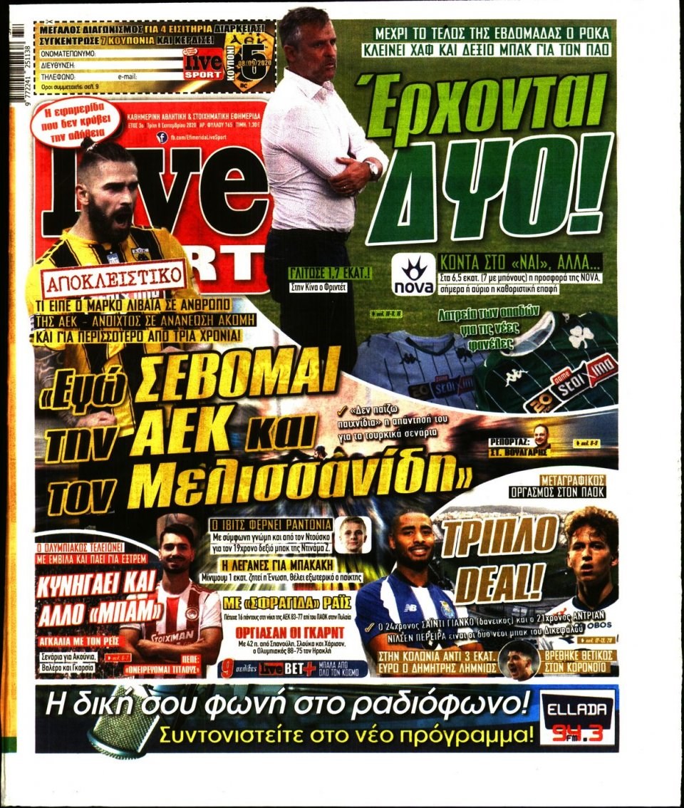 Οι αθλητικές εφημερίδες 8/9/2020 Σήφης Γαρυφαλάκης 06:30, Τρίτη 08 Σεπτεμβρίου 2020 Media Διαβάστε τα πρωτοσέλιδα των αθλητικών εφημερίδων… ΑΘΛΗΤΙΚΕΣ ΕΦΗΜΕΡΙΔΕΣ ΕΦΗΜΕΡΙΔΕΣ ΠΡΩΤΟΣΕΛΙΔΑ ΠΡΩΤΟΣΕΛΙΔΑ ΕΦΗΜΕΡΙΔΩΝ Μοιράσου το: σχολίασε κι εσύ (0 σχόλια) Ακολουθήστε το enikos.gr στο Google News και μάθετε πρώτοι όλες τις ειδήσεις Δείτε όλες τις τελευταίες ειδήσεις από την Ελλάδα και τον Κόσμο στο enikos.gr Ειδήσεις Ροή Ειδήσεων 4 ώρες πριν Υπόθεση Έπσταϊν: Το Υπουργείο Δικαιοσύνης δημοσιοποίησε μια σειρά από εξαιρετικά επεξεργασμένα αρχεία – «Λείπουν τα πιο σημαντικά έγγραφα», λένε οι Δημοκρατικοί 45 λεπτά πριν Γιορτές με μπλόκα για τους αγρότες: Ανοίγουν διόδια και μοιράζουν προϊόντα στους ταξιδιώτες 1 ώρα πριν Εξαφάνιση 33χρονου γιατρού στην Κρήτη: «Άναψα τα φώτα, τρόμαξε και άρχισε να τρέχει στα χωράφια» – Η τελευταία διαδρομή και η μαρτυρία «κλειδί» 3 ώρες πριν Ο «χάρτης» με τις αυξήσεις και τις φοροελαφρύνσεις του 2026 – Ποιοι και πόσα κερδίζουν 1 ώρα πριν Τα αρχεία του Έπσταϊν αποκαλύπτουν φωτογραφία του έκπτωτου πρίγκιπα Άντριου – Είναι ξαπλωμένος στην αγκαλιά 5 γυναικών 1 ώρα πριν Μία νέα «χρυσή» περίοδος αρχίζει για 3 ζώδια από σήμερα – «Μία αναπάντεχη ευκαιρία οδηγεί στην επιτυχία» 5 ώρες πριν Αυγά: Πόσα μπορείτε να τρώτε την ημέρα με ασφάλεια για μέγιστη πρόσληψη πρωτεΐνης 3 ώρες πριν Αρχαιολόγοι ανακάλυψαν σε χωράφι απεικόνιση 600 ετών ενός Αγίου – Τα στοιχεία που δείχνουν ότι μαρτύρησε 2 ώρες πριν Αγχώνεται για το χριστουγεννιάτικο δώρο που πήρε στην πλούσια σύντροφό του – «Φοβάμαι πως θα το βρει φθηνιάρικο, φοράει βραχιόλια Cartier» 2 λεπτά πριν Τα Labubu «μετακομίζουν» στο Χόλιγουντ: Η Sony Pictures ετοιμάζει live-action ταινία με τον σκηνοθέτη του «Wonka» 10 λεπτά πριν Νέες ταυτότητες: Μεγάλη αναμονή για ραντεβού στην Αττική – Τέλος τα ταξίδια εκτός Ελλάδος από τον Αύγουστο για όσους δεν έχουν αλλάξει 18 λεπτά πριν Οι 7 φράσεις που δεν λένε ποτέ οι συναισθηματικά έξυπνοι άνθρωποι κατά τη διάρκεια ενός καβγά 22 λεπτά πριν Τηλεθέαση (19/12): Ανατροπές και πρωτιές στην πρωινή ζώνη 29 λεπτά πριν Πώς η κλιματική αλλαγή επηρεάζει εγκύους και βρέφη – Οι επιπτώσεις των υψηλών θερμοκρασιών ENIKOS NETWORK Είστε μόνιμα απρόσεκτοι; 3 σημάδια που δείχνουν ότι μπορεί να είναι σύμπτωμα πάθησης Πόσα κιλά παίρνουμε πραγματικά τα Χριστούγεννα, σύμφωνα με την επιστήμη – Πώς να το αποτρέψουμε; Επίδομα παιδιού: Τι αλλάζει από το 2026 – Το όφελος από τις φορολογικές ελαφρύνσεις Mega χριστουγεννιάτικη φορολοταρία: «Κλείδωσε» η ημερομηνία για την κλήρωση – Ερωτήσεις και απαντήσεις Χαρτογραφώντας το «σημείο χωρίς επιστροφή»: Για πρώτη φορά αποκαλύπτεται με λεπτομέρεια το ακανθώδες όριο της ατμόσφαιρας τ... Η Google καταργεί τη λειτουργία «dark web report» – Πώς θα μπορούν οι χρήστες να διαγράφουν τα δεδομένα τους περισσότερα 09:30 , Σάββατο 20 Δεκεμβρίου 2025 «Porto Leone: Στη γειτονιά με τα κόκκινα φανάρια» – Ο Χρόνης αποκαλύπτει στην Αλεξάνδρα το μυστικό για το παιδί της Λένας Η μεγάλη δραματική σειρά του Apha «Porto Leone: Στη γειτονιά με τα κόκκινα φανάρια» μας μεταφέ... 08:14 , Σάββατο 20 Δεκεμβρίου 2025 Τρομεροί γονείς: Η Μαρία Καβογιάννη εισβάλλει στο σπίτι της οικογένειας Στεφανίδη Όσα θα δούμε στο νέο διπλό επεισόδιο της σειράς «Τρομεροί γονείς», σήμερα Σάββατο 20 Δεκεμβρίο... 05:48 , Σάββατο 20 Δεκεμβρίου 2025 Οι οικονομικές εφημερίδες 20/12/2025 Διαβάστε τα πρωτοσέλιδα από τις οικονομικές εφημερίδες, σήμερα 20/12/2025. 05:43 , Σάββατο 20 Δεκεμβρίου