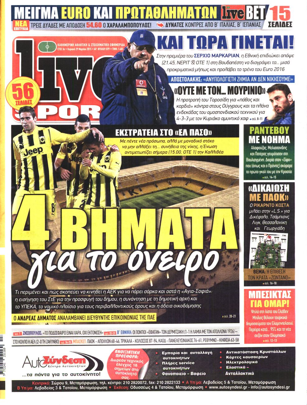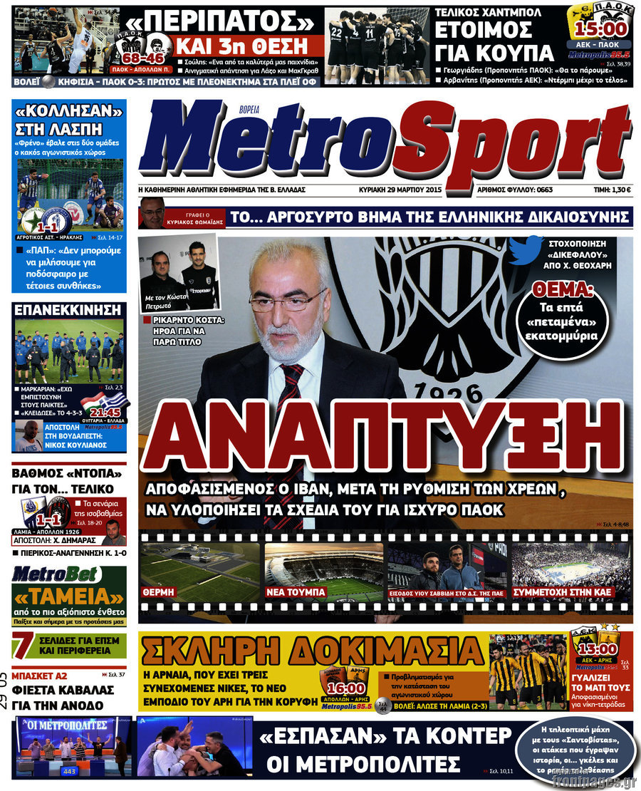 Οι αθλητικές εφημερίδες Enikos Newsroom 07:49, Κυριακή 29 Μαρτίου 2015 Media Διαβάστε τα σημερινά πρωτοσέλιδα των αθλητικών εφημερίδων: ΑΘΛΗΤΙΚΕΣ ΕΦΗΜΕΡΙΔΕΣ ΕΦΗΜΕΡΙΔΕΣ ΠΡΩΤΟΣΕΛΙΔΑ Μοιράσου το: σχολίασε κι εσύ (0 σχόλια) Ακολουθήστε το enikos.gr στο Google News και μάθετε πρώτοι όλες τις ειδήσεις Δείτε όλες τις τελευταίες ειδήσεις από την Ελλάδα και τον Κόσμο στο enikos.gr Ειδήσεις Ροή Ειδήσεων 1 ώρα πριν Υπόθεση Έπσταϊν: Το Υπουργείο Δικαιοσύνης δημοσιοποίησε μια σειρά από εξαιρετικά επεξεργασμένα αρχεία – «Λείπουν τα πιο σημαντικά έγγραφα», λένε οι Δημοκρατικοί 32 λεπτά πριν Ο «χάρτης» με τις αυξήσεις και τις φοροελαφρύνσεις του 2026 – Ποιοι και πόσα κερδίζουν 11 ώρες πριν Χριστούγεννα στα μπλόκα: Επιμένουν στις κινητοποιήσεις τους οι αγρότες – Ανοίγουν τα διόδια το Σαββατοκύριακο 2 ώρες πριν ΟΝΕΧ – MEGATUGS: Ξεκίνησε η ναυπήγηση ρυμουλκών στην Ελλάδα – Προθάλαμος πολεμικών πλοίων – Δείτε φωτογραφίες και βίντεο 1 ώρα πριν Καιρός: Αλλαγή σκηνικού σήμερα με βροχές και πτώση της θερμοκρασίας – Οι προβλέψεις των μετεωρολόγων για τα Χριστούγεννα 3 ώρες πριν Αυγά: Πόσα μπορείτε να τρώτε την ημέρα με ασφάλεια για μέγιστη πρόσληψη πρωτεΐνης 4 ώρες πριν Τα ζώδια σήμερα, Σάββατο 20 Δεκεμβρίου: Παρθένοι, το σύμπαν σας δίνει το κλειδί 3 ώρες πριν Οπτική ψευδαίσθηση: Μόνο αν είσαι ο Σέρλοκ Χολμς θα βρεις τον αριθμό «87» σε 7 δευτερόλεπτα 1 ώρα πριν Αρχαιολόγοι ανακάλυψαν σε χωράφι απεικόνιση 600 ετών ενός Αγίου – Τα στοιχεία που δείχνουν ότι μαρτύρησε 3 λεπτά πριν Παιδική υπέρταση: Μια σιωπηλή απειλή που αυξάνεται διεθνώς 4 λεπτά πριν Αγχώνεται για το χριστουγεννιάτικο δώρο που πήρε στην πλούσια σύντροφό του – «Φοβάμαι πως θα το βρει φθηνιάρικο, φοράει βραχιόλια Cartier» 11 λεπτά πριν Enerwave: Το νέο «ρεύμα» στη λιανική ενέργειας που αλλάζει την εμπειρία του καταναλωτή 15 λεπτά πριν Γιώργος Μαζωνάκης: Τη Δευτέρα η μήνυση του τραγουδιστή κατά του 22χρονου 24 λεπτά πριν Αμαλία Κωστοπούλου: Το μήνυμα για το χειρουργείο στο γόνατο – «Αυτός ο τραυματισμός μού στέρησε πολλά…» ENIKOS NETWORK Πόσα κιλά παίρνουμε πραγματικά τα Χριστούγεννα, σύμφωνα με την επιστήμη – Πώς να το αποτρέψουμε; Το δημοφιλές ρόφημα που αυξάνει την πίεση πιο γρήγορα και από το αλάτι Mega χριστουγεννιάτικη φορολοταρία: «Κλείδωσε» η ημερομηνία για την κλήρωση – Ερωτήσεις και απαντήσεις Αναστολή μέτρων αναγκαστικής εκτέλεσης για κτηνοτρόφους που πλήττονται από την ευλογιά των αιγοπροβάτων Χαρτογραφώντας το «σημείο χωρίς επιστροφή»: Για πρώτη φορά αποκαλύπτεται με λεπτομέρεια το ακανθώδες όριο της ατμόσφαιρας τ... Η Google καταργεί τη λειτουργία «dark web report» – Πώς θα μπορούν οι χρήστες να διαγράφουν τα δεδομένα τους περισσότερα 08:14 , Σάββατο 20 Δεκεμβρίου 2025 Τρομεροί γονείς: Η Μαρία Καβογιάννη εισβάλλει στο σπίτι της οικογένειας Στεφανίδη Όσα θα δούμε στο νέο διπλό επεισόδιο της σειράς «Τρομεροί γονείς», σήμερα Σάββατο 20 Δεκεμβρίο... 05:48 , Σάββατο 20 Δεκεμβρίου 2025 Οι οικονομικές εφημερίδες 20/12/2025 Διαβάστε τα πρωτοσέλιδα από τις οικονομικές εφημερίδες, σήμερα 20/12/2025. 05:43 , Σάββατο 20 Δεκεμβρίου 2025 Οι αθλητικές εφημερίδες 20/12/2025 Διαβάστε τα πρωτοσέλιδα από τις αθλητικές εφημερίδες, σήμερα 20/12/2025. 05:38 , Σάββατο 20 Δεκεμβρίου 2025 Οι πολιτικές εφημερίδες 20/12/2025 Διαβάστε τα πρωτοσέλιδα από τις πολιτικές εφημερίδες, σήμερα 20/12/2025. ΤΕΛΕΥΤΑΙΕΣ ΕΙΔΗΣΕΙΣ 3 λεπτά πριν Παιδική υπέρταση: Μια σιωπηλή απειλή που αυξάνεται... 4 λεπτά πριν Αγχώνεται για το χριστ