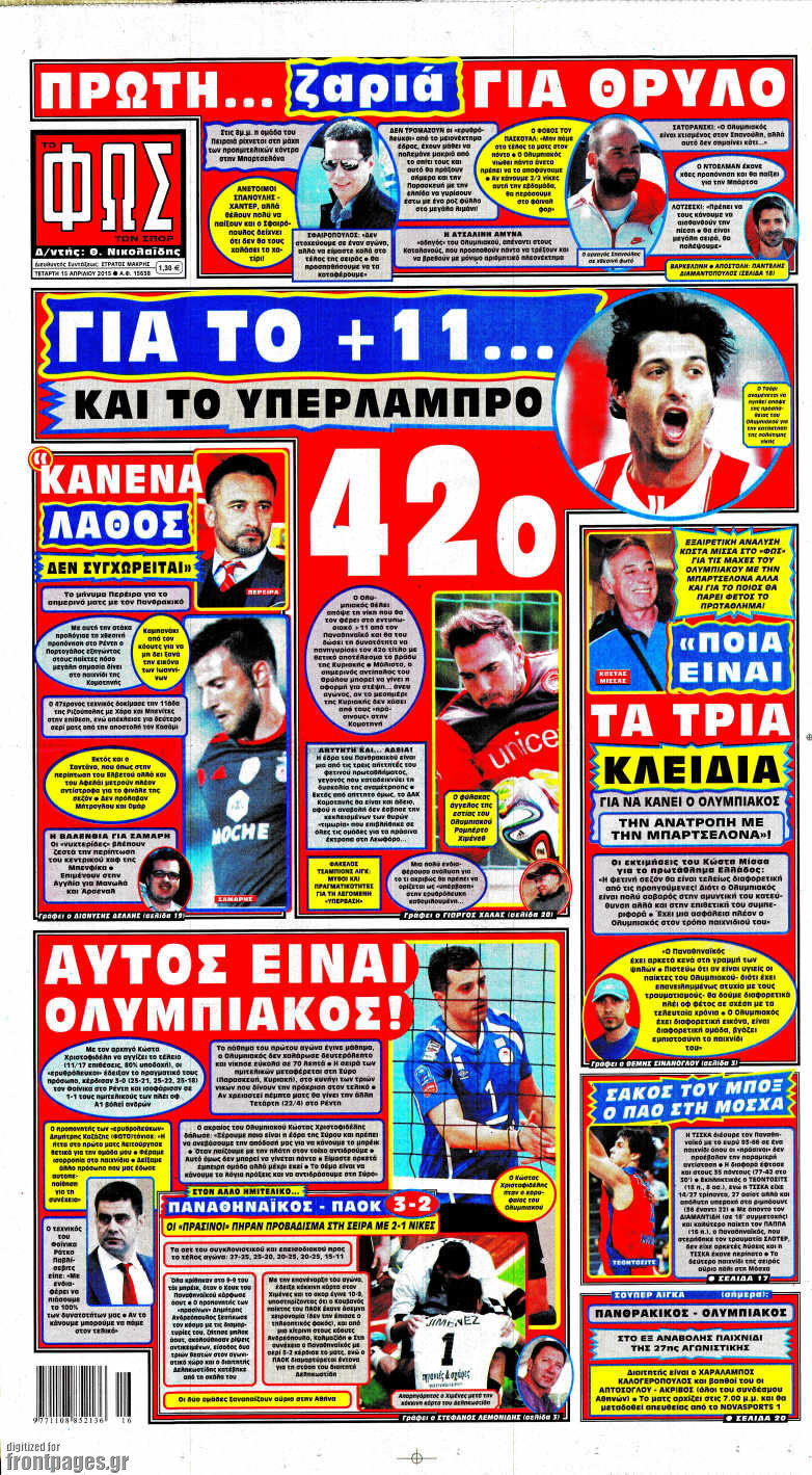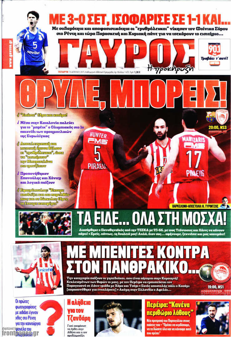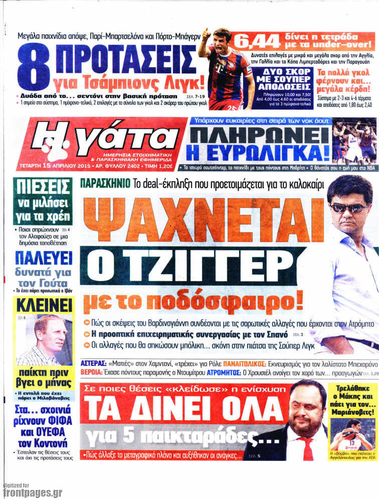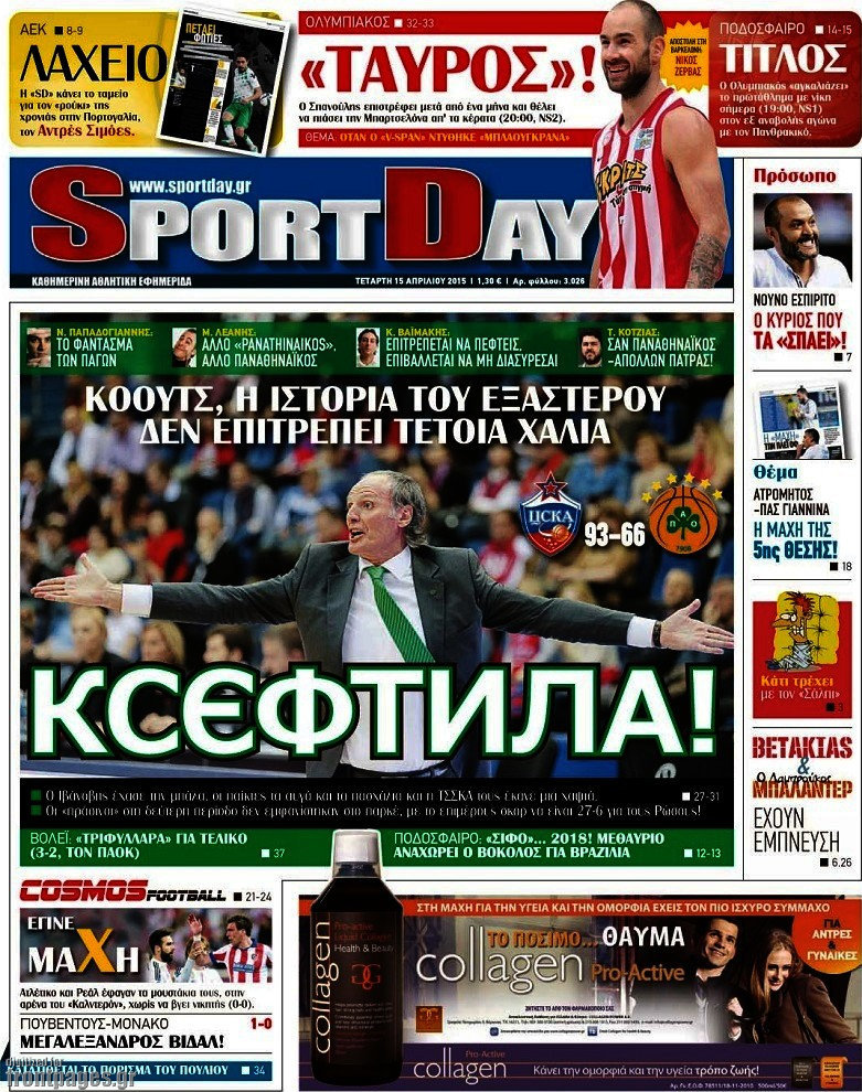 Οι αθλητικές εφημερίδες Enikos Newsroom 07:39, Τετάρτη 15 Απριλίου 2015 Media Διαβάστε τα σημερινά πρωτοσέλιδα των αθλητικών εφημερίδων: ΑΘΛΗΤΙΚΕΣ ΕΦΗΜΕΡΙΔΕΣ ΕΦΗΜΕΡΙΔΕΣ ΠΡΩΤΟΣΕΛΙΔΑ Μοιράσου το: σχολίασε κι εσύ (0 σχόλια) Ακολουθήστε το enikos.gr στο Google News και μάθετε πρώτοι όλες τις ειδήσεις Δείτε όλες τις τελευταίες ειδήσεις από την Ελλάδα και τον Κόσμο στο enikos.gr Ειδήσεις Ροή Ειδήσεων 3 ώρες πριν Χριστούγεννα στα μπλόκα: Επιμένουν στις κινητοποιήσεις τους οι αγρότες – Ανοίγουν τα διόδια το Σαββατοκύριακο 3 ώρες πριν Ουκρανία: Η άνευ προηγουμένου επίθεση σε ρωσικό τάνκερ στη Μεσόγειο και το μήνυμα προς στον Πούτιν – Το «μακρύ χέρι» του Κιέβου 3 ώρες πριν Πούτιν: Τα μηνύματα σε Ευρώπη και ΝΑΤΟ από το μαραθώνιο «σόου» του – Η απαίτηση για «σεβασμό» και η ειρήνη «με τους όρους» της Μόσχας 3 ώρες πριν Τραμπ: Δεν αποκλείει την πιθανότητα ενός πολέμου στη Βενεζουέλα – «Ο Μαδούρο ξέρει καλύτερα από τον καθένα τι ακριβώς θέλω» 4 ώρες πριν Συνεχίζει να προκαλεί ο Μίτσκοσκι: «Για μένα το όνομα Μακεδονία είναι ιερό» 3 ώρες πριν Ανακαλύφθηκαν αρχαία χρυσά νομίσματα 2.200 ετών που απεικονίζουν τον θεό Απόλλωνα – Η άγνωστη σύνδεση με τον Φίλιππο Β΄ της Μακεδονίας 4 ώρες πριν Ύπνος: Μια κρυφή κατάσταση του εγκεφάλου πριν από τον ύπνο μπορεί να είναι το “κλειδί” για υψηλή ευφυΐα και δημιουργικότητα 5 ώρες πριν Αριθμολογία: Οι άνθρωποι που έχουν γεννηθεί αυτές τις 4 ημερομηνίες, συχνά παρεξηγούνται – «Η καλοσύνη τους κρύβει τεράστια δύναμη» 6 ώρες πριν Ξεχάστε το καθάρισμα το Σαββατοκύριακο: Ο «κανόνας των 20 λεπτών» που θα σας λύσει τα χέρια 14 λεπτά πριν Euroleague: Επέστρεψε στις νίκες ο Ολυμπιακός, πήρε την ματσάρα της χρονιάς η Μπάρτσα – Τα αποτελέσματα και η βαθμολογία 29 λεπτά πριν Συρία: Μαζικά πλήγματα των ΗΠΑ σε θέσεις του Ισλαμικού Κράτους – Χέγκσεθ: «Δεν είναι αρχή πολέμου, είναι μια δήλωση εκδίκησης» για το θάνατο των στρατιωτών μας 42 λεπτά πριν Ουκρανία: Ολοκληρώθηκαν οι συνομιλίες με τους Αμερικανούς κι Ευρωπαίους διαπραγματευτές 57 λεπτά πριν Μπαρτσελόνα – Μπασκόνια 134-124: Οι «μπλαουγκράνα» πήραν το ματς της χρονιάς ύστερα από τρεις παρατάσεις 1 ώρα πριν Φαίη Σκορδά: «Παλιότερα τα κομπλιμέντα τα προσπερνούσα, τώρα τα έχω ανάγκη» ENIKOS NETWORK Το ΕΚΑΒ τιμήθηκε από την Ακαδημία Αθηνών για τα 40 χρόνια προσφοράς του Έχετε πραγματικά μεγάλη καρδιά; 10 χαρακτηριστικά όσων έχουν καλοσύνη Αναστολή μέτρων αναγκαστικής εκτέλεσης για κτηνοτρόφους που πλήττονται από την ευλογιά των αιγοπροβάτων Πλήρης επάρκεια προϊόντων στις λαϊκές της Αττικής, παρά τις αγροτικές κινητοποιήσεις – Τι απαντούν οι πωλητές Χαρτογραφώντας το «σημείο χωρίς επιστροφή»: Για πρώτη φορά αποκαλύπτεται με λεπτομέρεια το ακανθώδες όριο της ατμόσφαιρας τ... Η Google καταργεί τη λειτουργία «dark web report» – Πώς θα μπορούν οι χρήστες να διαγράφουν τα δεδομένα τους περισσότερα 22:42 , Παρασκευή 19 Δεκεμβρίου 2025 Γιώργος Γιαννόπουλος για “Το σόι σου”: “Είναι ευτυχία και ευλογία αυτή η σειρά” «Είναι ευτυχία και ευλογία η συγκυρία αυτής της σειράς», θα πει ο Γιώργος Γιαννόπουλος -ο αγαπ... 20:37 , Παρασκευή 19 Δεκεμβρίου 2025 Don’t Forget The Lyrics: Η Έλλη Κοκκίνου υποδέχεται 4 παίκτες που θα κάνουν τα πάντα για να μη χάσουν ούτε… μισή λέξη από τους στίχους Το «Don’t Forget The Lyrics» επιστρέφει απόψε, Παρασκευή 19 Δεκεμβρίου, στις 21:00 με νέο επει... 19:31 , Παρασκευή 19 Δεκεμβρίου 2025 GNTM: Απόψε ο μεγάλος τελικός για τους 4 φιναλίστ Έπειτα από μήνες γεμάτου