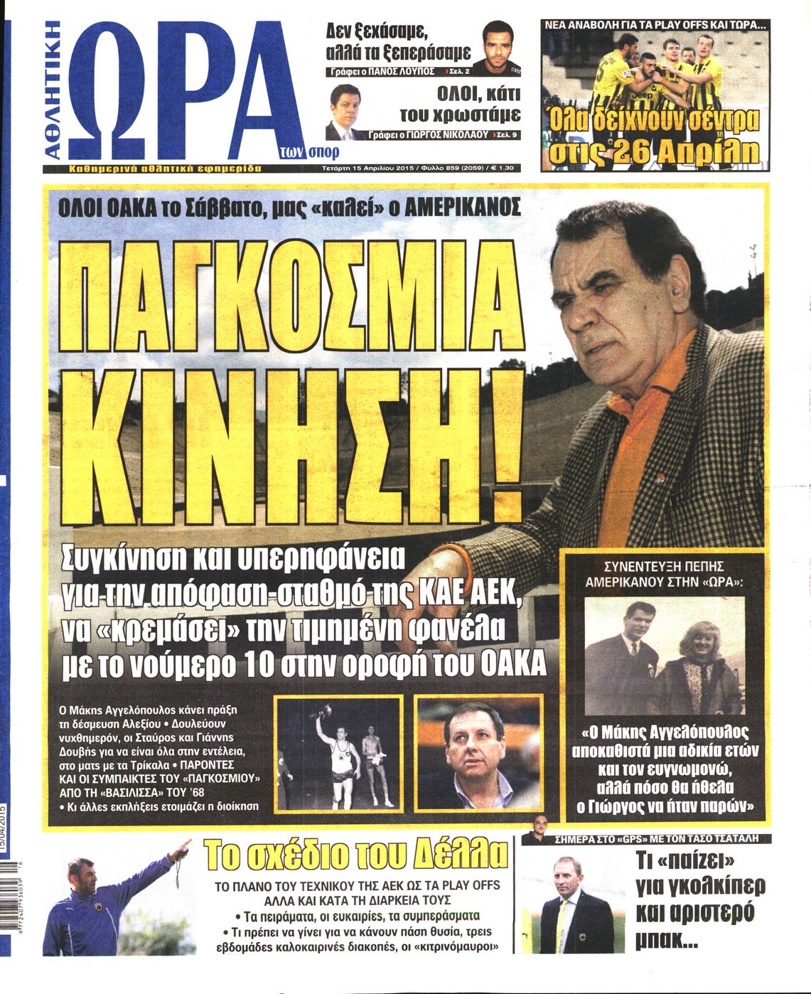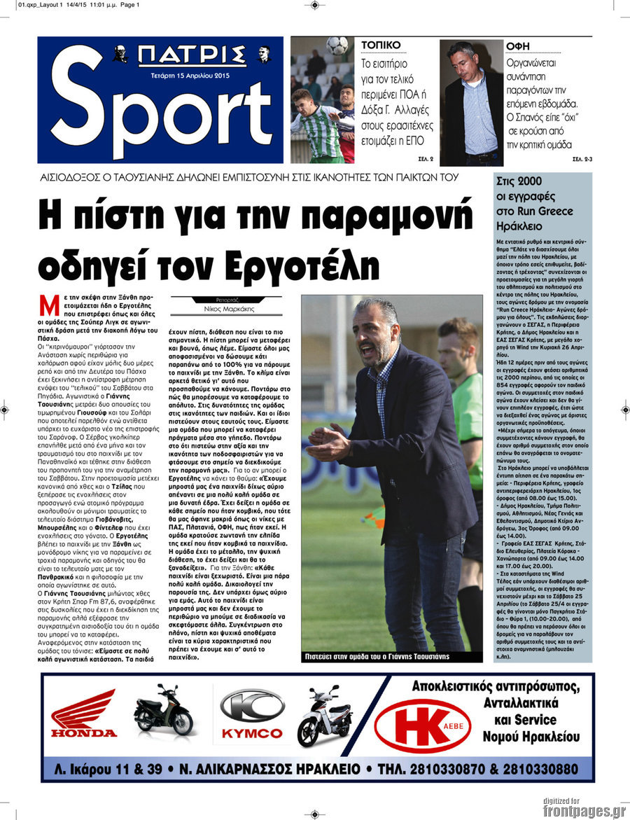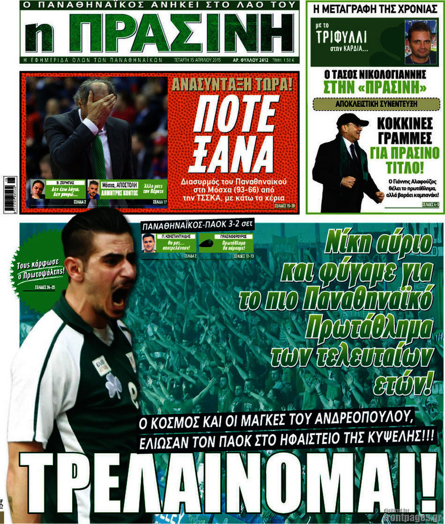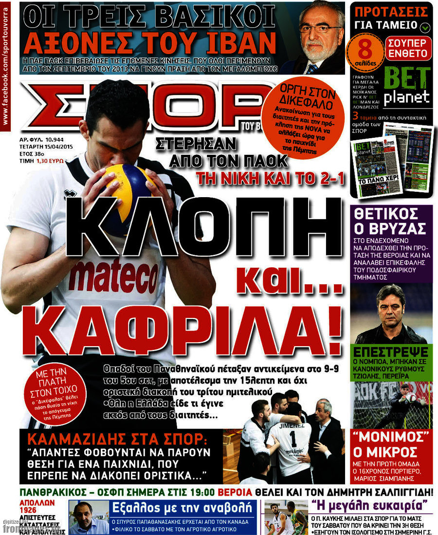 Οι αθλητικές εφημερίδες Enikos Newsroom 07:39, Τετάρτη 15 Απριλίου 2015 Media Διαβάστε τα σημερινά πρωτοσέλιδα των αθλητικών εφημερίδων: ΑΘΛΗΤΙΚΕΣ ΕΦΗΜΕΡΙΔΕΣ ΕΦΗΜΕΡΙΔΕΣ ΠΡΩΤΟΣΕΛΙΔΑ Μοιράσου το: σχολίασε κι εσύ (0 σχόλια) Ακολουθήστε το enikos.gr στο Google News και μάθετε πρώτοι όλες τις ειδήσεις Δείτε όλες τις τελευταίες ειδήσεις από την Ελλάδα και τον Κόσμο στο enikos.gr Ειδήσεις Ροή Ειδήσεων 3 ώρες πριν Χριστούγεννα στα μπλόκα: Επιμένουν στις κινητοποιήσεις τους οι αγρότες – Ανοίγουν τα διόδια το Σαββατοκύριακο 3 ώρες πριν Ουκρανία: Η άνευ προηγουμένου επίθεση σε ρωσικό τάνκερ στη Μεσόγειο και το μήνυμα προς στον Πούτιν – Το «μακρύ χέρι» του Κιέβου 3 ώρες πριν Πούτιν: Τα μηνύματα σε Ευρώπη και ΝΑΤΟ από το μαραθώνιο «σόου» του – Η απαίτηση για «σεβασμό» και η ειρήνη «με τους όρους» της Μόσχας 3 ώρες πριν Τραμπ: Δεν αποκλείει την πιθανότητα ενός πολέμου στη Βενεζουέλα – «Ο Μαδούρο ξέρει καλύτερα από τον καθένα τι ακριβώς θέλω» 4 ώρες πριν Συνεχίζει να προκαλεί ο Μίτσκοσκι: «Για μένα το όνομα Μακεδονία είναι ιερό» 3 ώρες πριν Ανακαλύφθηκαν αρχαία χρυσά νομίσματα 2.200 ετών που απεικονίζουν τον θεό Απόλλωνα – Η άγνωστη σύνδεση με τον Φίλιππο Β΄ της Μακεδονίας 4 ώρες πριν Ύπνος: Μια κρυφή κατάσταση του εγκεφάλου πριν από τον ύπνο μπορεί να είναι το “κλειδί” για υψηλή ευφυΐα και δημιουργικότητα 5 ώρες πριν Αριθμολογία: Οι άνθρωποι που έχουν γεννηθεί αυτές τις 4 ημερομηνίες, συχνά παρεξηγούνται – «Η καλοσύνη τους κρύβει τεράστια δύναμη» 6 ώρες πριν Ξεχάστε το καθάρισμα το Σαββατοκύριακο: Ο «κανόνας των 20 λεπτών» που θα σας λύσει τα χέρια 14 λεπτά πριν Euroleague: Επέστρεψε στις νίκες ο Ολυμπιακός, πήρε την ματσάρα της χρονιάς η Μπάρτσα – Τα αποτελέσματα και η βαθμολογία 29 λεπτά πριν Συρία: Μαζικά πλήγματα των ΗΠΑ σε θέσεις του Ισλαμικού Κράτους – Χέγκσεθ: «Δεν είναι αρχή πολέμου, είναι μια δήλωση εκδίκησης» για το θάνατο των στρατιωτών μας 42 λεπτά πριν Ουκρανία: Ολοκληρώθηκαν οι συνομιλίες με τους Αμερικανούς κι Ευρωπαίους διαπραγματευτές 57 λεπτά πριν Μπαρτσελόνα – Μπασκόνια 134-124: Οι «μπλαουγκράνα» πήραν το ματς της χρονιάς ύστερα από τρεις παρατάσεις 1 ώρα πριν Φαίη Σκορδά: «Παλιότερα τα κομπλιμέντα τα προσπερνούσα, τώρα τα έχω ανάγκη» ENIKOS NETWORK Το ΕΚΑΒ τιμήθηκε από την Ακαδημία Αθηνών για τα 40 χρόνια προσφοράς του Έχετε πραγματικά μεγάλη καρδιά; 10 χαρακτηριστικά όσων έχουν καλοσύνη Αναστολή μέτρων αναγκαστικής εκτέλεσης για κτηνοτρόφους που πλήττονται από την ευλογιά των αιγοπροβάτων Πλήρης επάρκεια προϊόντων στις λαϊκές της Αττικής, παρά τις αγροτικές κινητοποιήσεις – Τι απαντούν οι πωλητές Χαρτογραφώντας το «σημείο χωρίς επιστροφή»: Για πρώτη φορά αποκαλύπτεται με λεπτομέρεια το ακανθώδες όριο της ατμόσφαιρας τ... Η Google καταργεί τη λειτουργία «dark web report» – Πώς θα μπορούν οι χρήστες να διαγράφουν τα δεδομένα τους περισσότερα 22:42 , Παρασκευή 19 Δεκεμβρίου 2025 Γιώργος Γιαννόπουλος για “Το σόι σου”: “Είναι ευτυχία και ευλογία αυτή η σειρά” «Είναι ευτυχία και ευλογία η συγκυρία αυτής της σειράς», θα πει ο Γιώργος Γιαννόπουλος -ο αγαπ... 20:37 , Παρασκευή 19 Δεκεμβρίου 2025 Don’t Forget The Lyrics: Η Έλλη Κοκκίνου υποδέχεται 4 παίκτες που θα κάνουν τα πάντα για να μη χάσουν ούτε… μισή λέξη από τους στίχους Το «Don’t Forget The Lyrics» επιστρέφει απόψε, Παρασκευή 19 Δεκεμβρίου, στις 21:00 με νέο επει... 19:31 , Παρασκευή 19 Δεκεμβρίου 2025 GNTM: Απόψε ο μεγάλος τελικός για τους 4 φιναλίστ Έπειτα από μήνες γεμάτου