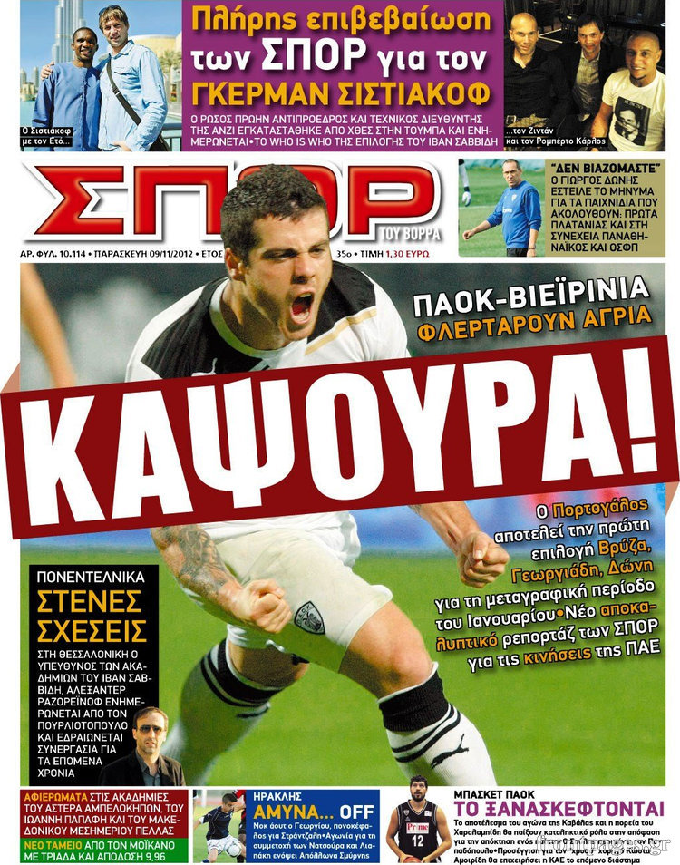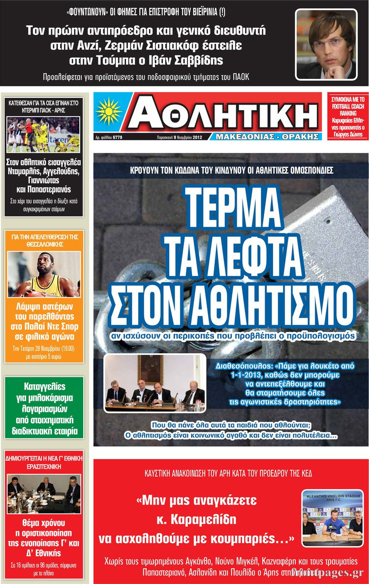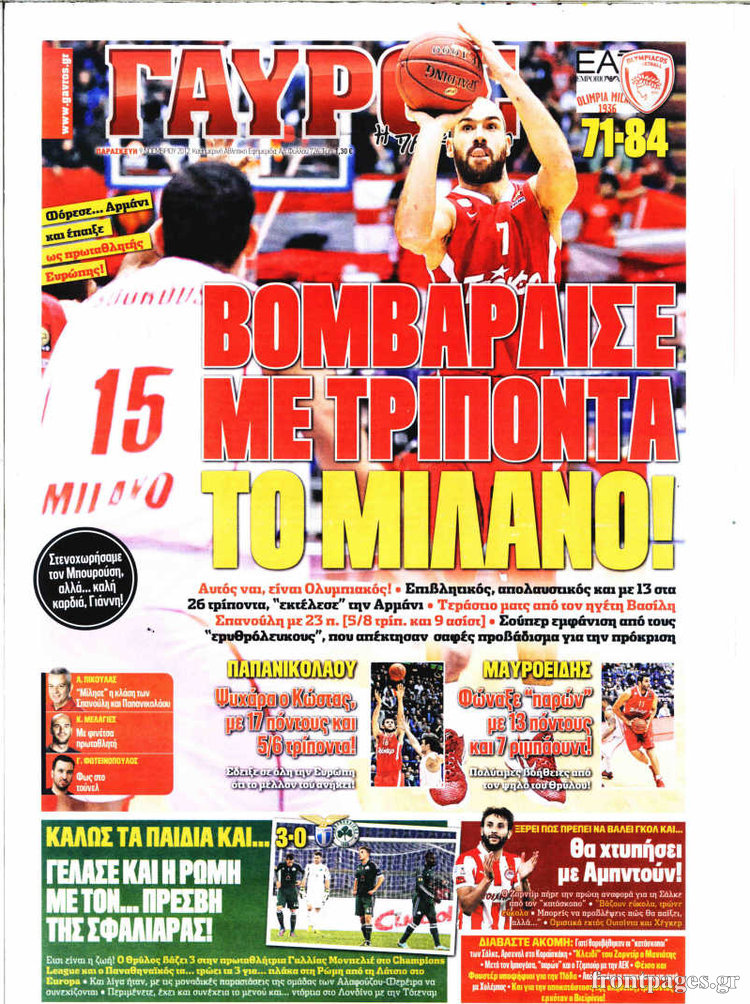 Οι αθλητικές εφημερίδες Enikos Newsroom 08:53, Παρασκευή 09 Νοεμβρίου 2012 Media Τα σημερινά πρωτοσέλιδα των αθλητικών εφημερίδων. ΑΘΛΗΤΙΚΑ ΑΘΛΗΤΙΚΕΣ ΕΦΗΜΕΡΙΔΕΣ ΕΦΗΜΕΡΙΔΕΣ Μοιράσου το: σχολίασε κι εσύ (0 σχόλια) Ακολουθήστε το enikos.gr στο Google News και μάθετε πρώτοι όλες τις ειδήσεις Δείτε όλες τις τελευταίες ειδήσεις από την Ελλάδα και τον Κόσμο στο enikos.gr Ειδήσεις Ροή Ειδήσεων 3 ώρες πριν Ακίλα Σάλεχ: «Άκυρο» το τουρκολιβυκό μνημόνιο λέει ο πρόεδρος της λιβυκής Βουλής – Ανοίγει ο διάλογος με Ελλάδα, Αίγυπτο και Τουρκία 7 ώρες πριν Αγρότες: Την Τρίτη η απόφαση για διάλογο ή κλιμάκωση των κινητοποιήσεών τους – Πώς χαρακτηρίζουν τις ανακοινώσεις Τσιάρα και οι επόμενες κινήσεις 7 ώρες πριν Τραμπ για Ουκρανία: «Είμαστε πιο κοντά σε συμφωνία από ποτέ» – «Πολυεθνική δύναμη» προτείνουν οι Ευρωπαίοι 7 ώρες πριν Κυψέλη: Η 16χρονη που μαχαίρωσε την 14χρονη είχε συλληφθεί 3 φορές στο παρελθόν – Έβριζε καθηγητές, έβαζε φωτιές σε κάδους και εκβίαζε συμμαθητές της 6 ώρες πριν Τρομοκρατική επίθεση στο Σίδνεϊ: Θλίψη για τα 15 θύματα – Οργή στην εβραϊκή κοινότητα που προειδοποιούσε επί δύο χρόνια 7 ώρες πριν Επιστήμονες ίσως έλυσαν το μυστήριο γύρω από τα Χόμπιτ – Νέα έρευνα αποκαλύπτει πώς εξαφανίστηκαν 8 ώρες πριν Ύπνος: Η αρχαία μορφή άσκησης που αποδεικνύεται αποτελεσματική στην αντιμετώπιση της αϋπνίας, σύμφωνα με μελέτη 9 ώρες πριν Αριθμολογία: Ο τυχερός σας αριθμός, ανάλογα με τον μήνα γέννησής σας 10 ώρες πριν Πώς να μην μαραίνονται γρήγορα τα κομμένα λουλούδια: Το λάθος στην τοποθέτηση του βάζου που πρέπει να αποφεύγετε 15 δευτερόλεπτα πριν Οι οικονομικές εφημερίδες 16/12/2025 5 λεπτά πριν Οι αθλητικές εφημερίδες 16/12/2025 10 λεπτά πριν Οι πολιτικές εφημερίδες 16/12/2025 18 λεπτά πριν Τα ζώδια σήμερα, Τρίτη 16 Δεκεμβρίου: Ιχθύες, δεν χρειάζεται να έχετε όλες τις απαντήσεις 26 λεπτά πριν Εφημερεύοντα φαρμακεία σε Αθήνα και Θεσσαλονίκη (16/12) ENIKOS NETWORK Πότε το χρόνιο ροχαλητό να αποτελέσει ένδειξη κινδύνου για την καρδιά; Τι λένε οι ειδικοί Μάριος Θεμιστοκλέους: Το ΕΣΥ ενισχύεται, εκσυγχρονίζεται, αλλάζει ΕΒΕΠ για αγροτικές κινητοποιήσεις: Κάθε επιπλέον εβδομάδα προσθέτει περίπου 200 εκατ. ευρώ ζημιά Τι προβλέπει το νομοσχέδιο του υπουργείου Εθνικής Άμυνας – Oι αλλαγές στους μισθούς Σύγχρονος Νοστράδαμος: Προειδοποιεί για «μεγάλο γεγονός» τους επόμενους μήνες που θα συγκλονίσει τη Βρετανία και τον κόσμο Τεστ παρατηρητικότητας: Μπορείτε να βρείτε τις 3 διαφορές στις εικόνες με έναν πιγκουίνο σε 14 δευτερόλεπτα περισσότερα 05:48 , Τρίτη 16 Δεκεμβρίου 2025 Οι οικονομικές εφημερίδες 16/12/2025 Διαβάστε τα πρωτοσέλιδα από τις οικονομικές εφημερίδες, σήμερα 16/12/2025. 05:43 , Τρίτη 16 Δεκεμβρίου 2025 Οι αθλητικές εφημερίδες 16/12/2025 Διαβάστε τα πρωτοσέλιδα από τις αθλητικές εφημερίδες, σήμερα 16/12/2025. 05:38 , Τρίτη 16 Δεκεμβρίου 2025 Οι πολιτικές εφημερίδες 16/12/2025 Διαβάστε τα πρωτοσέλιδα από τις πολιτικές εφημερίδες, σήμερα 16/12/2025. 21:35 , Δευτέρα 15 Δεκεμβρίου 2025 Το Σπίτι Δίπλα Στο Ποτάμι: Η Ιουλία και ο Φωκάς μετακομίζουν στη Ρόδο – Δύο νέοι χαρακτήρες μπαίνουν στη σειρά Δύο νέοι, κομβικοί χαρακτήρες κάνουν την εμφάνισή τους αυτή την εβδομάδα στην αγαπημένη σειρά ... ΤΕΛΕΥΤΑΙΕΣ ΕΙΔΗΣΕΙΣ 5 λεπτά πριν Οι αθλητικές εφημερίδες 16/12/2025 10 λεπτά πριν Οι πολιτικές εφημερίδες 16/12/2025 18 λεπτά πριν Τα ζώδια σήμερα, Τρίτη 16 Δεκεμβρίου: Ιχθύες, δεν... 26 λεπτά πριν Εφημερεύοντα φαρμακεία σε Αθήνα και Θεσσαλονίκη (16/12) 33 λεπτά πριν Οκτώ νεκροί 