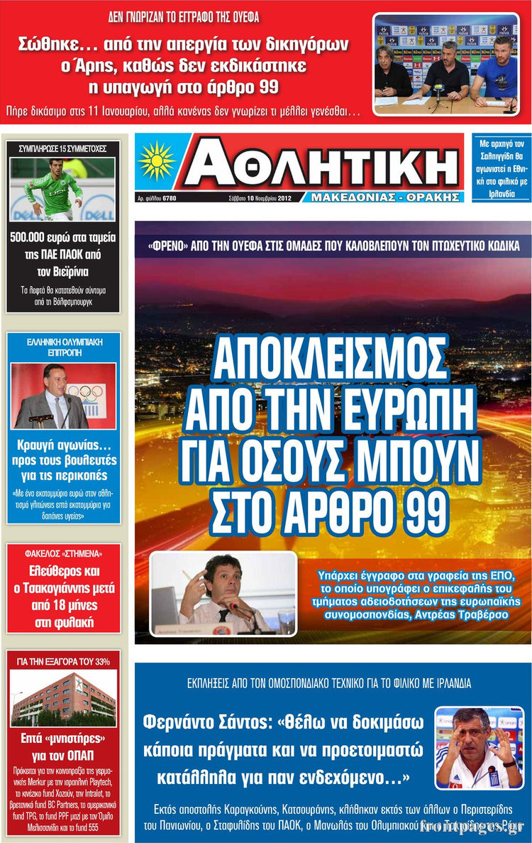 Οι αθλητικές εφημερίδες Enikos Newsroom 09:16, Σάββατο 10 Νοεμβρίου 2012 Media Οι αθλητικές εφημερίδες Διαβάστε τα πρωτοσέλιδα των αθλητικών εφημερίδων. ΑΘΛΗΤΙΚΕΣ ΕΦΗΜΕΡΙΔΕΣ Μοιράσου το: σχολίασε κι εσύ (0 σχόλια) Ακολουθήστε το enikos.gr στο Google News και μάθετε πρώτοι όλες τις ειδήσεις Δείτε όλες τις τελευταίες ειδήσεις από την Ελλάδα και τον Κόσμο στο enikos.gr Ειδήσεις Ροή Ειδήσεων 3 ώρες πριν Ακίλα Σάλεχ: «Άκυρο» το τουρκολιβυκό μνημόνιο λέει ο πρόεδρος της λιβυκής Βουλής – Ανοίγει ο διάλογος με Ελλάδα, Αίγυπτο και Τουρκία 7 ώρες πριν Αγρότες: Την Τρίτη η απόφαση για διάλογο ή κλιμάκωση των κινητοποιήσεών τους – Πώς χαρακτηρίζουν τις ανακοινώσεις Τσιάρα και οι επόμενες κινήσεις 7 ώρες πριν Τραμπ για Ουκρανία: «Είμαστε πιο κοντά σε συμφωνία από ποτέ» – «Πολυεθνική δύναμη» προτείνουν οι Ευρωπαίοι 7 ώρες πριν Κυψέλη: Η 16χρονη που μαχαίρωσε την 14χρονη είχε συλληφθεί 3 φορές στο παρελθόν – Έβριζε καθηγητές, έβαζε φωτιές σε κάδους και εκβίαζε συμμαθητές της 6 ώρες πριν Τρομοκρατική επίθεση στο Σίδνεϊ: Θλίψη για τα 15 θύματα – Οργή στην εβραϊκή κοινότητα που προειδοποιούσε επί δύο χρόνια 7 ώρες πριν Επιστήμονες ίσως έλυσαν το μυστήριο γύρω από τα Χόμπιτ – Νέα έρευνα αποκαλύπτει πώς εξαφανίστηκαν 8 ώρες πριν Ύπνος: Η αρχαία μορφή άσκησης που αποδεικνύεται αποτελεσματική στην αντιμετώπιση της αϋπνίας, σύμφωνα με μελέτη 9 ώρες πριν Αριθμολογία: Ο τυχερός σας αριθμός, ανάλογα με τον μήνα γέννησής σας 10 ώρες πριν Πώς να μην μαραίνονται γρήγορα τα κομμένα λουλούδια: Το λάθος στην τοποθέτηση του βάζου που πρέπει να αποφεύγετε 7 δευτερόλεπτα πριν Οι οικονομικές εφημερίδες 16/12/2025 5 λεπτά πριν Οι αθλητικές εφημερίδες 16/12/2025 10 λεπτά πριν Οι πολιτικές εφημερίδες 16/12/2025 18 λεπτά πριν Τα ζώδια σήμερα, Τρίτη 16 Δεκεμβρίου: Ιχθύες, δεν χρειάζεται να έχετε όλες τις απαντήσεις 26 λεπτά πριν Εφημερεύοντα φαρμακεία σε Αθήνα και Θεσσαλονίκη (16/12) ENIKOS NETWORK Πότε το χρόνιο ροχαλητό να αποτελέσει ένδειξη κινδύνου για την καρδιά; Τι λένε οι ειδικοί Μάριος Θεμιστοκλέους: Το ΕΣΥ ενισχύεται, εκσυγχρονίζεται, αλλάζει ΕΒΕΠ για αγροτικές κινητοποιήσεις: Κάθε επιπλέον εβδομάδα προσθέτει περίπου 200 εκατ. ευρώ ζημιά Τι προβλέπει το νομοσχέδιο του υπουργείου Εθνικής Άμυνας – Oι αλλαγές στους μισθούς Σύγχρονος Νοστράδαμος: Προειδοποιεί για «μεγάλο γεγονός» τους επόμενους μήνες που θα συγκλονίσει τη Βρετανία και τον κόσμο Τεστ παρατηρητικότητας: Μπορείτε να βρείτε τις 3 διαφορές στις εικόνες με έναν πιγκουίνο σε 14 δευτερόλεπτα περισσότερα 05:48 , Τρίτη 16 Δεκεμβρίου 2025 Οι οικονομικές εφημερίδες 16/12/2025 Διαβάστε τα πρωτοσέλιδα από τις οικονομικές εφημερίδες, σήμερα 16/12/2025. 05:43 , Τρίτη 16 Δεκεμβρίου 2025 Οι αθλητικές εφημερίδες 16/12/2025 Διαβάστε τα πρωτοσέλιδα από τις αθλητικές εφημερίδες, σήμερα 16/12/2025. 05:38 , Τρίτη 16 Δεκεμβρίου 2025 Οι πολιτικές εφημερίδες 16/12/2025 Διαβάστε τα πρωτοσέλιδα από τις πολιτικές εφημερίδες, σήμερα 16/12/2025. 21:35 , Δευτέρα 15 Δεκεμβρίου 2025 Το Σπίτι Δίπλα Στο Ποτάμι: Η Ιουλία και ο Φωκάς μετακομίζουν στη Ρόδο – Δύο νέοι χαρακτήρες μπαίνουν στη σειρά Δύο νέοι, κομβικοί χαρακτήρες κάνουν την εμφάνισή τους αυτή την εβδομάδα στην αγαπημένη σειρά ... ΤΕΛΕΥΤΑΙΕΣ ΕΙΔΗΣΕΙΣ 5 λεπτά πριν Οι αθλητικές εφημερίδες 16/12/2025 10 λεπτά πριν Οι πολιτικές εφημερίδες 16/12/2025 18 λεπτά πριν Τα ζώδια σήμερα, Τρίτη 16 Δεκεμβρίου: Ιχθύες, δεν... 26 λεπτά πριν Εφημερεύοντα φαρμακεία σε Αθήνα και Θεσσαλονίκη (16/12) 33 λεπτά πριν Οκτώ νεκροί