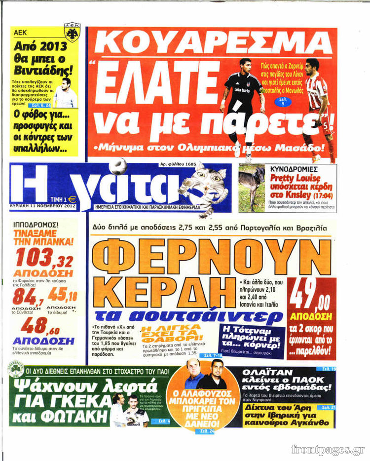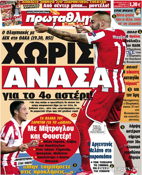 Οι αθλητικές εφημερίδες Enikos Newsroom 09:46, Κυριακή 11 Νοεμβρίου 2012 Media Οι αθλητικές εφημερίδες Δείτε τα πρωτοσέλιδα των αθλητικών εφημερίδων. ΑΘΛΗΤΙΚΕΣ ΕΦΗΜΕΡΙΔΕΣ Μοιράσου το: σχολίασε κι εσύ (0 σχόλια) Ακολουθήστε το enikos.gr στο Google News και μάθετε πρώτοι όλες τις ειδήσεις Δείτε όλες τις τελευταίες ειδήσεις από την Ελλάδα και τον Κόσμο στο enikos.gr Ειδήσεις Ροή Ειδήσεων 3 ώρες πριν Ακίλα Σάλεχ: «Άκυρο» το τουρκολιβυκό μνημόνιο λέει ο πρόεδρος της λιβυκής Βουλής – Ανοίγει ο διάλογος με Ελλάδα, Αίγυπτο και Τουρκία 7 ώρες πριν Αγρότες: Την Τρίτη η απόφαση για διάλογο ή κλιμάκωση των κινητοποιήσεών τους – Πώς χαρακτηρίζουν τις ανακοινώσεις Τσιάρα και οι επόμενες κινήσεις 7 ώρες πριν Τραμπ για Ουκρανία: «Είμαστε πιο κοντά σε συμφωνία από ποτέ» – «Πολυεθνική δύναμη» προτείνουν οι Ευρωπαίοι 7 ώρες πριν Κυψέλη: Η 16χρονη που μαχαίρωσε την 14χρονη είχε συλληφθεί 3 φορές στο παρελθόν – Έβριζε καθηγητές, έβαζε φωτιές σε κάδους και εκβίαζε συμμαθητές της 6 ώρες πριν Τρομοκρατική επίθεση στο Σίδνεϊ: Θλίψη για τα 15 θύματα – Οργή στην εβραϊκή κοινότητα που προειδοποιούσε επί δύο χρόνια 7 ώρες πριν Επιστήμονες ίσως έλυσαν το μυστήριο γύρω από τα Χόμπιτ – Νέα έρευνα αποκαλύπτει πώς εξαφανίστηκαν 8 ώρες πριν Ύπνος: Η αρχαία μορφή άσκησης που αποδεικνύεται αποτελεσματική στην αντιμετώπιση της αϋπνίας, σύμφωνα με μελέτη 9 ώρες πριν Αριθμολογία: Ο τυχερός σας αριθμός, ανάλογα με τον μήνα γέννησής σας 10 ώρες πριν Πώς να μην μαραίνονται γρήγορα τα κομμένα λουλούδια: Το λάθος στην τοποθέτηση του βάζου που πρέπει να αποφεύγετε 3 λεπτά πριν Οι αθλητικές εφημερίδες 16/12/2025 8 λεπτά πριν Οι πολιτικές εφημερίδες 16/12/2025 16 λεπτά πριν Τα ζώδια σήμερα, Τρίτη 16 Δεκεμβρίου: Ιχθύες, δεν χρειάζεται να έχετε όλες τις απαντήσεις 24 λεπτά πριν Εφημερεύοντα φαρμακεία σε Αθήνα και Θεσσαλονίκη (16/12) 31 λεπτά πριν Οκτώ νεκροί σε πλήγματα των ΗΠΑ κατά τριών σκαφών που φέρεται να μετέφεραν ναρκωτικά στον Ανατολικό Ειρηνικό ENIKOS NETWORK Πότε το χρόνιο ροχαλητό να αποτελέσει ένδειξη κινδύνου για την καρδιά; Τι λένε οι ειδικοί Μάριος Θεμιστοκλέους: Το ΕΣΥ ενισχύεται, εκσυγχρονίζεται, αλλάζει ΕΒΕΠ για αγροτικές κινητοποιήσεις: Κάθε επιπλέον εβδομάδα προσθέτει περίπου 200 εκατ. ευρώ ζημιά Τι προβλέπει το νομοσχέδιο του υπουργείου Εθνικής Άμυνας – Oι αλλαγές στους μισθούς Σύγχρονος Νοστράδαμος: Προειδοποιεί για «μεγάλο γεγονός» τους επόμενους μήνες που θα συγκλονίσει τη Βρετανία και τον κόσμο Τεστ παρατηρητικότητας: Μπορείτε να βρείτε τις 3 διαφορές στις εικόνες με έναν πιγκουίνο σε 14 δευτερόλεπτα περισσότερα 05:43 , Τρίτη 16 Δεκεμβρίου 2025 Οι αθλητικές εφημερίδες 16/12/2025 Διαβάστε τα πρωτοσέλιδα από τις αθλητικές εφημερίδες, σήμερα 16/12/2025. 05:38 , Τρίτη 16 Δεκεμβρίου 2025 Οι πολιτικές εφημερίδες 16/12/2025 Διαβάστε τα πρωτοσέλιδα από τις πολιτικές εφημερίδες, σήμερα 16/12/2025. 21:35 , Δευτέρα 15 Δεκεμβρίου 2025 Το Σπίτι Δίπλα Στο Ποτάμι: Η Ιουλία και ο Φωκάς μετακομίζουν στη Ρόδο – Δύο νέοι χαρακτήρες μπαίνουν στη σειρά Δύο νέοι, κομβικοί χαρακτήρες κάνουν την εμφάνισή τους αυτή την εβδομάδα στην αγαπημένη σειρά ... 19:46 , Δευτέρα 15 Δεκεμβρίου 2025 Άγιος έρωτας: Η Χριστίνα λέει την αλήθεια στον Αντρέα Ο Βασίλης δέχεται επίθεση από τους συμμαθητές του, η Αναστασία είναι συντετριμμένη με την απώλ... ΤΕΛΕΥΤΑΙΕΣ ΕΙΔΗΣΕΙΣ 3 λεπτά πριν Οι αθλητικές εφημερίδες 16/12/2025 8 λεπτά πριν Οι πολιτικές εφημερίδες 16/12/2025 16 λεπτά πριν Τα ζώδια σήμερα, Τρίτη 16 