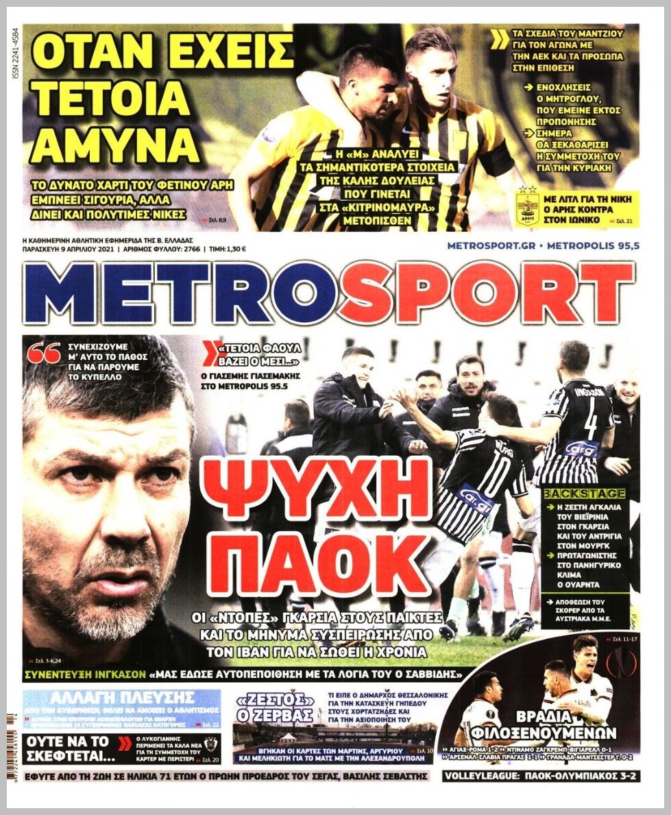 Οι αθλητικές εφημερίδες 9/4/2021 Διονύσης Νίκκας 06:51, Παρασκευή 09 Απριλίου 2021 Media Διαβάστε τα πρωτοσέλιδα των αθλητικών εφημερίδων… ΑΘΛΗΤΙΚΕΣ ΕΦΗΜΕΡΙΔΕΣ Μοιράσου το: σχολίασε κι εσύ (0 σχόλια) Ακολουθήστε το enikos.gr στο Google News και μάθετε πρώτοι όλες τις ειδήσεις Δείτε όλες τις τελευταίες ειδήσεις από την Ελλάδα και τον Κόσμο στο enikos.gr Ειδήσεις Ροή Ειδήσεων 25 λεπτά πριν Μητσοτάκης σε αγρότες: Είμαστε ανοιχτοί στον διάλογο, αλλά όχι στο παράλογο – Η διεκδίκηση αιτημάτων οφείλει να γίνεται με σεβασμό στο κοινωνικό σύνολο 41 λεπτά πριν Γρίπη: «Καμπανάκι» από τους επιστήμονες για έξαρση κρουσμάτων στις γιορτές – Ποιοι κινδυνεύουν και πώς προστατευόμαστε 2 ώρες πριν Γαλλία: Έτοιμοι για Χριστούγεννα στους δρόμους οι αγρότες – «Οι δεσμεύσεις της κυβέρνησης δεν είναι αρκετές» 1 ώρα πριν Φοροδιαφυγή και «κενό ΦΠΑ»: Πώς τα ψηφιακά εργαλεία έφεραν δισεκατομμύρια στα ταμεία του Δημοσίου 3 ώρες πριν Τζορτζ Κλούνεϊ: Πέθανε η αδελφή του, Άντα Ζάιντλερ – «Η ηρωίδα μου» 35 λεπτά πριν Τα άστρα ευνοούν σκανδαλωδώς 4 ζώδια – «Εμφανίζονται ξαφνικά ευκαιρίες γιατί αποφασίζετε να αφήσετε πίσω το παρελθόν» 2 ώρες πριν Οι γονείς της θέλουν να έχουν πρόσβαση στον τραπεζικό της λογαριασμό – «Επιμένουν πως στις οικογένειες δεν υπάρχουν μυστικά» 2 ώρες πριν Αρχαιολόγοι ανακάλυψαν κάτι που δεν περίμεναν: Τα μαθηματικά υπήρχαν πριν από τους αριθμούς – Το μυστικό που κρύβεται πίσω από περίεργα αγγεία 8.000 ετών 1 ημέρα πριν Enerwave: Το νέο «ρεύμα» στη λιανική ενέργειας που αλλάζει την εμπειρία του καταναλωτή 5 λεπτά πριν Συναγερμός στην Σκύρο – Ακυβέρνητο δεξαμενόπλοιο λόγω μπλακ άουτ 8 λεπτά πριν Σοκ στις Πινακάτες: Νεκρός ο πρόεδρος του χωριού Νίκος Παππάς – Κατέρρευσε μπροστά στη σύζυγο και τα παιδιά του 17 λεπτά πριν Πώς «ακούγονται» το Δέλτα του Αξιού και η λίμνη Ορεστιάδα; Οι πρώτες ηχογραφήσεις των επιστημόνων δείχνουν κάτι απρόσμενο 25 λεπτά πριν Μητσοτάκης σε αγρότες: Είμαστε ανοιχτοί στον διάλογο, αλλά όχι στο παράλογο – Η διεκδίκηση αιτημάτων οφείλει να γίνεται με σεβασμό στο κοινωνικό σύνολο 25 λεπτά πριν Πρίγκιπας Χάρι: Το αμφιλεγόμενο σχόλιο τα Χριστούγεννα που πυροδότησε την έντονη οικογενειακή διαμάχη της Μέγκαν Μαρκλ ENIKOS NETWORK Έχετε καταρροή και φαγούρα στα μάτια στις γιορτές; Μπορεί να ευθύνεται το σύνδρομο χριστουγεννιάτικου δέντρου Η Danielle Fishel μετά τη διάγνωση καρκίνου του μαστού: «Είμαι καλά και νιώθω ευγνωμοσύνη» Πρωτοχρονιά 2026: Πόσο θα κοστίσει φέτος η βασιλόπιτα – Οι τιμές σε ζαχαροπλαστεία, φούρνους και σούπερ μάρκετ «Πολεμική» προετοιμασία από την ευρωπαϊκή βιομηχανία ενέργειας – Η Eurelectric ζητεί «ομπρέλα» προστασίας για τις υποδομές Χαρτογραφώντας το «σημείο χωρίς επιστροφή»: Για πρώτη φορά αποκαλύπτεται με λεπτομέρεια το ακανθώδες όριο της ατμόσφαιρας τ... Η Google καταργεί τη λειτουργία «dark web report» – Πώς θα μπορούν οι χρήστες να διαγράφουν τα δεδομένα τους περισσότερα 09:43 , Κυριακή 21 Δεκεμβρίου 2025 Το λάθος στην ταινία Die Hard που άφησε άναυδους τους θαυμαστές του Μπρους Γουίλις Ένας φανατικός των ταινιών άφησε άναυδους τους θαυμαστές του Die Hard, επισημαίνοντας τρία βασ... 08:13 , Κυριακή 21 Δεκεμβρίου 2025 Άγιος έρωτας: Ένας καταστροφικός σεισμός χτυπά τη Στέρνα Καταιγιστικές είναι οι εξελίξεις στα δυο τελευταία, συγκλονιστικά επεισόδια του 2025 της σειρά... 08:00 , Κυριακή 21 Δεκεμβρίου 2025 Σήμερα με τη Realnews: Ό,τι και αν αγοράσεις, σκανάρεις και κερδίζεις! Σήμερα