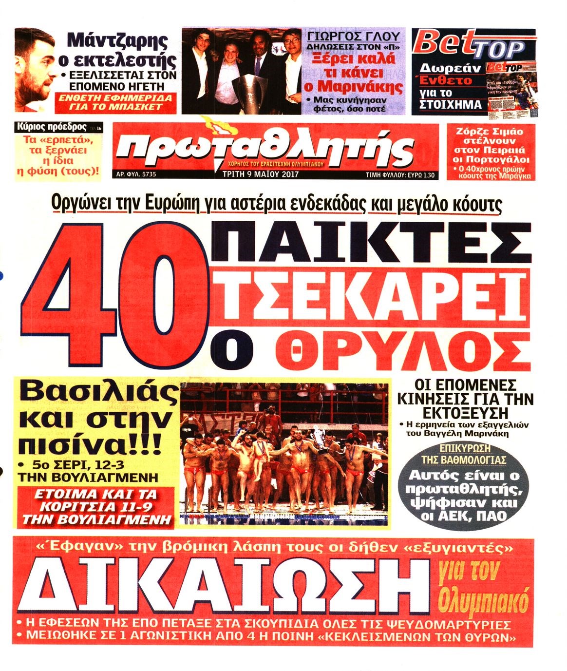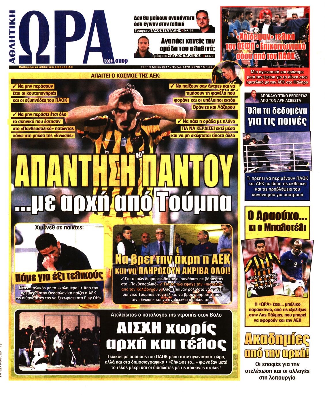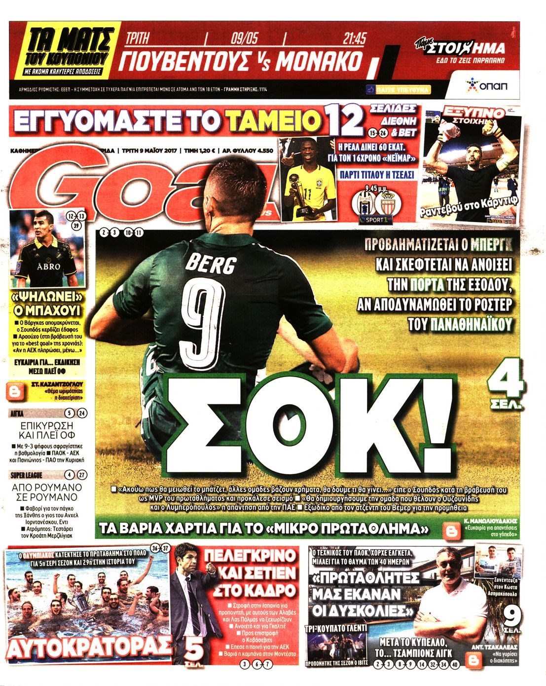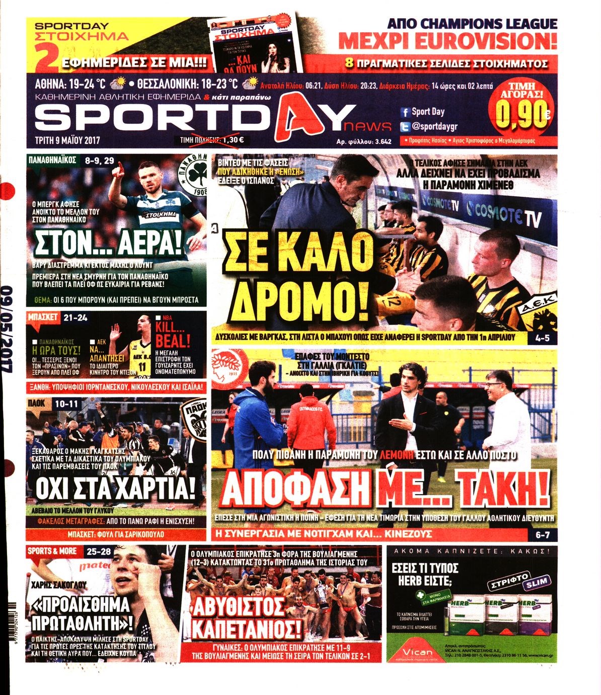 Οι αθλητικές εφημερίδες 9/5/2017 Enikos Newsroom 06:34, Τρίτη 09 Μαΐου 2017 Media Διαβάστε τα σημερινά πρωτοσέλιδα των αθλητικών εφημερίδων: ΑΘΛΗΤΙΚΕΣ ΕΦΗΜΕΡΙΔΕΣ ΠΡΩΤΟΣΕΛΙΔΑ Μοιράσου το: σχολίασε κι εσύ (0 σχόλια) Ακολουθήστε το enikos.gr στο Google News και μάθετε πρώτοι όλες τις ειδήσεις Δείτε όλες τις τελευταίες ειδήσεις από την Ελλάδα και τον Κόσμο στο enikos.gr Ειδήσεις Ροή Ειδήσεων 5 ώρες πριν Αυξάνουν την πίεση προς την κυβέρνηση οι αγρότες: Κλείνουν παρακαμπτήριους και ανοίγουν διόδια – Τι θα γίνει τις γιορτές 4 ώρες πριν ΟΠΕΚΕΠΕ: Προφυλακιστέος ο φερόμενος αρχηγός και ο λογιστής της εγκληματικής οργάνωσης 5 ώρες πριν Φοινικούντα: Το Σάββατο απολογείται ο 30χρονος γιος γνωστού επιχειρηματία της Πλάκας που παραδόθηκε – Όσα είπε στους αστυνομικούς και ο ρόλος του στο έγκλημα 4 ώρες πριν Μπορεί ο Μαδούρο να αντέξει τον αποκλεισμό του Τραμπ; Τι θα χρειαστεί η Ουάσινγκτον για να τον ανατρέψει 3 ώρες πριν ΑΕΚ – Κραϊόβα 3-2: Επική ανατροπή και πρόκριση στους «16» του Conference League η Ένωση 4 ώρες πριν Αρχαιολόγοι ανακάλυψαν ρωμαϊκά τεχνουργήματα από μια πόλη που δεν υπήρξε ποτέ – Τα τρία εντυπωσιακά κτίρια και ο αμφορέας με τις… σαρδέλες 5 ώρες πριν Ύπνος: Η απλή βραδινή ρουτίνα για να προστατεύσετε τα μαλλιά σας από το κρύο κατά τη διάρκεια του χειμώνα 6 ώρες πριν Manifesting: Πώς να συναντήσετε τον σύντροφο της ζωής σας, ανάλογα με τον μήνα γέννησής σας 2 ημέρες πριν 20 χρόνια τα Χριστούγεννα ξεκινούν στα Public με μεγάλη ποικιλία σε δώρα! 17 λεπτά πριν Ευρωπαϊκή Ένωση: Χωρίς συμφωνία, για την μακροπρόθεσμη χρηματοδότηση της Ουκρανίας, ολοκληρώθηκε η Σύνοδος Κορυφής στις Βρυξέλλες 33 λεπτά πριν GNTM: «Κλείδωσαν» οι τέσσερις φιναλίστ – Μεγάλη ανατροπή στις τελευταίες αποχωρήσεις 47 λεπτά πριν Γιώργος Μαζωνάκης: Αποθεώθηκε στην πρεμιέρα του στην «Ακτή Πειραιώς» λίγες ώρες μετά τις καταγγελίες – «Είμαι αληθινός», είπε με νόημα 1 ώρα πριν Πόλεμος στην Ουκρανία: Ρωσικά drones έπληξαν την Οδησσό – Μία νεκρή και ζημιές σε ενεργειακές υποδομές 1 ώρα πριν ΑΕΚ-Κραϊόβα: Τα highlights της μυθικής ανατροπής της «Ένωσης» ENIKOS NETWORK Σε περίοδο αυξημένης δραστηριότητας η γρίπη στην Ελλάδα-Μέτρα προστασίας από τον ΕΟΔΥ Σκέφτεστε συνέχεια συζητήσεις που έχετε κάνει; Τι σημαίνει αυτό, σύμφωνα με ειδικό Στεγαστικό: Τι λέει η ΠΟΜΙΔΑ για τα νέα μέτρα που ανακοίνωσε ο Κυριάκος Μητσοτάκης Λαγκάρντ: Αισιόδοξη για την ανάπτυξη της Ευρωζώνης, αβέβαιη για τον πληθωρισμό Χαρτογραφώντας το «σημείο χωρίς επιστροφή»: Για πρώτη φορά αποκαλύπτεται με λεπτομέρεια το ακανθώδες όριο της ατμόσφαιρας τ... Η Google καταργεί τη λειτουργία «dark web report» – Πώς θα μπορούν οι χρήστες να διαγράφουν τα δεδομένα τους περισσότερα 02:50 , Παρασκευή 19 Δεκεμβρίου 2025 GNTM: «Κλείδωσαν» οι τέσσερις φιναλίστ – Μεγάλη ανατροπή στις τελευταίες αποχωρήσεις Για προτελευταία φορά εμφανίστηκαν στο πλατό του GNTM οι φιναλίστ του φετινού κύκλου, το βράδυ... 17:45 , Πέμπτη 18 Δεκεμβρίου 2025 ROUK ZOUK: Εορταστικό επεισόδιο με καλεσμένους τους πρωταγωνιστές του «Γιατί ρε πατέρα» Το Σάββατο 20 Δεκεμβρίου στις 21:00, η Ζέτα Μακρυπούλια υποδέχεται εκλεκτούς ηθοποιούς που όλο... 17:20 , Πέμπτη 18 Δεκεμβρίου 2025 Άγιος έρωτας: Η Χριστίνα εξομολογείται στον πατέρα Νικόλαο, απόψε στις 21:00 στον Alpha Η Νότα αποφασίζει να εκδικηθεί τον Πέτρο και τον Στέφανο, για χάρη του Λούη, όμως τα πράγματα ... 16:50 , Πέμπτη 18 Δεκεμβρίου 2025 Να μ’ αγαπάς: Ζωή και Φωτεινή συμφιλιώνονται ως μάνα με κόρη, απόψε στις 20:00 Η τα