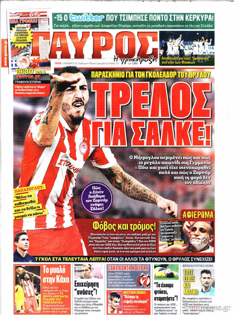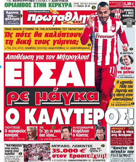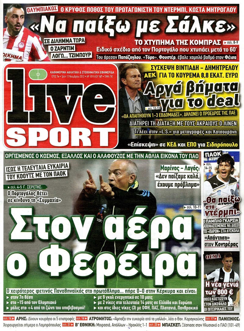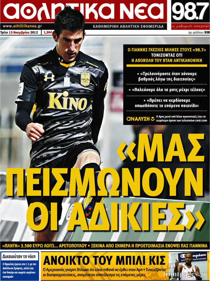 Οι αθλητικές εφημερίδες Enikos Newsroom 08:45, Τρίτη 13 Νοεμβρίου 2012 Media Οι αθλητικές εφημερίδες Τα σημερινά πρωτοσέλιδα των αθλητικών εφημερίδων. ΑΘΛΗΤΙΚΕΣ ΕΦΗΜΕΡΙΔΕΣ ΕΦΗΜΕΡΙΔΕΣ ΠΟΔΟΣΦΑΙΡΟ ΠΡΩΤΟΣΕΛΙΔΑ Μοιράσου το: σχολίασε κι εσύ (0 σχόλια) Ακολουθήστε το enikos.gr στο Google News και μάθετε πρώτοι όλες τις ειδήσεις Δείτε όλες τις τελευταίες ειδήσεις από την Ελλάδα και τον Κόσμο στο enikos.gr Ειδήσεις Ροή Ειδήσεων 3 ώρες πριν Ακίλα Σάλεχ: «Άκυρο» το τουρκολιβυκό μνημόνιο λέει ο πρόεδρος της λιβυκής Βουλής – Ανοίγει ο διάλογος με Ελλάδα, Αίγυπτο και Τουρκία 7 ώρες πριν Αγρότες: Την Τρίτη η απόφαση για διάλογο ή κλιμάκωση των κινητοποιήσεών τους – Πώς χαρακτηρίζουν τις ανακοινώσεις Τσιάρα και οι επόμενες κινήσεις 7 ώρες πριν Τραμπ για Ουκρανία: «Είμαστε πιο κοντά σε συμφωνία από ποτέ» – «Πολυεθνική δύναμη» προτείνουν οι Ευρωπαίοι 7 ώρες πριν Κυψέλη: Η 16χρονη που μαχαίρωσε την 14χρονη είχε συλληφθεί 3 φορές στο παρελθόν – Έβριζε καθηγητές, έβαζε φωτιές σε κάδους και εκβίαζε συμμαθητές της 6 ώρες πριν Τρομοκρατική επίθεση στο Σίδνεϊ: Θλίψη για τα 15 θύματα – Οργή στην εβραϊκή κοινότητα που προειδοποιούσε επί δύο χρόνια 7 ώρες πριν Επιστήμονες ίσως έλυσαν το μυστήριο γύρω από τα Χόμπιτ – Νέα έρευνα αποκαλύπτει πώς εξαφανίστηκαν 8 ώρες πριν Ύπνος: Η αρχαία μορφή άσκησης που αποδεικνύεται αποτελεσματική στην αντιμετώπιση της αϋπνίας, σύμφωνα με μελέτη 9 ώρες πριν Αριθμολογία: Ο τυχερός σας αριθμός, ανάλογα με τον μήνα γέννησής σας 10 ώρες πριν Πώς να μην μαραίνονται γρήγορα τα κομμένα λουλούδια: Το λάθος στην τοποθέτηση του βάζου που πρέπει να αποφεύγετε 6 δευτερόλεπτα πριν Οι οικονομικές εφημερίδες 16/12/2025 5 λεπτά πριν Οι αθλητικές εφημερίδες 16/12/2025 10 λεπτά πριν Οι πολιτικές εφημερίδες 16/12/2025 18 λεπτά πριν Τα ζώδια σήμερα, Τρίτη 16 Δεκεμβρίου: Ιχθύες, δεν χρειάζεται να έχετε όλες τις απαντήσεις 26 λεπτά πριν Εφημερεύοντα φαρμακεία σε Αθήνα και Θεσσαλονίκη (16/12) ENIKOS NETWORK Πότε το χρόνιο ροχαλητό να αποτελέσει ένδειξη κινδύνου για την καρδιά; Τι λένε οι ειδικοί Μάριος Θεμιστοκλέους: Το ΕΣΥ ενισχύεται, εκσυγχρονίζεται, αλλάζει ΕΒΕΠ για αγροτικές κινητοποιήσεις: Κάθε επιπλέον εβδομάδα προσθέτει περίπου 200 εκατ. ευρώ ζημιά Τι προβλέπει το νομοσχέδιο του υπουργείου Εθνικής Άμυνας – Oι αλλαγές στους μισθούς Σύγχρονος Νοστράδαμος: Προειδοποιεί για «μεγάλο γεγονός» τους επόμενους μήνες που θα συγκλονίσει τη Βρετανία και τον κόσμο Τεστ παρατηρητικότητας: Μπορείτε να βρείτε τις 3 διαφορές στις εικόνες με έναν πιγκουίνο σε 14 δευτερόλεπτα περισσότερα 05:48 , Τρίτη 16 Δεκεμβρίου 2025 Οι οικονομικές εφημερίδες 16/12/2025 Διαβάστε τα πρωτοσέλιδα από τις οικονομικές εφημερίδες, σήμερα 16/12/2025. 05:43 , Τρίτη 16 Δεκεμβρίου 2025 Οι αθλητικές εφημερίδες 16/12/2025 Διαβάστε τα πρωτοσέλιδα από τις αθλητικές εφημερίδες, σήμερα 16/12/2025. 05:38 , Τρίτη 16 Δεκεμβρίου 2025 Οι πολιτικές εφημερίδες 16/12/2025 Διαβάστε τα πρωτοσέλιδα από τις πολιτικές εφημερίδες, σήμερα 16/12/2025. 21:35 , Δευτέρα 15 Δεκεμβρίου 2025 Το Σπίτι Δίπλα Στο Ποτάμι: Η Ιουλία και ο Φωκάς μετακομίζουν στη Ρόδο – Δύο νέοι χαρακτήρες μπαίνουν στη σειρά Δύο νέοι, κομβικοί χαρακτήρες κάνουν την εμφάνισή τους αυτή την εβδομάδα στην αγαπημένη σειρά ... ΤΕΛΕΥΤΑΙΕΣ ΕΙΔΗΣΕΙΣ 5 λεπτά πριν Οι αθλητικές εφημερίδες 16/12/2025 10 λεπτά πριν Οι πολιτικές εφημερίδες 16/12/2025 18 λεπτά πριν Τα ζώδια σήμερα, Τρίτη 16 Δεκεμβρίου: Ιχθύες, δεν... 26 λεπτά πριν Εφημερεύοντα φαρμακεία σε Αθήνα και Θεσσαλο