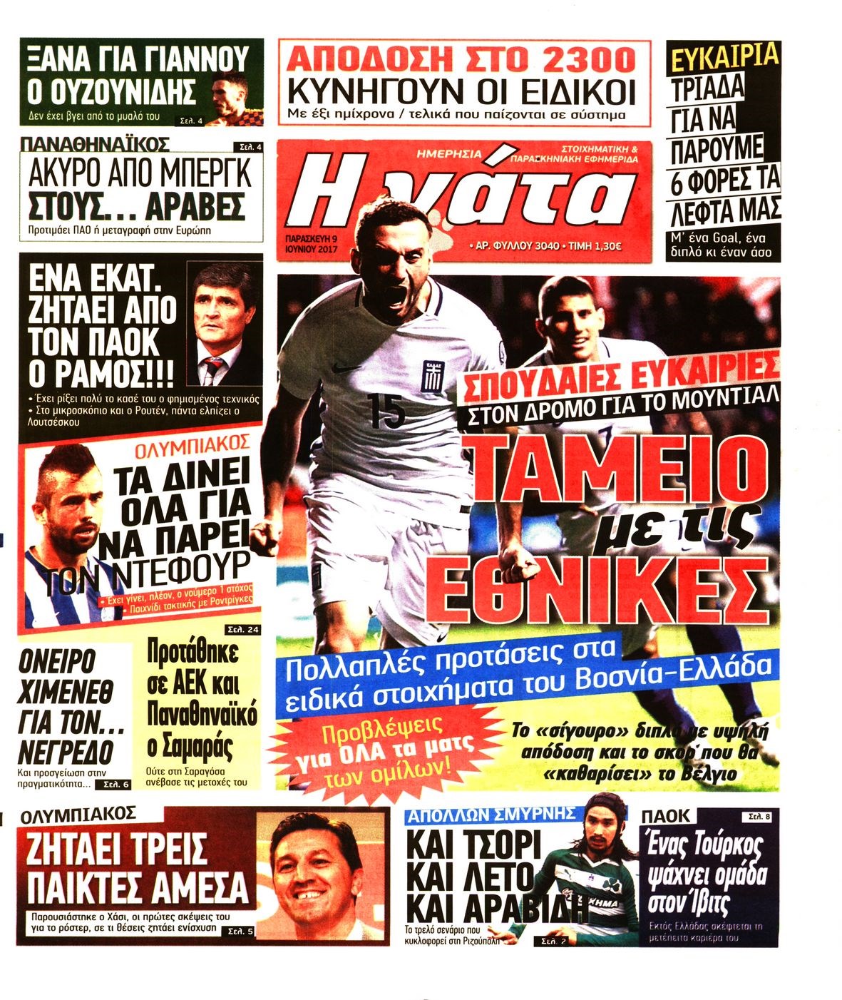 Οι αθλητικές εφημερίδες 9/6/2017 Enikos Newsroom 00:00, Δευτέρα 01 Ιανουαρίου 0001 Media Διαβάστε τα σημερινά πρωτοσέλιδα των αθλητικών εφημερίδων: ΑΘΛΗΤΙΚΕΣ ΕΦΗΜΕΡΙΔΕΣ ΠΡΩΤΟΣΕΛΙΔΑ Μοιράσου το: σχολίασε κι εσύ (0 σχόλια) Ακολουθήστε το enikos.gr στο Google News και μάθετε πρώτοι όλες τις ειδήσεις Δείτε όλες τις τελευταίες ειδήσεις από την Ελλάδα και τον Κόσμο στο enikos.gr Ειδήσεις Ροή Ειδήσεων 1 ώρα πριν Δημοσκόπηση Alco: Στο 23,6% η ΝΔ, στο 11,6% το ΠΑΣΟΚ – Η άποψη των πολιτών για αγρότες, εκλογές και Τσίπρα 5 ώρες πριν Κυψέλη: Για πρώτη ημέρα βρισκόταν στο σχολείο η 16χρονη που επιτέθηκε με μαχαίρι στην 14χρονη – Τι αναφέρουν μαρτυρίες μαθητών για το επεισόδιο 2 ώρες πριν Φοινικούντα: Αρνούνται τις κατηγορίες οι 2 συλληφθέντες – «Θέλω να συμβάλλω στην αποκάλυψη της αλήθειας» λέει ο ανιψιός του θύματος 3 ώρες πριν Κρήτη: Εντοπίστηκε στίγμα του 33χρονου γιατρού που έχει εξαφανιστεί μέσω νέας τεχνολογίας που εφαρμόζεται για πρώτη φορά στην Ελλάδα 4 ώρες πριν Ρομπ και Μισέλ Ράινερ: Συνελήφθη ο γιος τους ως ύποπτος για την δολοφονία τους 6 ώρες πριν Τα 3 ζώδια που θα έχουν τύχη «βουνό» έως τις 21 Δεκεμβρίου – «Η ανατροπή που περιμένετε πλησιάζει» 3 ώρες πριν Γάμος: Αν ένας άνδρας νιώθει βαθιά μοναξιά, θα αρχίσει να κάνει αυτά τα 11 πράγματα μέσα στο σπίτι 2 ώρες πριν Πώς να μην μαραίνονται γρήγορα τα κομμένα λουλούδια: Το λάθος στην τοποθέτηση του βάζου που πρέπει να αποφεύγετε 7 ώρες πριν Επιστήμονες του CERN έλυσαν ένα μυστήριο δεκαετιών της σωματιδιακής φυσικής – Τι ανακάλυψαν 6 λεπτά πριν Βάσω Λασκαράκη: «Χρόνια πολλά, αγάπη μου σε ευχαριστώ που κάνεις την ζωή μου πιο ωραία» – Οι ευχές στον Λευτέρη Σουλτάτο για την γιορτή του 12 λεπτά πριν Μερτς: Οι συνομιλίες για την Ουκρανία είναι «ίσως η μεγαλύτερη διπλωματική δυναμική» – Ζελένσκι: «Επώδυνο το εδαφικό» 17 λεπτά πριν Κόντρα Θεοδωρικάκου – Φάμελλου στη Βουλή – Τα «πυρά» της Κωνσταντοπούλου 22 λεπτά πριν Πιερρακάκης: Σύντομα η Ελλάδα θα έχει περάσει στην πρώτη πεντάδα της Ευρώπης στην ψηφιακή πολιτική – Έχουμε πετύχει έναν άθλο 26 λεπτά πριν Νέα σύλληψη στο «Ελ. Βενιζέλος» για ναρκωτικά – Χειροπέδες σε 23χρονο που είχε 18,5 κιλά κάνναβης στη βαλίτσα του ENIKOS NETWORK Πότε το χρόνιο ροχαλητό να αποτελέσει ένδειξη κινδύνου για την καρδιά; Τι λένε οι ειδικοί Μάριος Θεμιστοκλέους: Το ΕΣΥ ενισχύεται, εκσυγχρονίζεται, αλλάζει ΟΠΕΚΑ: Ποιο επίδομα αυξάνεται από τον επόμενο μήνα και γιατί Ευλογιά αιγοπροβάτων: Έως το τέλος του έτους η οικονομική στήριξη 187 εκατ. ευρώ σε κτηνοτρόφους – Όλα όσα είπε ο Πρωτοψάλτ... Σύγχρονος Νοστράδαμος: Προειδοποιεί για «μεγάλο γεγονός» τους επόμενους μήνες που θα συγκλονίσει τη Βρετανία και τον κόσμο Τεστ παρατηρητικότητας: Μπορείτε να βρείτε τις 3 διαφορές στις εικόνες με έναν πιγκουίνο σε 14 δευτερόλεπτα περισσότερα 19:46 , Δευτέρα 15 Δεκεμβρίου 2025 Άγιος έρωτας: Η Χριστίνα λέει την αλήθεια στον Αντρέα Ο Βασίλης δέχεται επίθεση από τους συμμαθητές του, η Αναστασία είναι συντετριμμένη με την απώλ... 18:45 , Δευτέρα 15 Δεκεμβρίου 2025 Συνέδριο «Ελληνικός Τουρισμός 2025, Μια εθνική υπόθεση!» – «Ο Θαλάσσιος Πυλώνας ως Ενιαία Στρατηγική: Συνέργειες σε Λιμάνια, Μαρίνες, Ακτοπλοΐα, Κρουαζιέρα και Yachting» Στο πλαίσιο της τέταρτης και τελευταίας ενότητας του 7ου συνεδρίου «Ελληνικός Τουρισμός 2025, ... 18:13 , Δευτέρα 15 Δεκεμβρίου 2025 Συνέδριο «Ελληνικός Τουρισμός 2025, Μια εθνική υπόθεση!» – Κικίλιας: «Μεγάλα asset της Ελλάδας η ναυτιλία και ο τουρισ