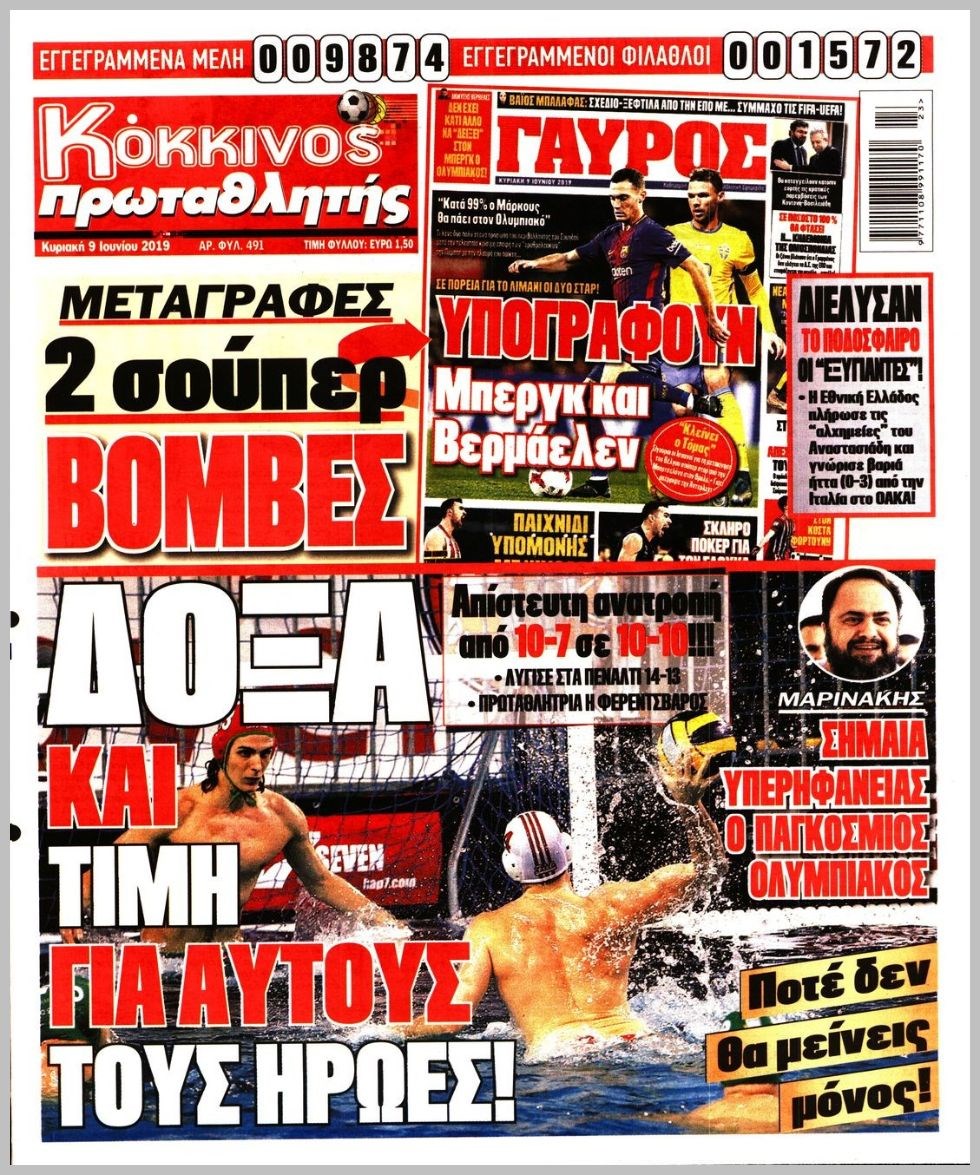Οι αθλητικές εφημερίδες 9/6/2019 Κώστας Τεό 07:38, Κυριακή 09 Ιουνίου 2019 Media Διαβάστε τα πρωτοσέλιδα των αθλητικών εφημερίδων: ΑΘΛΗΤΙΚΕΣ ΕΦΗΜΕΡΙΔΕΣ ΠΡΩΤΟΣΕΛΙΔΑ Μοιράσου το: σχολίασε κι εσύ (0 σχόλια) Ακολουθήστε το enikos.gr στο Google News και μάθετε πρώτοι όλες τις ειδήσεις Δείτε όλες τις τελευταίες ειδήσεις από την Ελλάδα και τον Κόσμο στο enikos.gr Ειδήσεις Ροή Ειδήσεων 2 ώρες πριν Χριστούγεννα στα μπλόκα: Επιμένουν στις κινητοποιήσεις τους οι αγρότες – Ανοίγουν τα διόδια το Σαββατοκύριακο 3 ώρες πριν Ουκρανία: Η άνευ προηγουμένου επίθεση σε ρωσικό τάνκερ στη Μεσόγειο και το μήνυμα προς στον Πούτιν – Το «μακρύ χέρι» του Κιέβου 2 ώρες πριν Πούτιν: Τα μηνύματα σε Ευρώπη και ΝΑΤΟ από το μαραθώνιο «σόου» του – Η απαίτηση για «σεβασμό» και η ειρήνη «με τους όρους» της Μόσχας 3 ώρες πριν Τραμπ: Δεν αποκλείει την πιθανότητα ενός πολέμου στη Βενεζουέλα – «Ο Μαδούρο ξέρει καλύτερα από τον καθένα τι ακριβώς θέλω» 3 ώρες πριν Συνεχίζει να προκαλεί ο Μίτσκοσκι: «Για μένα το όνομα Μακεδονία είναι ιερό» 2 ώρες πριν Ανακαλύφθηκαν αρχαία χρυσά νομίσματα 2.200 ετών που απεικονίζουν τον θεό Απόλλωνα – Η άγνωστη σύνδεση με τον Φίλιππο Β΄ της Μακεδονίας 3 ώρες πριν Ύπνος: Μια κρυφή κατάσταση του εγκεφάλου πριν από τον ύπνο μπορεί να είναι το “κλειδί” για υψηλή ευφυΐα και δημιουργικότητα 4 ώρες πριν Αριθμολογία: Οι άνθρωποι που έχουν γεννηθεί αυτές τις 4 ημερομηνίες, συχνά παρεξηγούνται – «Η καλοσύνη τους κρύβει τεράστια δύναμη» 5 ώρες πριν Ξεχάστε το καθάρισμα το Σαββατοκύριακο: Ο «κανόνας των 20 λεπτών» που θα σας λύσει τα χέρια 14 λεπτά πριν Μπαρτσελόνα – Μπασκόνια 134-124: Οι «μπλαουγκράνα» πήραν το ματς της χρονιάς ύστερα από τρεις παρατάσεις 29 λεπτά πριν Φαίη Σκορδά: «Παλιότερα τα κομπλιμέντα τα προσπερνούσα, τώρα τα έχω ανάγκη» 45 λεπτά πριν Βασίλης Σπανούλης: Δεν εμφανίστηκε ούτε ένας δημοσιογράφος στην συνέντευξη Τύπου – «Καλησπέρα στον… κανέναν», δείτε βίντεο 56 λεπτά πριν Πόλεμος στην Ουκρανία: Εφτά νεκροί από ρωσική πυραυλική επίθεση στο λιμάνι της Οδησσού 59 λεπτά πριν ΗΠΑ: Η κυβέρνηση του Ντόναλντ Τραμπ άρχισε να δημοσιοποιεί τα αρχεία Έπσταϊν ENIKOS NETWORK Το ΕΚΑΒ τιμήθηκε από την Ακαδημία Αθηνών για τα 40 χρόνια προσφοράς του Έχετε πραγματικά μεγάλη καρδιά; 10 χαρακτηριστικά όσων έχουν καλοσύνη Αναστολή μέτρων αναγκαστικής εκτέλεσης για κτηνοτρόφους που πλήττονται από την ευλογιά των αιγοπροβάτων Πλήρης επάρκεια προϊόντων στις λαϊκές της Αττικής, παρά τις αγροτικές κινητοποιήσεις – Τι απαντούν οι πωλητές Χαρτογραφώντας το «σημείο χωρίς επιστροφή»: Για πρώτη φορά αποκαλύπτεται με λεπτομέρεια το ακανθώδες όριο της ατμόσφαιρας τ... Η Google καταργεί τη λειτουργία «dark web report» – Πώς θα μπορούν οι χρήστες να διαγράφουν τα δεδομένα τους περισσότερα 22:42 , Παρασκευή 19 Δεκεμβρίου 2025 Γιώργος Γιαννόπουλος για “Το σόι σου”: “Είναι ευτυχία και ευλογία αυτή η σειρά” «Είναι ευτυχία και ευλογία η συγκυρία αυτής της σειράς», θα πει ο Γιώργος Γιαννόπουλος -ο αγαπ... 20:37 , Παρασκευή 19 Δεκεμβρίου 2025 Don’t Forget The Lyrics: Η Έλλη Κοκκίνου υποδέχεται 4 παίκτες που θα κάνουν τα πάντα για να μη χάσουν ούτε… μισή λέξη από τους στίχους Το «Don’t Forget The Lyrics» επιστρέφει απόψε, Παρασκευή 19 Δεκεμβρίου, στις 21:00 με νέο επει... 19:31 , Παρασκευή 19 Δεκεμβρίου 2025 GNTM: Απόψε ο μεγάλος τελικός για τους 4 φιναλίστ Έπειτα από μήνες γεμάτους μόδα, δημιουργία και έντονες αναμετρήσεις, το GNTM 2025 κορυφώνεται,... 18:11 , Παρασκευή 19 Δεκ