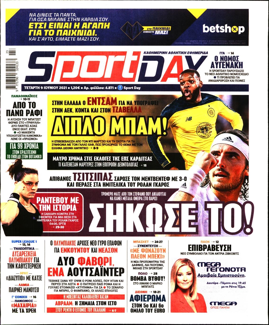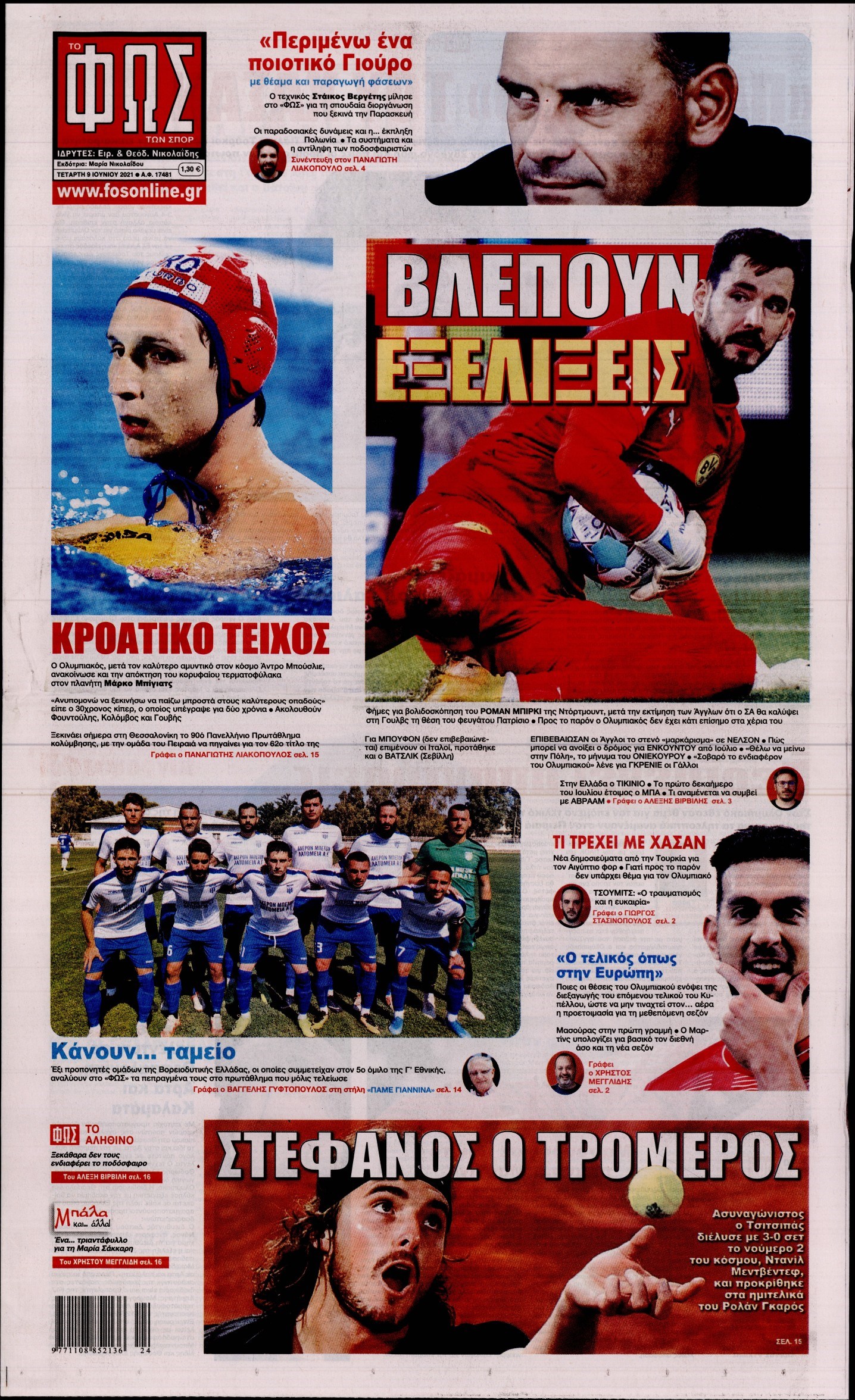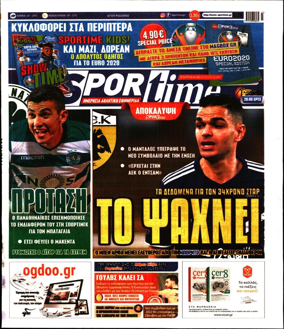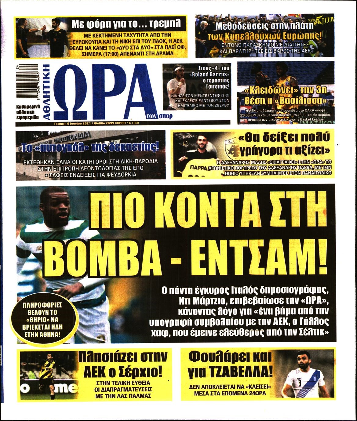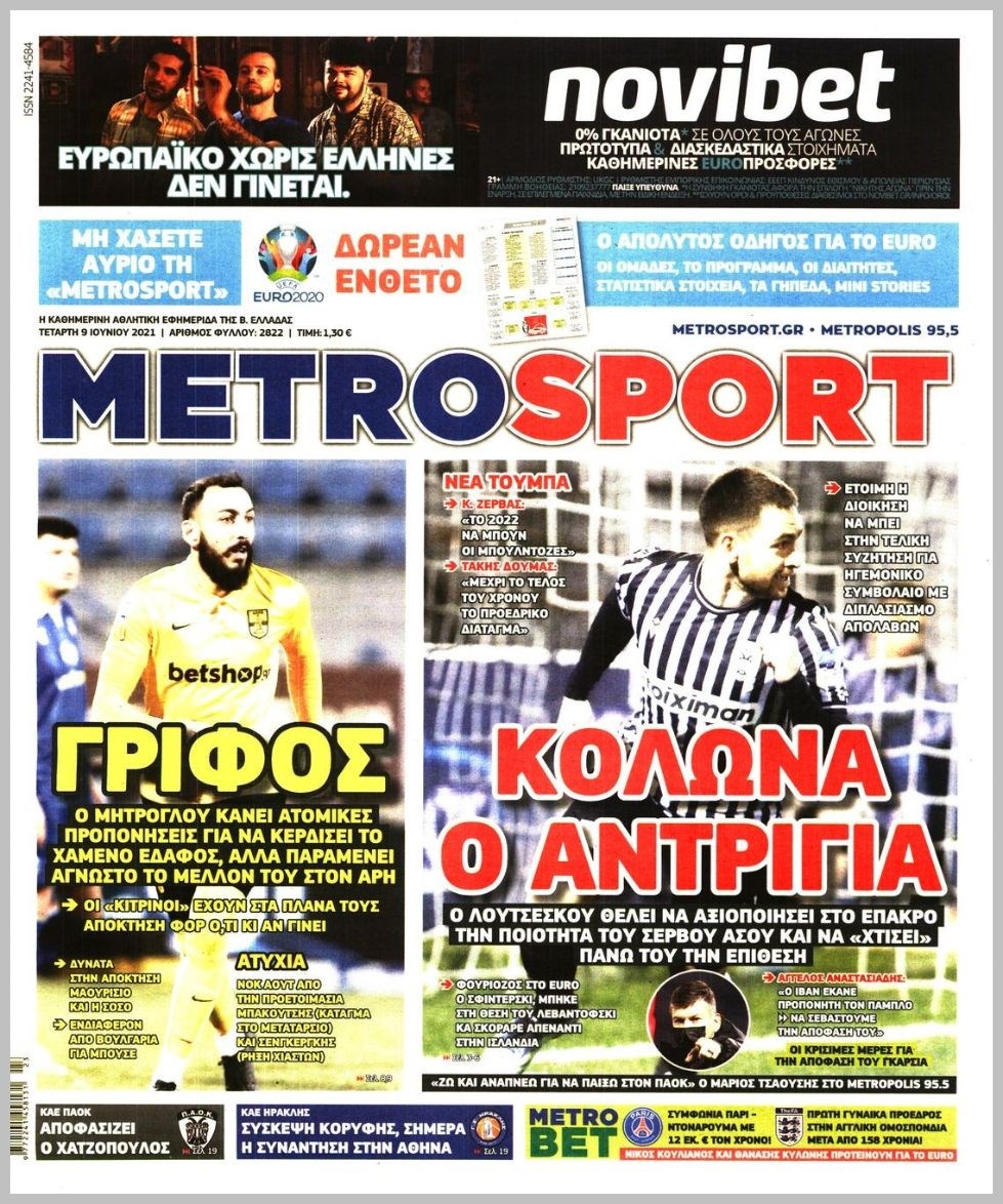 Οι αθλητικές εφημερίδες 9/6/2021 Διονύσης Νίκκας 06:33, Τετάρτη 09 Ιουνίου 2021 Media Διαβάστε τα πρωτοσέλιδα των αθλητικών εφημερίδων… ΑΘΛΗΤΙΚΕΣ ΕΦΗΜΕΡΙΔΕΣ Μοιράσου το: σχολίασε κι εσύ (0 σχόλια) Ακολουθήστε το enikos.gr στο Google News και μάθετε πρώτοι όλες τις ειδήσεις Δείτε όλες τις τελευταίες ειδήσεις από την Ελλάδα και τον Κόσμο στο enikos.gr Ειδήσεις Ροή Ειδήσεων 7 ώρες πριν Χριστούγεννα στα μπλόκα: Επιμένουν στις κινητοποιήσεις τους οι αγρότες – Ανοίγουν τα διόδια το Σαββατοκύριακο 7 ώρες πριν Ουκρανία: Η άνευ προηγουμένου επίθεση σε ρωσικό τάνκερ στη Μεσόγειο και το μήνυμα προς στον Πούτιν – Το «μακρύ χέρι» του Κιέβου 7 ώρες πριν Πούτιν: Τα μηνύματα σε Ευρώπη και ΝΑΤΟ από το μαραθώνιο «σόου» του – Η απαίτηση για «σεβασμό» και η ειρήνη «με τους όρους» της Μόσχας 7 ώρες πριν Τραμπ: Δεν αποκλείει την πιθανότητα ενός πολέμου στη Βενεζουέλα – «Ο Μαδούρο ξέρει καλύτερα από τον καθένα τι ακριβώς θέλω» 8 ώρες πριν Συνεχίζει να προκαλεί ο Μίτσκοσκι: «Για μένα το όνομα Μακεδονία είναι ιερό» 7 ώρες πριν Ανακαλύφθηκαν αρχαία χρυσά νομίσματα 2.200 ετών που απεικονίζουν τον θεό Απόλλωνα – Η άγνωστη σύνδεση με τον Φίλιππο Β΄ της Μακεδονίας 8 ώρες πριν Ύπνος: Μια κρυφή κατάσταση του εγκεφάλου πριν από τον ύπνο μπορεί να είναι το “κλειδί” για υψηλή ευφυΐα και δημιουργικότητα 9 ώρες πριν Αριθμολογία: Οι άνθρωποι που έχουν γεννηθεί αυτές τις 4 ημερομηνίες, συχνά παρεξηγούνται – «Η καλοσύνη τους κρύβει τεράστια δύναμη» 10 ώρες πριν Ξεχάστε το καθάρισμα το Σαββατοκύριακο: Ο «κανόνας των 20 λεπτών» που θα σας λύσει τα χέρια 4 λεπτά πριν Τα ζώδια σήμερα, Σάββατο 20 Δεκεμβρίου: Παρθένοι, το σύμπαν σας δίνει το κλειδί 9 λεπτά πριν Παιανία: Δυο αυτοκίνητα τυλίχτηκαν στις φλόγες – Συναγερμός στην Πυροσβεστική 12 λεπτά πριν Εφημερεύοντα φαρμακεία σε Αθήνα και Θεσσαλονίκη (20/12) 19 λεπτά πριν Γιώργος Μπαρτζώκας: «Για εμένα σημαίνει πάρα πολλά να ακούω το όνομά μου από τον κόσμο του Ολυμπιακού» 28 λεπτά πριν ΟΗΕ: Το Συμβούλιο Ασφαλείας παρατείνει για έναν χρόνο την εντολή της ειρηνευτικής δύναμης στο Κονγκό ENIKOS NETWORK Το ΕΚΑΒ τιμήθηκε από την Ακαδημία Αθηνών για τα 40 χρόνια προσφοράς του Έχετε πραγματικά μεγάλη καρδιά; 10 χαρακτηριστικά όσων έχουν καλοσύνη Αναστολή μέτρων αναγκαστικής εκτέλεσης για κτηνοτρόφους που πλήττονται από την ευλογιά των αιγοπροβάτων Πλήρης επάρκεια προϊόντων στις λαϊκές της Αττικής, παρά τις αγροτικές κινητοποιήσεις – Τι απαντούν οι πωλητές Χαρτογραφώντας το «σημείο χωρίς επιστροφή»: Για πρώτη φορά αποκαλύπτεται με λεπτομέρεια το ακανθώδες όριο της ατμόσφαιρας τ... Η Google καταργεί τη λειτουργία «dark web report» – Πώς θα μπορούν οι χρήστες να διαγράφουν τα δεδομένα τους περισσότερα 04:20 , Σάββατο 20 Δεκεμβρίου 2025 Αγγελική Νικολούλη: Τα συλλυπητήρια για την απώλεια της Ειρήνης Μαρινάκη Τα συλληπητήρια στον πρόεδρο του Mega, τον Βαγγέλη Μαρινάκη, για την απώλεια της μητέρας του Ε... 02:50 , Σάββατο 20 Δεκεμβρίου 2025 GNTM: Η Ξένια Τσίρκοβα αναδείχθηκε μεγάλη νικήτρια και πήρε τις 50.000 ευρώ – Ποιος βρέθηκε σε απόσταση αναπνοής; Με φαντασμαγορικό τρόπο ολοκληρώθηκε το βράδυ της Παρασκευής ο μεγάλος τελικός του GNTM, μέσα ... 22:42 , Παρασκευή 19 Δεκεμβρίου 2025 Γιώργος Γιαννόπουλος για “Το σόι σου”: “Είναι ευτυχία και ευλογία αυτή η σειρά” «Είναι ευτυχία και ευλογία η συγκυρία αυτής της σειράς», θα πει ο Γιώργος Γιαννόπουλος -ο αγαπ... 20:37 , Παρασκευή 19 Δεκεμβρίου 2025 Don’t Forget The Lyrics: Η Έλλη Κοκκίν