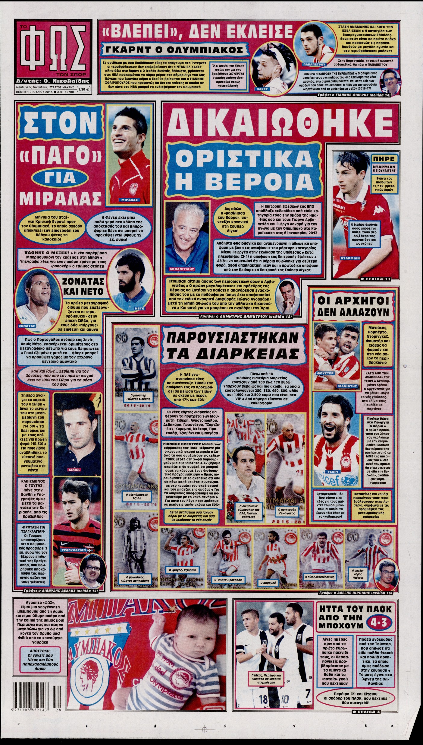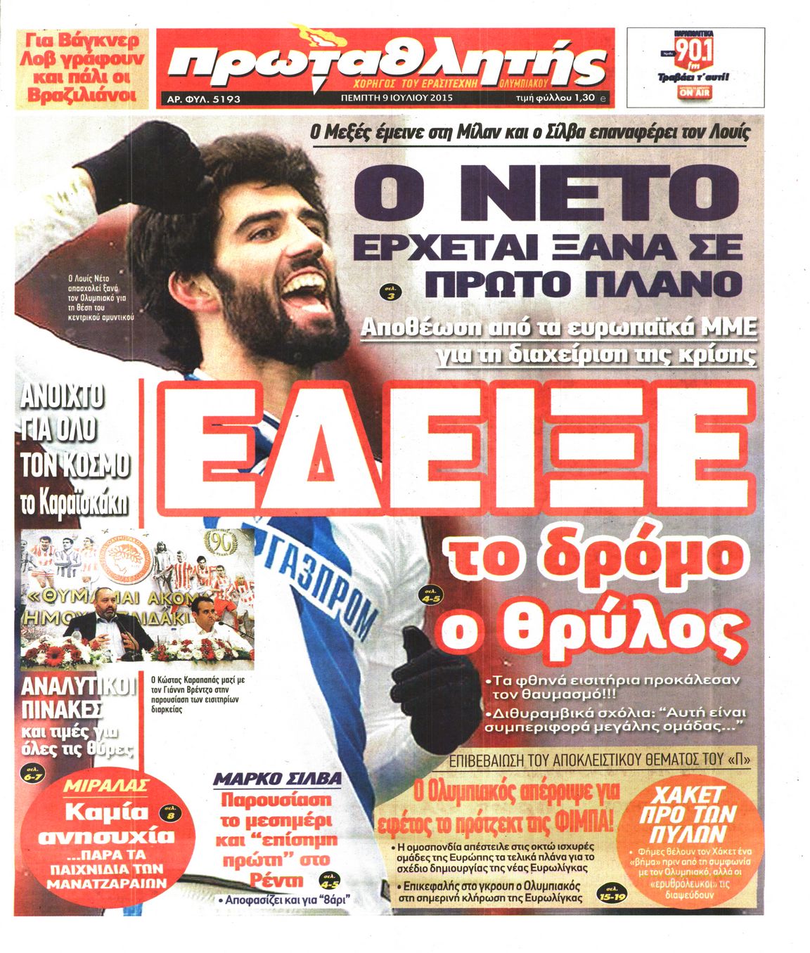 Οι αθλητικές εφημερίδες 9/7/2015 Enikos Newsroom 06:36, Πέμπτη 09 Ιουλίου 2015 Media Διαβάστε τα σημερινά πρωτοσέλιδα των αθλητικών εφημερίδων: ΑΘΛΗΤΙΚΕΣ ΕΦΗΜΕΡΙΔΕΣ ΠΡΩΤΟΣΕΛΙΔΑ Μοιράσου το: σχολίασε κι εσύ (0 σχόλια) Ακολουθήστε το enikos.gr στο Google News και μάθετε πρώτοι όλες τις ειδήσεις Δείτε όλες τις τελευταίες ειδήσεις από την Ελλάδα και τον Κόσμο στο enikos.gr Ειδήσεις Ροή Ειδήσεων 2 ώρες πριν Χριστούγεννα στα μπλόκα: Επιμένουν στις κινητοποιήσεις τους οι αγρότες – Ανοίγουν τα διόδια το Σαββατοκύριακο 2 ώρες πριν Ουκρανία: Η άνευ προηγουμένου επίθεση σε ρωσικό τάνκερ στη Μεσόγειο και το μήνυμα προς στον Πούτιν – Το «μακρύ χέρι» του Κιέβου 2 ώρες πριν Πούτιν: Τα μηνύματα σε Ευρώπη και ΝΑΤΟ από το μαραθώνιο «σόου» του – Η απαίτηση για «σεβασμό» και η ειρήνη «με τους όρους» της Μόσχας 3 ώρες πριν Τραμπ: Δεν αποκλείει την πιθανότητα ενός πολέμου στη Βενεζουέλα – «Ο Μαδούρο ξέρει καλύτερα από τον καθένα τι ακριβώς θέλω» 3 ώρες πριν Συνεχίζει να προκαλεί ο Μίτσκοσκι: «Για μένα το όνομα Μακεδονία είναι ιερό» 2 ώρες πριν Ανακαλύφθηκαν αρχαία χρυσά νομίσματα 2.200 ετών που απεικονίζουν τον θεό Απόλλωνα – Η άγνωστη σύνδεση με τον Φίλιππο Β΄ της Μακεδονίας 3 ώρες πριν Ύπνος: Μια κρυφή κατάσταση του εγκεφάλου πριν από τον ύπνο μπορεί να είναι το “κλειδί” για υψηλή ευφυΐα και δημιουργικότητα 4 ώρες πριν Αριθμολογία: Οι άνθρωποι που έχουν γεννηθεί αυτές τις 4 ημερομηνίες, συχνά παρεξηγούνται – «Η καλοσύνη τους κρύβει τεράστια δύναμη» 5 ώρες πριν Ξεχάστε το καθάρισμα το Σαββατοκύριακο: Ο «κανόνας των 20 λεπτών» που θα σας λύσει τα χέρια 12 λεπτά πριν Φαίη Σκορδά: «Παλιότερα τα κομπλιμέντα τα προσπερνούσα, τώρα τα έχω ανάγκη» 28 λεπτά πριν Βασίλης Σπανούλης: Δεν εμφανίστηκε ούτε ένας δημοσιογράφος στην συνέντευξη Τύπου – «Καλησπέρα στον… κανέναν», δείτε βίντεο 39 λεπτά πριν Πόλεμος στην Ουκρανία: Εφτά νεκροί από ρωσική πυραυλική επίθεση στο λιμάνι της Οδησσού 43 λεπτά πριν ΗΠΑ: Η κυβέρνηση του Ντόναλντ Τραμπ άρχισε να δημοσιοποιεί τα αρχεία Έπσταϊν 54 λεπτά πριν Σάμος: Άνοιξε το μπλόκο των αγροτών στον κόμβο Κοκκαρίου – Σε νέα συνεδρίαση θα καθορίσουν την στάση τους ENIKOS NETWORK Το ΕΚΑΒ τιμήθηκε από την Ακαδημία Αθηνών για τα 40 χρόνια προσφοράς του Έχετε πραγματικά μεγάλη καρδιά; 10 χαρακτηριστικά όσων έχουν καλοσύνη Αναστολή μέτρων αναγκαστικής εκτέλεσης για κτηνοτρόφους που πλήττονται από την ευλογιά των αιγοπροβάτων Πλήρης επάρκεια προϊόντων στις λαϊκές της Αττικής, παρά τις αγροτικές κινητοποιήσεις – Τι απαντούν οι πωλητές Χαρτογραφώντας το «σημείο χωρίς επιστροφή»: Για πρώτη φορά αποκαλύπτεται με λεπτομέρεια το ακανθώδες όριο της ατμόσφαιρας τ... Η Google καταργεί τη λειτουργία «dark web report» – Πώς θα μπορούν οι χρήστες να διαγράφουν τα δεδομένα τους περισσότερα 22:42 , Παρασκευή 19 Δεκεμβρίου 2025 Γιώργος Γιαννόπουλος για “Το σόι σου”: “Είναι ευτυχία και ευλογία αυτή η σειρά” «Είναι ευτυχία και ευλογία η συγκυρία αυτής της σειράς», θα πει ο Γιώργος Γιαννόπουλος -ο αγαπ... 20:37 , Παρασκευή 19 Δεκεμβρίου 2025 Don’t Forget The Lyrics: Η Έλλη Κοκκίνου υποδέχεται 4 παίκτες που θα κάνουν τα πάντα για να μη χάσουν ούτε… μισή λέξη από τους στίχους Το «Don’t Forget The Lyrics» επιστρέφει απόψε, Παρασκευή 19 Δεκεμβρίου, στις 21:00 με νέο επει... 19:31 , Παρασκευή 19 Δεκεμβρίου 2025 GNTM: Απόψε ο μεγάλος τελικός για τους 4 φιναλίστ Έπειτα από μήνες γεμάτους μόδα, δημιουργία και έντονες αναμετρήσεις, το GNTM 2025 κορυφώνεται,... 18:11 , Παρασ