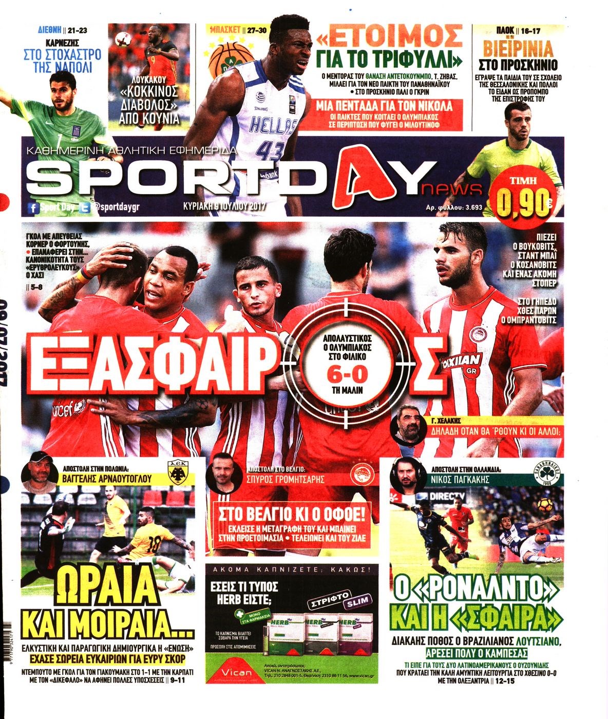 Οι αθλητικές εφημερίδες 9/7/2017 Enikos Newsroom 07:25, Κυριακή 09 Ιουλίου 2017 Media Διαβάστε τα σημερινά πρωτοσέλιδα των αθλητικών εφημερίδων: ΑΘΛΗΤΙΚΕΣ ΕΦΗΜΕΡΙΔΕΣ ΠΡΩΤΟΣΕΛΙΔΑ Μοιράσου το: σχολίασε κι εσύ (0 σχόλια) Ακολουθήστε το enikos.gr στο Google News και μάθετε πρώτοι όλες τις ειδήσεις Δείτε όλες τις τελευταίες ειδήσεις από την Ελλάδα και τον Κόσμο στο enikos.gr Ειδήσεις Ροή Ειδήσεων 4 λεπτά πριν Συντάξεις: Οι κερδισμένοι και οι χαμένοι από τις αυξήσεις – Αναλυτικός οδηγός και παραδείγματα 3 ώρες πριν Ευρωπαϊκή Ένωση: Συμφωνία για δάνειο 90 δισ. ευρώ στην Ουκρανία τη διετία 2026-2027 24 λεπτά πριν Θανατηφόρο τροχαίο στη Νέα Φιλαδέλφεια: Νεκρός 27χρονος οδηγός μηχανής ύστερα από σύγκρουση με τρόλεϊ 3 ώρες πριν Κυριάκος Μητσοτάκης: «Κάποιοι αγρότες δεν αισθάνονται την ανάγκη να διαφωνήσουν με τις προτάσεις της κυβέρνησης, η Ευρώπη στέκεται στο πλευρό της Ουκρανίας» 8 ώρες πριν ΟΠΕΚΕΠΕ: Προφυλακιστέος ο φερόμενος αρχηγός και ο λογιστής της εγκληματικής οργάνωσης 1 ώρα πριν Οπτική ψευδαίσθηση: Μόνο αν έχεις αετίσια ματιά θα βρεις τον παπαγάλο σε 12 δευτερόλεπτα 1 ώρα πριν Κρύα χέρια και πόδια: Γιατρός εξηγεί ποια είναι η αίτια και πότε πρέπει να ανησυχήσετε 2 ώρες πριν Τα ζώδια σήμερα, Παρασκευή 19 Δεκεμβρίου: Τοξότες, με τη Νέα Σελήνη έρχεται η προσωπική ανανέωσή σας 2 ημέρες πριν 20 χρόνια τα Χριστούγεννα ξεκινούν στα Public με μεγάλη ποικιλία σε δώρα! 36 λεπτά πριν Την Κυριακή με τη Realnews: Δωροεπιταγή 10€ 4 λεπτά πριν Συντάξεις: Οι κερδισμένοι και οι χαμένοι από τις αυξήσεις – Αναλυτικός οδηγός και παραδείγματα 7 λεπτά πριν Οι αθλητικές μεταδόσεις 19/12/2025 15 λεπτά πριν Εορτολόγιο: Ποιοι γιορτάζουν σήμερα 19 Δεκεμβρίου 24 λεπτά πριν Θανατηφόρο τροχαίο στη Νέα Φιλαδέλφεια: Νεκρός 27χρονος οδηγός μηχανής ύστερα από σύγκρουση με τρόλεϊ ENIKOS NETWORK Μόνο όσοι σκανάρουν με ταχύτητα ΑΙ μπορούν να εντοπίσουν τον διαφορετικό αριθμό ανάμεσα στο πλέγμα των 68 και να λύσουν το ... Η τροφή του πόθου που μπορεί να ανακουφίσει από ενοχλήσεις στο στομάχι και από τα συμπτώματα του Raynaud Συντάξεις: Οι κερδισμένοι και οι χαμένοι από τις αυξήσεις – Αναλυτικός οδηγός Στεγαστικό: Τι λέει η ΠΟΜΙΔΑ για τα νέα μέτρα που ανακοίνωσε ο Κυριάκος Μητσοτάκης Χαρτογραφώντας το «σημείο χωρίς επιστροφή»: Για πρώτη φορά αποκαλύπτεται με λεπτομέρεια το ακανθώδες όριο της ατμόσφαιρας τ... Η Google καταργεί τη λειτουργία «dark web report» – Πώς θα μπορούν οι χρήστες να διαγράφουν τα δεδομένα τους περισσότερα 05:48 , Παρασκευή 19 Δεκεμβρίου 2025 Οι οικονομικές εφημερίδες 19/12/2025 Διαβάστε τα πρωτοσέλιδα από τις οικονομικές εφημερίδες, σήμερα 19/12/2025. 05:43 , Παρασκευή 19 Δεκεμβρίου 2025 Οι αθλητικές εφημερίδες 19/12/2025 Διαβάστε τα πρωτοσέλιδα από τις αθλητικές εφημερίδες, σήμερα 19/12/2025. 05:38 , Παρασκευή 19 Δεκεμβρίου 2025 Οι πολιτικές εφημερίδες 19/12/2025 Διαβάστε τα πρωτοσέλιδα από τις πολιτικές εφημερίδες, σήμερα 19/12/2025. 02:50 , Παρασκευή 19 Δεκεμβρίου 2025 GNTM: «Κλείδωσαν» οι τέσσερις φιναλίστ – Μεγάλη ανατροπή στις τελευταίες αποχωρήσεις Για προτελευταία φορά εμφανίστηκαν στο πλατό του GNTM οι φιναλίστ του φετινού κύκλου, το βράδυ... ΤΕΛΕΥΤΑΙΕΣ ΕΙΔΗΣΕΙΣ 4 λεπτά πριν Συντάξεις: Οι κερδισμένοι και οι χαμένοι από τις... 7 λεπτά πριν Οι αθλητικές μεταδόσεις 19/12/2025 15 λεπτά πριν Εορτολόγιο: Ποιοι γιορτάζουν σήμερα 19 Δεκεμβρίου 24 λεπτά πριν Θανατηφόρο τροχαίο στη Νέα Φιλαδέλφεια: Νεκρός... 30 λεπτά πριν ΔΕΔΔΗΕ: Διακοπές ρεύματος σήμερα (19/12) στην Αθήνα και... 46 λεπτά πριν Φρίντρι