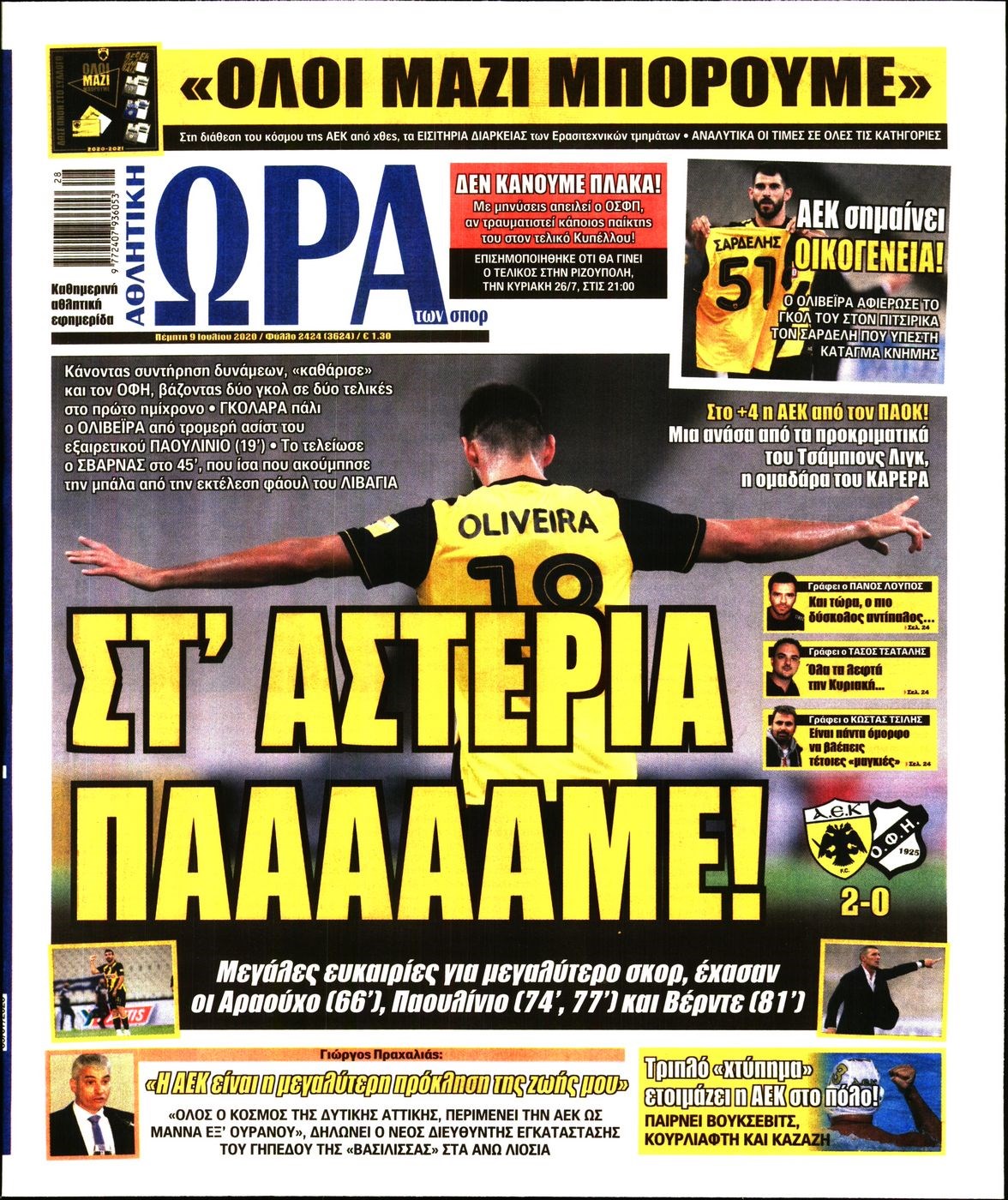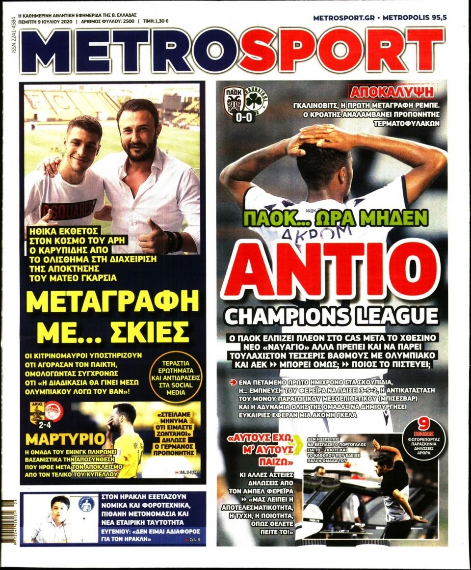 Οι αθλητικές εφημερίδες 9/7/2020 Διονύσης Νίκκας 06:53, Πέμπτη 09 Ιουλίου 2020 Media Διαβάστε τα πρωτοσέλιδα των αθλητικών εφημερίδων… ΑΘΛΗΤΙΚΕΣ ΕΦΗΜΕΡΙΔΕΣ Μοιράσου το: σχολίασε κι εσύ (0 σχόλια) Ακολουθήστε το enikos.gr στο Google News και μάθετε πρώτοι όλες τις ειδήσεις Δείτε όλες τις τελευταίες ειδήσεις από την Ελλάδα και τον Κόσμο στο enikos.gr Ειδήσεις Ροή Ειδήσεων 8 ώρες πριν Χριστούγεννα στα μπλόκα: Επιμένουν στις κινητοποιήσεις τους οι αγρότες – Ανοίγουν τα διόδια το Σαββατοκύριακο 8 ώρες πριν Ουκρανία: Η άνευ προηγουμένου επίθεση σε ρωσικό τάνκερ στη Μεσόγειο και το μήνυμα προς στον Πούτιν – Το «μακρύ χέρι» του Κιέβου 7 ώρες πριν Πούτιν: Τα μηνύματα σε Ευρώπη και ΝΑΤΟ από το μαραθώνιο «σόου» του – Η απαίτηση για «σεβασμό» και η ειρήνη «με τους όρους» της Μόσχας 6 ώρες πριν ΗΠΑ: Η κυβέρνηση του Ντόναλντ Τραμπ άρχισε να δημοσιοποιεί τα αρχεία Έπσταϊν 7 ώρες πριν Άνω Λιόσια: Πυροβολισμοί σε επιχείρηση με χαλιά – Εντοπίστηκαν 10 κάλυκες 18 λεπτά πριν Αυγά: Πόσα μπορείτε να τρώτε την ημέρα με ασφάλεια για μέγιστη πρόσληψη πρωτεΐνης 48 λεπτά πριν Τα ζώδια σήμερα, Σάββατο 20 Δεκεμβρίου: Παρθένοι, το σύμπαν σας δίνει το κλειδί 7 ώρες πριν Ανακαλύφθηκαν αρχαία χρυσά νομίσματα 2.200 ετών που απεικονίζουν τον θεό Απόλλωνα – Η άγνωστη σύνδεση με τον Φίλιππο Β΄ της Μακεδονίας 8 ώρες πριν Ύπνος: Μια κρυφή κατάσταση του εγκεφάλου πριν από τον ύπνο μπορεί να είναι το “κλειδί” για υψηλή ευφυΐα και δημιουργικότητα 2 λεπτά πριν Οπτική ψευδαίσθηση: Μόνο αν είσαι ο Σέρλοκ Χολμς θα βρεις τον αριθμό «87» σε 7 δευτερόλεπτα 10 λεπτά πριν Σαρωτικοί οι έλεγχοι στους δρόμους ενόψει εορτών – Μπλόκα της τροχαίας σε κεντρικές αρτηρίες της Αττικής 18 λεπτά πριν Αυγά: Πόσα μπορείτε να τρώτε την ημέρα με ασφάλεια για μέγιστη πρόσληψη πρωτεΐνης 25 λεπτά πριν Σαν σήμερα 20 Δεκεμβρίου: Τα σημαντικότερα γεγονότα της ημέρας 29 λεπτά πριν Οι οικονομικές εφημερίδες 20/12/2025 ENIKOS NETWORK Το ΕΚΑΒ τιμήθηκε από την Ακαδημία Αθηνών για τα 40 χρόνια προσφοράς του Έχετε πραγματικά μεγάλη καρδιά; 10 χαρακτηριστικά όσων έχουν καλοσύνη Αναστολή μέτρων αναγκαστικής εκτέλεσης για κτηνοτρόφους που πλήττονται από την ευλογιά των αιγοπροβάτων Πλήρης επάρκεια προϊόντων στις λαϊκές της Αττικής, παρά τις αγροτικές κινητοποιήσεις – Τι απαντούν οι πωλητές Χαρτογραφώντας το «σημείο χωρίς επιστροφή»: Για πρώτη φορά αποκαλύπτεται με λεπτομέρεια το ακανθώδες όριο της ατμόσφαιρας τ... Η Google καταργεί τη λειτουργία «dark web report» – Πώς θα μπορούν οι χρήστες να διαγράφουν τα δεδομένα τους περισσότερα 05:48 , Σάββατο 20 Δεκεμβρίου 2025 Οι οικονομικές εφημερίδες 20/12/2025 Διαβάστε τα πρωτοσέλιδα από τις οικονομικές εφημερίδες, σήμερα 20/12/2025. 05:43 , Σάββατο 20 Δεκεμβρίου 2025 Οι αθλητικές εφημερίδες 20/12/2025 Διαβάστε τα πρωτοσέλιδα από τις αθλητικές εφημερίδες, σήμερα 20/12/2025. 05:38 , Σάββατο 20 Δεκεμβρίου 2025 Οι πολιτικές εφημερίδες 20/12/2025 Διαβάστε τα πρωτοσέλιδα από τις πολιτικές εφημερίδες, σήμερα 20/12/2025. 04:20 , Σάββατο 20 Δεκεμβρίου 2025 Αγγελική Νικολούλη: Τα συλλυπητήρια για την απώλεια της Ειρήνης Μαρινάκη Τα συλληπητήρια στον πρόεδρο του Mega, τον Βαγγέλη Μαρινάκη, για την απώλεια της μητέρας του Ε... ΤΕΛΕΥΤΑΙΕΣ ΕΙΔΗΣΕΙΣ 10 λεπτά πριν Σαρωτικοί οι έλεγχοι στους δρόμους ενόψει εορτών –... 18 λεπτά πριν Αυγά: Πόσα μπορείτε να τρώτε την ημέρα με ασφάλεια για... 25 λεπτά πριν Σαν σήμερα 20 Δεκεμβρίου: Τα σημαντικότερα γεγονότα... 29 λεπτά πριν Οι οικονομικές εφημερίδες 20/12/202