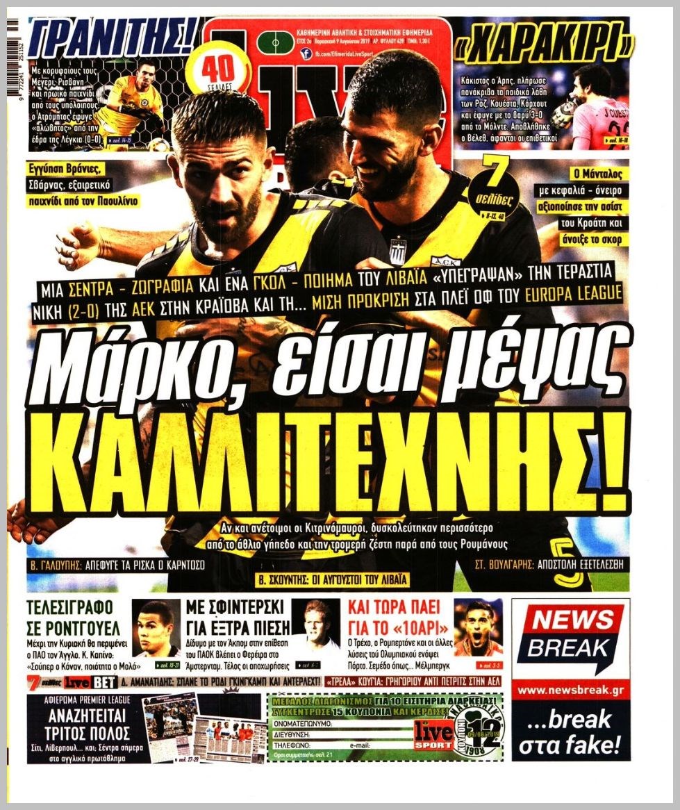Οι αθλητικές εφημερίδες 9/8/19 Διονύσης Νίκκας 06:22, Παρασκευή 09 Αυγούστου 2019 Media Διαβάστε τα πρωτοσέλιδα των αθλητικών εφημερίδων… ΑΘΛΗΤΙΚΩΝ ΕΦΗΜΕΡΙΔΩΝ ΠΡΩΤΟΣΕΛΙΔΑ Μοιράσου το: σχολίασε κι εσύ (0 σχόλια) Ακολουθήστε το enikos.gr στο Google News και μάθετε πρώτοι όλες τις ειδήσεις Δείτε όλες τις τελευταίες ειδήσεις από την Ελλάδα και τον Κόσμο στο enikos.gr Ειδήσεις Ροή Ειδήσεων 15 λεπτά πριν Σίδνεϊ: Τουλάχιστον 10 νεκροί και 16 τραυματίες σε ένοπλη επίθεση – Βίντεο από «ήρωα» περαστικό που αφόπλισε έναν δράστη 2 ώρες πριν Κυριάκος Μητσοτάκης μετά το «όχι» των αγροτών: Διάλογος δεν γίνεται με τελεσίγραφα και οι λύσεις προκύπτουν μόνο από συζήτηση 28 λεπτά πριν Στιγμές τρόμου για επιβάτες λεωφορείου στη Θεσσαλονίκη: Ο οδηγός πέρασε με κόκκινο σε σιδηροδρομική διάβαση ενώ ερχόταν τρένο και έσπασε την μπάρα 5 ώρες πριν ΟΠΕΚΕΠΕ – Κρήτη: Στην Ευρωπαϊκή Εισαγγελία οι 15 από τους 16 συλληφθέντες για τις παράνομες επιδοτήσεις 3 ώρες πριν Πανεπιστήμιο Μπράουν: Βίντεο με αστυνομικούς να διασώζουν φοιτητές που είχαν κρυφτεί σε βιβλιοθήκη – Μαρτυρίες για σκηνές χάους και τρόμου 19 λεπτά πριν Προπονήτρια ευεξίας που έχασε 24 κιλά αποκαλύπτει: «Αυτά είναι τα 6 ανησυχητικά σημάδια της υψηλής κορτιζόλης» 2 ώρες πριν Η ζωή γίνεται πολύ καλύτερη για 3 ζώδια – «Ίσως έχει έρθει η ώρα να κάνετε μια πραγματική και μόνιμη αλλαγή» 1 ώρα πριν Τα 8 πράγματα που τα ευτυχισμένα ζευγάρια δεν κάνουν ποτέ μπροστά στα παιδιά τους 3 ώρες πριν Ξέσπασε σε κλάματα με το χριστουγεννιάτικο δώρο του άνδρα της – «Μου είπε ότι είμαι το πιο αχάριστο άτομο που έχει γνωρίσει» 4 λεπτά πριν Σκληραίνουν τη στάση τους οι αγρότες: Αποφασίζουν τις δράσεις της εβδομάδας – Αύριο το συλλαλητήριο στα δικαστήρια της Λάρισας 11 λεπτά πριν Λιβάνιος στη Βουλή: Στηρίζουμε την αυτοδιοίκηση, θεσμικά και οικονομικά – Επιστολική για τους Έλληνες του εξωτερικού και στις εθνικές εκλογές 15 λεπτά πριν Σίδνεϊ: Τουλάχιστον 10 νεκροί και 16 τραυματίες σε ένοπλη επίθεση – Βίντεο από «ήρωα» περαστικό που αφόπλισε έναν δράστη 19 λεπτά πριν Προπονήτρια ευεξίας που έχασε 24 κιλά αποκαλύπτει: «Αυτά είναι τα 6 ανησυχητικά σημάδια της υψηλής κορτιζόλης» 20 λεπτά πριν Άσθμα στα παιδιά: Τι είναι, πώς διαγιγνώσκεται και πώς αντιμετωπίζεται ENIKOS NETWORK «Πίσω από τις ειδήσεις υπάρχουν άνθρωποι»- Η υπόθεση του δότη σπέρματος και το όριο της ενημέρωσης Η «βρώμικη» αλήθεια για τον στεγνωτήρα χεριών: Πώς διασπείρει τα μικρόβια αντί να τα εξαλείφει, σύμφωνα με το Κλίβελαντ Επίδομα 10.000 ευρώ: Η λίστα με τις Περιφέρειες που θα το δώσουν για μετεγκατάσταση – Τι ισχύει για τα κριτήρια Καταστήματα: Ανοιχτά σήμερα – Πώς θα λειτουργήσουν τα μεγάλα εμπορικά και τα σούπερ μάρκετ Σύγχρονος Νοστράδαμος: Προειδοποιεί για «μεγάλο γεγονός» τους επόμενους μήνες που θα συγκλονίσει τη Βρετανία και τον κόσμο Τεστ παρατηρητικότητας: Μπορείτε να βρείτε τις 3 διαφορές στις εικόνες με έναν πιγκουίνο σε 14 δευτερόλεπτα περισσότερα 10:07 , Κυριακή 14 Δεκεμβρίου 2025 Η γη της ελιάς: Η αρχή του τέλους του Δημοσθένη πλησιάζει Η δραματική σειρά του MEGA «Η γη της ελιάς» επιφυλάσσει ακόμα μεγαλύτερες ανατροπές. Κάθε επει... 08:46 , Κυριακή 14 Δεκεμβρίου 2025 Η Realnews στο www.pressreader.com Διαβάστε την ψηφιακή έκδοση της εφημερίδας στην οθόνη του κινητού, του tablet και του υπολογισ... 08:15 , Κυριακή 14 Δεκεμβρίου 2025 Σήμερα με τη Realnews: Food & Travel μαζί Beaute και Μαστορέματα Σήμερα με τη Realnews: Food & Travel μαζί Beaute και Μα