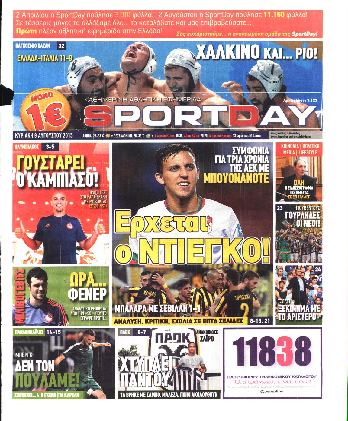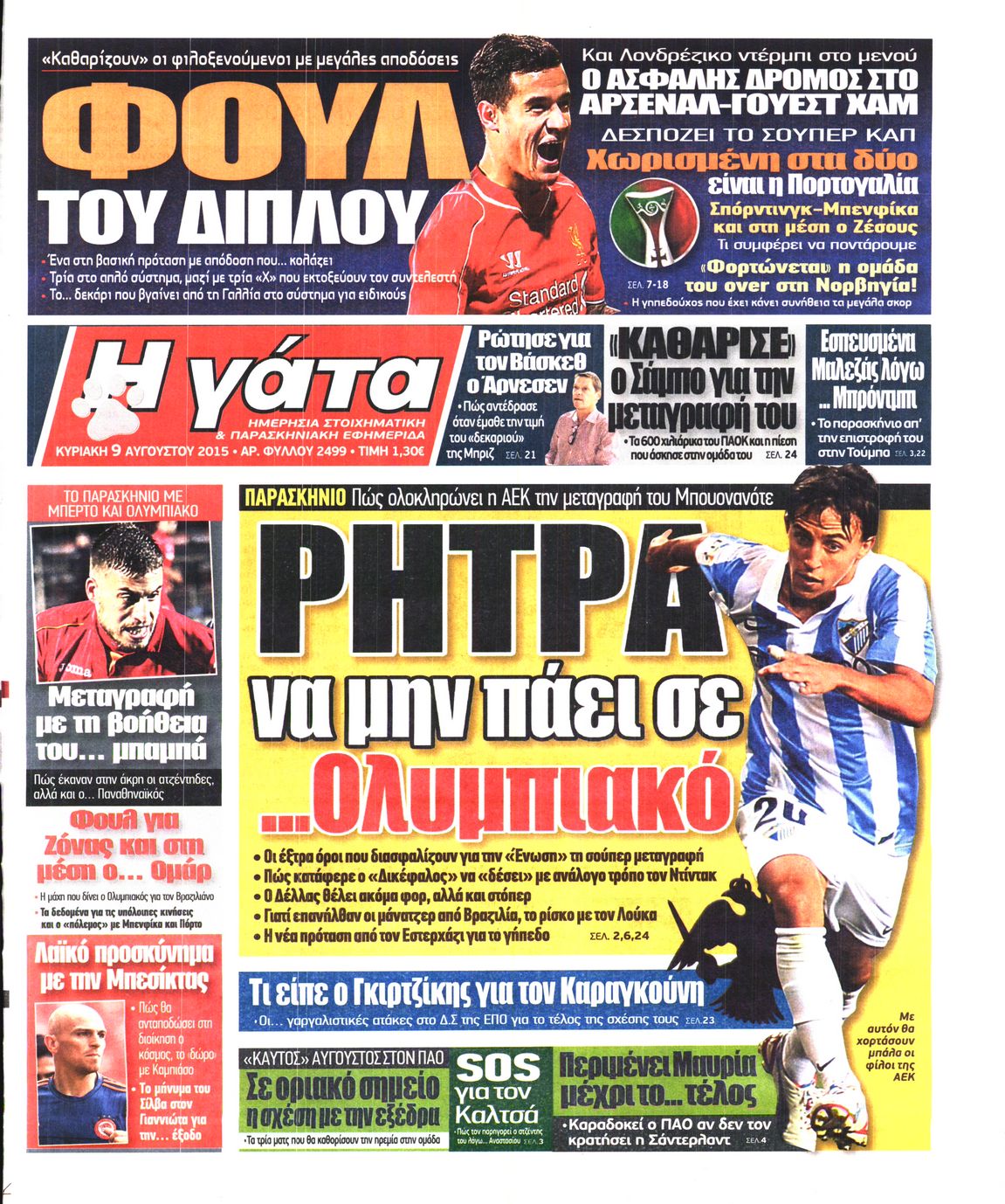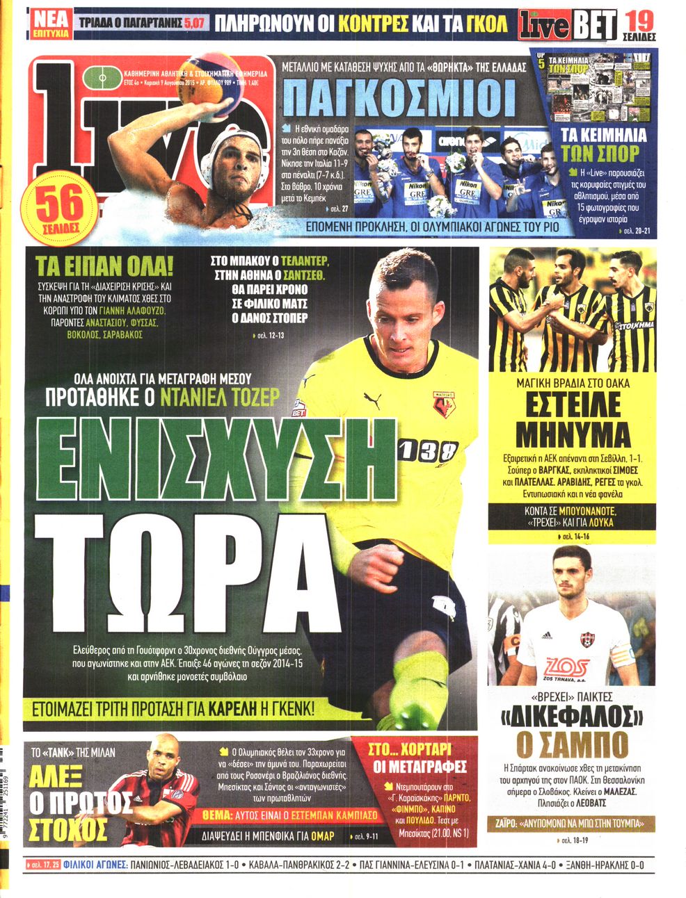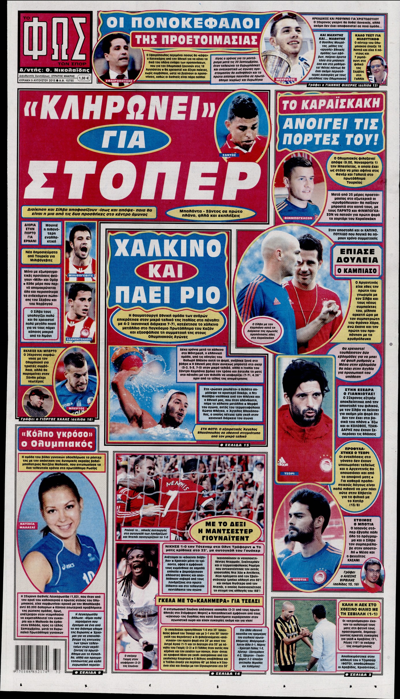 Οι αθλητικές εφημερίδες 9/8/2015 Enikos Newsroom 06:25, Κυριακή 09 Αυγούστου 2015 Media Διαβάστε τα σημερινά πρωτοσέλιδα των αθλητικών εφημερίδων: ΠΡΩΤΟΣΕΛΙΔΑ Μοιράσου το: σχολίασε κι εσύ (0 σχόλια) Ακολουθήστε το enikos.gr στο Google News και μάθετε πρώτοι όλες τις ειδήσεις Δείτε όλες τις τελευταίες ειδήσεις από την Ελλάδα και τον Κόσμο στο enikos.gr Ειδήσεις Ροή Ειδήσεων 42 λεπτά πριν Χριστούγεννα στα μπλόκα: Επιμένουν στις κινητοποιήσεις τους οι αγρότες – Ανοίγουν τα διόδια το Σαββατοκύριακο 1 ώρα πριν Ουκρανία: Η άνευ προηγουμένου επίθεση σε ρωσικό τάνκερ στη Μεσόγειο και το μήνυμα προς στον Πούτιν – Το «μακρύ χέρι» του Κιέβου 19 λεπτά πριν Πούτιν: Τα μηνύματα σε Ευρώπη και ΝΑΤΟ από το μαραθώνιο «σόου» του – Η απαίτηση για «σεβασμό» και η ειρήνη «με τους όρους» της Μόσχας 1 ώρα πριν Τραμπ: Δεν αποκλείει την πιθανότητα ενός πολέμου στη Βενεζουέλα – «Ο Μαδούρο ξέρει καλύτερα από τον καθένα τι ακριβώς θέλω» 2 ώρες πριν Συνεχίζει να προκαλεί ο Μίτσκοσκι: «Για μένα το όνομα Μακεδονία είναι ιερό» 4 ώρες πριν Πούτιν: «Ναι, είμαι ερωτευμένος» – Βίντεο από τη σπάνια προσωπική παραδοχή του 2 ώρες πριν Αριθμολογία: Οι άνθρωποι που έχουν γεννηθεί αυτές τις 4 ημερομηνίες, συχνά παρεξηγούνται – «Η καλοσύνη τους κρύβει τεράστια δύναμη» 1 ώρα πριν Ύπνος: Μια κρυφή κατάσταση του εγκεφάλου πριν από τον ύπνο μπορεί να είναι το “κλειδί” για υψηλή ευφυΐα και δημιουργικότητα 3 ώρες πριν Ξεχάστε το καθάρισμα το Σαββατοκύριακο: Ο «κανόνας των 20 λεπτών» που θα σας λύσει τα χέρια 20 λεπτά πριν Ανακαλύφθηκαν αρχαία χρυσά νομίσματα 2.200 ετών που απεικονίζουν τον θεό Απόλλωνα – Η άγνωστη σύνδεση με τον Φίλιππο Β΄ της Μακεδονίας 4 λεπτά πριν Ολυμπιακός – Βιλερμπάν 107-84: Επιστροφή στις νίκες με… προπόνηση 10 λεπτά πριν Νέος Κόσμος: Συνελήφθη 41χρονος με ένταλμα από την Τουρκία για εμπόριο ναρκωτικών και ληστεία 19 λεπτά πριν Πούτιν: Τα μηνύματα σε Ευρώπη και ΝΑΤΟ από το μαραθώνιο «σόου» του – Η απαίτηση για «σεβασμό» και η ειρήνη «με τους όρους» της Μόσχας 20 λεπτά πριν Ανακαλύφθηκαν αρχαία χρυσά νομίσματα 2.200 ετών που απεικονίζουν τον θεό Απόλλωνα – Η άγνωστη σύνδεση με τον Φίλιππο Β΄ της Μακεδονίας 25 λεπτά πριν Νίκος Ξυλούρης: Συγκινεί η χήρα του σπουδαίου καλλιτέχνη – «Ευχαριστώ όλο τον κόσμο που τον κρατάει ζωντανό 45 χρόνια» ENIKOS NETWORK Το ΕΚΑΒ τιμήθηκε από την Ακαδημία Αθηνών για τα 40 χρόνια προσφοράς του Έχετε πραγματικά μεγάλη καρδιά; 10 χαρακτηριστικά όσων έχουν καλοσύνη Αναστολή μέτρων αναγκαστικής εκτέλεσης για κτηνοτρόφους που πλήττονται από την ευλογιά των αιγοπροβάτων Πλήρης επάρκεια προϊόντων στις λαϊκές της Αττικής, παρά τις αγροτικές κινητοποιήσεις – Τι απαντούν οι πωλητές Χαρτογραφώντας το «σημείο χωρίς επιστροφή»: Για πρώτη φορά αποκαλύπτεται με λεπτομέρεια το ακανθώδες όριο της ατμόσφαιρας τ... Η Google καταργεί τη λειτουργία «dark web report» – Πώς θα μπορούν οι χρήστες να διαγράφουν τα δεδομένα τους περισσότερα 22:42 , Παρασκευή 19 Δεκεμβρίου 2025 Γιώργος Γιαννόπουλος για “Το σόι σου”: “Είναι ευτυχία και ευλογία αυτή η σειρά” «Είναι ευτυχία και ευλογία η συγκυρία αυτής της σειράς», θα πει ο Γιώργος Γιαννόπουλος -ο αγαπ... 20:37 , Παρασκευή 19 Δεκεμβρίου 2025 Don’t Forget The Lyrics: Η Έλλη Κοκκίνου υποδέχεται 4 παίκτες που θα κάνουν τα πάντα για να μη χάσουν ούτε… μισή λέξη από τους στίχους Το «Don’t Forget The Lyrics» επιστρέφει απόψε, Παρασκευή 19 Δεκεμβρίου, στις 21:00 με νέο επει... 19:31 , Παρασκευή 19 Δεκεμβρίου 2025 GNTM: Απ