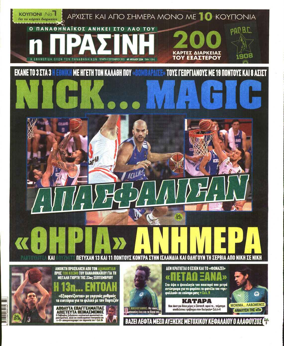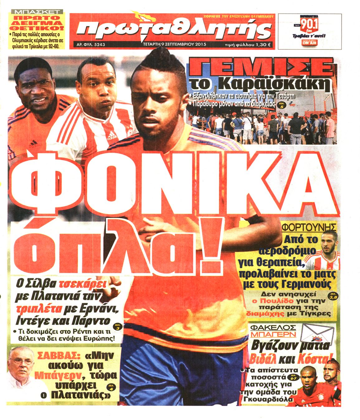 Οι αθλητικές εφημερίδες 9/9/2015 Enikos Newsroom 07:43, Τετάρτη 09 Σεπτεμβρίου 2015 Media Διαβάστε τα σημερινά πρωτοσέλιδα των αθλητικών εφημερίδων. ΑΘΛΗΤΙΚΕΣ ΕΦΗΜΕΡΙΔΕΣ ΠΡΩΤΟΣΕΛΙΔΑ Μοιράσου το: σχολίασε κι εσύ (0 σχόλια) Ακολουθήστε το enikos.gr στο Google News και μάθετε πρώτοι όλες τις ειδήσεις Δείτε όλες τις τελευταίες ειδήσεις από την Ελλάδα και τον Κόσμο στο enikos.gr Ειδήσεις Ροή Ειδήσεων 6 ώρες πριν Χριστούγεννα στα μπλόκα: Επιμένουν στις κινητοποιήσεις τους οι αγρότες – Ανοίγουν τα διόδια το Σαββατοκύριακο 7 ώρες πριν Ουκρανία: Η άνευ προηγουμένου επίθεση σε ρωσικό τάνκερ στη Μεσόγειο και το μήνυμα προς στον Πούτιν – Το «μακρύ χέρι» του Κιέβου 6 ώρες πριν Πούτιν: Τα μηνύματα σε Ευρώπη και ΝΑΤΟ από το μαραθώνιο «σόου» του – Η απαίτηση για «σεβασμό» και η ειρήνη «με τους όρους» της Μόσχας 7 ώρες πριν Τραμπ: Δεν αποκλείει την πιθανότητα ενός πολέμου στη Βενεζουέλα – «Ο Μαδούρο ξέρει καλύτερα από τον καθένα τι ακριβώς θέλω» 8 ώρες πριν Συνεχίζει να προκαλεί ο Μίτσκοσκι: «Για μένα το όνομα Μακεδονία είναι ιερό» 6 ώρες πριν Ανακαλύφθηκαν αρχαία χρυσά νομίσματα 2.200 ετών που απεικονίζουν τον θεό Απόλλωνα – Η άγνωστη σύνδεση με τον Φίλιππο Β΄ της Μακεδονίας 7 ώρες πριν Ύπνος: Μια κρυφή κατάσταση του εγκεφάλου πριν από τον ύπνο μπορεί να είναι το “κλειδί” για υψηλή ευφυΐα και δημιουργικότητα 8 ώρες πριν Αριθμολογία: Οι άνθρωποι που έχουν γεννηθεί αυτές τις 4 ημερομηνίες, συχνά παρεξηγούνται – «Η καλοσύνη τους κρύβει τεράστια δύναμη» 9 ώρες πριν Ξεχάστε το καθάρισμα το Σαββατοκύριακο: Ο «κανόνας των 20 λεπτών» που θα σας λύσει τα χέρια 12 λεπτά πριν Μοχάμεντ Σαλάχ: Ζήτησε «συγγνώμη» από τους συμπαίκτες του στη Λίβερπουλ για το ξέσπασμά του 27 λεπτά πριν Μάρκο Ρούμπιο: Ανθρωπιστική κατάπαυση του πυρός στο Σουδάν ζητά ο Αμερικανός υπουργός Εξωτερικών 42 λεπτά πριν Αγγελική Νικολούλη: Τα συλλυπητήρια για την απώλεια της Ειρήνης Μαρινάκη 57 λεπτά πριν Βολιβία: Μαζική διαδηλώσεις εναντίον της κατάργησης των επιδοτήσεων των τιμών των καυσίμων 1 ώρα πριν Φως στο Τούνελ: Έφτασε η ώρα της αλήθειας για την δολοφονία της χήρας του πρώην υπουργού στο Κολωνάκι ENIKOS NETWORK Το ΕΚΑΒ τιμήθηκε από την Ακαδημία Αθηνών για τα 40 χρόνια προσφοράς του Έχετε πραγματικά μεγάλη καρδιά; 10 χαρακτηριστικά όσων έχουν καλοσύνη Αναστολή μέτρων αναγκαστικής εκτέλεσης για κτηνοτρόφους που πλήττονται από την ευλογιά των αιγοπροβάτων Πλήρης επάρκεια προϊόντων στις λαϊκές της Αττικής, παρά τις αγροτικές κινητοποιήσεις – Τι απαντούν οι πωλητές Χαρτογραφώντας το «σημείο χωρίς επιστροφή»: Για πρώτη φορά αποκαλύπτεται με λεπτομέρεια το ακανθώδες όριο της ατμόσφαιρας τ... Η Google καταργεί τη λειτουργία «dark web report» – Πώς θα μπορούν οι χρήστες να διαγράφουν τα δεδομένα τους περισσότερα 04:20 , Σάββατο 20 Δεκεμβρίου 2025 Αγγελική Νικολούλη: Τα συλλυπητήρια για την απώλεια της Ειρήνης Μαρινάκη Τα συλληπητήρια στον πρόεδρο του Mega, τον Βαγγέλη Μαρινάκη, για την απώλεια της μητέρας του Ε... 02:50 , Σάββατο 20 Δεκεμβρίου 2025 GNTM: Η Ξένια Τσίρκοβα αναδείχθηκε μεγάλη νικήτρια και πήρε τις 50.000 ευρώ – Ποιος βρέθηκε σε απόσταση αναπνοής; Με φαντασμαγορικό τρόπο ολοκληρώθηκε το βράδυ της Παρασκευής ο μεγάλος τελικός του GNTM, μέσα ... 22:42 , Παρασκευή 19 Δεκεμβρίου 2025 Γιώργος Γιαννόπουλος για “Το σόι σου”: “Είναι ευτυχία και ευλογία αυτή η σειρά” «Είναι ευτυχία και ευλογία η συγκυρία αυτής της σειράς», θα πει ο Γιώργος Γιαννόπουλος -ο αγαπ... 2