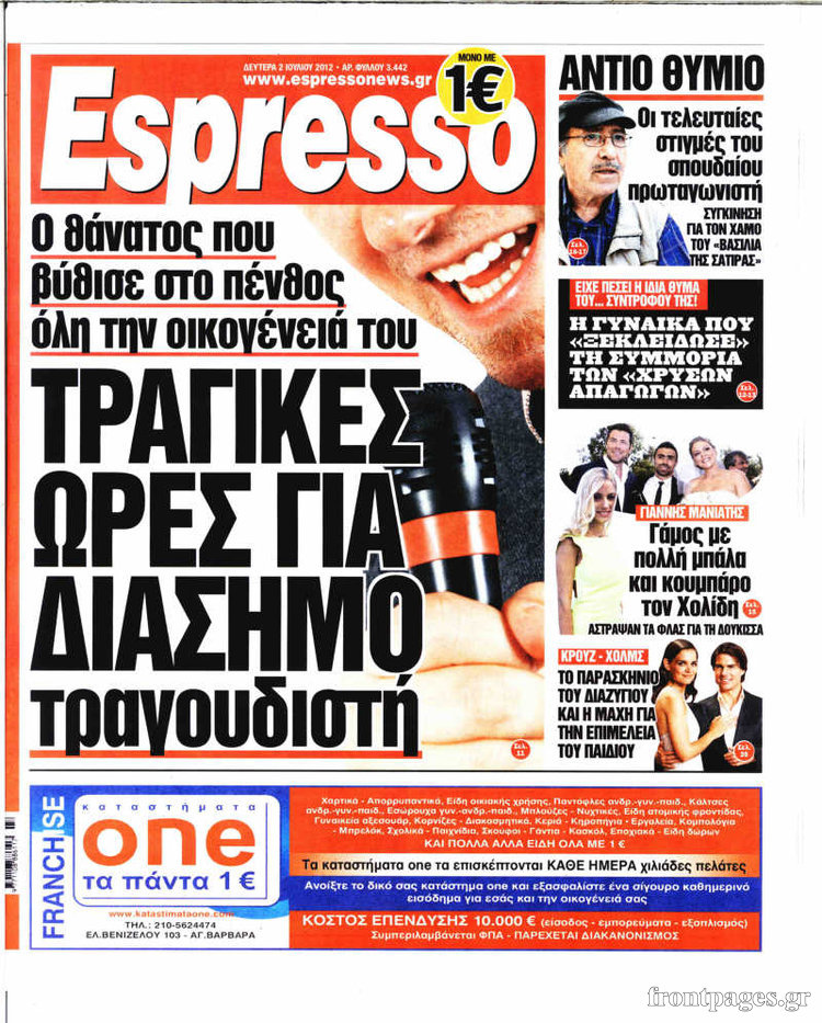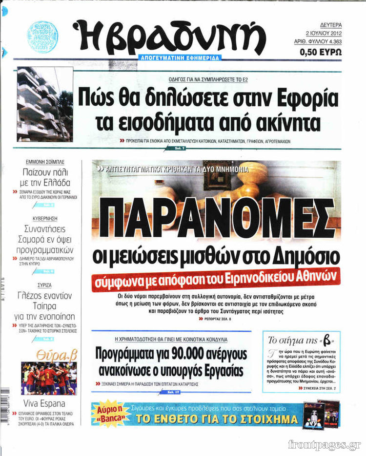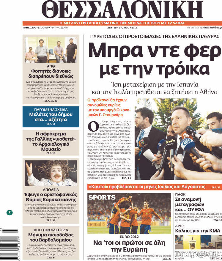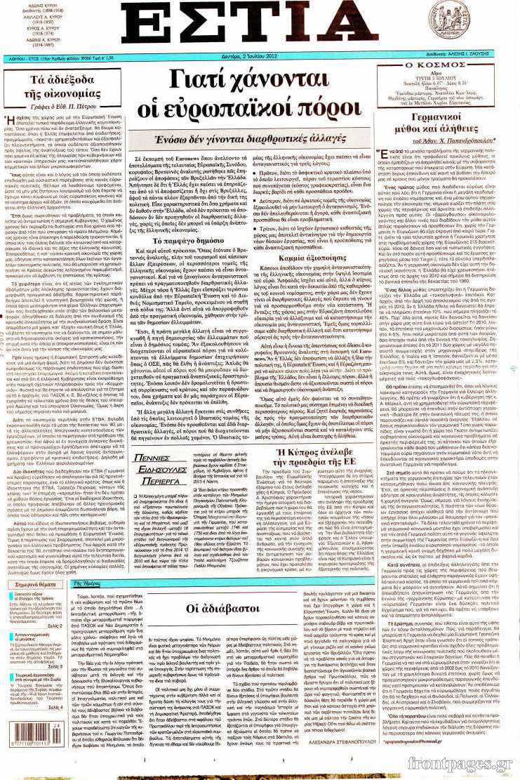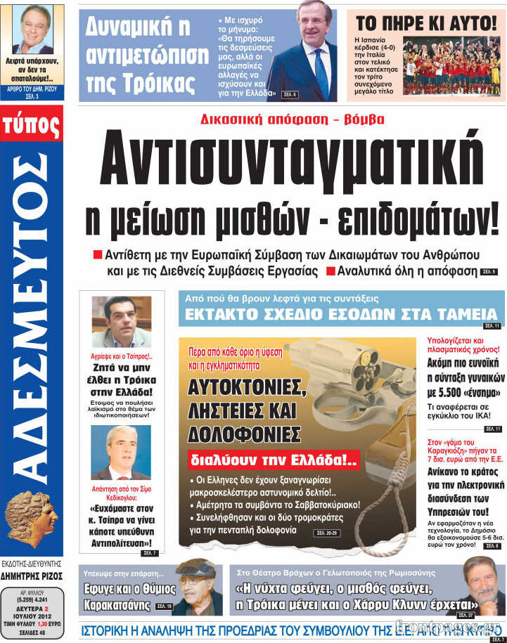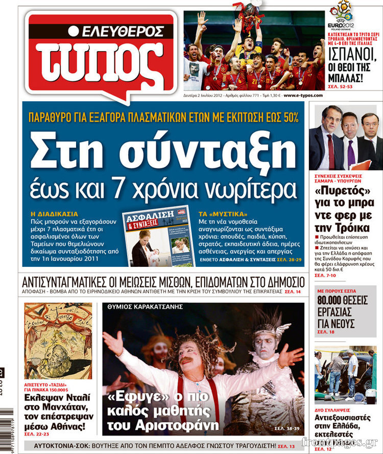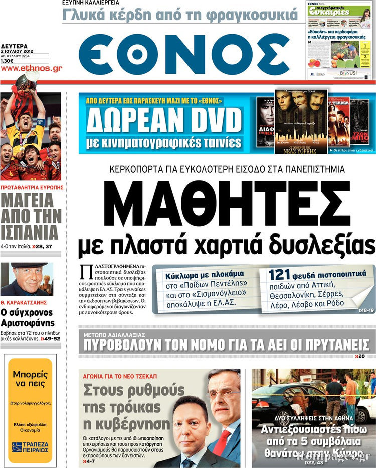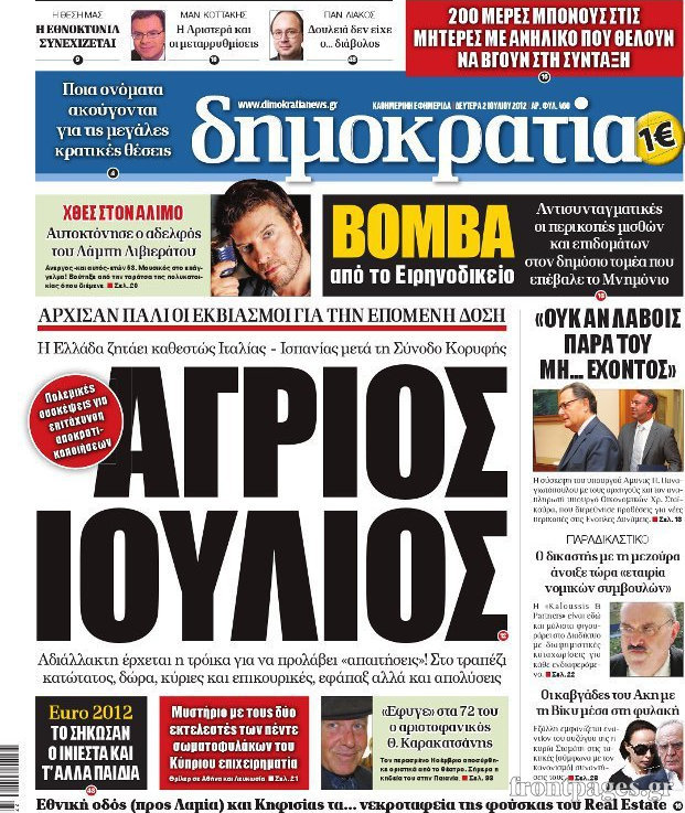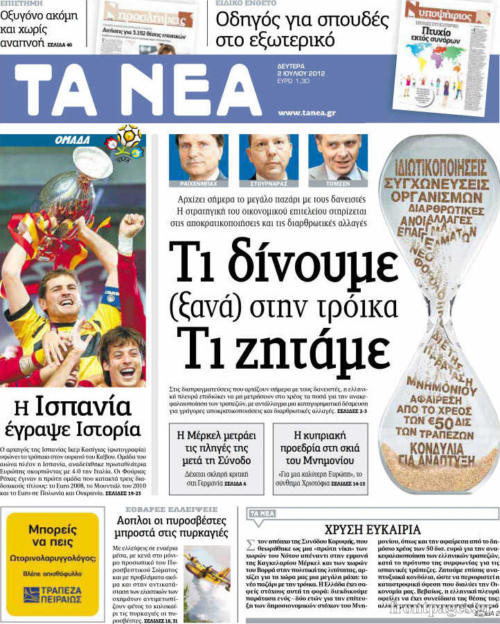 Οι εφημερίδες σήμερα Enikos Newsroom 09:14, Δευτέρα 02 Ιουλίου 2012 Media ΕΦΗΜΕΡΙΔΕΣ Μοιράσου το: σχολίασε κι εσύ (0 σχόλια) Ακολουθήστε το enikos.gr στο Google News και μάθετε πρώτοι όλες τις ειδήσεις Δείτε όλες τις τελευταίες ειδήσεις από την Ελλάδα και τον Κόσμο στο enikos.gr Ειδήσεις Ροή Ειδήσεων 9 ώρες πριν Χριστούγεννα στα μπλόκα: Επιμένουν στις κινητοποιήσεις τους οι αγρότες – Ανοίγουν τα διόδια το Σαββατοκύριακο 1 ώρα πριν Σαρωτικοί οι έλεγχοι στους δρόμους ενόψει εορτών – Μπλόκα της τροχαίας σε κεντρικές αρτηρίες της Αττικής 8 ώρες πριν Πούτιν: Τα μηνύματα σε Ευρώπη και ΝΑΤΟ από το μαραθώνιο «σόου» του – Η απαίτηση για «σεβασμό» και η ειρήνη «με τους όρους» της Μόσχας 7 ώρες πριν ΗΠΑ: Η κυβέρνηση του Ντόναλντ Τραμπ άρχισε να δημοσιοποιεί τα αρχεία Έπσταϊν 8 ώρες πριν Άνω Λιόσια: Πυροβολισμοί σε επιχείρηση με χαλιά – Εντοπίστηκαν 10 κάλυκες 1 ώρα πριν Αυγά: Πόσα μπορείτε να τρώτε την ημέρα με ασφάλεια για μέγιστη πρόσληψη πρωτεΐνης 2 ώρες πριν Τα ζώδια σήμερα, Σάββατο 20 Δεκεμβρίου: Παρθένοι, το σύμπαν σας δίνει το κλειδί 8 ώρες πριν Ανακαλύφθηκαν αρχαία χρυσά νομίσματα 2.200 ετών που απεικονίζουν τον θεό Απόλλωνα – Η άγνωστη σύνδεση με τον Φίλιππο Β΄ της Μακεδονίας 1 ώρα πριν Οπτική ψευδαίσθηση: Μόνο αν είσαι ο Σέρλοκ Χολμς θα βρεις τον αριθμό «87» σε 7 δευτερόλεπτα 4 λεπτά πριν Οι αθλητικές μεταδόσεις 20/12/2025 14 λεπτά πριν Εορτολόγιο: Ποιοι γιορτάζουν σήμερα 20 Δεκεμβρίου 21 λεπτά πριν Συρία: Μπαράζ αμερικανικών επιδρομών εναντίον του ISIS – «Πλήττουμε δυνατά οχυρά του ΙΚ» λέει ο Ντόναλντ Τραμπ 30 λεπτά πριν Αναβολή συμφωνίας ΕΕ-Mercosur: Ο χρόνος «δεν είναι απεριόριστος» προειδοποιεί η Παραγουάη 45 λεπτά πριν Κίριλ Ντμίτριεφ: Στις ΗΠΑ ο απεσταλμένος της Ρωσίας για συνομιλίες με τους ομολόγους του, Γουίτκοφ και Κούσνερ ENIKOS NETWORK Πρέπει να αποδέχεστε ή να απορρίπτετε όλα τα cookies; Ένας ειδικός εξηγεί Η αγαπημένη λιχουδιά των πόνι που μπορεί να ενισχύσει όραση, εγκέφαλο και ανοσοποιητικό Αναστολή μέτρων αναγκαστικής εκτέλεσης για κτηνοτρόφους που πλήττονται από την ευλογιά των αιγοπροβάτων Πλήρης επάρκεια προϊόντων στις λαϊκές της Αττικής, παρά τις αγροτικές κινητοποιήσεις – Τι απαντούν οι πωλητές Χαρτογραφώντας το «σημείο χωρίς επιστροφή»: Για πρώτη φορά αποκαλύπτεται με λεπτομέρεια το ακανθώδες όριο της ατμόσφαιρας τ... Η Google καταργεί τη λειτουργία «dark web report» – Πώς θα μπορούν οι χρήστες να διαγράφουν τα δεδομένα τους περισσότερα 05:48 , Σάββατο 20 Δεκεμβρίου 2025 Οι οικονομικές εφημερίδες 20/12/2025 Διαβάστε τα πρωτοσέλιδα από τις οικονομικές εφημερίδες, σήμερα 20/12/2025. 05:43 , Σάββατο 20 Δεκεμβρίου 2025 Οι αθλητικές εφημερίδες 20/12/2025 Διαβάστε τα πρωτοσέλιδα από τις αθλητικές εφημερίδες, σήμερα 20/12/2025. 05:38 , Σάββατο 20 Δεκεμβρίου 2025 Οι πολιτικές εφημερίδες 20/12/2025 Διαβάστε τα πρωτοσέλιδα από τις πολιτικές εφημερίδες, σήμερα 20/12/2025. 04:20 , Σάββατο 20 Δεκεμβρίου 2025 Αγγελική Νικολούλη: Τα συλλυπητήρια για την απώλεια της Ειρήνης Μαρινάκη Τα συλληπητήρια στον πρόεδρο του Mega, τον Βαγγέλη Μαρινάκη, για την απώλεια της μητέρας του Ε... ΤΕΛΕΥΤΑΙΕΣ ΕΙΔΗΣΕΙΣ 4 λεπτά πριν Οι αθλητικές μεταδόσεις 20/12/2025 14 λεπτά πριν Εορτολόγιο: Ποιοι γιορτάζουν σήμερα 20 Δεκεμβρίου 21 λεπτά πριν Συρία: Μπαράζ αμερικανικών επιδρομών εναντίον του ISIS... 30 λεπτά πριν Αναβολή συμφωνίας ΕΕ-Mercosur: Ο χρόνος «δεν είναι... 45 λεπτά πριν Κίριλ Ντμίτριεφ: Στις ΗΠΑ ο απεσταλμένος της Ρωσίας... 52 λεπτά πριν ΔΕΔΔΗΕ: Διακοπές ρεύματος σήμερα (20/12) στ