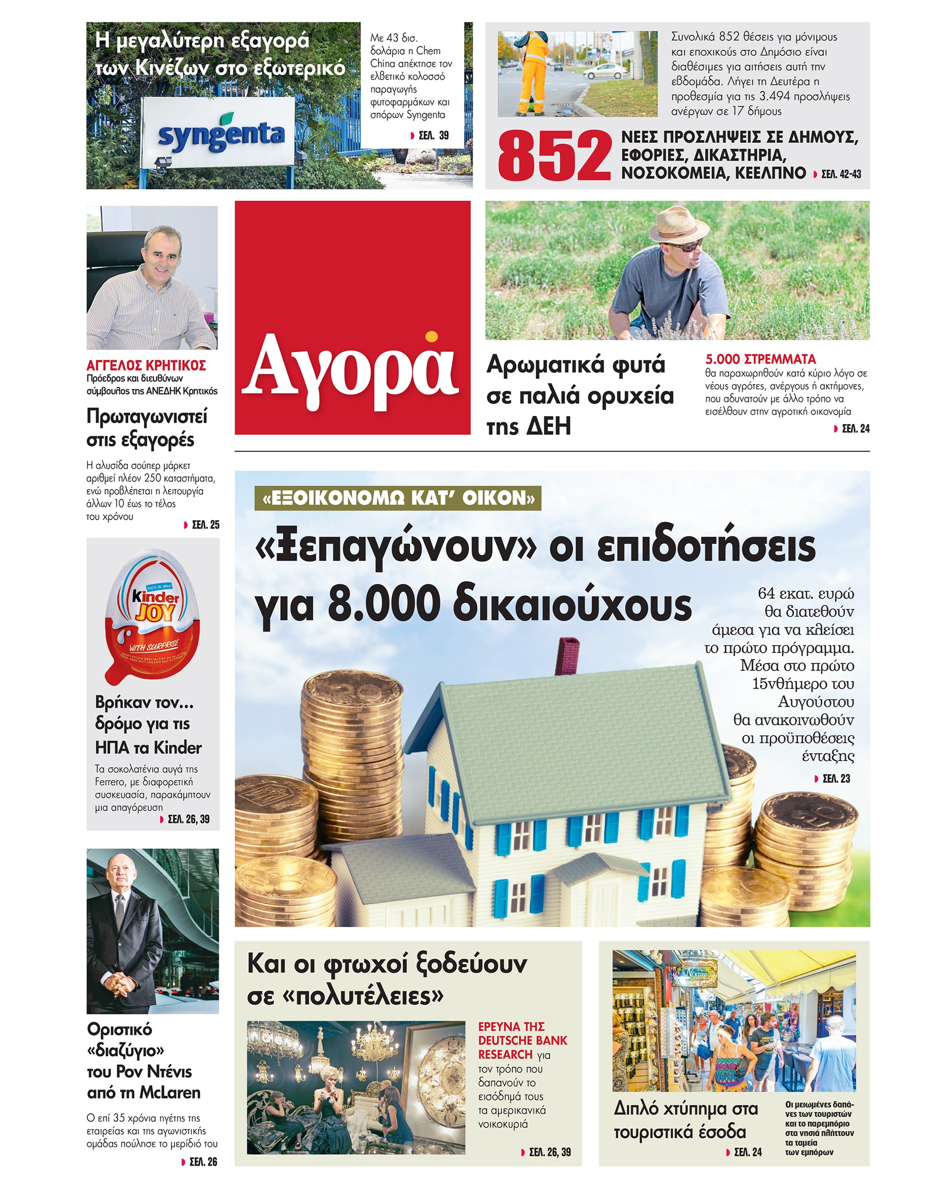 - «Ξεπαγώνουν» οι επιδοτήσεις για το πρώτο πρόγραμμα του «Εξοικονομώ κατ’ οίκον». 64 εκατ. ευρώ θα διατεθούν άμεσα σε 8.000 δικαιούχους.