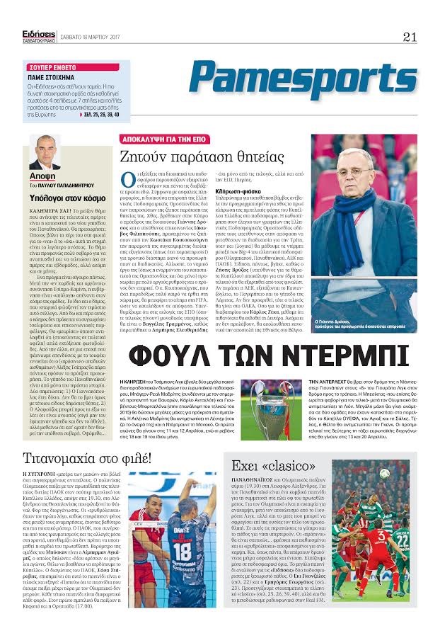 Με τίτλο «Μαύρη τρύπα 600 εκατ. ευρώ στο ασφαλιστικό» κυκλοφορεί σήμερα Σάββατο η νέα καθημερινή εφημερίδα «Ειδήσεις» του Σαββατοκύριακου, του Real Group, με την υπογραφή του Νίκου Χατζηνικολάου.Η εφημερίδα αποκαλύπτει ότι οι δανειστές απαιτούν πρόσθετες περικοπές συντάξεων, καθώς η κατάργηση της προσωπικής διαφοράς αποτιμάται στο 1,2 δισ. ευρώ, ενώ η συμφωνηθείσα περικοπή στο ασφαλιστικό ανέρχεται στο 1,8 δισ. ευρώ. Στις «Ειδήσεις» μπορείτε ακόμη να διαβάσετε:- Μήνυμα από τις Βρυξέλλες: «Kλείστε την αξιολόγηση ή ξεχάστε τις αγορές το 2018» – Αποκαλυπτικές συνεντεύξεις του αναπληρωτή υπουργού Εξωτερικών Γιώργου Κατρούγκαλου, που υποστηρίζει ότι «δεν χρειάζονται 180 ψήφοι για τα μέτρα», και του αντιπροέδρου της Ν.Δ. Αδωνι Γεωργιάδη, που δηλώνει ότι «δεν έχω αντιπάλους μέσα στη Νέα Δημοκρατία».- Ρεπορτάζ για την απαγωγή-θρίλερ επιχειρηματία με λεία 125.000 ευρώ. – Τι οδήγησε στην καταδικαστική απόφαση σε οκτώ χρόνια κάθειρξης χωρίς αναστολή του Αρτέμη Σώρρα.Η εφημερίδα φιλοξενεί ακόμη ρεπορτάζ για:- Τα δημόσια νοσοκομεία που προσφέρουν gourmet φαγητό.- Την υπουργό-σταρ στην Τουρκία που απέλασαν οι Ολλανδοί.