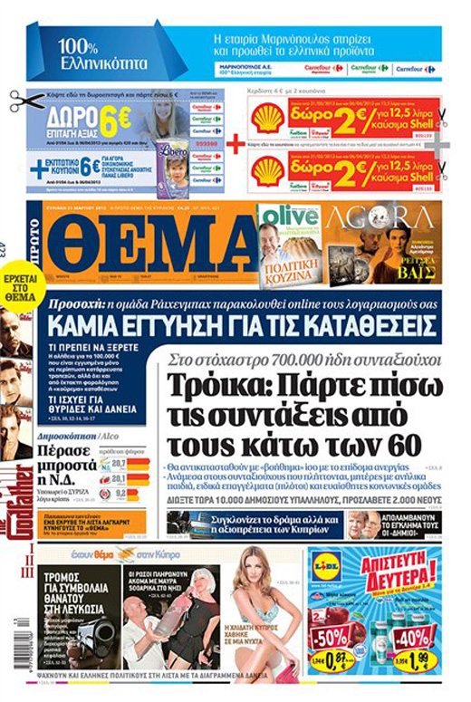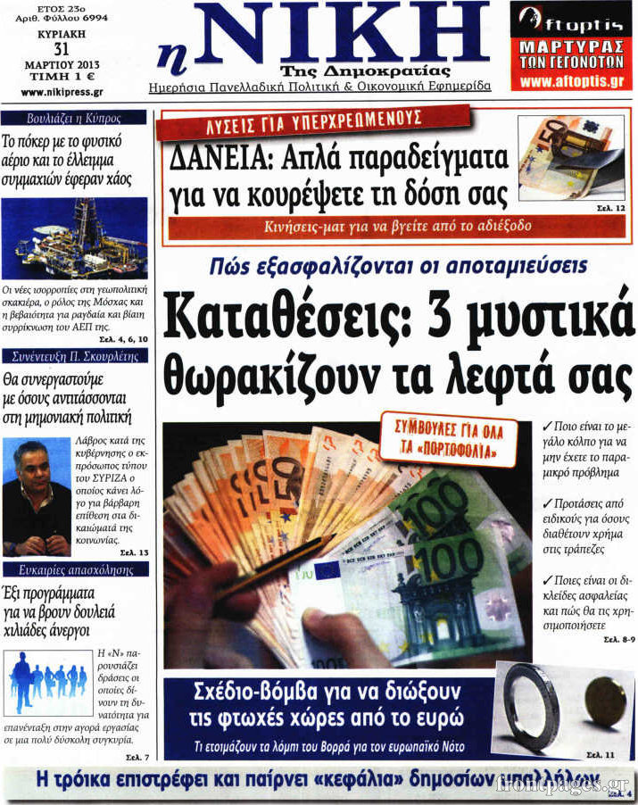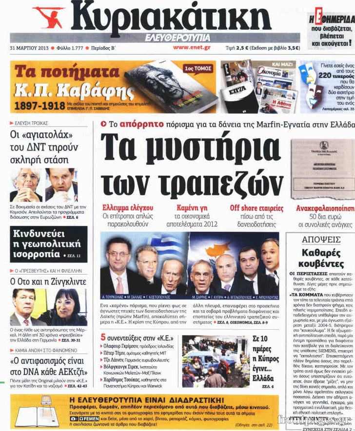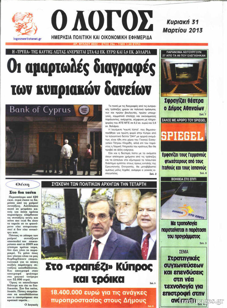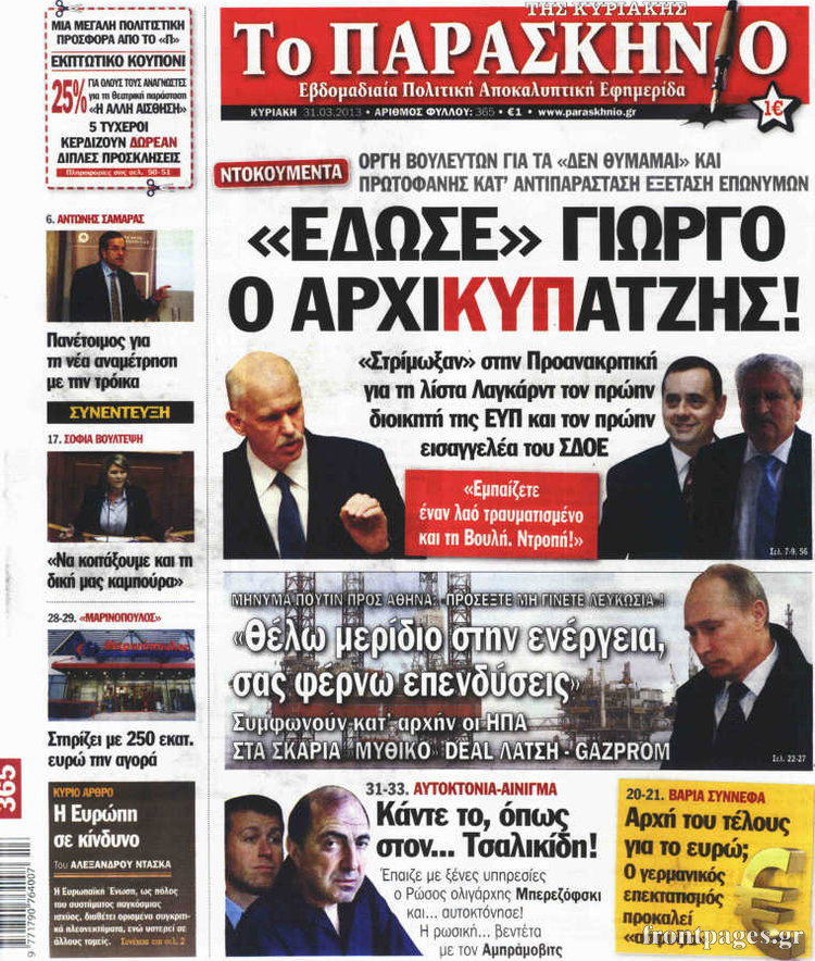 Οι κυριακάτικες εφημερίδες Enikos Newsroom 10:13, Κυριακή 31 Μαρτίου 2013 Media Οι κυριακάτικες εφημερίδες ΚΥΡΙΑΚΑΤΙΚΕΣ ΕΦΗΜΕΡΙΔΕΣ ΠΟΛΙΤΙΚΕΣ ΕΦΗΜΕΡΙΔΕΣ Μοιράσου το: σχολίασε κι εσύ (0 σχόλια) Ακολουθήστε το enikos.gr στο Google News και μάθετε πρώτοι όλες τις ειδήσεις Δείτε όλες τις τελευταίες ειδήσεις από την Ελλάδα και τον Κόσμο στο enikos.gr Ειδήσεις Ροή Ειδήσεων 1 ώρα πριν Αγρότες: Έδωσαν στη δημοσιότητα τη λίστα με τα αιτήματά τους – Δείτε αναλυτικά τι ζητούν 52 λεπτά πριν Σίδνεϊ: Οι φωτογραφίες των δύο δραστών της τρομοκρατικής επίθεσης – Έφοδος της αστυνομίας στο σπίτι του ενός 3 ώρες πριν ΟΠΕΚΕΠΕ-Κρήτη: Προθεσμία να απολογηθούν από την Τρίτη έως την Πέμπτη έλαβαν οι 16 συλληφθέντες 20 λεπτά πριν Θεσσαλονίκη: «Δεν έκανα κάτι παράνομο» είπε ο οδηγός του λεωφορείου – Αφέθηκε ελεύθερος, προκαταρκτική έρευνα διέταξε η εισαγγελέας 1 ώρα πριν Guardian: «Μύρισαν χρήμα και έσπευσαν» – Ο ανταγωνισμός αμερικανικών εταιρειών για να πλουτίσουν από την κατεστραμμένη Γάζα 3 ώρες πριν Τα 5 ζώδια που ευνοούνται στα ερωτικά τους έως τις 21 Δεκεμβρίου – «Η επόμενη σχέση σας θα είναι καθοριστική» 4 ώρες πριν Γεωλογική αποκάλυψη: Επιστήμονες εξηγούν πώς η Ιβηρική Χερσόνησος περιστρέφεται σαν… ρολόι 7 ώρες πριν Προπονήτρια ευεξίας που έχασε 24 κιλά αποκαλύπτει: «Αυτά είναι τα 6 ανησυχητικά σημάδια της υψηλής κορτιζόλης» 8 ώρες πριν Τα 8 πράγματα που τα ευτυχισμένα ζευγάρια δεν κάνουν ποτέ μπροστά στα παιδιά τους 4 λεπτά πριν Κωνσταντοπούλου από το μπλόκο της Νίκαιας: Οι αγρότες πήραν μια αξιοπρεπή απόφαση, ο αγώνας θα είναι νικηφόρος 12 λεπτά πριν Τροχαίο για τον Άρη Μουγκοπέτρο: «Για ακόμη μια φορά είχα Άγιο…» – Η ανάρτηση του μουσικού στο Instagram 20 λεπτά πριν Θεσσαλονίκη: «Δεν έκανα κάτι παράνομο» είπε ο οδηγός του λεωφορείου – Αφέθηκε ελεύθερος, προκαταρκτική έρευνα διέταξε η εισαγγελέας 28 λεπτά πριν Χρυσοχοΐδης: Η ΕΛΑΣ δεν διαθέτει πλαστικές σφαίρες – Υπάρχει κάποιος τραυματίας αγρότης εδώ και 16 ημέρες; 36 λεπτά πριν Μαίρη Συνατσάκη: Η εξομολόγηση για την κόρη της – «Αυτή είναι το φως, ο ήλιος – Ορίζει την πορεία και ακολουθούμε» ENIKOS NETWORK Όσοι λένε αυτή τη λέξη είναι κατά πάσα πιθανότητα ψεύτες Πρωτοβουλία της Ελλάδας για ενιαίο ευρωπαϊκό πλαίσιο στη δωρεά σπέρματος και ωαρίων Πορτοκαλί τιμολόγια ρεύματος: Πότε θα αρχίσει η εφαρμογή τους – Τι ισχύει για νοικοκυριά και επιχειρήσεις – Παραδείγματα Μετρό: Ποιες περιοχές μπαίνουν πρώτες στον χάρτη των νέων επεκτάσεων – Νέοι σταθμοί σε Γλυφάδα, Ίλιον και Μαρούσι Σύγχρονος Νοστράδαμος: Προειδοποιεί για «μεγάλο γεγονός» τους επόμενους μήνες που θα συγκλονίσει τη Βρετανία και τον κόσμο Τεστ παρατηρητικότητας: Μπορείτε να βρείτε τις 3 διαφορές στις εικόνες με έναν πιγκουίνο σε 14 δευτερόλεπτα περισσότερα 17:38 , Κυριακή 14 Δεκεμβρίου 2025 Τηλεθέαση (13/12): Τα ποσοστά για το βράδυ του Σαββάτου Η «μάχη» της prime time για την τηλεθέαση, συνεχίστηκε δυναμικά το βράδυ του Σαββάτου (13/12).... 16:32 , Κυριακή 14 Δεκεμβρίου 2025 Τηλεθέαση (13/12): Πώς κινήθηκαν οι εκπομπές στην πρωινή ζώνη το Σάββατο Με αμείωτη ένταση συνεχίστηκε η μάχη για την τηλεθέαση στην πρωινή ζώνη των τηλεοπτικών καναλι... 15:07 , Κυριακή 14 Δεκεμβρίου 2025 IQ160: Η Μαρίνα στέλνει το φούτερ του Τηλέμαχου για το τεστ πατρότητας Η Πηνελόπη αποφασίζει να κάνει αμνιοπαρακέντηση, για να βεβαιωθεί για την υγεία του μωρού της ... 12:46 , Κυριακή 14 Δεκεμβρίου 2025 Η Realnews στο www.pressreader.com Διαβάστε την ψηφιακή έκδοση της 