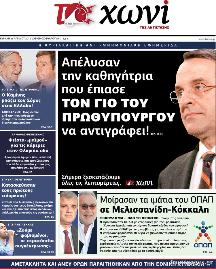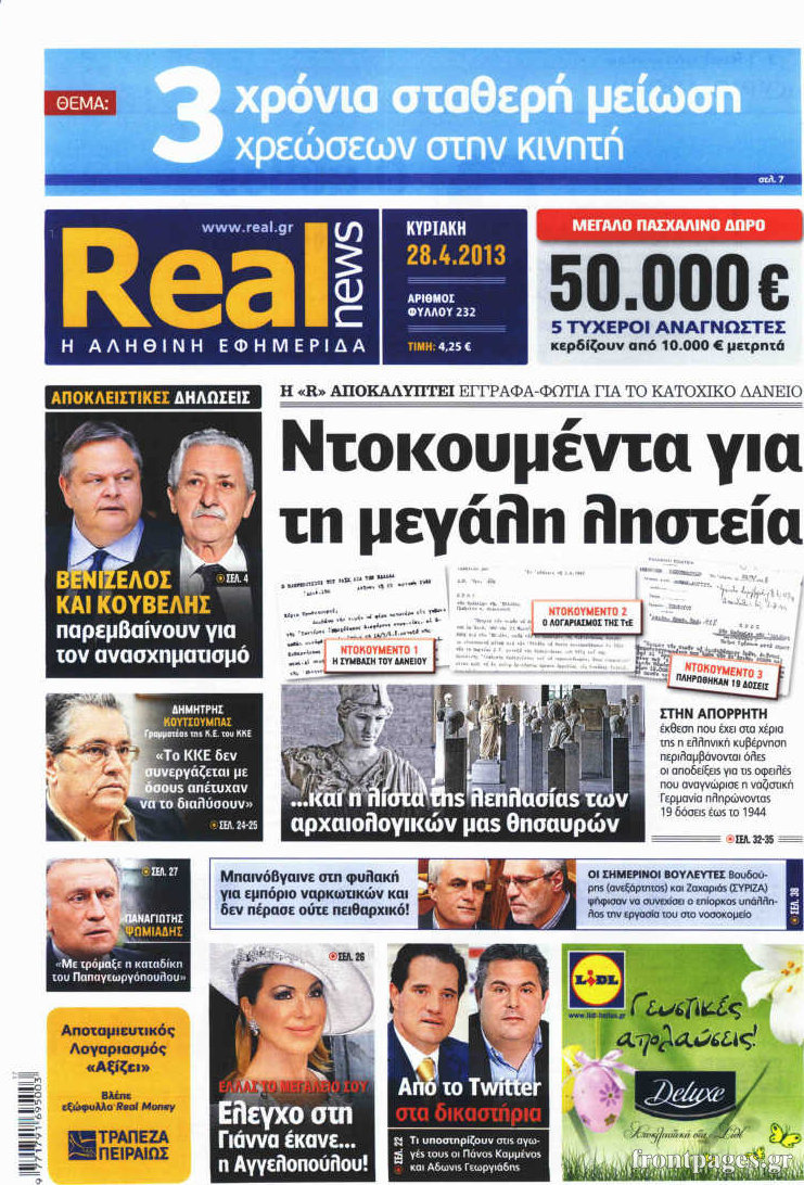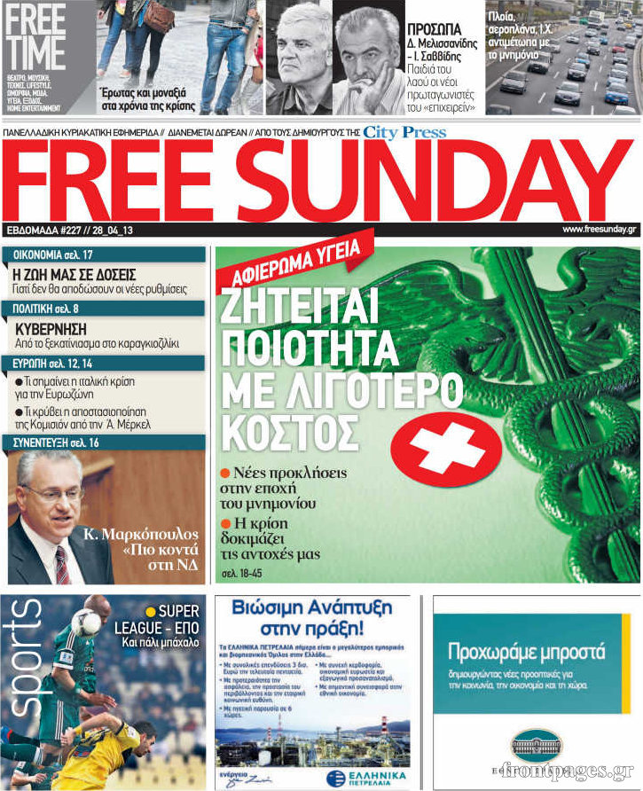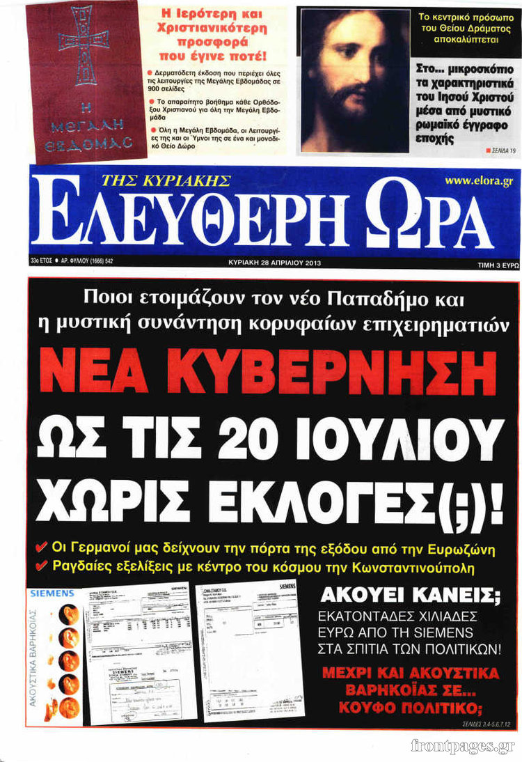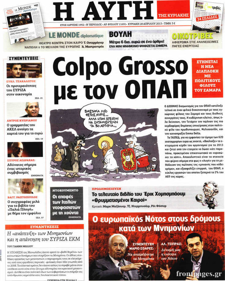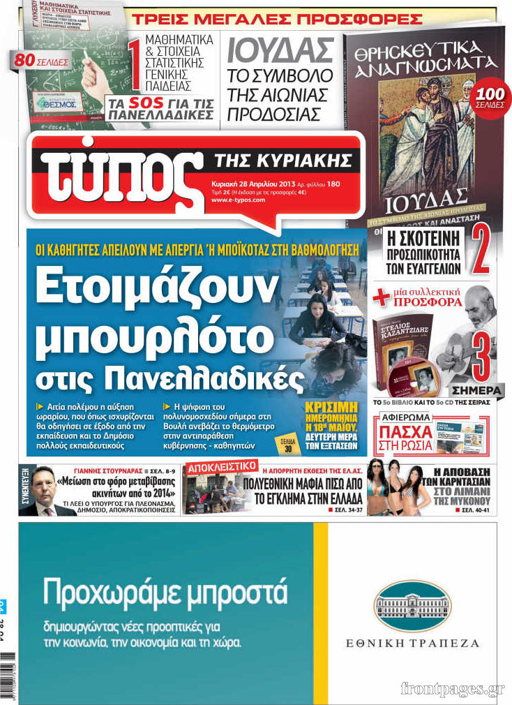 Οι κυριακάτικες εφημερίδες Enikos Newsroom 09:39, Κυριακή 28 Απριλίου 2013 Media Οι κυριακάτικες εφημερίδες ΚΥΡΙΑΚΑΤΙΚΕΣ ΕΦΗΜΕΡΙΔΕΣ ΠΟΛΙΤΙΚΕΣ ΕΦΗΜΕΡΙΔΕΣ Μοιράσου το: σχολίασε κι εσύ (0 σχόλια) Ακολουθήστε το enikos.gr στο Google News και μάθετε πρώτοι όλες τις ειδήσεις Δείτε όλες τις τελευταίες ειδήσεις από την Ελλάδα και τον Κόσμο στο enikos.gr Ειδήσεις Ροή Ειδήσεων 8 ώρες πριν Μακελειό στο Σίδνεϊ: Πατέρας και γιος οι δράστες της τρομοκρατικής επίθεσης – Γιατί η Αυστραλία βάζει στο στόχαστρο το Ιράν 8 ώρες πριν Μακελειό στην Αυστραλία: «Πέρασαν οι σφαίρες πάνω από το αυτοκίνητο» – Συγκλονίζει η μαρτυρία Έλληνα που ζει στο Σίδνεϊ 7 ώρες πριν Τρομοκρατική επίθεση στο Σίδνεϊ: «Το αναπόφευκτο συνέβη πλέον» – Πώς οι δράστες είχαν χάσει τον ανθρωπισμό τους πριν πατήσουν την σκανδάλη 7 ώρες πριν Όλα τα αιτήματα αγροτών, κτηνοτρόφων και μελισσοκόμων προς την κυβέρνηση – Παραμένουν στα μπλόκα και προαναγγέλλουν κλιμάκωση 10 ώρες πριν Λακωνία: Βίντεο ντοκουμέντο από την επιχείρηση διάσωσης της 13χρονης που έπεσε σε πηγάδι – Ποια ήταν τα πρώτα λόγια της 21 λεπτά πριν Οπτική ψευδαίσθηση: Μόνο το 1% των ανθρώπων θα βρει το ψάρι σε 12 δευτερόλεπτα 36 λεπτά πριν Διατροφή: Γιατρός προειδοποιεί για 2 απλά λάθη που αυξάνουν τον κίνδυνο χρόνιων παθήσεων 1 ώρα πριν Τα ζώδια σήμερα, Δευτέρα 15 Δεκεμβρίου: Ιχθύες, ξεκινήστε από εκεί που η παρουσία σας έχει σημασία 9 ώρες πριν Ύπνος: 5 λόγοι για τους οποίους ξυπνάτε κουρασμένοι το πρωί κατά τη διάρκεια του χειμώνα 5 λεπτά πριν Δημόσιο χρέος: Η Ελλάδα αποπληρώνει σήμερα πρόωρα 5,287 δισ. ευρώ από το πρώτο μνημόνιο – Στα 1,6 δισ. ευρώ η ελάφρυνση 13 λεπτά πριν Τραγωδία στην Κολομβία: Δεκαεπτά νεκροί, ανάμεσά τους 16 μαθητές λυκείου, από πτώση λεωφορείου σε χαράδρα 21 λεπτά πριν Οπτική ψευδαίσθηση: Μόνο το 1% των ανθρώπων θα βρει το ψάρι σε 12 δευτερόλεπτα 28 λεπτά πριν Δώρο Χριστουγέννων 2025: Πότε ξεκινά η πληρωμή του και πως να το υπολογίσετε – Ποιοι θα πάρουν περισσότερα φέτος 36 λεπτά πριν Διατροφή: Γιατρός προειδοποιεί για 2 απλά λάθη που αυξάνουν τον κίνδυνο χρόνιων παθήσεων ENIKOS NETWORK 8 κορυφαίες συμβουλές για άνδρες που θέλουν φλογερή σεξουαλική ζωή, σύμφωνα με ειδικό Baby botox: Ποια τα οφέλη και οι κίνδυνοι του να ξεκινήσει κάποιος τις ενέσεις πριν εμφανιστούν ρυτίδες Τέλος οι διώξεις για χρέη σε Εφορία και ΕΦΚΑ – Τι προβλέπει νέα διάταξη μετά την πτώχευση Υπουργείο Αγροτικής Ανάπτυξης: Ενισχύσεις de minimis ύψους 2,1 εκατ. ευρώ – Οι δικαιούχοι Σύγχρονος Νοστράδαμος: Προειδοποιεί για «μεγάλο γεγονός» τους επόμενους μήνες που θα συγκλονίσει τη Βρετανία και τον κόσμο Τεστ παρατηρητικότητας: Μπορείτε να βρείτε τις 3 διαφορές στις εικόνες με έναν πιγκουίνο σε 14 δευτερόλεπτα περισσότερα 05:49 , Δευτέρα 15 Δεκεμβρίου 2025 Οι οικονομικές εφημερίδες 15/12/2025 Διαβάστε τα πρωτοσέλιδα από τις οικονομικές εφημερίδες, σήμερα 15/12/2025. 05:43 , Δευτέρα 15 Δεκεμβρίου 2025 Οι αθλητικές εφημερίδες 15/12/2025 Διαβάστε τα πρωτοσέλιδα από τις αθλητικές εφημερίδες, σήμερα 15/12/2025. 05:38 , Δευτέρα 15 Δεκεμβρίου 2025 Οι πολιτικές εφημερίδες 15/12/2025 Διαβάστε τα πρωτοσέλιδα από τις πολιτικές εφημερίδες, σήμερα 15/12/2025. 21:34 , Κυριακή 14 Δεκεμβρίου 2025 Ο Δικαστής: Η Λέττα είναι αποφασισμένη να αποκαλύψει την αλήθεια για το τροχαίο, απόψε στις 21:45 στον ΑΝΤ1 Ραγδαίες οι εξελίξεις στο νέο επεισόδιο της σειράς “Ο Δικαστής” απόψε στις 21:45 σ... ΤΕΛΕΥΤΑΙΕΣ ΕΙΔΗΣΕΙΣ 5 λεπτά πριν Δημόσιο χρέος: Η Ελλάδα αποπληρώνει σήμερα πρόωρα 5
