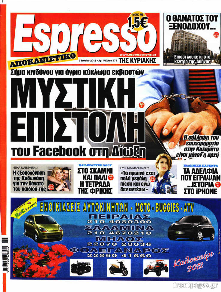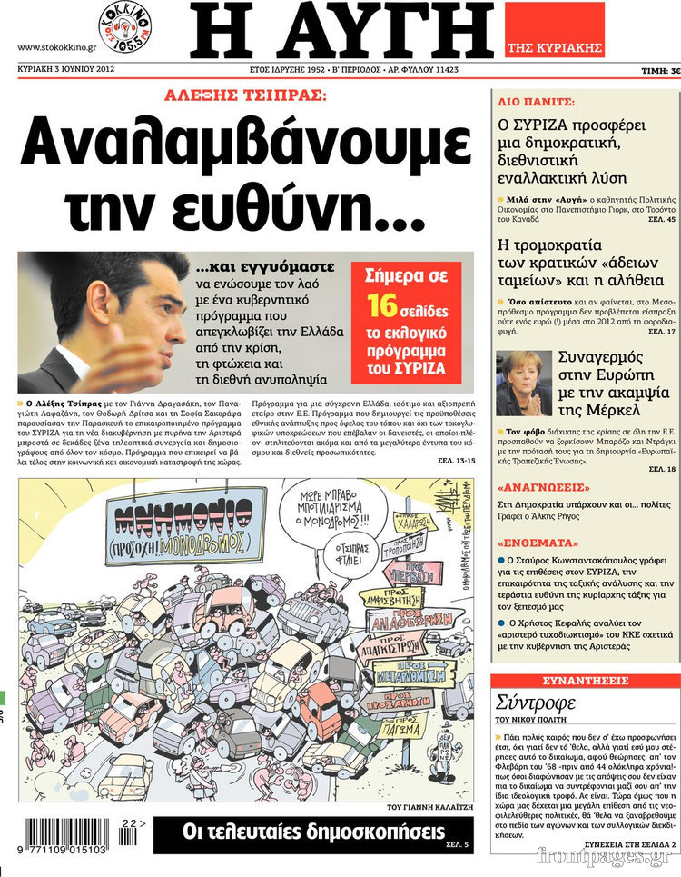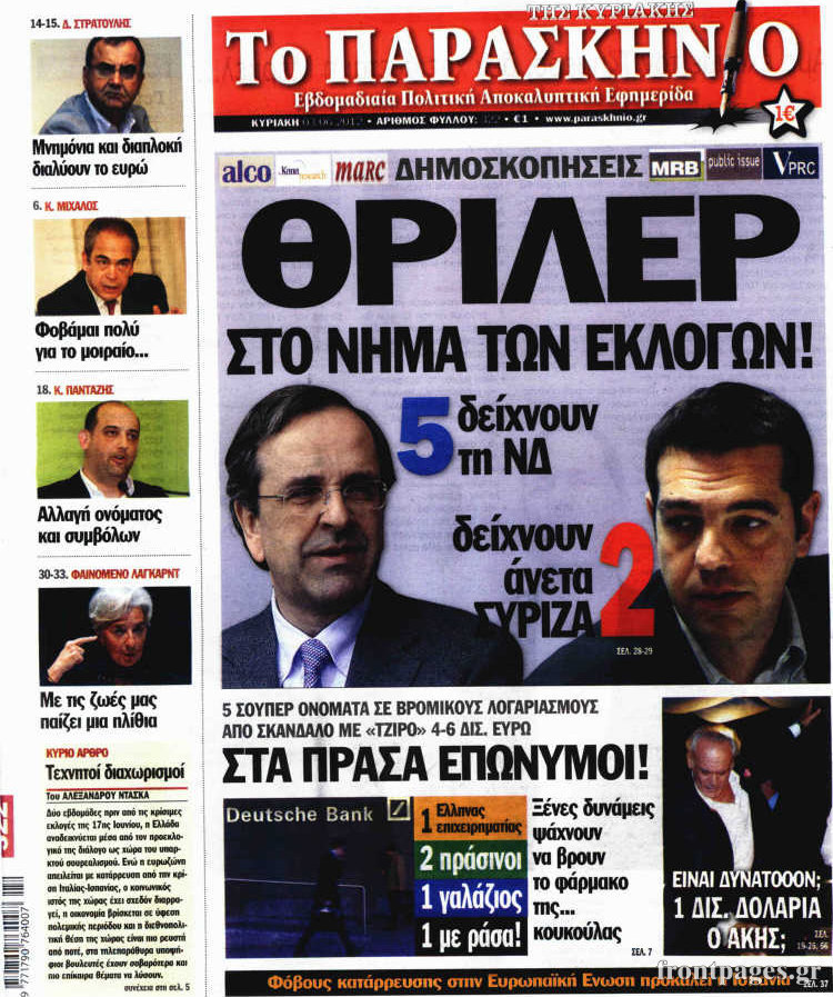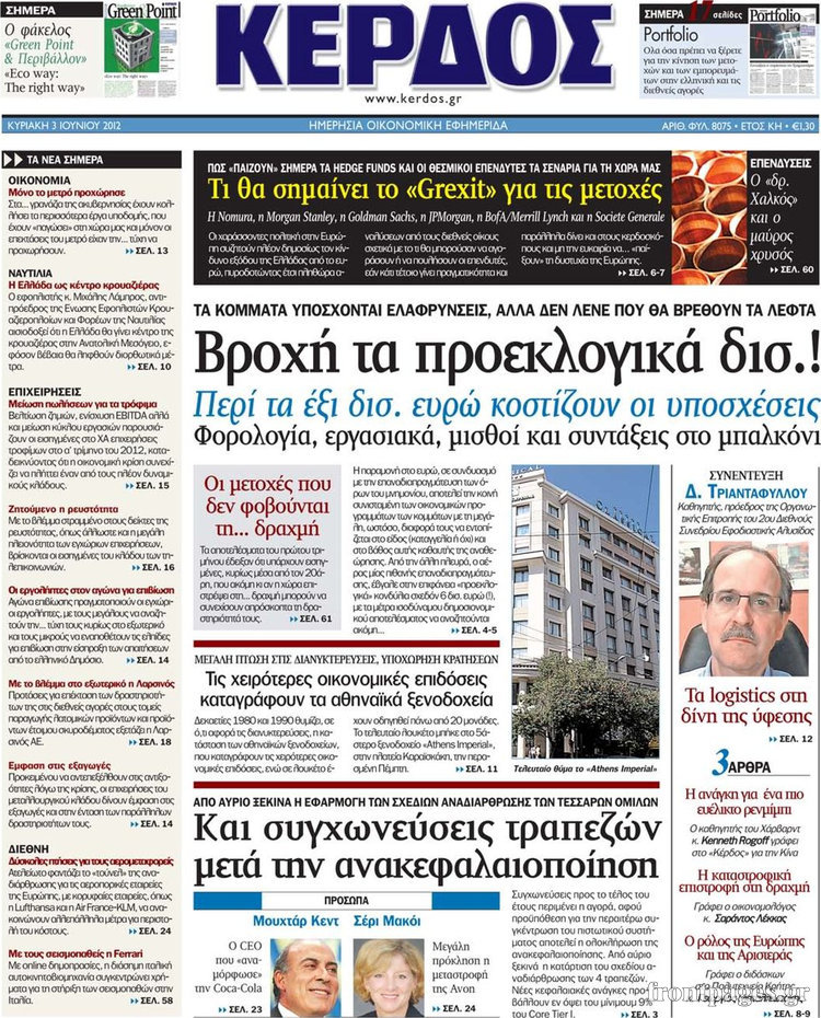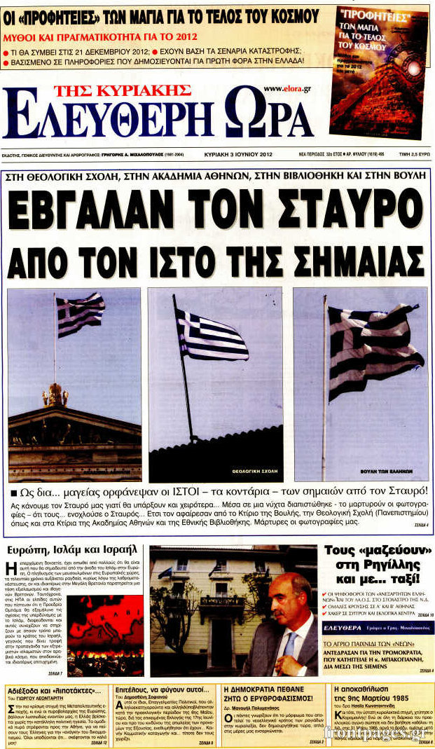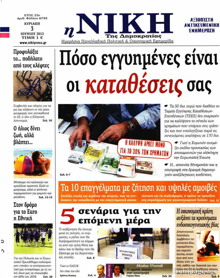 Οι κυριακάτικες εφημερίδες Enikos Newsroom 08:56, Κυριακή 03 Ιουνίου 2012 Media ΕΦΗΜΕΡΙΔΕΣ Μοιράσου το: σχολίασε κι εσύ (0 σχόλια) Ακολουθήστε το enikos.gr στο Google News και μάθετε πρώτοι όλες τις ειδήσεις Δείτε όλες τις τελευταίες ειδήσεις από την Ελλάδα και τον Κόσμο στο enikos.gr Ειδήσεις Ροή Ειδήσεων 9 ώρες πριν Χριστούγεννα στα μπλόκα: Επιμένουν στις κινητοποιήσεις τους οι αγρότες – Ανοίγουν τα διόδια το Σαββατοκύριακο 1 ώρα πριν Σαρωτικοί οι έλεγχοι στους δρόμους ενόψει εορτών – Μπλόκα της τροχαίας σε κεντρικές αρτηρίες της Αττικής 8 ώρες πριν Πούτιν: Τα μηνύματα σε Ευρώπη και ΝΑΤΟ από το μαραθώνιο «σόου» του – Η απαίτηση για «σεβασμό» και η ειρήνη «με τους όρους» της Μόσχας 7 ώρες πριν ΗΠΑ: Η κυβέρνηση του Ντόναλντ Τραμπ άρχισε να δημοσιοποιεί τα αρχεία Έπσταϊν 8 ώρες πριν Άνω Λιόσια: Πυροβολισμοί σε επιχείρηση με χαλιά – Εντοπίστηκαν 10 κάλυκες 1 ώρα πριν Αυγά: Πόσα μπορείτε να τρώτε την ημέρα με ασφάλεια για μέγιστη πρόσληψη πρωτεΐνης 2 ώρες πριν Τα ζώδια σήμερα, Σάββατο 20 Δεκεμβρίου: Παρθένοι, το σύμπαν σας δίνει το κλειδί 8 ώρες πριν Ανακαλύφθηκαν αρχαία χρυσά νομίσματα 2.200 ετών που απεικονίζουν τον θεό Απόλλωνα – Η άγνωστη σύνδεση με τον Φίλιππο Β΄ της Μακεδονίας 1 ώρα πριν Οπτική ψευδαίσθηση: Μόνο αν είσαι ο Σέρλοκ Χολμς θα βρεις τον αριθμό «87» σε 7 δευτερόλεπτα 5 λεπτά πριν Οι αθλητικές μεταδόσεις 20/12/2025 15 λεπτά πριν Εορτολόγιο: Ποιοι γιορτάζουν σήμερα 20 Δεκεμβρίου 22 λεπτά πριν Συρία: Μπαράζ αμερικανικών επιδρομών εναντίον του ISIS – «Πλήττουμε δυνατά οχυρά του ΙΚ» λέει ο Ντόναλντ Τραμπ 31 λεπτά πριν Αναβολή συμφωνίας ΕΕ-Mercosur: Ο χρόνος «δεν είναι απεριόριστος» προειδοποιεί η Παραγουάη 45 λεπτά πριν Κίριλ Ντμίτριεφ: Στις ΗΠΑ ο απεσταλμένος της Ρωσίας για συνομιλίες με τους ομολόγους του, Γουίτκοφ και Κούσνερ ENIKOS NETWORK Πρέπει να αποδέχεστε ή να απορρίπτετε όλα τα cookies; Ένας ειδικός εξηγεί Η αγαπημένη λιχουδιά των πόνι που μπορεί να ενισχύσει όραση, εγκέφαλο και ανοσοποιητικό Αναστολή μέτρων αναγκαστικής εκτέλεσης για κτηνοτρόφους που πλήττονται από την ευλογιά των αιγοπροβάτων Πλήρης επάρκεια προϊόντων στις λαϊκές της Αττικής, παρά τις αγροτικές κινητοποιήσεις – Τι απαντούν οι πωλητές Χαρτογραφώντας το «σημείο χωρίς επιστροφή»: Για πρώτη φορά αποκαλύπτεται με λεπτομέρεια το ακανθώδες όριο της ατμόσφαιρας τ... Η Google καταργεί τη λειτουργία «dark web report» – Πώς θα μπορούν οι χρήστες να διαγράφουν τα δεδομένα τους περισσότερα 05:48 , Σάββατο 20 Δεκεμβρίου 2025 Οι οικονομικές εφημερίδες 20/12/2025 Διαβάστε τα πρωτοσέλιδα από τις οικονομικές εφημερίδες, σήμερα 20/12/2025. 05:43 , Σάββατο 20 Δεκεμβρίου 2025 Οι αθλητικές εφημερίδες 20/12/2025 Διαβάστε τα πρωτοσέλιδα από τις αθλητικές εφημερίδες, σήμερα 20/12/2025. 05:38 , Σάββατο 20 Δεκεμβρίου 2025 Οι πολιτικές εφημερίδες 20/12/2025 Διαβάστε τα πρωτοσέλιδα από τις πολιτικές εφημερίδες, σήμερα 20/12/2025. 04:20 , Σάββατο 20 Δεκεμβρίου 2025 Αγγελική Νικολούλη: Τα συλλυπητήρια για την απώλεια της Ειρήνης Μαρινάκη Τα συλληπητήρια στον πρόεδρο του Mega, τον Βαγγέλη Μαρινάκη, για την απώλεια της μητέρας του Ε... ΤΕΛΕΥΤΑΙΕΣ ΕΙΔΗΣΕΙΣ 5 λεπτά πριν Οι αθλητικές μεταδόσεις 20/12/2025 15 λεπτά πριν Εορτολόγιο: Ποιοι γιορτάζουν σήμερα 20 Δεκεμβρίου 22 λεπτά πριν Συρία: Μπαράζ αμερικανικών επιδρομών εναντίον του ISIS... 31 λεπτά πριν Αναβολή συμφωνίας ΕΕ-Mercosur: Ο χρόνος «δεν είναι... 45 λεπτά πριν Κίριλ Ντμίτριεφ: Στις ΗΠΑ ο απεσταλμένος της Ρωσίας... 53 λεπτά πριν ΔΕΔΔΗΕ: Διακοπές ρεύματος σήμερα 