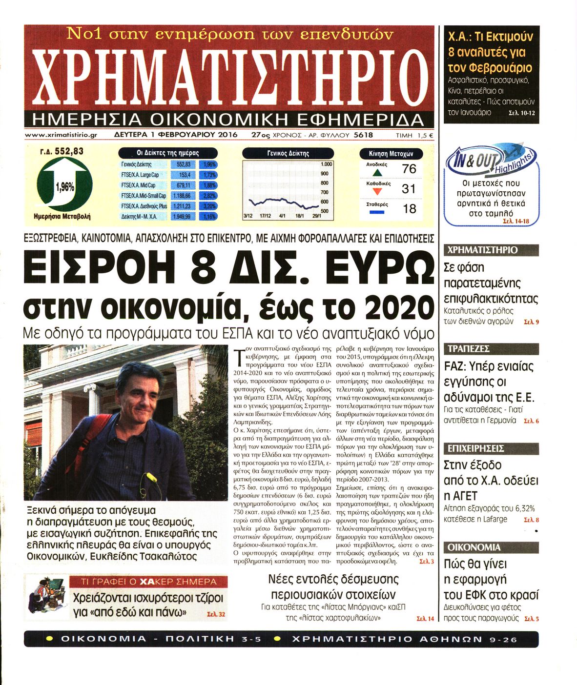 Οι οικονομικές εφημερίδες 01/2/2016 Enikos Newsroom 07:18, Δευτέρα 01 Φεβρουαρίου 2016 Media Διαβάστε τα σημερινά πρωτοσέλιδα των οικονομικών εφημερίδων: ΕΦΗΜΕΡΙΔΕΣ ΟΙΚΟΝΟΜΙΚΕΣ ΕΦΗΜΕΡΙΔΕΣ ΠΡΩΤΟΣΕΛΙΔΑ Μοιράσου το: σχολίασε κι εσύ (0 σχόλια) Ακολουθήστε το enikos.gr στο Google News και μάθετε πρώτοι όλες τις ειδήσεις Δείτε όλες τις τελευταίες ειδήσεις από την Ελλάδα και τον Κόσμο στο enikos.gr Ειδήσεις Ροή Ειδήσεων 2 ώρες πριν Πούτιν: «Ανοησίες» και «υστερίες» οι ισχυρισμοί της Ευρώπης για πιθανή σύγκρουση με τη Ρωσία – «Κάνουν πλύση εγκεφάλου» 6 ώρες πριν Έρευνα MRB: Η πρόθεση ψήφου και τα σημαντικότερα προβλήματα – Οι «λέξεις» που εκφράζουν τους πολίτες 3 ώρες πριν Αμοργός: «Θα προσπαθήσω να το κάνω κάθε μέρα» – Ποιος είναι ο αγρότης που έστησε μόνος του το πρώτο μπλόκο στο νησί 46 λεπτά πριν Τραγωδία στην Αλεξανδρούπολη: Παιδάκι 3 ετών μεταφέρθηκε νεκρό από τη μητέρα του στο νοσοκομείο 1 ώρα πριν Συνάντηση Μητσοτάκη με την Κ.Ο. της ΝΔ: Οι αφίξεις των βουλευτών, τα γλυκά και τα «πηγαδάκια» 6 ώρες πριν Τα 4 ζώδια που ξαναβρίσκουν τον εαυτό τους – «Μπαίνετε επιτέλους στην ουσία των πραγμάτων» 7 ώρες πριν 20 χρόνια τα Χριστούγεννα ξεκινούν στα Public με μεγάλη ποικιλία σε δώρα! 5 ώρες πριν «Δεν είχα κλάψει από τότε που διαγνώστηκα με καρκίνο, ώσπου ένα τηλεφώνημα με έκανε να λυγίσω» – Η συγκλονιστική εξομολόγηση ενός άνδρα 4 ώρες πριν Τα 7 σπάνια χαρακτηριστικά που κάνουν κάποιους ανθρώπους ακαταμάχητους 44 δευτερόλεπτα πριν Νέο επεισόδιο στην Εξεταστική ανάμεσα σε Κωνσταντοπούλου και Συρεγγέλα – Διακόπηκε προσωρινά η συνεδρίαση 7 λεπτά πριν Εξαφάνιση 33χρονου γιατρού στην Κρήτη: Για απάτη κατηγορείται ο ιδιωτικός ερευνητής που συνελήφθη 13 λεπτά πριν Εξεταστική για ΟΠΕΚΕΠΕ-Μυλωνάκης: Διαχρονικές, διακομματικές οι παθογένειες – Τι είπε για Μπουκώρο και Βάρρα 19 λεπτά πριν Παναθηναϊκός: Θέλει τον Κέπα της Άρσεναλ δανεικό για 6 μήνες 24 λεπτά πριν Το Λαϊκό Λαχείο στον ρυθμό των Χριστουγέννων: Μοιράζει μέχρι και 1.000.000 ευρώ στην ειδική κλήρωση της Παρασκευής 19 Δεκεμβρίου ENIKOS NETWORK 5 πράγματα που αποφεύγει γαστρεντερολόγος για να μειώσει τον κίνδυνο καρκίνου του εντέρου Ανησυχητική αύξηση της υπέρτασης στα παιδιά – Πώς θα τα προστατέψουμε; ΕΛΕΤΑΕΝ: Πόσα χρήματα θα δοθούν σε δήμους και νοικοκυριά από τις ΑΠΕ «IRIS Παντού»: Στην κορυφή της Ευρώπης η Ελλάδα με 120 εκατ. ευρώ συναλλαγές το 2025 – Η σύγκριση με τις άλλες χώρες της Ευ... Σύγχρονος Νοστράδαμος: Προειδοποιεί για «μεγάλο γεγονός» τους επόμενους μήνες που θα συγκλονίσει τη Βρετανία και τον κόσμο Τεστ παρατηρητικότητας: Μπορείτε να βρείτε τις 3 διαφορές στις εικόνες με έναν πιγκουίνο σε 14 δευτερόλεπτα περισσότερα 12:35 , Τετάρτη 17 Δεκεμβρίου 2025 Μίρκα Παπακωνσταντίνου: «Δεν ήμουν αισιόδοξη για τα νούμερα – Είμαι ρεαλίστρια» Στα γυρίσματα του εορταστικού επεισοδίου της αγαπημένης σειράς “Το Σόι Σου”, βρέθηκε η κάμερα ... 12:12 , Τετάρτη 17 Δεκεμβρίου 2025 Ακούστε την εκπομπή του Νίκου Χατζηνικολάου 17/12/2025 Ακούστε την εκπομπή του Νίκου Χατζηνικολάου στον ραδιοφωνικό σταθμό RealFm 97,8, την Τετάρτη 1... 11:35 , Τετάρτη 17 Δεκεμβρίου 2025 Home Alone: Το σπίτι της ταινίας θα ανακαινιστεί – Επιστροφή στην αισθητική της δεκαετίας του ’90 Οι νέοι ιδιοκτήτες του πραγματικού σπιτιού που παρουσιάζεται στην κλασική ταινία του 1990 «Hom... 11:25 , Τετάρτη 17 Δεκεμβρίου 2025 Grand Hotel: Απόψε το τελευταίο επεισόδιο της χρονιάς – Όλα τα μυστικά μένουν εδώ Το τελευταίο επεισόδιο της χρον
