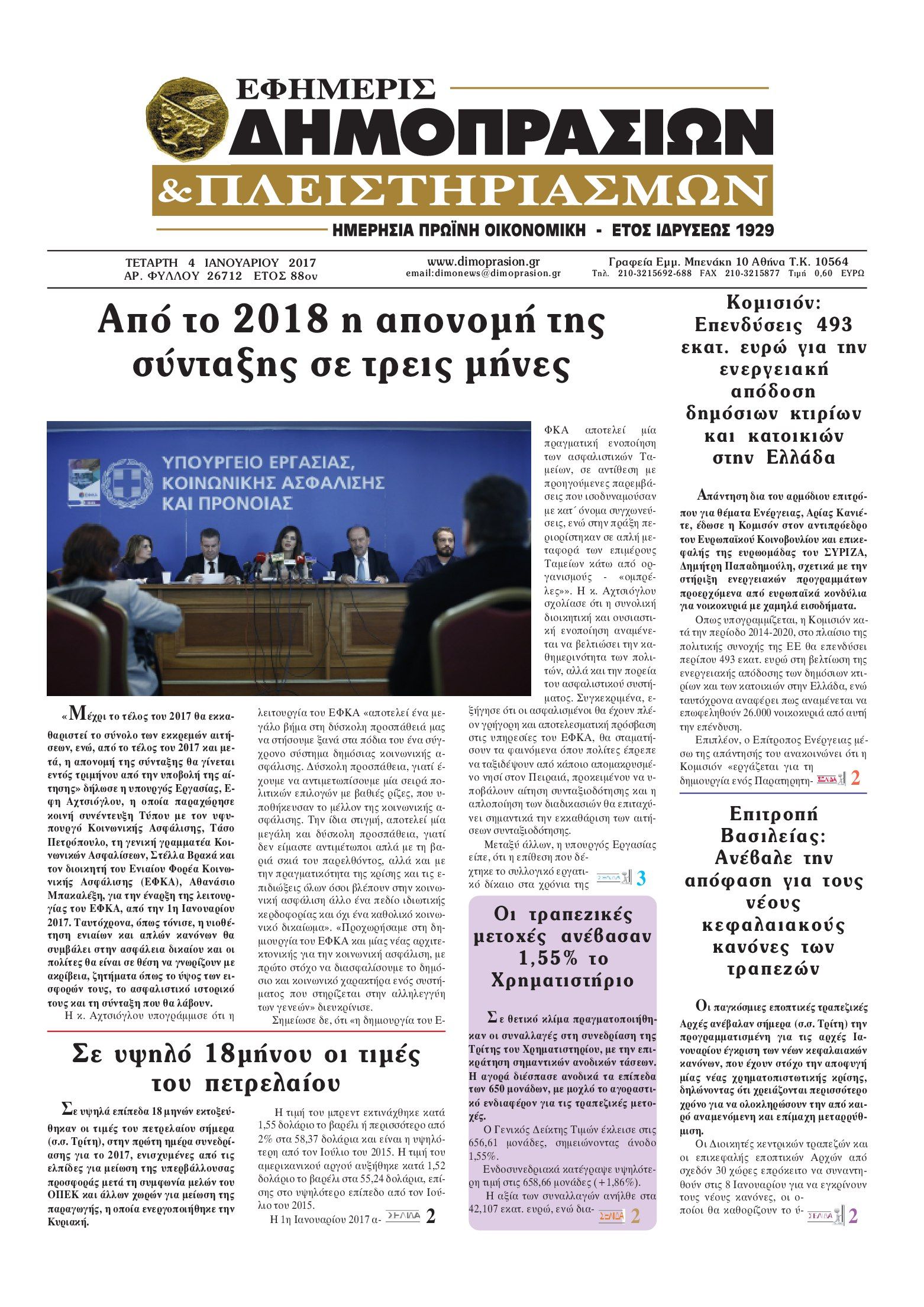 Οι οικονομικές εφημερίδες 04/01/2017 Enikos Newsroom 01:35, Τετάρτη 04 Ιανουαρίου 2017 Media Διαβάστε τα σημερινά πρωτοσέλιδα των οικονομικών εφημερίδων: ΟΙΚΟΝΟΜΙΚΕΣ ΕΦΗΜΕΡΙΔΕΣ ΠΡΩΤΟΣΕΛΙΔΑ Μοιράσου το: σχολίασε κι εσύ (0 σχόλια) Ακολουθήστε το enikos.gr στο Google News και μάθετε πρώτοι όλες τις ειδήσεις Δείτε όλες τις τελευταίες ειδήσεις από την Ελλάδα και τον Κόσμο στο enikos.gr Ειδήσεις Ροή Ειδήσεων 5 ώρες πριν Λιμενικό για την τραγωδία στη Χίο: «Το ταχύπλοο προσέκρουσε στην δεξιά πλευρά του σκάφους μας, ανετράπη και βυθίστηκε» 1 ώρα πριν Κικίλιας για ναυάγιο στη Χίο: Ανείπωτη τραγωδία, εχθροί της χώρας οι σύγχρονοι λαθρέμποροι 1 ώρα πριν Βήματα προσέγγισης Τουρκίας-Ισραήλ; 53 λεπτά πριν Τραγωδία στη Χίο: «Τέτοια περιστατικά τα είχαμε ξεχάσει από το 2020 – Οι αναζητήσεις συνεχίζονται» – Τι δήλωσε ο Περιφερειάρχης Β. Αιγαίου στο enikos.gr 47 λεπτά πριν Έκτακτο δελτίο επιδείνωσης καιρού από την ΕΜΥ – Έρχονται ισχυρές καταιγίδες και χαλαζοπτώσεις από το βράδυ 3 ώρες πριν Τα 4 ζώδια που λαμβάνουν ένα ισχυρό σημάδι από το σύμπαν – «Μια τυχαία κουβέντα μπορεί να κρύβει απαντήσεις για όσα μας απασχολούν» 4 ώρες πριν Κατέστρεψε κατά λάθος έναν γάμο – «Ήρθε μια γυναίκα στην τράπεζα και με ρώτησε γιατί εξαφανίζονται τα λεφτά απ’ τον λογαριασμό της» 2 ώρες πριν Γιατρός που έχασε έχασε 56 κιλά αποκαλύπτει: «Σταμάτησα να μετράω θερμίδες και άρχισα να ακούω το σώμα μου» 43 λεπτά πριν Οι γυναίκες που ανταγωνίζονται άλλες γυναίκες, έχουν συνήθως αυτές τις 8 κρυφές πεποιθήσεις 2 λεπτά πριν Ατομική έκθεση της Λεώνης Γιαγδζόγλου στην Αθήνα 6 λεπτά πριν Νέα Υόρκη: Πατέρας κατηγορείται ότι ξυλοκόπησε τον γιο του σε καταφύγιο αστέγων – Σε κρίσιμη κατάσταση ο 2χρονος 12 λεπτά πριν Θεσσαλονίκη: Ένοχη η 57χρονη που δάγκωσε στο αυτί τον σύντροφό της και έκοψε κομμάτι – Το άγριο επεισόδιο πυροδότησε καβγάς… για την γάτα 17 λεπτά πριν Ιράν: Ανεξαρτησία σε… δύο τροχούς για τις γυναίκες – Νομοσχέδιο τους επιτρέπει πλέον να αποκτήσουν δίπλωμα για μοτοσικλέτες και σκούτερ 22 λεπτά πριν Ιόνια Οδός: Νέες φωτογραφίες από την κατολίσθηση – Κλειστό το τμήμα από την Αμφιλοχία μέχρι την Άρτα ENIKOS NETWORK Καρκίνος του παγκρέατος: Πρωτοποριακή θεραπεία Ισπανού ερευνητή δίνει ελπίδες για πλήρη εξάλειψη της νόσου ΠΟΥ: Σχεδόν 4 στους 10 καρκίνους θα μπορούσαν να είχαν αποφευχθεί Δάνεια Νόμου Κατσέλη: Αύριο η απόφαση για τον τρόπο υπολογισμού των τόκων – Αγωνία για 350.000 δανειολήπτες Βουλή: Σήμερα αρχίζει η συζήτηση για το νέο νομοσχέδιο Συλλογικών Συμβάσεων – Ποιοι εργαζόμενοι θα δουν αυξήσεις στους μισθ... Ευπάθεια στο moltbook ai αποκαλύπτει email, tokens σύνδεσης και api keys Αυτός είναι ο ρόλος της μικρής τρύπας στους νυχοκόπτες – «Είμαι ο μόνος που δεν το ήξερε;»» περισσότερα 12:01 , Τετάρτη 04 Φεβρουαρίου 2026 Τηλεθέαση (3/2): Τα νούμερα για το βράδυ της Τρίτης Η τηλεθέαση το βράδυ της Τρίτης (3/2) είχε διακυμάνσεις. Στο δυναμικό κοινό πρώτο τερμάτισε το... 09:58 , Τετάρτη 04 Φεβρουαρίου 2026 LIVE – Ακούστε την εκπομπή του Νίκου Χατζηνικολάου 4/2/2026 Ακούστε την εκπομπή του Νίκου Χατζηνικολάου, στον Realfm 97,8. Ακούστε LIVE εδώ 05:38 , Τετάρτη 04 Φεβρουαρίου 2026 Οι πολιτικές εφημερίδες 4/2/2026 Διαβάστε τα πρωτοσέλιδα από τις πολιτικές εφημερίδες, σήμερα 4/2/2026. 02:33 , Τετάρτη 04 Φεβρουαρίου 2026 MasterChef: Λύγισε ο Γιώργος Αχλαδιώτης – «Κερδίζω, συγκινούμαι… Τώρα θα τους δείξω τι αξίζω» Το πρώτο Τεστ Δημιουργικότητας του MasterChef ολοκληρώθηκε με έναν ξεκάθαρο πρωταγωνιστή. Ο Γ