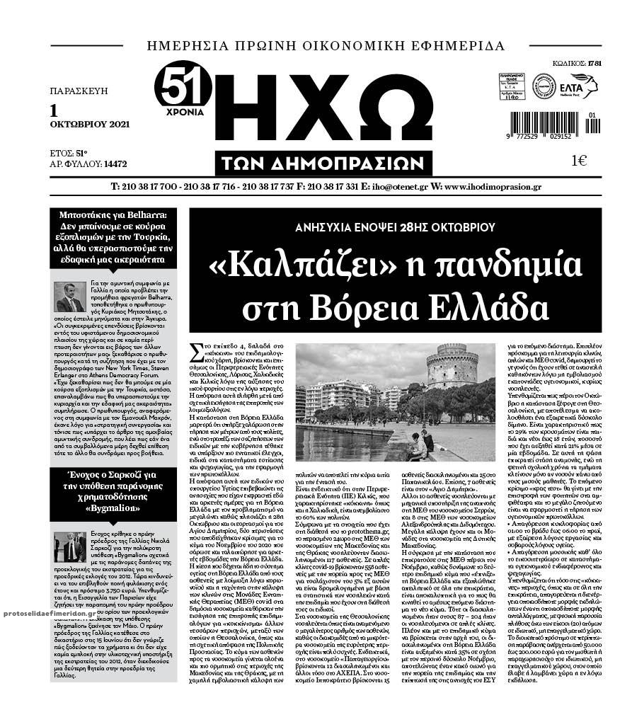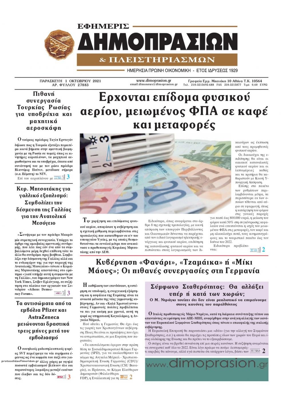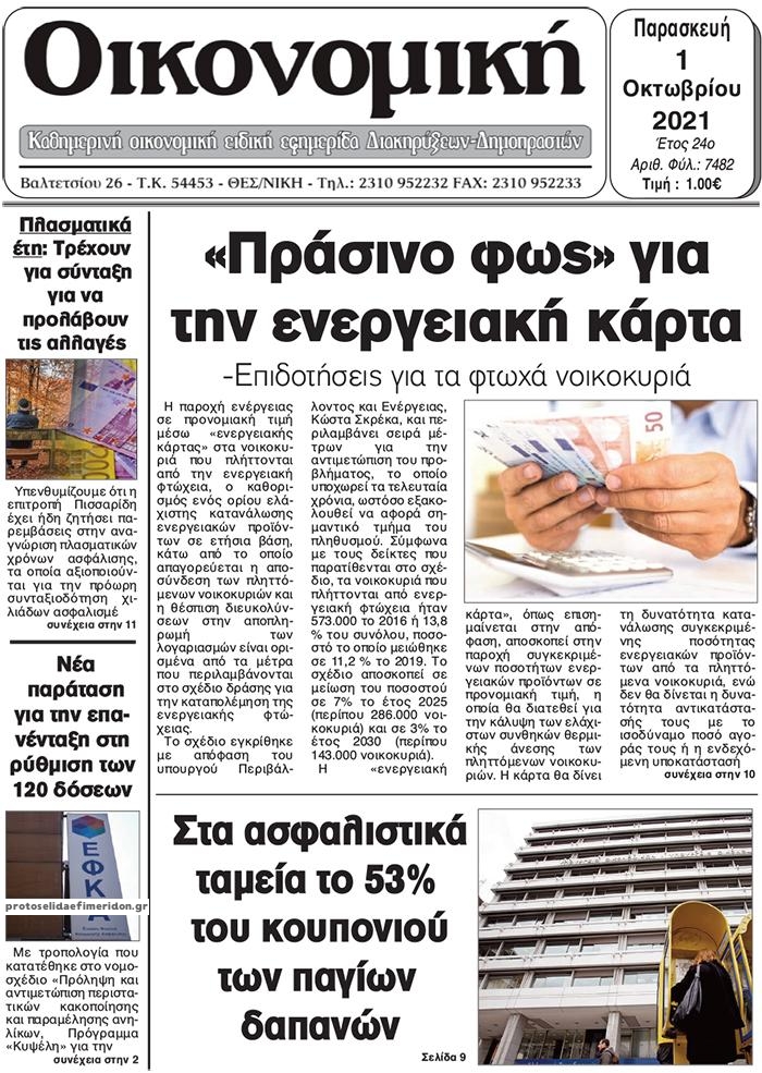 Οι οικονομικές εφημερίδες 1/10/2021 Διονύσης Νίκκας 06:53, Παρασκευή 01 Οκτωβρίου 2021 Media Διαβάστε τα πρωτοσέλιδα από τις οικονομικές εφημερίδες… ΟΙΚΟΝΟΜΙΚΕΣ ΕΦΗΜΕΡΙΔΕΣ Μοιράσου το: σχολίασε κι εσύ (0 σχόλια) Ακολουθήστε το enikos.gr στο Google News και μάθετε πρώτοι όλες τις ειδήσεις Δείτε όλες τις τελευταίες ειδήσεις από την Ελλάδα και τον Κόσμο στο enikos.gr Ειδήσεις Ροή Ειδήσεων 1 ώρα πριν Δημοσκόπηση Metron Analysis: Στις 10 μονάδες η διαφορά ΝΔ-ΠΑΣΟΚ, στην 3η θέση η Πλεύση Ελευθερίας – 8 στους 10 στηρίζουν τον αγώνα των αγροτών 5 ώρες πριν Αγρότες: «Όχι στον διάλογο, μας εμπαίζει η κυβέρνηση» – Αποφάσισαν κλιμάκωση των κινητοποιήσεων, τι θα γίνει τα Χριστούγεννα 48 λεπτά πριν Νίκος Παππάς στον ΑΝΤ1: «Δεν κρύβομαι – Μετά το συμβάν ακολούθησα κανονικά το πρόγραμμά μου» – ΒΙΝΤΕΟ 2 ώρες πριν Αθήνα: Εξαρθρώθηκε εγκληματική οργάνωση που διακινούσε ναρκωτικά σε μορφή σοκολάτας – Δύο τράπερ ανάμεσα στους 4 συλληφθέντες – ΒΙΝΤΕΟ 41 λεπτά πριν Διαμαντής Καραναστάσης: Οδηγούσε υπό την επήρεια αλκοόλ – Του αφαιρέθηκε το δίπλωμα και του επιβλήθηκε πρόστιμο 350 ευρώ 1 ώρα πριν Manifesting: Πώς να συναντήσετε τον σύντροφο της ζωής σας, ανάλογα με τον μήνα γέννησής σας 3 ώρες πριν Γάμος: 11 ψυχρές αλλά ευγενικές φράσεις, που λέει ένας άνδρας όταν σκέφτεται τον χωρισμό 2 ώρες πριν Σφουγγάρισμα: Η συνήθεια που θα σας βοηθήσει να διατηρήσετε το σπίτι σας καθαρό και τακτοποιημένο 2 ημέρες πριν 20 χρόνια τα Χριστούγεννα ξεκινούν στα Public με μεγάλη ποικιλία σε δώρα! 4 λεπτά πριν Κλήρωση ΤΖΟΚΕΡ 18/12/2025: Αυτοί είναι οι τυχεροί αριθμοί 6 λεπτά πριν Τραμπ: Ζητεί από την Ουκρανία να “κινηθεί γρήγορα” στις διαπραγματεύσεις για το τέλος της σύγκρουσης 12 λεπτά πριν Ύπνος: Η απλή βραδινή ρουτίνα για να προστατεύσετε τα μαλλιά σας από το κρύο κατά τη διάρκεια του χειμώνα 19 λεπτά πριν Κατερίνα Καινούργιου: «Δεν θα αφήσω κανέναν να χαλάσει τη ζαχαρένια μου στην ομορφότερη περίοδο της ζωής μου» 26 λεπτά πριν Θεσσαλονίκη: Προθεσμία για την επόμενη εβδομάδα έλαβαν οι συλληφθέντες για το κύκλωμα trafficking – Οι οίκοι ανοχής, τα «φρουτάκια» και οι ρόλοι ENIKOS NETWORK Σε περίοδο αυξημένης δραστηριότητας η γρίπη στην Ελλάδα-Μέτρα προστασίας από τον ΕΟΔΥ Σκέφτεστε συνέχεια συζητήσεις που έχετε κάνει; Τι σημαίνει αυτό, σύμφωνα με ειδικό ΕΛΤΑ: Αυτό είναι το νέο σχέδιο μετασχηματισμού του Οργανισμού- Τι δήλωσαν Πιερρακάκης και Παπαστεργίου ΕΛΣΤΑΤ: Τι δείχνουν τα νέα στοιχεία για τον μόνιμο πληθυσμό στην Ελλάδα Χαρτογραφώντας το «σημείο χωρίς επιστροφή»: Για πρώτη φορά αποκαλύπτεται με λεπτομέρεια το ακανθώδες όριο της ατμόσφαιρας τ... Η Google καταργεί τη λειτουργία «dark web report» – Πώς θα μπορούν οι χρήστες να διαγράφουν τα δεδομένα τους περισσότερα 17:45 , Πέμπτη 18 Δεκεμβρίου 2025 ROUK ZOUK: Εορταστικό επεισόδιο με καλεσμένους τους πρωταγωνιστές του «Γιατί ρε πατέρα» Το Σάββατο 20 Δεκεμβρίου στις 21:00, η Ζέτα Μακρυπούλια υποδέχεται εκλεκτούς ηθοποιούς που όλο... 17:20 , Πέμπτη 18 Δεκεμβρίου 2025 Άγιος έρωτας: Η Χριστίνα εξομολογείται στον πατέρα Νικόλαο, απόψε στις 21:00 στον Alpha Η Νότα αποφασίζει να εκδικηθεί τον Πέτρο και τον Στέφανο, για χάρη του Λούη, όμως τα πράγματα ... 16:50 , Πέμπτη 18 Δεκεμβρίου 2025 Να μ’ αγαπάς: Ζωή και Φωτεινή συμφιλιώνονται ως μάνα με κόρη, απόψε στις 20:00 Η ταυτότητα του Άγγελου αποκαλύπτεται στο νέο επεισόδιο της σειράς “Να μ’ αγαπάς... 15:52 , Πέμπτη 18 Δεκεμβρίου 2025 Το Σπίτι Δίπλα Στο Ποτάμι: Το καθηλωτικό τελευταίο επεισόδιο για το