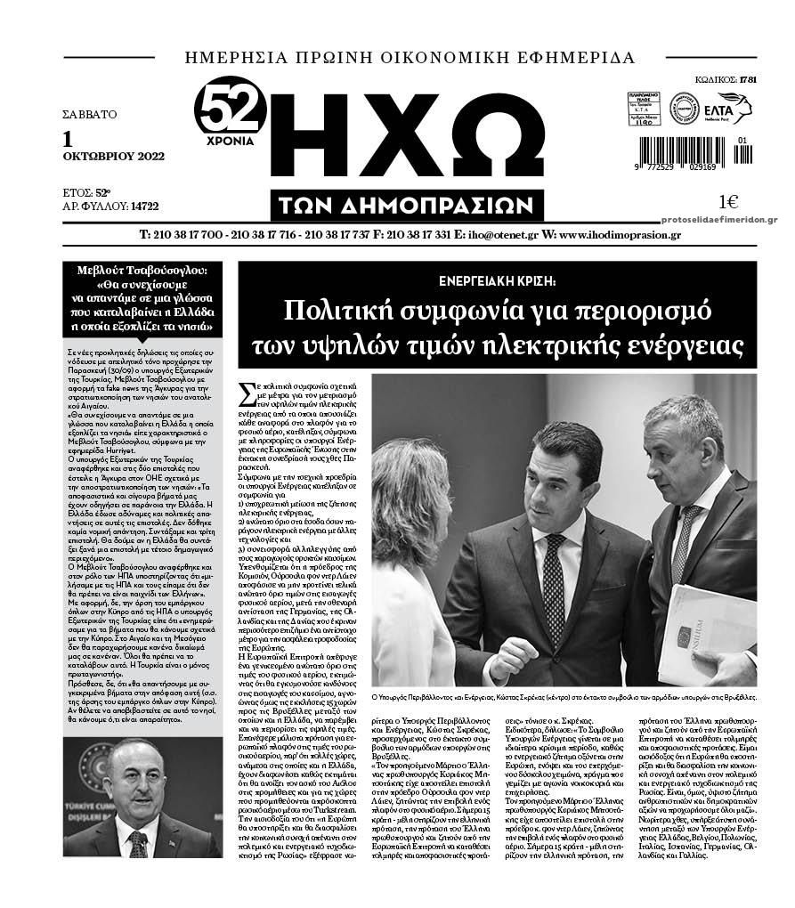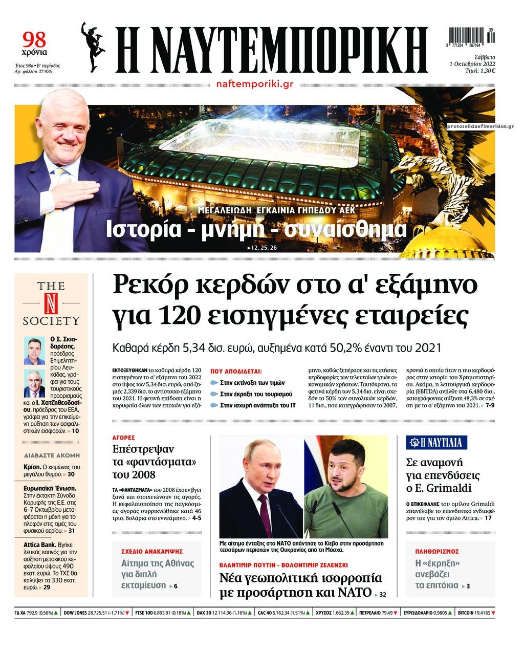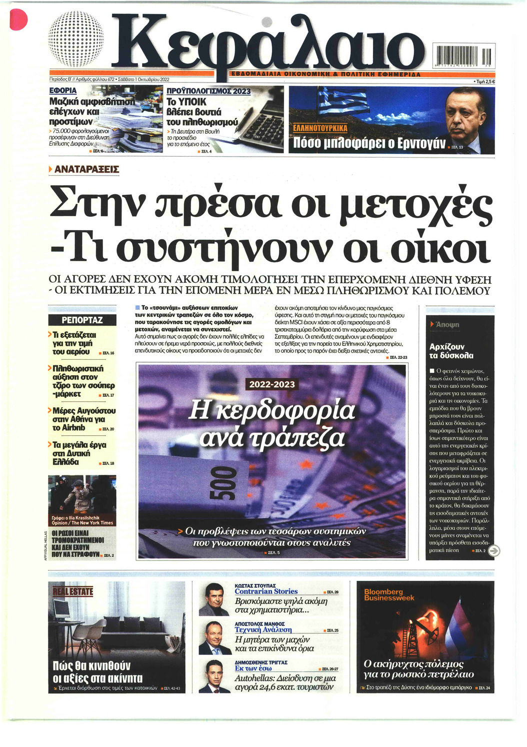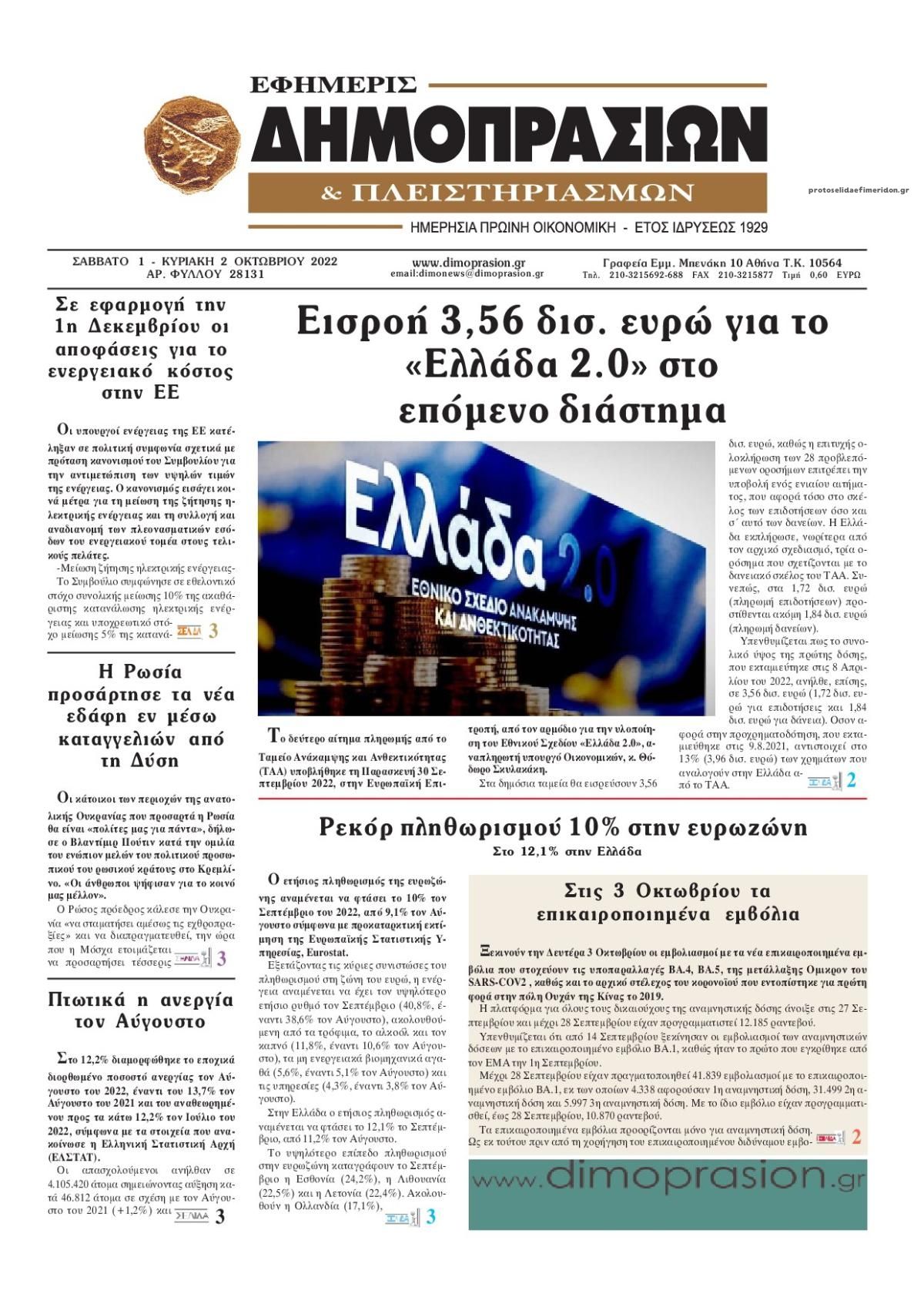 Διαβάστε τα πρωτοσέλιδα από τις οικονομικές εφημερίδες, σήμερα 1/10/2022.