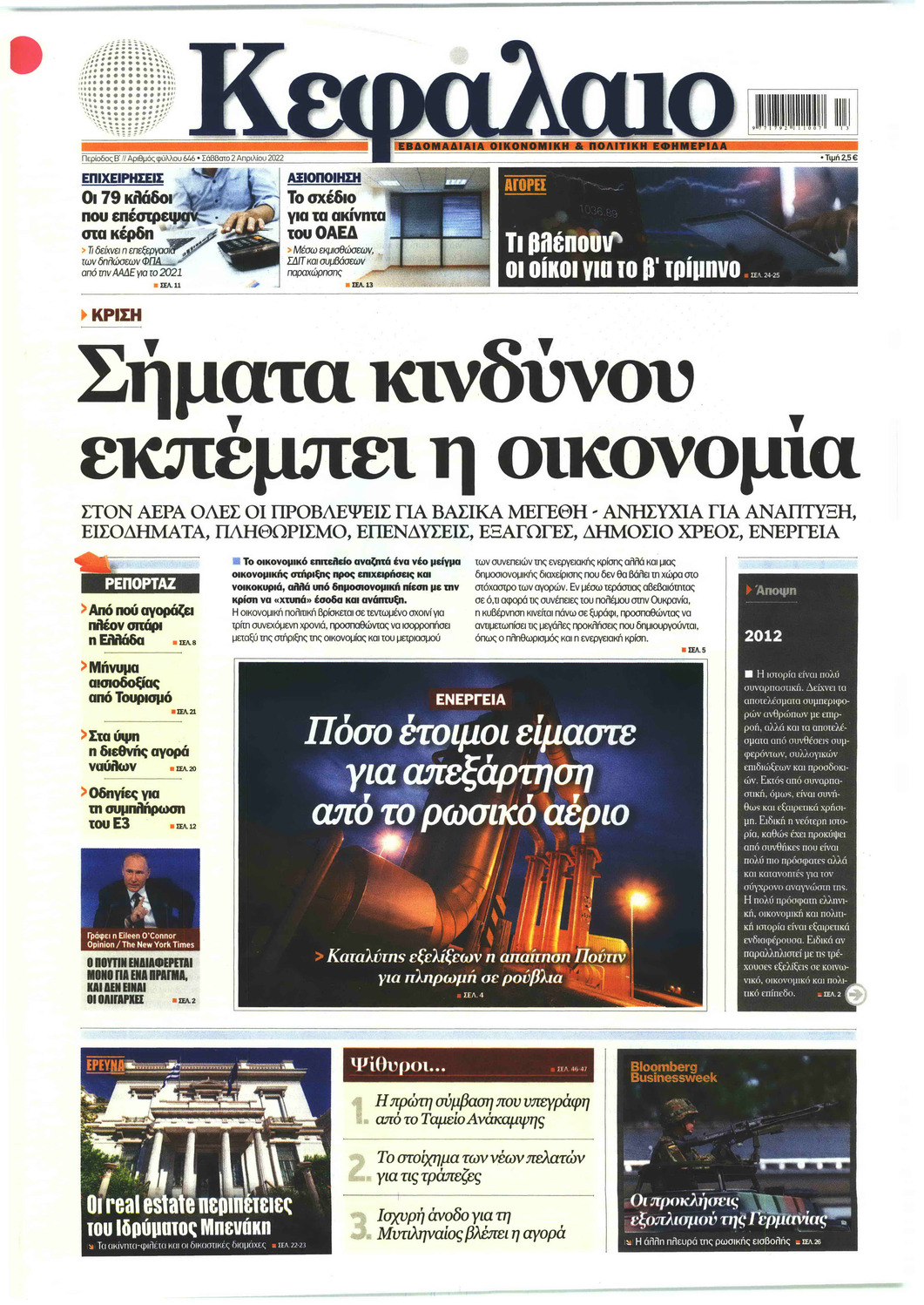 Οι οικονομικές εφημερίδες 2/4/2022 Σήφης Γαρυφαλάκης 07:19, Σάββατο 02 Απριλίου 2022 Media Διαβάστε τα πρωτοσέλιδα από τις οικονομικές εφημερίδες… ΕΦΗΜΕΡΙΔΕΣ ΟΙΚΟΝΟΜΙΚΕΣ ΕΦΗΜΕΡΙΔΕΣ ΠΡΩΤΟΣΕΛΙΔA Μοιράσου το: Οι οικονομικές εφημερίδες 1/4/2022 Οι οικονομικές εφημερίδες 31/3/2022 Οι οικονομικές εφημερίδες 30/3/2022 σχολίασε κι εσύ (0 σχόλια) Ακολουθήστε το enikos.gr στο Google News και μάθετε πρώτοι όλες τις ειδήσεις Δείτε όλες τις τελευταίες ειδήσεις από την Ελλάδα και τον Κόσμο στο enikos.gr Ειδήσεις Ροή Ειδήσεων 8 ώρες πριν Μακελειό στο Σίδνεϊ: Πατέρας και γιος οι δράστες της τρομοκρατικής επίθεσης – Γιατί η Αυστραλία βάζει στο στόχαστρο το Ιράν 8 ώρες πριν Μακελειό στην Αυστραλία: «Πέρασαν οι σφαίρες πάνω από το αυτοκίνητο» – Συγκλονίζει η μαρτυρία Έλληνα που ζει στο Σίδνεϊ 6 ώρες πριν Τρομοκρατική επίθεση στο Σίδνεϊ: «Το αναπόφευκτο συνέβη πλέον» – Πώς οι δράστες είχαν χάσει τον ανθρωπισμό τους πριν πατήσουν την σκανδάλη 7 ώρες πριν Όλα τα αιτήματα αγροτών, κτηνοτρόφων και μελισσοκόμων προς την κυβέρνηση – Παραμένουν στα μπλόκα και προαναγγέλλουν κλιμάκωση 10 ώρες πριν Λακωνία: Βίντεο ντοκουμέντο από την επιχείρηση διάσωσης της 13χρονης που έπεσε σε πηγάδι – Ποια ήταν τα πρώτα λόγια της 9 λεπτά πριν Οπτική ψευδαίσθηση: Μόνο το 1% των ανθρώπων θα βρει το ψάρι σε 12 δευτερόλεπτα 24 λεπτά πριν Διατροφή: Γιατρός προειδοποιεί για 2 απλά λάθη που αυξάνουν τον κίνδυνο χρόνιων παθήσεων 54 λεπτά πριν Τα ζώδια σήμερα, Δευτέρα 15 Δεκεμβρίου: Ιχθύες, ξεκινήστε από εκεί που η παρουσία σας έχει σημασία 8 ώρες πριν Ύπνος: 5 λόγοι για τους οποίους ξυπνάτε κουρασμένοι το πρωί κατά τη διάρκεια του χειμώνα 9 λεπτά πριν Οπτική ψευδαίσθηση: Μόνο το 1% των ανθρώπων θα βρει το ψάρι σε 12 δευτερόλεπτα 16 λεπτά πριν Δώρο Χριστουγέννων 2025: Πότε ξεκινά η πληρωμή του και πως να το υπολογίσετε – Ποιοι θα πάρουν περισσότερα φέτος 24 λεπτά πριν Διατροφή: Γιατρός προειδοποιεί για 2 απλά λάθη που αυξάνουν τον κίνδυνο χρόνιων παθήσεων 28 λεπτά πριν Άντονι Αλμπανέζε: Η Αυστραλία θα εξετάσει αυστηρότερους νόμους για την οπλοκατοχή μετά τη μαζική επίθεση στο Σίδνεϊ 31 λεπτά πριν Σαν σήμερα 15 Δεκεμβρίου: Τα σημαντικότερα γεγονότα της ημέρας ENIKOS NETWORK 8 κορυφαίες συμβουλές για άνδρες που θέλουν φλογερή σεξουαλική ζωή, σύμφωνα με ειδικό Baby botox: Ποια τα οφέλη και οι κίνδυνοι του να ξεκινήσει κάποιος τις ενέσεις πριν εμφανιστούν ρυτίδες Τέλος οι διώξεις για χρέη σε Εφορία και ΕΦΚΑ – Τι προβλέπει νέα διάταξη μετά την πτώχευση Υπουργείο Αγροτικής Ανάπτυξης: Ενισχύσεις de minimis ύψους 2,1 εκατ. ευρώ – Οι δικαιούχοι Σύγχρονος Νοστράδαμος: Προειδοποιεί για «μεγάλο γεγονός» τους επόμενους μήνες που θα συγκλονίσει τη Βρετανία και τον κόσμο Τεστ παρατηρητικότητας: Μπορείτε να βρείτε τις 3 διαφορές στις εικόνες με έναν πιγκουίνο σε 14 δευτερόλεπτα περισσότερα 05:49 , Δευτέρα 15 Δεκεμβρίου 2025 Οι οικονομικές εφημερίδες 15/12/2025 Διαβάστε τα πρωτοσέλιδα από τις οικονομικές εφημερίδες, σήμερα 15/12/2025. 05:43 , Δευτέρα 15 Δεκεμβρίου 2025 Οι αθλητικές εφημερίδες 15/12/2025 Διαβάστε τα πρωτοσέλιδα από τις αθλητικές εφημερίδες, σήμερα 15/12/2025. 05:38 , Δευτέρα 15 Δεκεμβρίου 2025 Οι πολιτικές εφημερίδες 15/12/2025 Διαβάστε τα πρωτοσέλιδα από τις πολιτικές εφημερίδες, σήμερα 15/12/2025. 21:34 , Κυριακή 14 Δεκεμβρίου 2025 Ο Δικαστής: Η Λέττα είναι αποφασισμένη να αποκαλύψει την αλήθεια για το τροχαίο, απόψε στις 21:45 στον ΑΝΤ1 Ραγδαίες οι εξελίξεις στο νέο επεισόδιο της σειράς “Ο Δικαστής