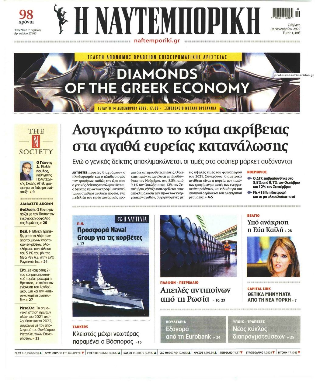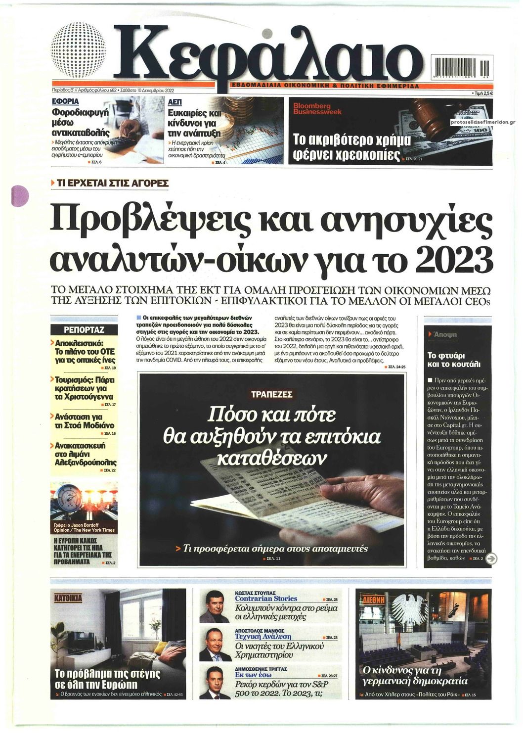 Διαβάστε τα πρωτοσέλιδα από τις οικονομικές εφημερίδες, σήμερα 10/12/2022.