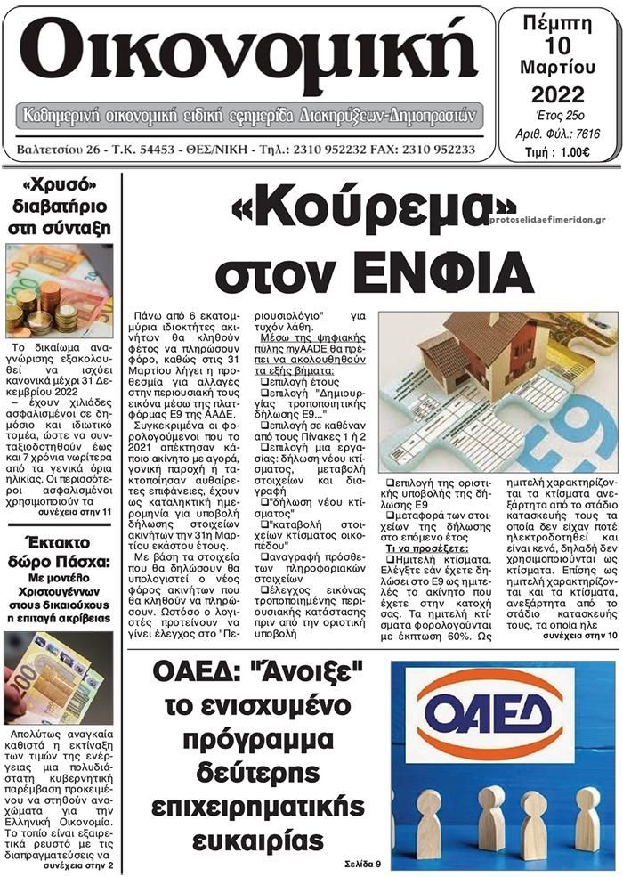 Οι οικονομικές εφημερίδες 10/3/2022 Διονύσης Νίκκας 06:50, Πέμπτη 10 Μαρτίου 2022 Media Διαβάστε τα πρωτοσέλιδα από τις οικονομικές εφημερίδες… ΟΙΚΟΝΟΜΙΚΕΣ ΕΦΗΜΕΡΙΔΕΣ Μοιράσου το: σχολίασε κι εσύ (0 σχόλια) Ακολουθήστε το enikos.gr στο Google News και μάθετε πρώτοι όλες τις ειδήσεις Δείτε όλες τις τελευταίες ειδήσεις από την Ελλάδα και τον Κόσμο στο enikos.gr Ειδήσεις Ροή Ειδήσεων 2 ώρες πριν Νίκος Παππάς: Το παρασκήνιο της αποπομπής του – Οι μπουνιές, τα μηνύματα μετά την επίθεση και η διαγραφή από τον ΣΥΡΙΖΑ 45 λεπτά πριν Οι αγρότες δεν φεύγουν από τα μπλόκα: Πολύωροι αποκλεισμοί στα τελωνεία Ευζώνων, Νίκης, Προμαχώνα και Εξοχής 1 ώρα πριν Ντόναλντ Τραμπ: Το διάγγελμα, η πτώση στις δημοσκοπήσεις και το… χάος που κληρονόμησε από τον Μπάιντεν 2 ώρες πριν Άστατος ο καιρός τα Χριστούγεννα: Βαρομετρικό χαμηλό από τον κόλπο της Σύρτης «ξεκλειδώνει» κακοκαιρίες – Πώς θα εξελιχθεί έως την Πρωτοχρονιά 53 λεπτά πριν Μάριο Πινέιδα: Ο αμυντικός του Ισημερινού σκοτώθηκε σε ένοπλη επίθεση στη Γκουαγιακίλ 36 λεπτά πριν Τα 4 ζώδια που λαμβάνουν ένα ισχυρό σημάδι από το σύμπαν – «Αποκαλύπτεται κάτι που μπορεί να αλλάξει τη ζωή μας» 5 ώρες πριν Καούρα: Το μπαχαρικό που είναι «εξίσου αποτελεσματικό» με την ομεπραζόλη, σύμφωνα με ειδικούς 2 ώρες πριν Η σύζυγός του παραπονιέται για τα χρήματα που της δίνει για ψώνια κάθε μήνα – «Λέει ότι νιώθει φτωχή και της είπα να βρει δουλειά» 1 ημέρα πριν 20 χρόνια τα Χριστούγεννα ξεκινούν στα Public με μεγάλη ποικιλία σε δώρα! 4 λεπτά πριν Αττική Οδός: Τροχαίο στο ρεύμα προς Ελευσίνα – Φωτογραφίες αναγνώστη 10 λεπτά πριν Μητέρα συνελήφθη επειδή ξυλοκόπησε τον γιο της με σκούπα – Δεν είχε κάνει σωστά τις δουλειές του σπιτιού 15 λεπτά πριν Μαρία Κορινθίου για τις φήμες γάμου: «Πού γράφτηκε; Ποιος το ’πε;» 20 λεπτά πριν Κρήτη: Εμπλέκεται και σε άλλες υποθέσεις ο 54χρονος «ερευνητής» που κατηγορείται ότι εξαπάτησε τους γονείς του 33χρονου αγνοούμενου γιατρού 25 λεπτά πριν Bryan Johnson: Ο biohacker ισχυρίζεται ότι θα είναι αθάνατος σε 15 χρόνια… καθώς επιτέλους «ανακαλύπτει» το μυστικό της αιώνιας ζωής ENIKOS NETWORK Επίμονη φαγούρα στα πόδια: Με ποιες παθήσεις μπορεί να σχετίζεται – Πότε να απευθυνθείτε σε ειδικό 5 ασκήσεις που εξαφανίζουν το «σωσίβιο» πιο γρήγορα από τους κοιλιακούς μετά τα 50 Οφειλές προς το Δημόσιο: «Φρένο» στα σενάρια για νέα ρύθμιση – Τι απαντά το υπουργείο Εθνικής Οικονομίας και Οικονομικών Φοροδιαφυγή: Ποιοι φορολογούμενοι κινδυνεύουν να πληρώσουν «τσουχτερά» πρόστιμα Χαρτογραφώντας το «σημείο χωρίς επιστροφή»: Για πρώτη φορά αποκαλύπτεται με λεπτομέρεια το ακανθώδες όριο της ατμόσφαιρας τ... Η Google καταργεί τη λειτουργία «dark web report» – Πώς θα μπορούν οι χρήστες να διαγράφουν τα δεδομένα τους περισσότερα 08:00 , Πέμπτη 18 Δεκεμβρίου 2025 Την Κυριακή με τη Realnews: Δωροεπιταγή 10€ Δωροεπιταγή αξίας 10€ για αγορές άνω των 60€ από τα πολυκαταστήματα FactoryOutlet H προσφορά ι... 07:50 , Πέμπτη 18 Δεκεμβρίου 2025 «Το σόι σου»: Backstage στα γυρίσματα για το εορταστικό επεισόδιο «Το σόι σου» φορά τα γιορτινά του για τα Χριστούγεννα και η Όλγα Λαφαζάνη, με την κάμερα του «... 07:36 , Πέμπτη 18 Δεκεμβρίου 2025 Οι αθλητικές μεταδόσεις 18/12/2025 – Πού θα δείτε τον αγώνα της ΑΕΚ με την Κραϊόβα για το Conference League Τα ματς ΑΕΚ – Ουνιβερσιτάτεα Κραϊόβα για το Conference League και Παναθηναϊκός – Χάποελ Τελ Αβ... 05:48 , Πέμπτη 18 Δεκεμβρίου 2025 Οι οικονομικές εφημερίδες 18/12/2025 Διαβάστε τα πρωτοσέλιδα από τις οικονομικ