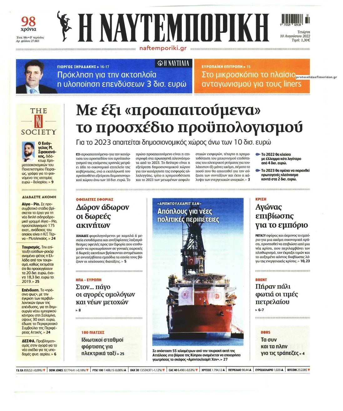 Οι οικονομικές εφημερίδες 10/8/2022 Σταύρος Ιωακείμ 06:48, Τετάρτη 10 Αυγούστου 2022 Media Διαβάστε τα πρωτοσέλιδα από τις οικονομικές εφημερίδες, σήμερα 10/08/2022. ΕΦΗΜΕΡΙΔΕΣ ΟΙΚΟΝΟΜΙΚΕΣ ΕΦΗΜΕΡΙΔΕΣ ΠΡΩΤΟΣΕΛΙΔΑ Μοιράσου το: Οι αθλητικές εφημερίδες 10/8/2022 Το Ποντίκι σήμερα Τετάρτη 10/8/2022 Οι πολιτικές εφημερίδες 10/8/2022 σχολίασε κι εσύ (0 σχόλια) Ακολουθήστε το enikos.gr στο Google News και μάθετε πρώτοι όλες τις ειδήσεις Δείτε όλες τις τελευταίες ειδήσεις από την Ελλάδα και τον Κόσμο στο enikos.gr Ειδήσεις Ροή Ειδήσεων 4 ώρες πριν Αυξάνουν την πίεση προς την κυβέρνηση οι αγρότες: Κλείνουν παρακαμπτήριους και ανοίγουν διόδια – Τι θα γίνει τις γιορτές 3 ώρες πριν ΟΠΕΚΕΠΕ: Προφυλακιστέος ο φερόμενος αρχηγός και ο λογιστής της εγκληματικής οργάνωσης 4 ώρες πριν Φοινικούντα: Το Σάββατο απολογείται ο 30χρονος γιος γνωστού επιχειρηματία της Πλάκας που παραδόθηκε – Όσα είπε στους αστυνομικούς και ο ρόλος του στο έγκλημα 3 ώρες πριν Μπορεί ο Μαδούρο να αντέξει τον αποκλεισμό του Τραμπ; Τι θα χρειαστεί η Ουάσινγκτον για να τον ανατρέψει 2 ώρες πριν ΑΕΚ – Κραϊόβα 3-2: Επική ανατροπή και πρόκριση στους «16» του Conference League η Ένωση 3 ώρες πριν Αρχαιολόγοι ανακάλυψαν ρωμαϊκά τεχνουργήματα από μια πόλη που δεν υπήρξε ποτέ – Τα τρία εντυπωσιακά κτίρια και ο αμφορέας με τις… σαρδέλες 4 ώρες πριν Ύπνος: Η απλή βραδινή ρουτίνα για να προστατεύσετε τα μαλλιά σας από το κρύο κατά τη διάρκεια του χειμώνα 5 ώρες πριν Manifesting: Πώς να συναντήσετε τον σύντροφο της ζωής σας, ανάλογα με τον μήνα γέννησής σας 2 ημέρες πριν 20 χρόνια τα Χριστούγεννα ξεκινούν στα Public με μεγάλη ποικιλία σε δώρα! 6 λεπτά πριν Πόλεμος στην Ουκρανία: Ρωσικά drones έπληξαν την Οδησσό – Μία νεκρή και ζημιές σε ενεργειακές υποδομές 14 λεπτά πριν ΑΕΚ-Κραϊόβα: Τα highlights της μυθικής ανατροπής της «Ένωσης» 29 λεπτά πριν Μιχάλης Χρυσοχοΐδης από την Κωνσταντινούπολη: Κοινές επιχειρήσεις Ελλάδας – Τουρκίας ενάντια στο οργανωμένο έγκλημα 51 λεπτά πριν Μάρκο Νίκολιτς: «Είμαι περήφανος για τους παίκτες μου, όποιος αντίπαλος και να έρθει θα προετοιμαστούμε» 1 ώρα πριν ΟΗΕ: Την εκλογή του νέου ύπατου αρμοστή για τους Πρόσφυγες Μπαρχάμ Άχμεντ Σαλίχ χαιρέτησε ο Αντόνιο Γκουτέρες ENIKOS NETWORK Σε περίοδο αυξημένης δραστηριότητας η γρίπη στην Ελλάδα-Μέτρα προστασίας από τον ΕΟΔΥ Σκέφτεστε συνέχεια συζητήσεις που έχετε κάνει; Τι σημαίνει αυτό, σύμφωνα με ειδικό Στεγαστικό: Τι λέει η ΠΟΜΙΔΑ για τα νέα μέτρα που ανακοίνωσε ο Κυριάκος Μητσοτάκης Λαγκάρντ: Αισιόδοξη για την ανάπτυξη της Ευρωζώνης, αβέβαιη για τον πληθωρισμό Χαρτογραφώντας το «σημείο χωρίς επιστροφή»: Για πρώτη φορά αποκαλύπτεται με λεπτομέρεια το ακανθώδες όριο της ατμόσφαιρας τ... Η Google καταργεί τη λειτουργία «dark web report» – Πώς θα μπορούν οι χρήστες να διαγράφουν τα δεδομένα τους περισσότερα 17:45 , Πέμπτη 18 Δεκεμβρίου 2025 ROUK ZOUK: Εορταστικό επεισόδιο με καλεσμένους τους πρωταγωνιστές του «Γιατί ρε πατέρα» Το Σάββατο 20 Δεκεμβρίου στις 21:00, η Ζέτα Μακρυπούλια υποδέχεται εκλεκτούς ηθοποιούς που όλο... 17:20 , Πέμπτη 18 Δεκεμβρίου 2025 Άγιος έρωτας: Η Χριστίνα εξομολογείται στον πατέρα Νικόλαο, απόψε στις 21:00 στον Alpha Η Νότα αποφασίζει να εκδικηθεί τον Πέτρο και τον Στέφανο, για χάρη του Λούη, όμως τα πράγματα ... 16:50 , Πέμπτη 18 Δεκεμβρίου 2025 Να μ’ αγαπάς: Ζωή και Φωτεινή συμφιλιώνονται ως μάνα με κόρη, απόψε στις 20:00 Η ταυτότητα του Άγγελου αποκαλύπτεται στο νέο επεισόδιο της σειράς “Να μ’ αγαπάς... 15:52 , Πέμπτη 1